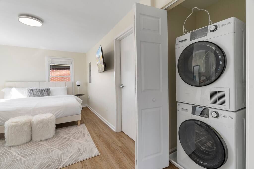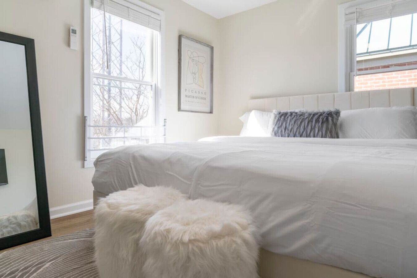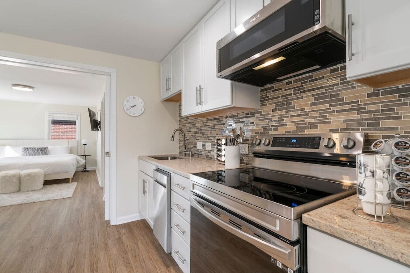 Dreamy Apartment in Downtown, 1 BDR, Kitchen, Luxury Bath, Walk to Shops and Entertainment New Hospitality welcomes you to this masterfully renovated apartment in The HEART of Downtown Herndon, perfectly suited for couples. Apartment rests on the 3rd level overlooking Historic Herndon, and features an open floor plan, modern interior design, fully stocked kitchen, 1 bedroom and exquisite bath. Enjoy local festivities as you walk to shops, dining and entertainment. 6 miles to Dulles International Airport and 23 miles to Washington DC. Treat yourself to a luxury urban living experience!As you enter this third level apartment unit, you are greeted with an exquisite living space that overlooks the energizing hustle and bustle of downtown. Enjoy a sensory stimulating bath in the upgraded modern bathroom with wall-to-wall tile and an oversized glass-enclosed shower. The living space transitions into the fully stocked kitchen, complete with all your favorite amenities - stainless appliances, cookware, bakeware, spices and Keurig coffee! Toward the end, the sunlit bedroom features a king-sized memory foam bed and separate TV. Start your mornings with a jog around the connecting walking trail and breakfast at any of the famous local eateries. Enjoy 5-star amenities including high-end furnishings and décor, fast wireless Internet by Verizon Fios (1 gig), and two large screen televisions with wi-fi ready apps, Netflix, HBO, Amazon Prime and Disney+.Other features include:- Free parking along the street and municipal parking lot- Workstation with adjustable standup/seated desk- Onsite washer and dryer- Upscale and extremely safe neighborhoodEntire space plus amenities are included in this rental. Please, make yourself at home.- No pets allowed at this unit.- Absolutely no smoking indoors - $500 smoking fee. - You must provide an accurate guest count. - Commercial vehicles must be approved by management.- Suitable for children (2-12 years)- No parties or events – undisclosed guests warrants immediate eviction or additional fees.- Quiet time after 10pm.- Lock and secure the property when going out.- Refer to the electronic guidebook provided after a confirmed stay for instructions on proper home use, placement of key items such as fire extinguisher, TV equipment, and areas of interest (restaurants, cafes, etc.) in proximity to property.- Follow the instructions under the “departure” section of the electronic guidebook when checking out.- Maintain Cleanliness: Please treat this home as if it were yours and leave the property as you found it. This home is for not events, conferences or groups that want to entertain large parties. We welcome quiet couples or families. If the property is left exceptionally dirty, such as perishable foods left in the kitchen, dirty dishes in the sink, furniture rearranged, or trash not taken care of, there will be an extra fee of up to $500.- Late Checkout: Unauthorized late check outs will result in additional fees, depending on the time of checkout. We clearly communicate our 10am checkout, and our cleaners’ schedule cannot be changed without penalty to us. If you fail to check out by 10am, unless otherwise agreed, you will be charged half of the nightly rate for the property. Staying past agreed checkout time is considered trespassing.- Internet/cable: We provide you high speed Internet as a perk. Any misuse of the Internet, including illegal downloads and copyright infringements will be met with a penalty fine of $50 if discovered.- Privacy and Safety: This property is equipped with security cameras on the outside of the property and the garage space. We use these cameras to monitor during check in to verify accurate guest count, and review footage if there is an incident. The cameras are only placed outside and in the garage space.This property is equipped with a smart fire alarm and carbon monoxide detector. Any detection of smoke will alert management by text message. Please check to make sure stove top and oven are turned off before going out and bed time.- Amenity Stock and Restock: We provide enough trash bags, paper towels, toilet paper, and other home items for about 5 days of use. Beyond that, it is the responsibility of the guest to replenish.
