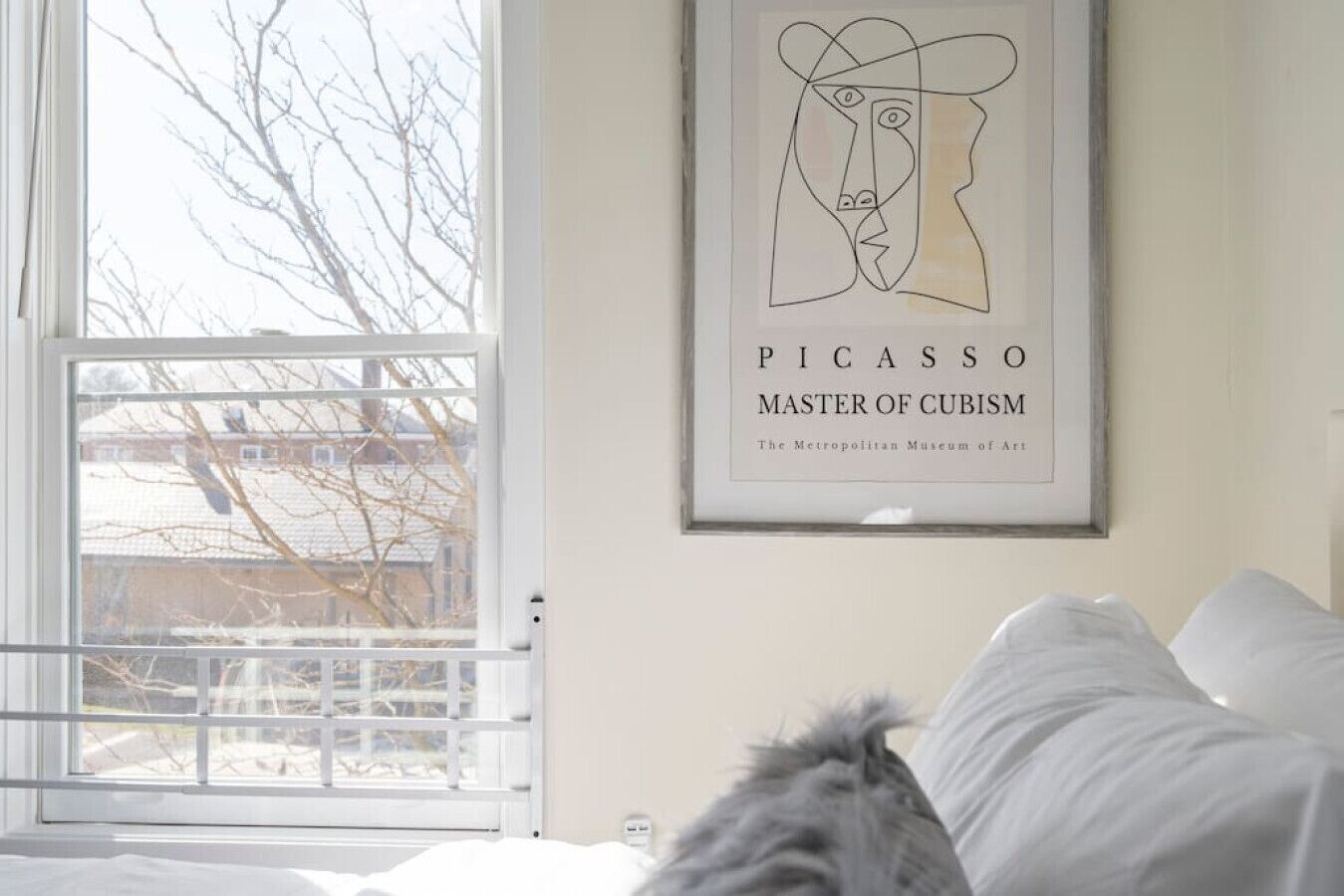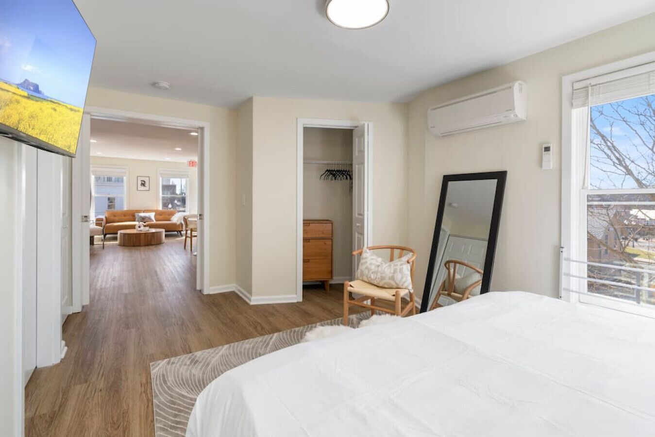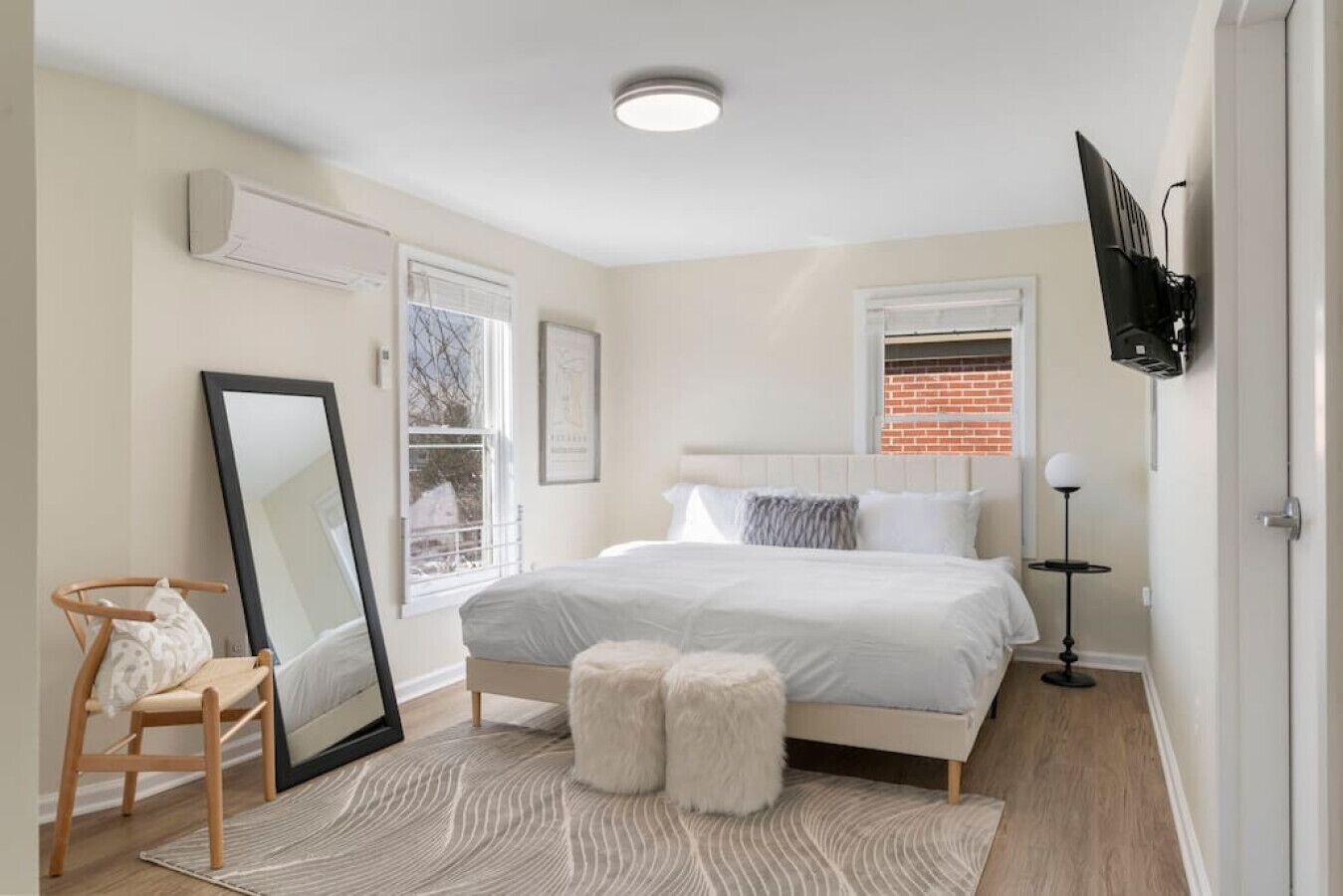 Dreamy Apartment in Downtown, 1 BDR, Kitchen, Luxury Bath, Walk to Shops and Entertainment New Hospitality welcomes you to this masterfully renovated apartment in The HEART of Downtown Herndon, perfectly suited for couples. Apartment rests on the 3rd level overlooking Historic Herndon, and features an open floor plan, modern interior design, fully stocked kitchen, 1 bedroom and exquisite bath. Enjoy local festivities as you walk to shops, dining and entertainment. 6 miles to Dulles International Airport and 23 miles to Washington DC. Treat yourself to a luxury urban living experience!As you enter this third level apartment unit, you are greeted with an exquisite living space that overlooks the energizing hustle and bustle of downtown. Enjoy a sensory stimulating bath in the upgraded modern bathroom with wall-to-wall tile and an oversized glass-enclosed shower. The living space transitions into the fully stocked kitchen, complete with all your favorite amenities - stainless appliances, cookware, bakeware, spices and Keurig coffee! Toward the end, the sunlit bedroom features a king-sized memory foam bed and separate TV. Start your mornings with a jog around the connecting walking trail and breakfast at any of the famous local eateries. Enjoy 5-star amenities including high-end furnishings and décor, fast wireless Internet by Verizon Fios (1 gig), and two large screen televisions with wi-fi ready apps, Netflix, HBO, Amazon Prime and Disney+.Other features include:- Free parking along the street and municipal parking lot- Workstation with adjustable standup/seated desk- Onsite washer and dryer- Upscale and extremely safe neighborhoodEntire space plus amenities are included in this rental. Please, make yourself at home.- No pets allowed at this unit.- Absolutely no smoking indoors - $500 smoking fee. - You must provide an accurate guest count. - Commercial vehicles must be approved by management.- Suitable for children (2-12 years)- No parties or events – undisclosed guests warrants immediate eviction or additional fees.- Quiet time after 10pm.- Lock and secure the property when going out.- Refer to the electronic guidebook provided after a confirmed stay for instructions on proper home use, placement of key items such as fire extinguisher, TV equipment, and areas of interest (restaurants, cafes, etc.) in proximity to property.- Follow the instructions under the “departure” section of the electronic guidebook when checking out.- Maintain Cleanliness: Please treat this home as if it were yours and leave the property as you found it. This home is for not events, conferences or groups that want to entertain large parties. We welcome quiet couples or families. If the property is left exceptionally dirty, such as perishable foods left in the kitchen, dirty dishes in the sink, furniture rearranged, or trash not taken care of, there will be an extra fee of up to $500.- Late Checkout: Unauthorized late check outs will result in additional fees, depending on the time of checkout. We clearly communicate our 10am checkout, and our cleaners’ schedule cannot be changed without penalty to us. If you fail to check out by 10am, unless otherwise agreed, you will be charged half of the nightly rate for the property. Staying past agreed checkout time is considered trespassing.- Internet/cable: We provide you high speed Internet as a perk. Any misuse of the Internet, including illegal downloads and copyright infringements will be met with a penalty fine of $50 if discovered.- Privacy and Safety: This property is equipped with security cameras on the outside of the property and the garage space. We use these cameras to monitor during check in to verify accurate guest count, and review footage if there is an incident. The cameras are only placed outside and in the garage space.This property is equipped with a smart fire alarm and carbon monoxide detector. Any detection of smoke will alert management by text message. Please check to make sure stove top and oven are turned off before going out and bed time.- Amenity Stock and Restock: We provide enough trash bags, paper towels, toilet paper, and other home items for about 5 days of use. Beyond that, it is the responsibility of the guest to replenish.