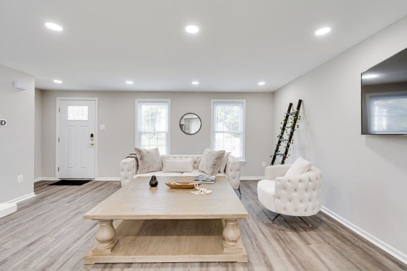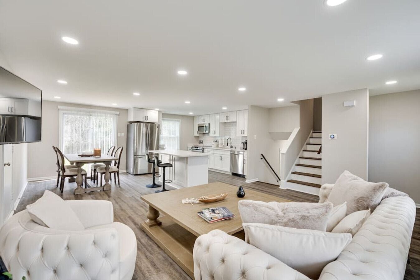 Your Private 4 BEDR, 3 LVL, Completely Renovated Home w/ Attached 2-Car Garage Stay comfortably in this completely renovated, 2,000 sq. ft. private single family home with 4 bedrooms, 3 full bath, designer kitchen with large center island, office room and attached front loading 2-car garage. Professionally furnished to deliver a high-end living experience for up to 6 guests. Perfectly suited for families and business professionals visiting the D.C. area. Centrally located in Fairfax, VA, minutes to Dulles International Airport (6 miles) and Washington D.C. (24 miles).Sleep easy in the overstuffed queen and full-size memory foam mattresses and enjoy amenities including a modern kitchen with brand new appliances, high-speed wireless Internet via Verizon Fios, large screen televisions with wi-fi ready apps, Netflix, HBO, Amazon Prime and Disney+. Other features include:- Garaged parking for up to 2 vehicles + driveway for 2 additional vehicles- Dedicated office room with a desk and monitor- Fully equipped kitchen and coffee station- Onsite washer and dryer with hypoallergenic detergent- Extremely safe neighborhoodEntire space plus amenities are included in this rental. Please, make yourself at home.Self check-in enabled. Guests will receive a personal check-in code with instructions after a confirmed reservation.- Pets allowed with a pet fee of $250 and please ask management.- Absolutely no smoking indoors - $500 smoking fee. - You must provide an accurate guest count. - Commercial vehicles must be approved by management.- Suitable for children (2-12 years)- No parties or events – undisclosed guests warrants immediate eviction or additional fees.- Quiet time after 10pm.- Lock and secure the property when going out.- The fireplace is not for use. Any damages resulting from use of fireplace will be the responsibility of the guest.- Use the supplied candles wisely - put out flames when going out and before bed time.- Refer to the electronic guidebook provided after a confirmed stay for instructions on proper home use, placement of key items such as fire extinguishers, TV equipment, and areas of interest (restaurants, cafes, etc.) in proximity to property.- Follow the instructions under the “departure” section of the electronic guidebook when checking out.- Maintain Cleanliness: Please treat this home as if it were yours and leave the property as you found it. This home is for not events, conferences or groups that want to entertain large parties. We welcome quiet couples or families. If the property is left exceptionally dirty, such as perishable foods left in the kitchen, dirty dishes in the sink, furniture rearranged, or trash not taken care of, there will be an extra fee of up to $500.- Late Checkout: Unauthorized late check outs will result in additional fees, depending on the time of checkout. We clearly communicate our 10am checkout, and our cleaners’ schedule cannot be changed without penalty to us. If you fail to check out by 10am, unless otherwise agreed, you will be charged half of the nightly rate for the property. Staying past agreed checkout time is considered trespassing.- Internet/cable: We provide you high speed Internet as a perk. Any misuse of the Internet, including illegal downloads and copyright infringements will be met with a penalty fine of $50 if discovered.- Privacy and Safety: This property is equipped with security cameras on the outside of the property. We use these cameras to monitor during check in to verify accurate guest count, and review footage if there is an incident. The cameras are all outside.This property is equipped with a smart fire alarm and carbon monoxide detector. Any detection of smoke will alert management by text message. Please check to make sure stove top and oven are turned off and candle flames put out before going out and bed time.- Amenity Stock and Restock: We provide enough trash bags, paper towels, toilet paper, and other home items for about 5 days of use. Beyond that, it is the responsibility of the guest to replenish.