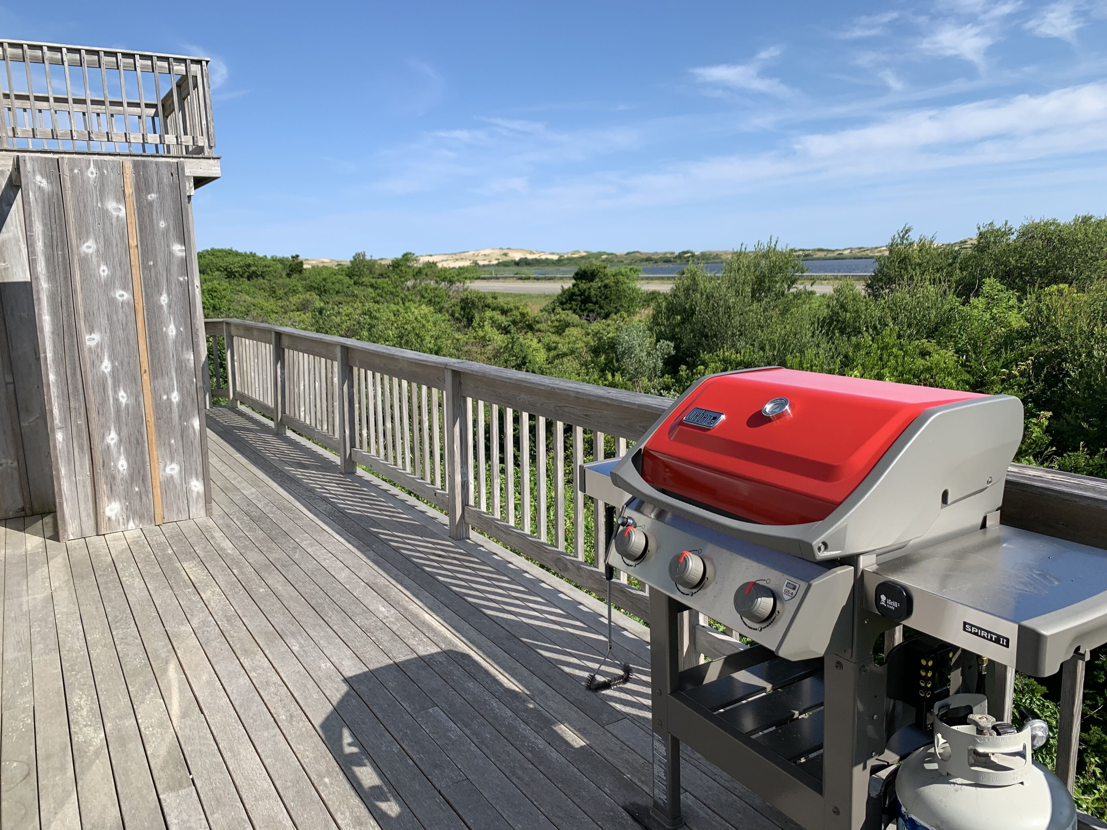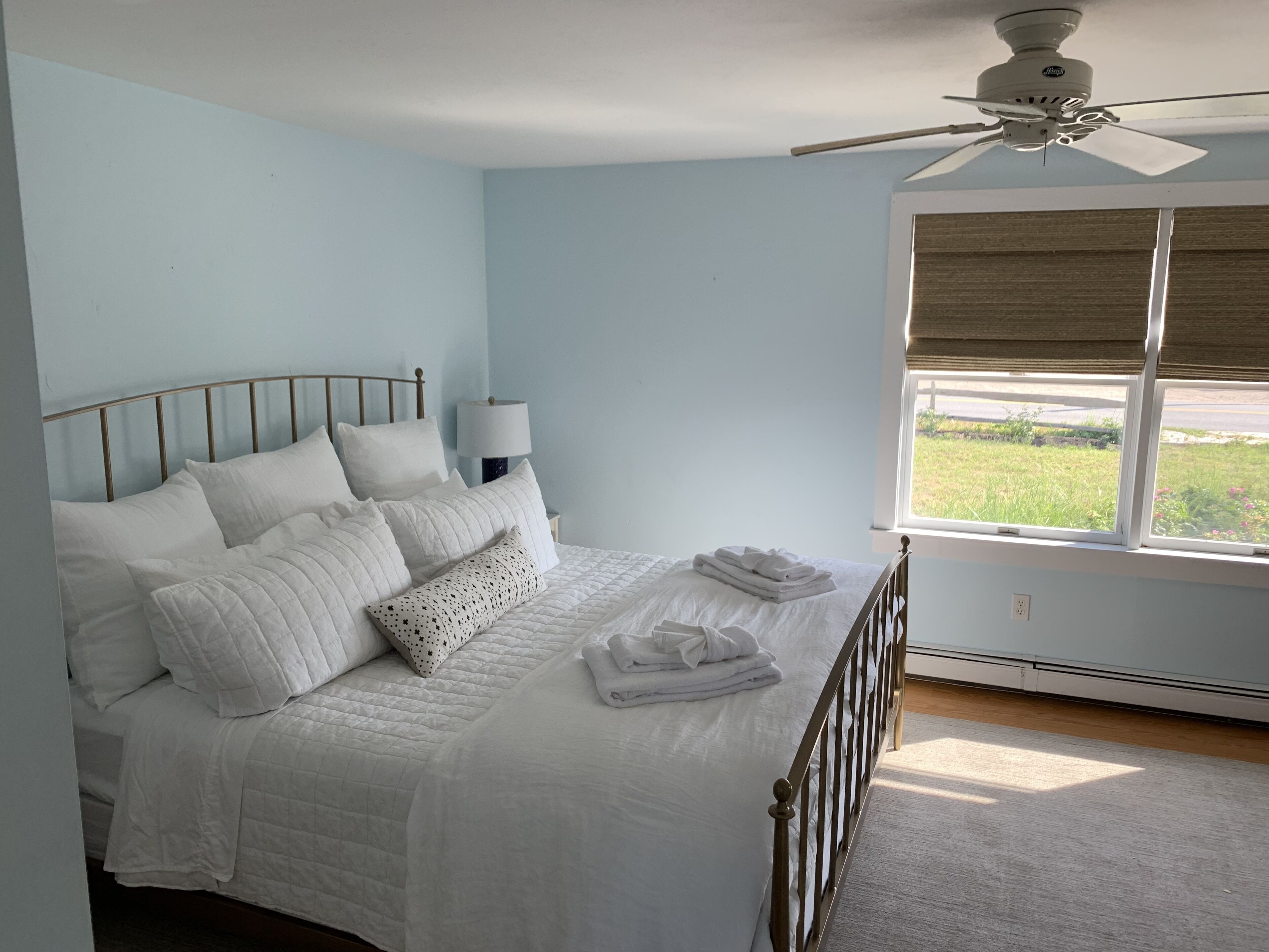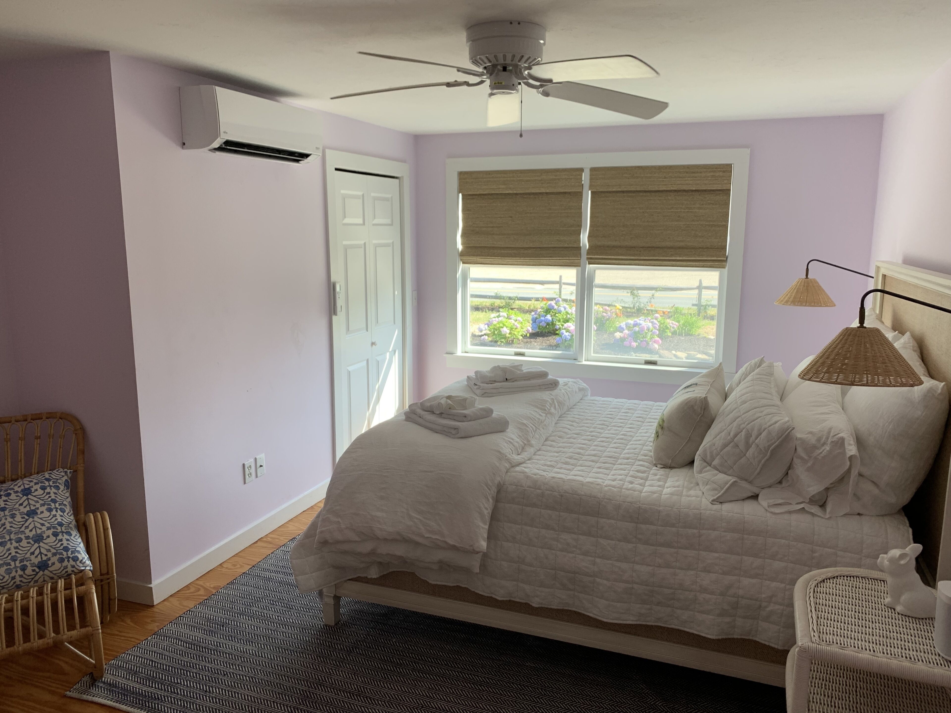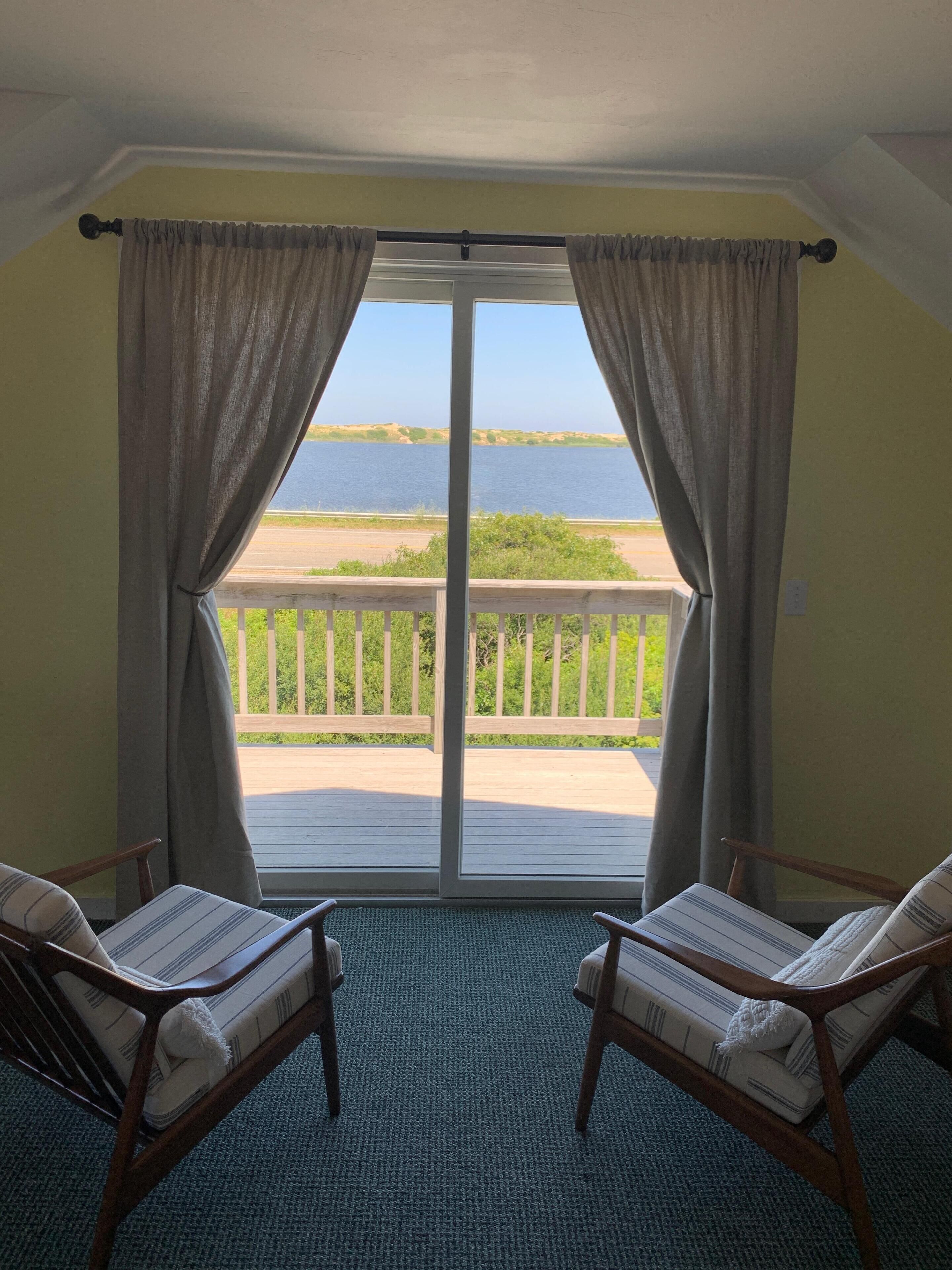 Beach Point at its Best! Welcome to Camellia Cottage, the perfect blend of inviting spaces, drenching sunshine and rejuvinating sea breezes.Just steps from Cape Cod Bay (deeded access) and minutes from Truro’s world-class ocean beaches, Camellia Cottage offers panoramic water views, light-filled rooms, resort furnishings and convenient access to Provincetown via shuttle bus. Throw the windows open to enjoy the breeze, or stay cool and dry with whole house air conditioning - the choice is yours!The living room is furnished with two oversized chairs and a sleeper sofa (queen memory foam mattress) upholstered in durable Sunbrella fabric. A 65" 4K HDTV over the fireplace makes this room the perfect spot for movie night after a long, sun-soaked day at the beach.The dining room features a large bespoke wood table (built by Harp Design Company of HGTV's "Fixer Upper") surrounded by 8 bistro chairs, where you can enjoy majestic water and dune views while having meals, playing board games, sipping coffee or just telling stories. The sunporch offers another great gathering spot for conversation, cocktails or an afternoon nap.Upstairs is a loft for reading, catching up on some work, or enjoying some screen time away from the rest of the house. It is furnished with a mid-century modern desk and chair, iMac computer, 55" 4K HDTV, chair-and-a-half lounger and bean bags for the kids. The panoramic views of East Harbor from this room are breathtaking!The fully stocked gourmet kitchen (all new stainless steel appliances) offers a central location from which you can cook your favorite family meals, or just serve takeout. The kitchen counter has two barstools which are great for grabbing breakfast or a snack, or just chatting with the cook.The first bedroom features a queen size Casper mattress, Belgian linens (quilt, duvet and pillows) and a quiet reading spot. This room is served by a full bathroom (shower only) just down the hallway.The second bedroom features a king size Casper mattress, Belgian linens and en suite bathroom (shower only). The bedroom has great light and is big enough to set up a Pack 'n Play or bassinet if needed.The master suite above the garage is a lovely private retreat. It also features a king Casper mattress and Belgian linens, as well as restored mid-century modern furniture including a pair of chairs for relaxing while enjoying the views of East Harbor. If rain chases you off the beach you can binge watch Netflix on a 65" 4K HGTV from an upholstered sleigh bed. There is also ample room for a young family to set up a bassinet or Pack 'n Play. The full bathroom (tub/shower combo) is also en suite. (This room also has a kitchenette but we do not currently use it and intend to remove it in the near future.)While the purpose of Camellia Cottage is to get away, whole-house ultra-fast gigabit internet allows you to stay connected. In addition, Sonos whole-house audio will play your favorite vacation music in every room.