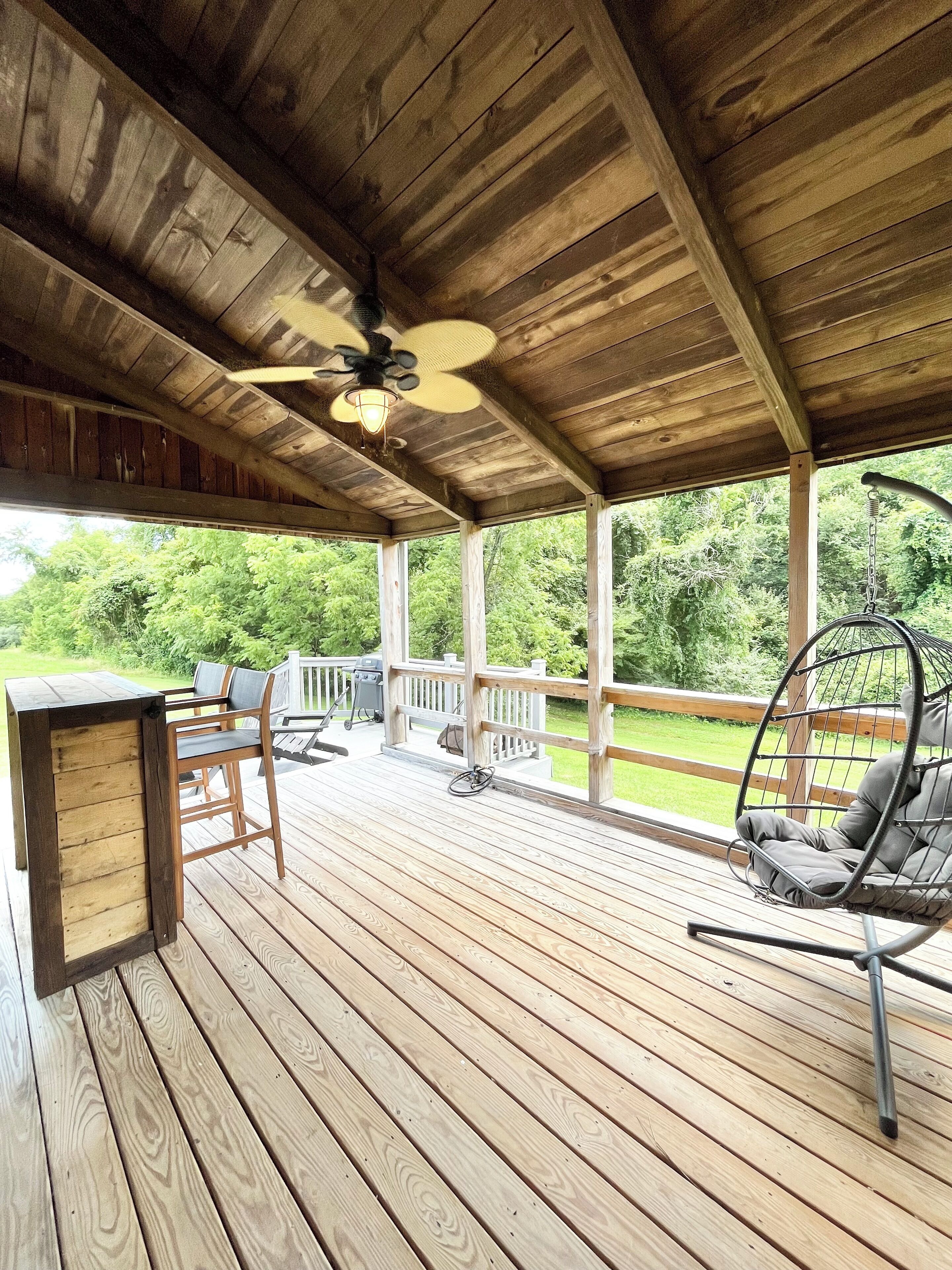 Rockfish Valley Retreat- Wintergreen Welcome to Rockfish Valley Retreat! A perfect location to enjoy ALL that Wintergreen & Nelson County has to offer! Enjoy being in the valley area of Wintergreen so that you are close to the resort but also close to all the other attractions of Nelson County. We are close to great hiking, breweries, wineries but you can also enjoy Wintergreens Stoney Creek golf course, Discovery Ridge (zip lines, tubing, rock walls and more), Lake Monacan (closed on Saturdays) , the Spa and we are walking distance (.2mi) to our Rhodes Farm pool (please note the pool allows 6 guests only from 2-6pm)For more, check us out on IG at @rockfishvalleyretreatThe spaceRockfish Valley Retreat is a 3 bedroom, 2 bathroom home, perfect for families and friends looking for a peaceful retreat that feels away from it all but that is close to all the local attractions. We have a wonderful outdoor space with a bar/TV area, and also a propane fire pit to enjoy on cool nights. Inside feels both cozy and spacious with windows looking out over the valley. The walking trail behind the house is connected to the horse farm across the street, so enjoy watching the horses walk by as you enjoy your morning coffee on the deck. NEARBY: We are 2.9 miles from Three Notch’d Brewery, and only a few miles from many other local wineries, breweries, and cideries (over 30!). We are in the valley area of Wintergreen, and we are close to some of the areas most popular hiking and outdoor destinations (Crabtree Falls, Blue Ridge Tunnel Hike, and the more than 30miles of trails at Wintergreen Resort). INSIDE SPACE: Inside the cozy main living space has a sofa and two chairs for lounging. There is a dining area for 6 that is open to the living room. Please note: The wood burning fireplace is for decorative purposes only and not able to be used due to fire code. KITCHEN: Fully stocked for all your cooking needs - all cooking tools, pots and pans, Keurig coffee maker, dishes + utensils, basic spices and more. BATHROOMS: 2 full bathrooms – 1 on each floor. Downstairs has a tub/shower and upstairs is a shower only. ELECTRONICS: We have smart TVs in the living room and all bedrooms, we also have a smart TV on the back deck that is on a swivel so can also be enjoyed from all deck areas. Our entry is keyless. BEDROOMS: Downstairs you will find two bedrooms. One with a queen bed and the other with a queen bunk bed and single twin. The upstairs bedroom has a queen bed. KIDS: A pack-n-play (with sheet) is also available for your use and is located in the upstairs closet.. We have plenty of family friendly games. There are step stools in both bathrooms, a high chair/booster, and kid-friendly cups + dishes. *Please note though, parents of toddlers, that the house has wooden stairs and no baby gates.*OUTSIDE: We have a bar with two stools, a swing and 2 outdoor chairs on the deck. We have 4 adirondack chairs on the lower deck with firepit. On the front porch we have two rocking chairs that look over to the horse farm. We're so excited to share this amazing home and this gorgeous area with you! We are always available to help you plan your stay. Guests have access to the entire house.