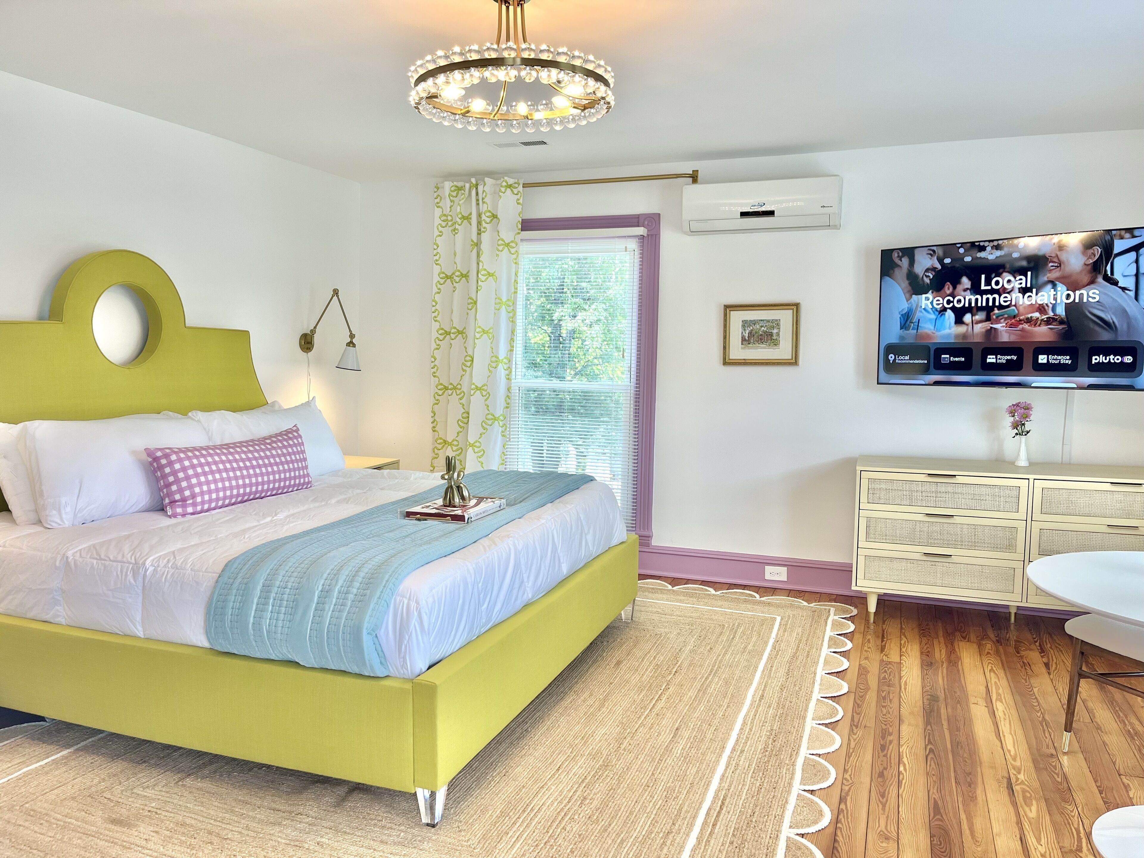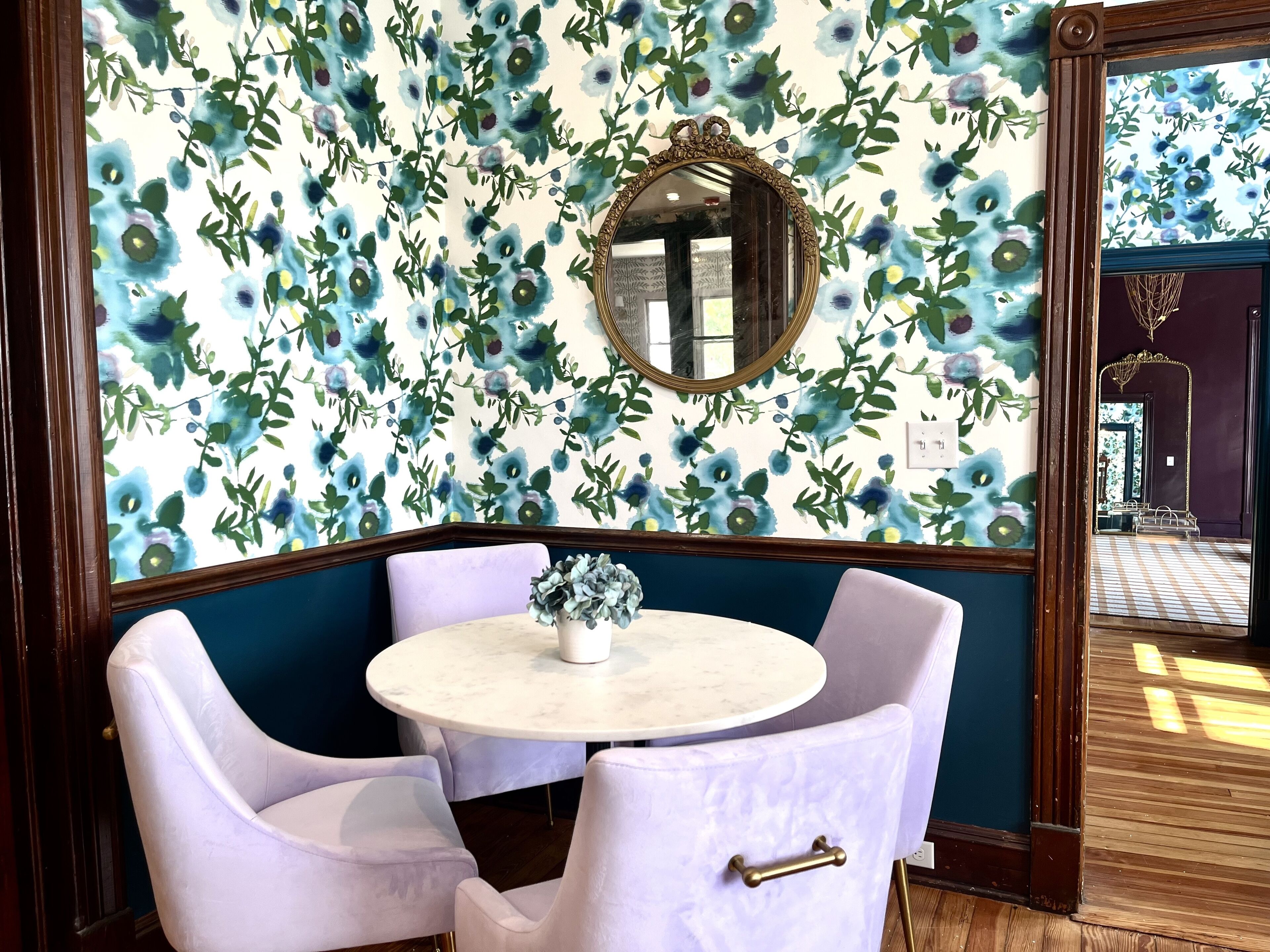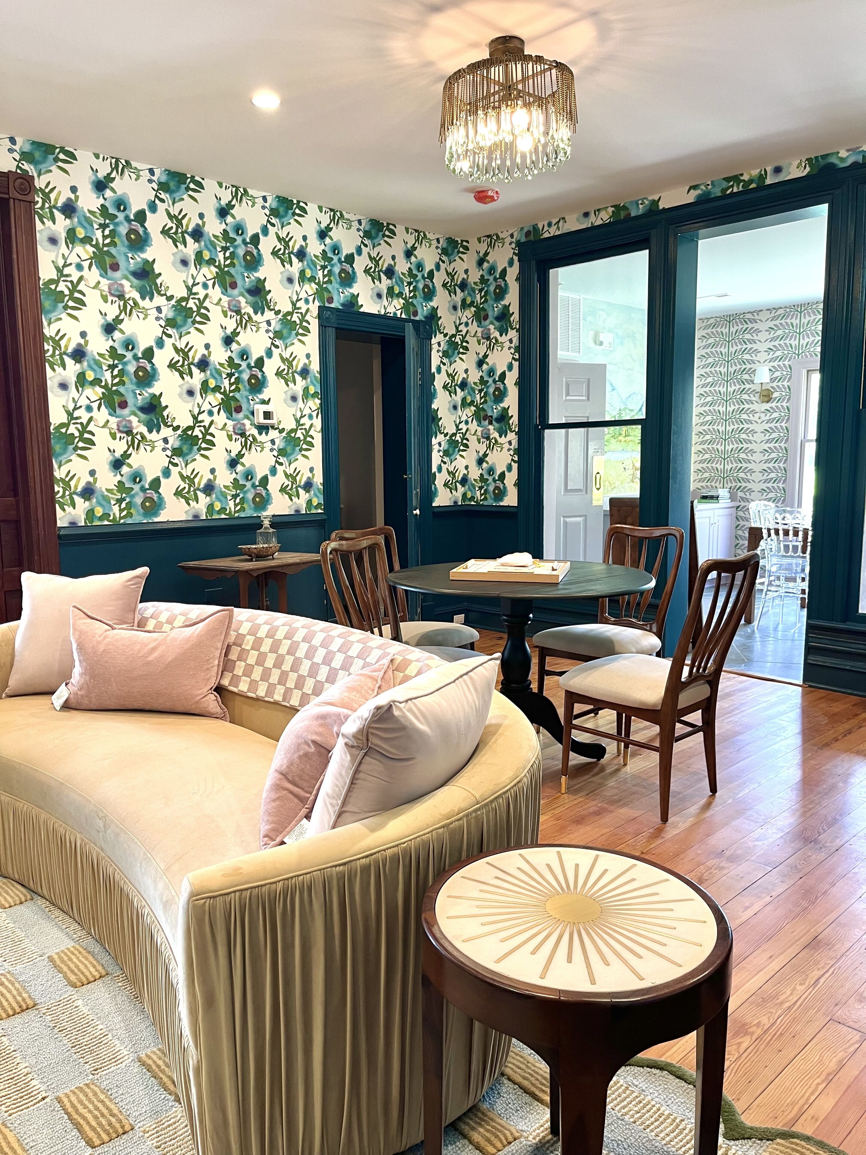 Welcome to the newly appointed Everett Estate: Where Modern Luxury Meets Historic Charm Welcome to the newly appointed Everett Estate: Where Modern Luxury Meets Historic Charm. Boasting picturesque mountain views, this 6,700 square ft home underwent a year-long renovation to modernize & revitalize both the home & the expansive grounds. With 10 all-suite rooms and 1 top-floor studio apartment, this boutique inn was expertly designed to host up to 30 overnight guests and weddings and events of up to 125 guests. Interior Design: Becky Seager | WKNDR Design of CharlottesvilleYou may see our personable and helpful staff throughout the common areas of the home during standard business hours of your stay to help keep it well maintained. There is a separate office on the interior of the home that remains locked when our staff is not onsite. There is another office area in a separate building that will sometimes be used by our crew, too. Located conveniently along Nelson 151 in Nelson County Virginia and the Blue Ridge Mountains! Nelson 151 is the travel destination for Virginia wine, craft beer, hard cider and outdoor recreation lovers. Route 151 is a designated Virginia scenic byway on the sunrise side of the Blue Ridge that connects the Nelson 151 member businesses.Six wineries (Afton Mountain Vineyards, Cardinal Point Vineyard and Winery, Flying Fox Vineyard and Winery, Hill Top Berry Farm & Winery, Valley Road Vineyards and Veritas Vineyard), three breweries (Blue Mountain Brewery, Devils Backbone Brewing Company and Three Notch'd), and two cideries (Blue Toad Hard Cider and Bold Rock Hard Cider) decided to form a group to more efficiently market and leverage their unique “micro” appellation. Nelson 151 was created.The Nelson 151 members recognize and celebrate the benefits of their proximity to one another in the pastoral Rockfish Valley. With orchards and farms, unique shopping, bed and breakfasts, local restaurants, community theater, hiking, biking, skiing, golf, fresh air and unforgettable views: Nelson 151 is the perfect choice for a day trip or weekend excursion.All self check-in- guests will be provided with a unique code that opens the front door and the door to their suite.Uniquely designed guest rooms, modern amenities, and thoughtful touches await you at Everett Estate. This restored Inn delivers a boutique experience filled with plenty of dazzling details and alluring views and amenities to ensure an unforgettable stay. Enjoy pure relaxation as you take in the sweeping views of the Blue Ridge Mountains. Sip your morning coffee from one of our numerous intimate hideaways. Indulge in a cozy cocktail while you converse with friends by the fire pits. The Layout:First FloorParlor- Moody living area with purple walls and conversational seating. This room has a full bath with a stand-up shower available for all guests to use. There is also a separate ADA-compliant half bath located inside of the parlor.Dining Room- Four separate 4-seat dining tables are great for card games, cocktails or meals. Original 110" high functional wood pocket doors separate the dining area from another living space, featuring 2 champagne velvet sofas, an additional 4-seat dining table for games or eating, and another half bath. Suite 7: - The second largest room- Access to a semi-private covered porch that is shared by guest rooms 8 and 9- King Bed- 55" Smart TV- Marble bath with extra large glass-enclosed shower with double shower heads- Keurig with coffee and tea fixings- Table and 2 chairs for WFHThis is a second-floor suite so stairs are required to access.Please Note: In an effort to create a peaceful and relaxing environment for all of our guests, we welcome well-behaved children ages 12 years and above to join their parent or guardian in our suites. Children of all ages are welcome to stay when you rent the entire Estate. We apologize for any inconvenience. Due to the nature of the property, guests are not allowed to bring their pets to stay.The property holds a rich history that traces back to its original owner, Dr. Charles Everett. This esteemed physician had the honor of serving as the personal physician for not just one, but three American Presidents: Jefferson, Madison, and Monroe. However, it was his close friendship with Thomas Jefferson that truly shaped the legacy of the estate. Together, they would venture from their separate residences in Charlottesville, Monticello, and the Belmont Tract to this very location, formerly known as Upland Manor. It was here that they would find solace in the serene surroundings and revel in the bountiful opportunities for hunting and fishing. We gladly paid homage to the esteemed Dr. Everett by bestowing his prestigious name upon the estate that now stands as a testament to his incredible legacy.While the property has changed hands multiple times throughout its history, its most recent iteration was as a thriving Bed and Breakfast called The Mark Addy Inn. Renowned for its exceptional accommodations and on-site restaurant, The Mark Addy Inn fostered a sense of community in Nelson County for countless years. However, under new ownership, the inn embarked upon a meticulous and respectful restoration process, both inside and out, culminating in an opulent boutique experience for by-the-night travelers and the ability to rent the whole estate for weddings and events. The rejuvenated design not only pays respect to a bygone era, but also reflects modern sensibilities by showcasing an array of vibrant and unique guest rooms, elegant common areas, and a complete revitalization of the surrounding grounds. These elements are masterfully intertwined through an enchanting color scheme and recurring patterns, ultimately creating an ambiance that captivates guests and transports them to an enchanting era of the past, with a contemporary twist. Discover the blend of modern hospitality and historic charm at Everett Estate—we can't wait to welcome you!