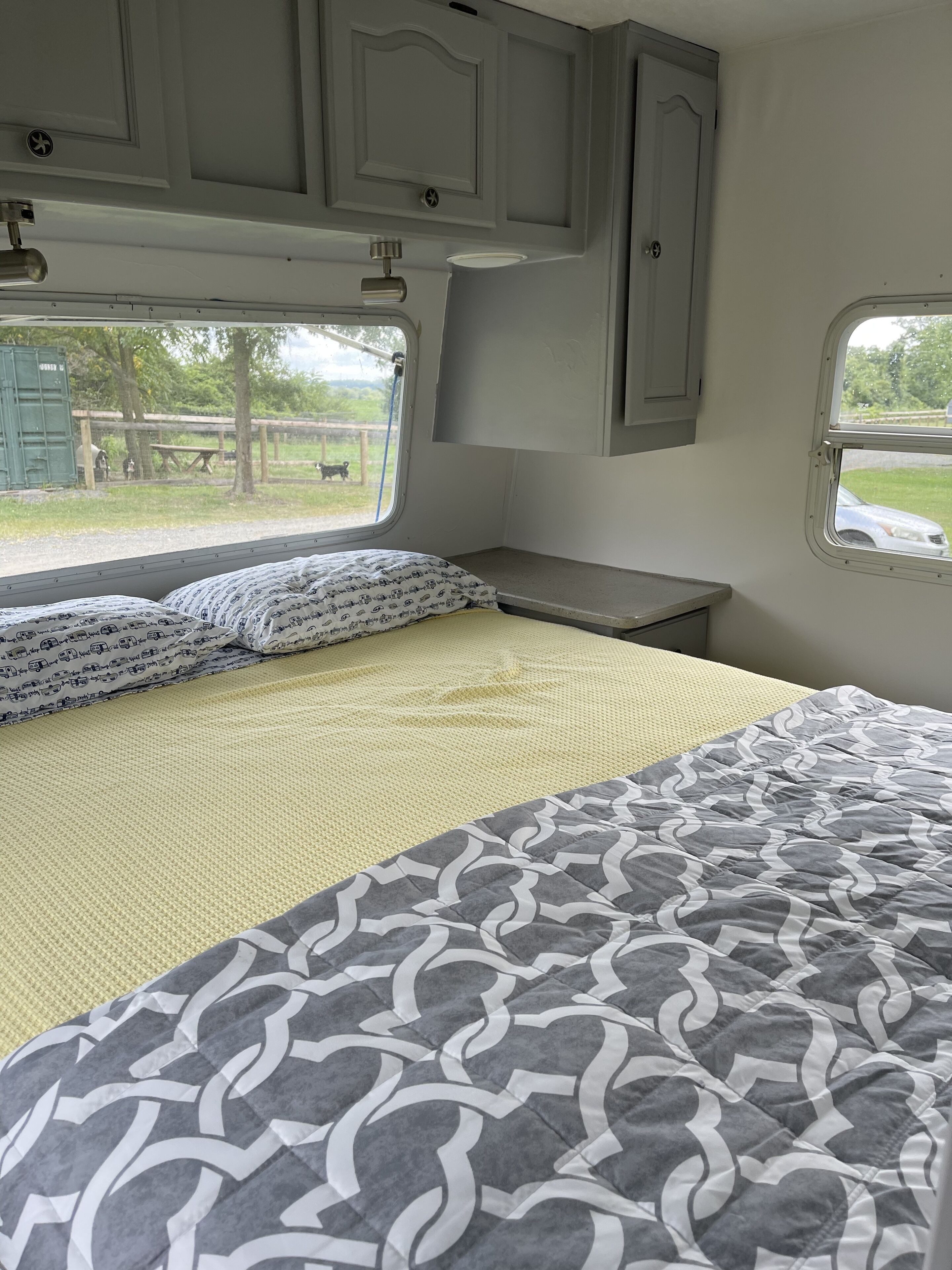 Come Glamp with us!! Delightful newly remodeled Recreational Vehicle/Camper parked at the foot of Bull Run Mountain. Beautiful scenery and animals abound on our 20 acre working horse farm. Want to pet some horses? We can make that happen!Please note: This camper is located on a “working” farm.