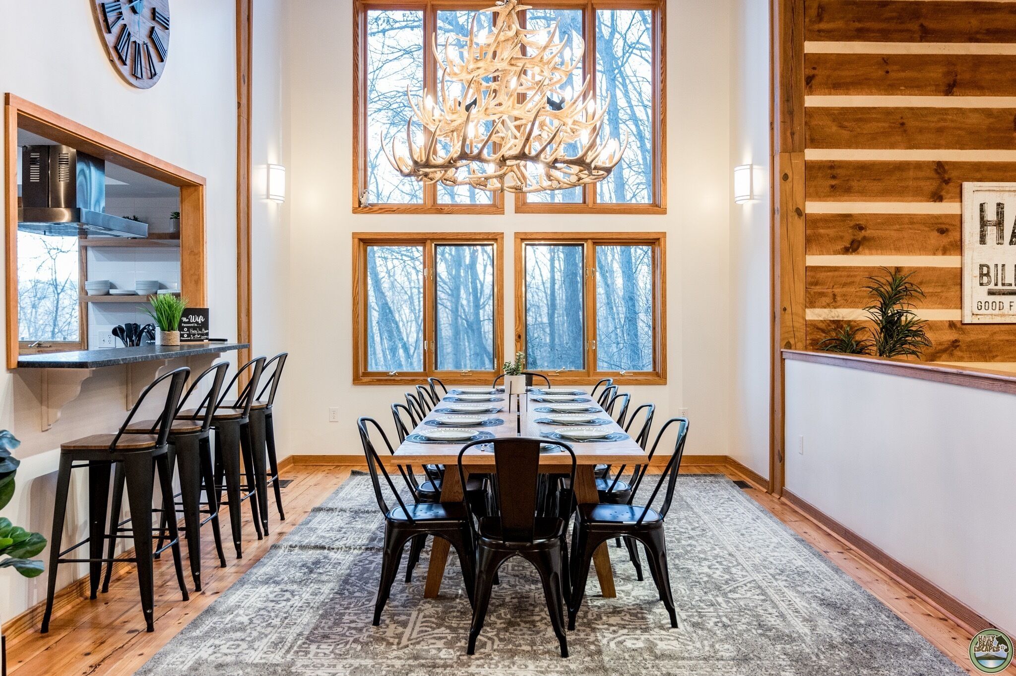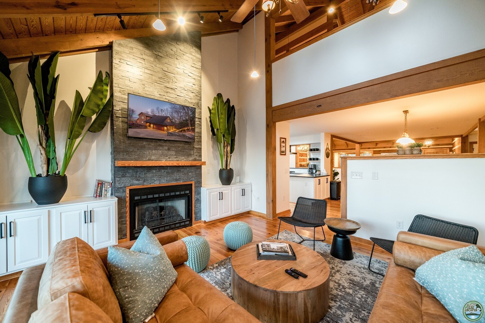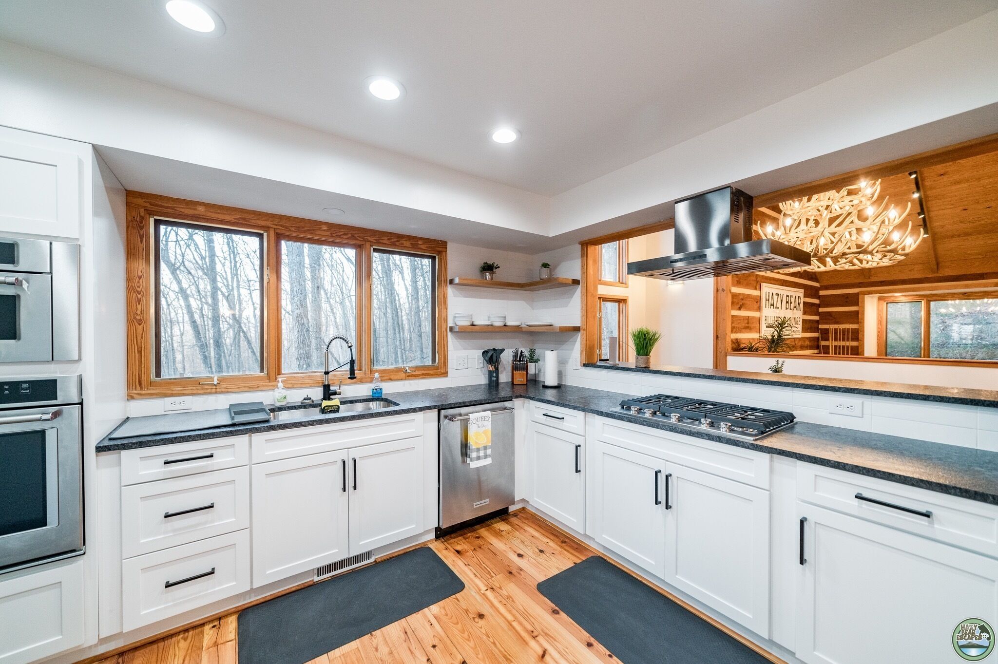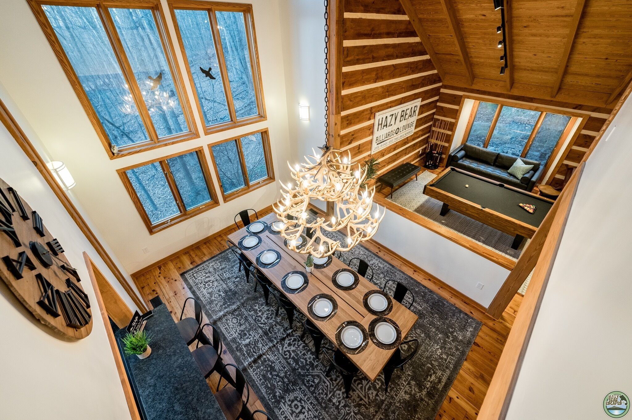 🎓JMU Grad 🐻 Natl Park🎥Theater 🥵Barrel Sauna🛁HotTub 🎱Billiards🏓GameRoom🔥Fireplace 🏡Completely renovated 5500 sqft custom cabin📽️Theater Room (120in screen, Martin Logan surround)🌄Seasonal Mountain View’s🏎️Short drive to all Massanutten Resort activities🛌5-Private bedrooms💤Sleeps 14 guests🔥Hot Tub🔥4-person Barrel Sauna🎱Billiards Room🏓Game Room- Air Hockey, Ping Pong🔥Electric Fireplace🛀🏻Soaking tub- master bath💦🎿⛳️Community Amenities💻GIGABIT+ Hi-speed WiFi🧑🍳Fully Equipped Kitchen🪑Huge Deck Areas🔢Keyless Entry📺Streaming TV's in every room‼️Min Renter Age 25🚫🐶No PetsCentrally located just a short drive to all Massanutten Four Season Resort activities, experience Hazy Bear Haven, a fully remodeled custom built rustic modern cabin getaway offering seasonal panoramic views and 365-days of beautiful sunrises coming up over the Shenandoah Valley ridge-line! ~Over 5500 sqft across 3-levels~ 5 private bedrooms~ 3.5 Bathrooms + Mudroom shower~ Audiophile 9.2.4 Surround Sound Home Theater Room ~ Custom built home perfect for multiple families, an extended family or large group of friends. You are only:~1mi to all Massanutten Resort activities mins~12mi to James Madison University and Historic Harrisonburg~12mi to Shenandoah National Park~27mi to World Famous Luray CavernsARRIVAL/PARKING-----------When pulling up to the property most guests will want to park up on the street around the flat-circle area as the driveway is steep and requires 4WD in all months. The street parking around the circle can accommodate approximately 4-vehicles. The bottom of the driveway can accommodate another 2 or 3 vehicles with careful arrangement. We have a 50A plug outside of the garage that can be used for electric vehicle charging. (BYO-charging cord/plug)~Steep Driveway requires 4WD (2-3 vehicles)~Easier Street Parking Available (4-vehicles) **Please note 4WD still needed to reach the cabin in icy/snowy conditions**~Outdoor EV Charging outlet (BYO-charger/plug)ENTRY-----------~String Light Lined Walkway Steps~Unique Asian Trees & Water Feature~Keyless Entry at Front and Side DoorsMAIN FLOOR----------------As you step through the front door into the living room, you’ll need a second to take in the open feeling created by the soaring windows and ceilings. The tongue and groove ceilings, and chinook wood walls give the home a rustic feeling while the new furnishings and decor bring in the perfect mix of modern comfort. The original wood floors in the home were preserved during renovation as they had been sourced from an old Mennonite barn that can be seen in the photos next to the kitchen. These were re-finished with a clear coat to bring them back to life, but the amazing history of the barn remains! ~Huge windows and soaring ceilings 20ft+~Newly refinished Original wood floors from local Mennonite barn~Rustic/modern furnishings and decorBILLIARDS ROOM (main floor)---------------------~Newly re-covered 8ft pool table~Plenty of pool table accessories~Plenty of seatingDINING (main floor)---------~Solid wood dining table (12-seats)~Kitchen bar (4-seats)~Breakfast Nook Table (6-seats)~Giant Antler Chandelier (50" wide, 42" tall, 27 light bulbs) KITCHEN (main floor)---------------------------We provide a generous supply of cookware, silverware and much more to accommodate your stay. Our little coffee bar has a Cuisinart Dual-function coffee maker that brews both K-Cups and drip coffee. We provide a starter pack of K-Cups for your stay!~New Cabinets - Dec 2022 ~New Chiseled Edge Leathered Granite Countertops - Dec 2022 ~New Custom floating shelves - Dec 2022~New Tiled Backsplash - Dec 2022~Wall Oven~Wall microwave oven~5-burner Gas range~Refrigerator~Dishwasher~Large Single Basin SinkBREAKFAST NOOK (main floor)-----------------------~Wood pub-style industrial breakfast table and stools~Seating for 6 guests~Beautiful Wood wall paneling/constructionLIVING ROOM/FIREPLACE ROOM (main floor)----------------------------------------~Soaring Slate Stone Electric Fireplace~Ample comfortable seating (large sectional, lounge chairs and poofs)~55" Vizio Flat Panel Smart TV (with Roku Device and Xfinity Live TV Streaming)PRIMARY BEDROOM (main floor)-----------------------~King-size bed~55" Vizio Smart TV~Walk-in ClosetPRIMARY BATHROOM (main floor)-----------------------------~Dual Vanities~Huge Soaking Tub~Huge Walk-In Shower with Rain-head Shower System~Private Toilet1/2 BATHROOM (main floor, shared)----------------------Next to the laundry room, guests will find the shared 1/2 bath, AKA the 'Necessary Room'. We have a toilet, single sink vanity & mirror in the Necessary Room. ~Single sink vanity~Mirror~ToiletLAUNDRY ROOM/MUD ROOM (main floor)---------------------~ Additional Coat Closet~Vintage mudroom shower stall~ Full-size LG Washer & Dryer~ Utility Sink~ Garage AccessGARAGE (main floor)-----------We have a large 2-car garage that we allow access to via inside the house. Since we cannot regularly update the garage keypad code, we ask that any guests wanting to use the garage, access from inside the house. We will not be held responsible for any damages occurring to guests vehicles if they choose to park in the garage. Guests will be responsible for damages caused to the property if improperly parking in the garage. ~2-car garage~access from inside home~use at your own riskHOT TUB (main floor - outdoor deck)__________~Circle hot tub seating up to 6 guests~Privacy decking and string lights for mood and ambiance~Easiest access via the side door of the homeOUTDOOR DECK (main floor - outdoor deck)--------------------------Passing by the hot tub as you round the corner of the deck there is a large unscreened deck area with an outdoor table and seating area. The outdoor table seats up to 4 guests, with additional comfortable seating offered in both the unscreened and screen patio areas. !!Please note: Our home is located in a wooded ar