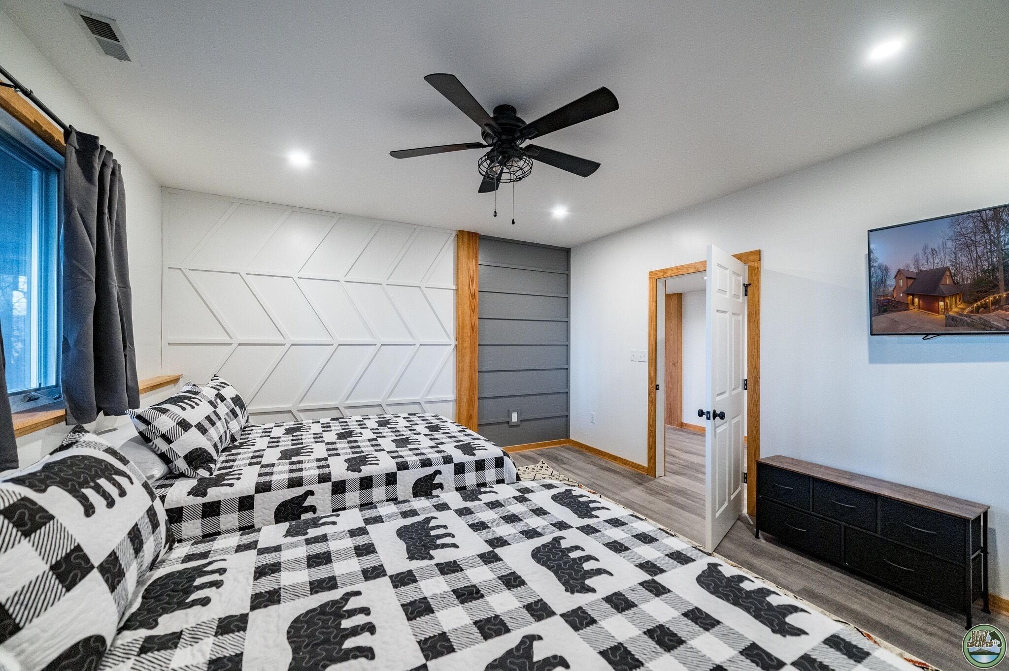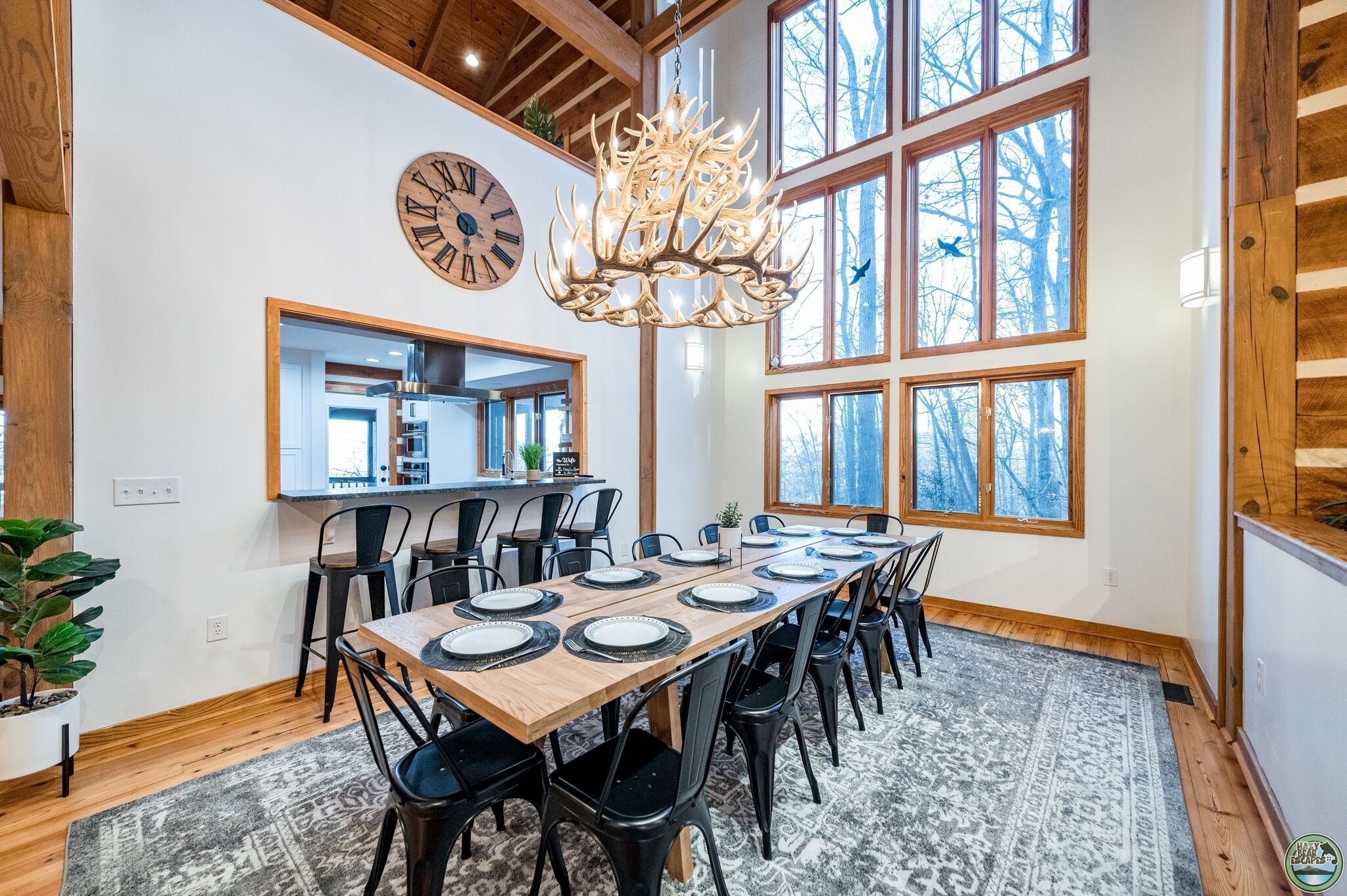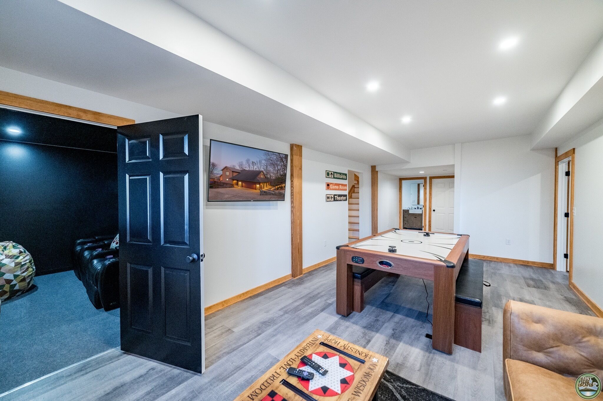 🎓JMU Grad 🐻 Natl Park🎥Theater 🥵Barrel Sauna🛁HotTub 🎱Billiards🏓GameRoom🔥Fireplace 🏡Completely renovated 5500 sqft custom cabin📽️Theater Room (120in screen, Martin Logan surround)🌄Seasonal Mountain View’s🏎️Short drive to all Massanutten Resort activities🛌5-Private bedrooms💤Sleeps 14 guests🔥Hot Tub🔥4-person Barrel Sauna🎱Billiards Room🏓Game Room- Air Hockey, Ping Pong🔥Electric Fireplace🛀🏻Soaking tub- master bath💦🎿⛳️Community Amenities💻GIGABIT+ Hi-speed WiFi🧑🍳Fully Equipped Kitchen🪑Huge Deck Areas🔢Keyless Entry📺Streaming TV's in every room‼️Min Renter Age 25🚫🐶No PetsCentrally located just a short drive to all Massanutten Four Season Resort activities, experience Hazy Bear Haven, a fully remodeled custom built rustic modern cabin getaway offering seasonal panoramic views and 365-days of beautiful sunrises coming up over the Shenandoah Valley ridge-line! ~Over 5500 sqft across 3-levels~ 5 private bedrooms~ 3.5 Bathrooms + Mudroom shower~ Audiophile 9.2.4 Surround Sound Home Theater Room ~ Custom built home perfect for multiple families, an extended family or large group of friends. You are only:~1mi to all Massanutten Resort activities mins~12mi to James Madison University and Historic Harrisonburg~12mi to Shenandoah National Park~27mi to World Famous Luray CavernsARRIVAL/PARKING-----------When pulling up to the property most guests will want to park up on the street around the flat-circle area as the driveway is steep and requires 4WD in all months. The street parking around the circle can accommodate approximately 4-vehicles. The bottom of the driveway can accommodate another 2 or 3 vehicles with careful arrangement. We have a 50A plug outside of the garage that can be used for electric vehicle charging. (BYO-charging cord/plug)~Steep Driveway requires 4WD (2-3 vehicles)~Easier Street Parking Available (4-vehicles) **Please note 4WD still needed to reach the cabin in icy/snowy conditions**~Outdoor EV Charging outlet (BYO-charger/plug)ENTRY-----------~String Light Lined Walkway Steps~Unique Asian Trees & Water Feature~Keyless Entry at Front and Side DoorsMAIN FLOOR----------------As you step through the front door into the living room, you’ll need a second to take in the open feeling created by the soaring windows and ceilings. The tongue and groove ceilings, and chinook wood walls give the home a rustic feeling while the new furnishings and decor bring in the perfect mix of modern comfort. The original wood floors in the home were preserved during renovation as they had been sourced from an old Mennonite barn that can be seen in the photos next to the kitchen. These were re-finished with a clear coat to bring them back to life, but the amazing history of the barn remains! ~Huge windows and soaring ceilings 20ft+~Newly refinished Original wood floors from local Mennonite barn~Rustic/modern furnishings and decorBILLIARDS ROOM (main floor)---------------------~Newly re-covered 8ft pool table~Plenty of pool table accessories~Plenty of seatingDINING (main floor)---------~Solid wood dining table (12-seats)~Kitchen bar (4-seats)~Breakfast Nook Table (6-seats)~Giant Antler Chandelier (50" wide, 42" tall, 27 light bulbs) KITCHEN (main floor)---------------------------We provide a generous supply of cookware, silverware and much more to accommodate your stay. Our little coffee bar has a Cuisinart Dual-function coffee maker that brews both K-Cups and drip coffee. We provide a starter pack of K-Cups for your stay!~New Cabinets - Dec 2022 ~New Chiseled Edge Leathered Granite Countertops - Dec 2022 ~New Custom floating shelves - Dec 2022~New Tiled Backsplash - Dec 2022~Wall Oven~Wall microwave oven~5-burner Gas range~Refrigerator~Dishwasher~Large Single Basin SinkBREAKFAST NOOK (main floor)-----------------------~Wood pub-style industrial breakfast table and stools~Seating for 6 guests~Beautiful Wood wall paneling/constructionLIVING ROOM/FIREPLACE ROOM (main floor)----------------------------------------~Soaring Slate Stone Electric Fireplace~Ample comfortable seating (large sectional, lounge chairs and poofs)~55" Vizio Flat Panel Smart TV (with Roku Device and Xfinity Live TV Streaming)PRIMARY BEDROOM (main floor)-----------------------~King-size bed~55" Vizio Smart TV~Walk-in ClosetPRIMARY BATHROOM (main floor)-----------------------------~Dual Vanities~Huge Soaking Tub~Huge Walk-In Shower with Rain-head Shower System~Private Toilet1/2 BATHROOM (main floor, shared)----------------------Next to the laundry room, guests will find the shared 1/2 bath, AKA the 'Necessary Room'. We have a toilet, single sink vanity & mirror in the Necessary Room. ~Single sink vanity~Mirror~ToiletLAUNDRY ROOM/MUD ROOM (main floor)---------------------~ Additional Coat Closet~Vintage mudroom shower stall~ Full-size LG Washer & Dryer~ Utility Sink~ Garage AccessGARAGE (main floor)-----------We have a large 2-car garage that we allow access to via inside the house. Since we cannot regularly update the garage keypad code, we ask that any guests wanting to use the garage, access from inside the house. We will not be held responsible for any damages occurring to guests vehicles if they choose to park in the garage. Guests will be responsible for damages caused to the property if improperly parking in the garage. ~2-car garage~access from inside home~use at your own riskHOT TUB (main floor - outdoor deck)__________~Circle hot tub seating up to 6 guests~Privacy decking and string lights for mood and ambiance~Easiest access via the side door of the homeOUTDOOR DECK (main floor - outdoor deck)--------------------------Passing by the hot tub as you round the corner of the deck there is a large unscreened deck area with an outdoor table and seating area. The outdoor table seats up to 4 guests, with additional comfortable seating offered in both the unscreened and screen patio areas. !!Please note: Our home is located in a wooded ar
