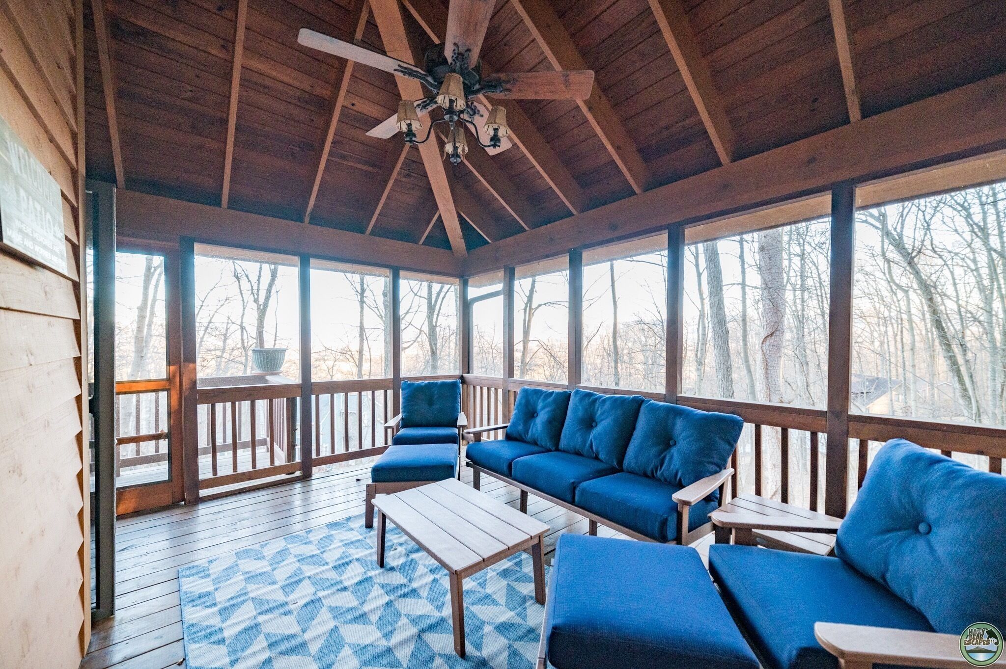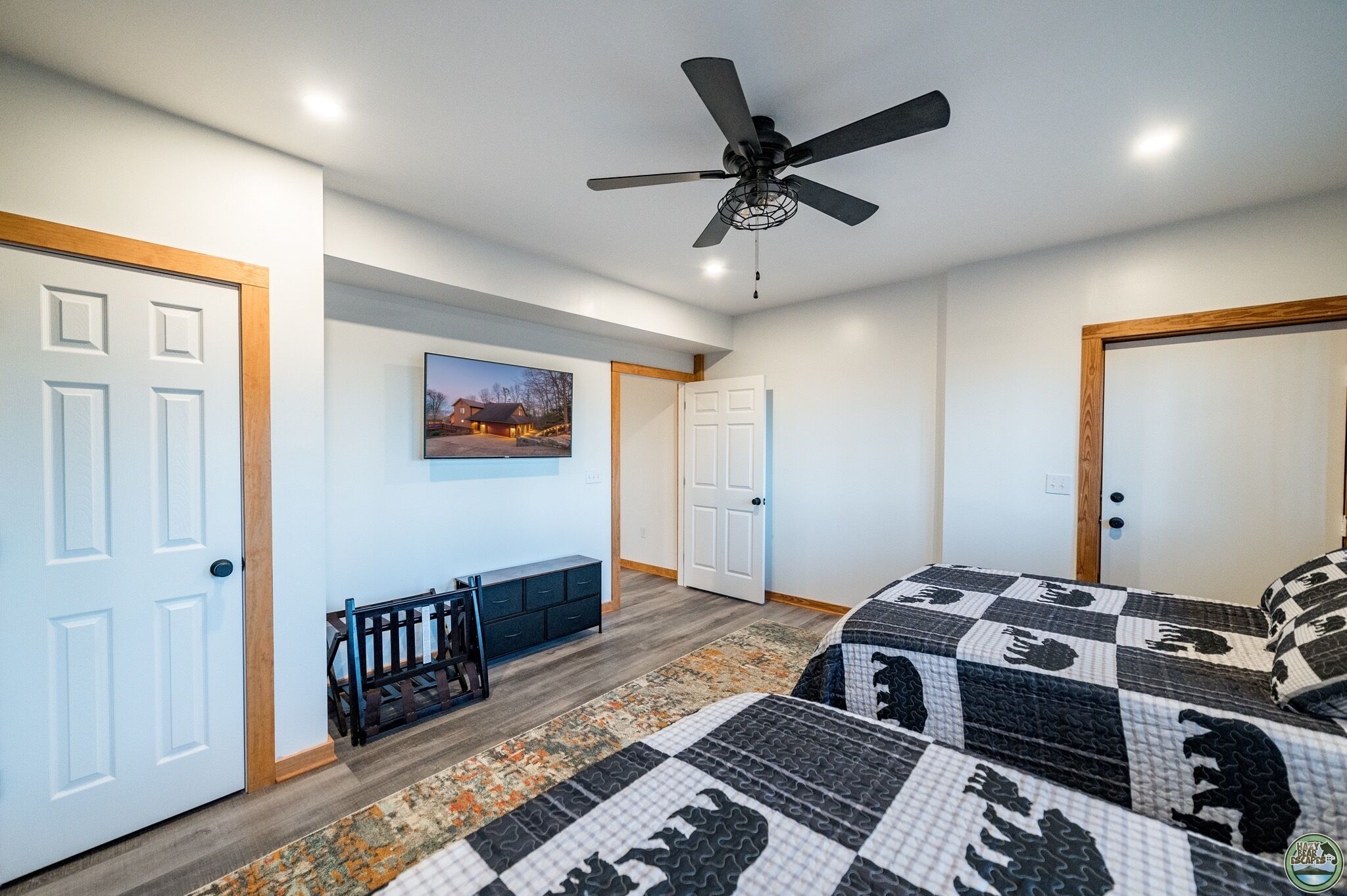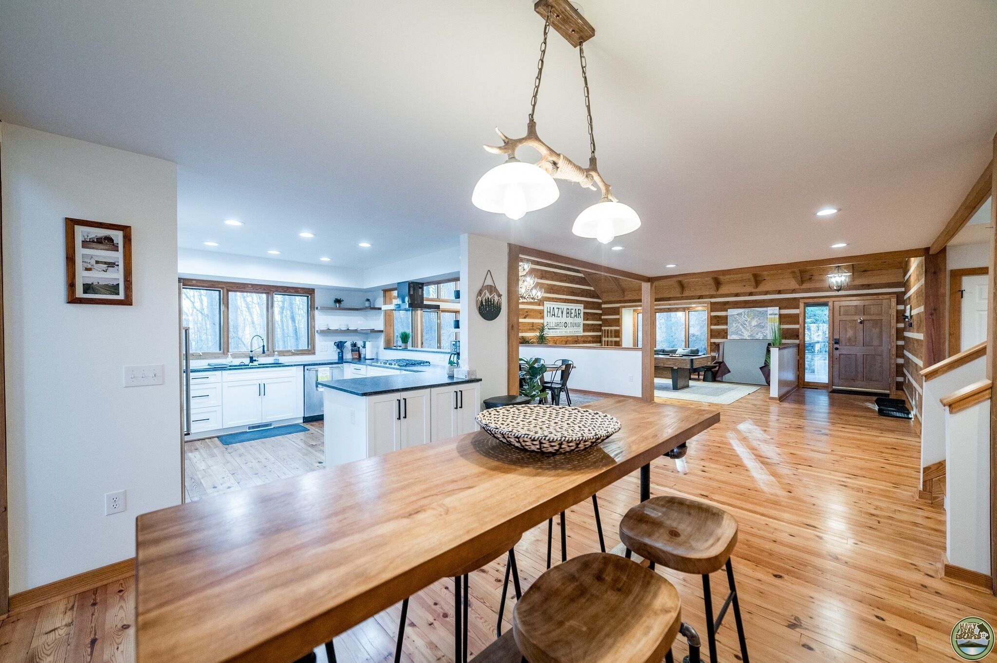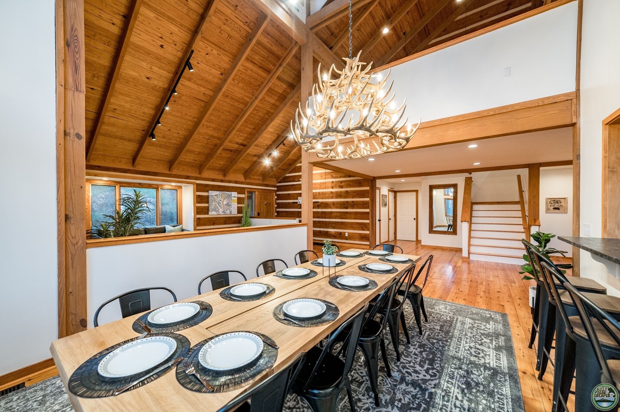 🎓JMU Grad 🐻 Natl Park🎥Theater 🥵Barrel Sauna🛁HotTub 🎱Billiards🏓GameRoom🔥Fireplace 🏡Completely renovated 5500 sqft custom cabin📽️Theater Room (120in screen, Martin Logan surround)🌄Seasonal Mountain View’s🏎️Short drive to all Massanutten Resort activities🛌5-Private bedrooms💤Sleeps 14 guests🔥Hot Tub🔥4-person Barrel Sauna🎱Billiards Room🏓Game Room- Air Hockey, Ping Pong🔥Electric Fireplace🛀🏻Soaking tub- master bath💦🎿⛳️Community Amenities💻GIGABIT+ Hi-speed WiFi🧑🍳Fully Equipped Kitchen🪑Huge Deck Areas🔢Keyless Entry📺Streaming TV's in every room‼️Min Renter Age 25🚫🐶No PetsCentrally located just a short drive to all Massanutten Four Season Resort activities, experience Hazy Bear Haven, a fully remodeled custom built rustic modern cabin getaway offering seasonal panoramic views and 365-days of beautiful sunrises coming up over the Shenandoah Valley ridge-line! ~Over 5500 sqft across 3-levels~ 5 private bedrooms~ 3.5 Bathrooms + Mudroom shower~ Audiophile 9.2.4 Surround Sound Home Theater Room ~ Custom built home perfect for multiple families, an extended family or large group of friends. You are only:~1mi to all Massanutten Resort activities mins~12mi to James Madison University and Historic Harrisonburg~12mi to Shenandoah National Park~27mi to World Famous Luray CavernsARRIVAL/PARKING-----------When pulling up to the property most guests will want to park up on the street around the flat-circle area as the driveway is steep and requires 4WD in all months. The street parking around the circle can accommodate approximately 4-vehicles. The bottom of the driveway can accommodate another 2 or 3 vehicles with careful arrangement. We have a 50A plug outside of the garage that can be used for electric vehicle charging. (BYO-charging cord/plug)~Steep Driveway requires 4WD (2-3 vehicles)~Easier Street Parking Available (4-vehicles) **Please note 4WD still needed to reach the cabin in icy/snowy conditions**~Outdoor EV Charging outlet (BYO-charger/plug)ENTRY-----------~String Light Lined Walkway Steps~Unique Asian Trees & Water Feature~Keyless Entry at Front and Side DoorsMAIN FLOOR----------------As you step through the front door into the living room, you’ll need a second to take in the open feeling created by the soaring windows and ceilings. The tongue and groove ceilings, and chinook wood walls give the home a rustic feeling while the new furnishings and decor bring in the perfect mix of modern comfort. The original wood floors in the home were preserved during renovation as they had been sourced from an old Mennonite barn that can be seen in the photos next to the kitchen. These were re-finished with a clear coat to bring them back to life, but the amazing history of the barn remains! ~Huge windows and soaring ceilings 20ft+~Newly refinished Original wood floors from local Mennonite barn~Rustic/modern furnishings and decorBILLIARDS ROOM (main floor)---------------------~Newly re-covered 8ft pool table~Plenty of pool table accessories~Plenty of seatingDINING (main floor)---------~Solid wood dining table (12-seats)~Kitchen bar (4-seats)~Breakfast Nook Table (6-seats)~Giant Antler Chandelier (50" wide, 42" tall, 27 light bulbs) KITCHEN (main floor)---------------------------We provide a generous supply of cookware, silverware and much more to accommodate your stay. Our little coffee bar has a Cuisinart Dual-function coffee maker that brews both K-Cups and drip coffee. We provide a starter pack of K-Cups for your stay!~New Cabinets - Dec 2022 ~New Chiseled Edge Leathered Granite Countertops - Dec 2022 ~New Custom floating shelves - Dec 2022~New Tiled Backsplash - Dec 2022~Wall Oven~Wall microwave oven~5-burner Gas range~Refrigerator~Dishwasher~Large Single Basin SinkBREAKFAST NOOK (main floor)-----------------------~Wood pub-style industrial breakfast table and stools~Seating for 6 guests~Beautiful Wood wall paneling/constructionLIVING ROOM/FIREPLACE ROOM (main floor)----------------------------------------~Soaring Slate Stone Electric Fireplace~Ample comfortable seating (large sectional, lounge chairs and poofs)~55" Vizio Flat Panel Smart TV (with Roku Device and Xfinity Live TV Streaming)PRIMARY BEDROOM (main floor)-----------------------~King-size bed~55" Vizio Smart TV~Walk-in ClosetPRIMARY BATHROOM (main floor)-----------------------------~Dual Vanities~Huge Soaking Tub~Huge Walk-In Shower with Rain-head Shower System~Private Toilet1/2 BATHROOM (main floor, shared)----------------------Next to the laundry room, guests will find the shared 1/2 bath, AKA the 'Necessary Room'. We have a toilet, single sink vanity & mirror in the Necessary Room. ~Single sink vanity~Mirror~ToiletLAUNDRY ROOM/MUD ROOM (main floor)---------------------~ Additional Coat Closet~Vintage mudroom shower stall~ Full-size LG Washer & Dryer~ Utility Sink~ Garage AccessGARAGE (main floor)-----------We have a large 2-car garage that we allow access to via inside the house. Since we cannot regularly update the garage keypad code, we ask that any guests wanting to use the garage, access from inside the house. We will not be held responsible for any damages occurring to guests vehicles if they choose to park in the garage. Guests will be responsible for damages caused to the property if improperly parking in the garage. ~2-car garage~access from inside home~use at your own riskHOT TUB (main floor - outdoor deck)__________~Circle hot tub seating up to 6 guests~Privacy decking and string lights for mood and ambiance~Easiest access via the side door of the homeOUTDOOR DECK (main floor - outdoor deck)--------------------------Passing by the hot tub as you round the corner of the deck there is a large unscreened deck area with an outdoor table and seating area. The outdoor table seats up to 4 guests, with additional comfortable seating offered in both the unscreened and screen patio areas. !!Please note: Our home is located in a wooded ar