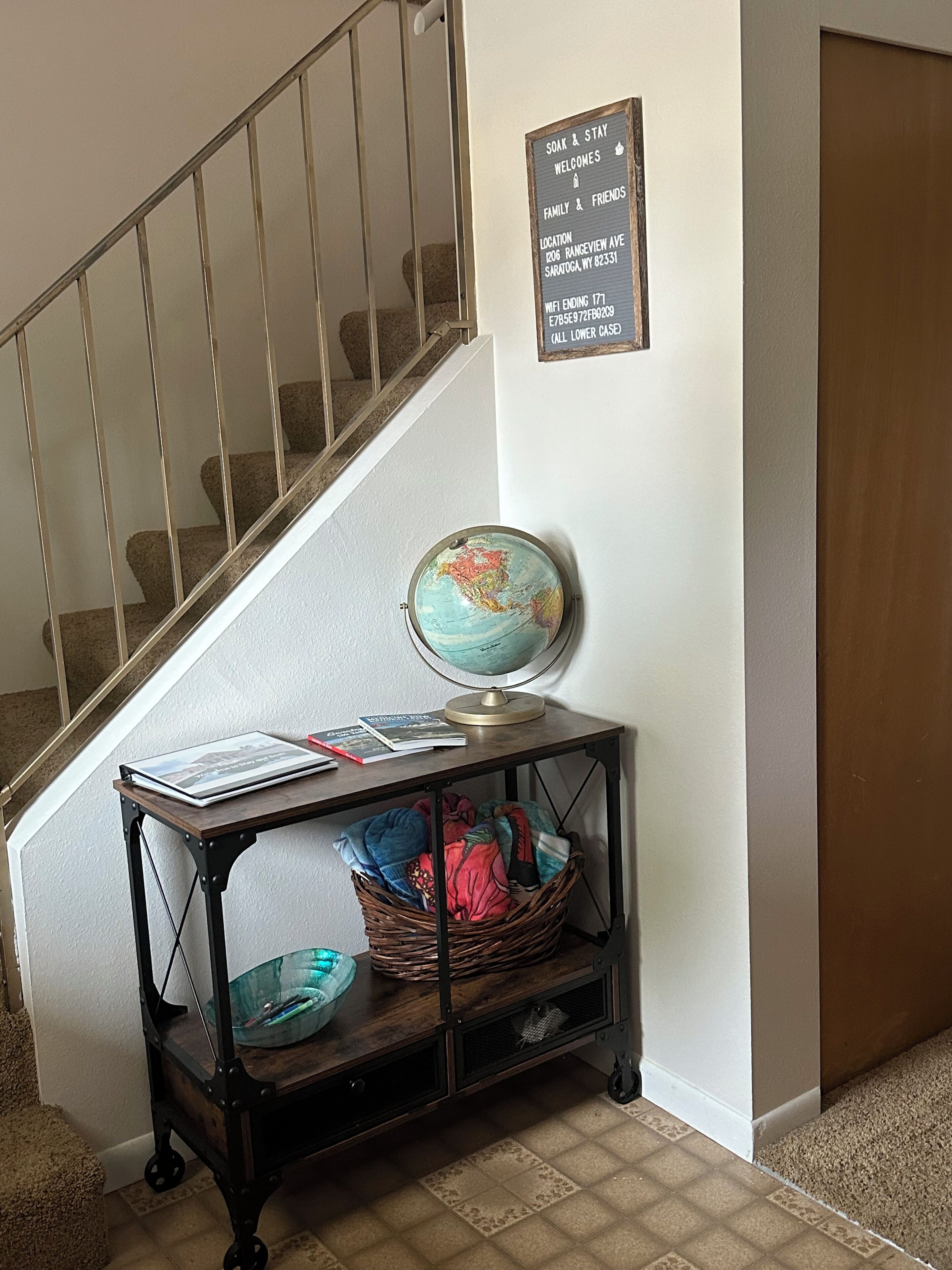So much more than expected! Consider this charming house your home away from home while you visit Saratoga. With 3 cozy bedrooms including a queen bed, full bed, bunk bed, and king bed, guests will have plenty of space to relax. The 2 bathrooms are equipped with a shower, bidet, and a hairdryer for added convenience. Plus, there's an additional living room with a twin bed for extra sleeping space. Enjoy all that Saratoga has to offer when you stay at our place.Come Soak & Stay is your home away from home! Located within walking distance to hobo hot springs and conveniently located to all town amenities. This location is great for all. There is an abundant amount of parking making it ideal to bring your toys. There is a playground & free museum just blocks away. After a day of hiking, shopping, snowmobiling, fishing, enjoying Medicine Bow (30 mins away) etc. come back & enjoy a complete kitchen to make everyone a great meal to enjoy around the table.