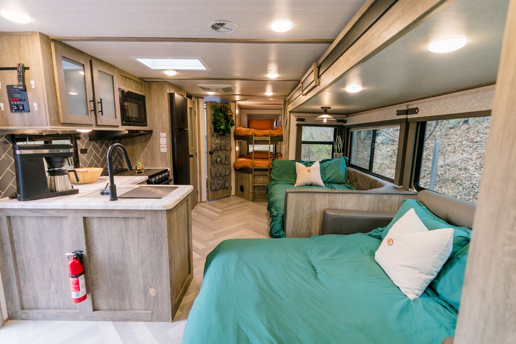 MTB Paradise - Back 40 Access - Glamp Minutes from Bentonville Square Location, Location, Location! Snowbird Place is ready to be your next vacation destination. Steps away (2 to be exact) from “Snowbird”, a Back 40 feeder trail. This property has direct access to more than 480 miles of professionally designed Mountain Bike Trails. Ranging from highly technical to family-friendly multi-use, this property boasts access to fun for the entire family. The 2021 Salem Hemisphere sleeps 6 comfortably, and 8 if you double up and get cozy 😊. Spend the day on the trails and the night relaxing by the chiminea, or inside the cab next to the fireplace watching movies. All the comforts of home. The Kitchen with full-size sink, refrigerator, dining area, TV and Fireplace will not disappoint. The main suite hosts a Queen size memory foam mattress with privacy door. Two exterior access points provide easy access to the main cabin or the restroom. An outdoor refrigerator, gas grill, and Bluetooth speakers make outdoor entertainment a blast. If Mountain Biking isn’t your thing, don’t worry, this property is located only 7 miles to the Bentonville Square, your one stop destination for cultural and culinary attractions. Spend time exploring our foot-friendly trails, beautiful parks, and world-class art and history museums.Still not enough? Go duck, deer, or wild turkey hunting, shopping for antiques, fishing for trout (or big bass), digging for diamonds or crystals – Arkansas activities offer something for everyone. See you soon!