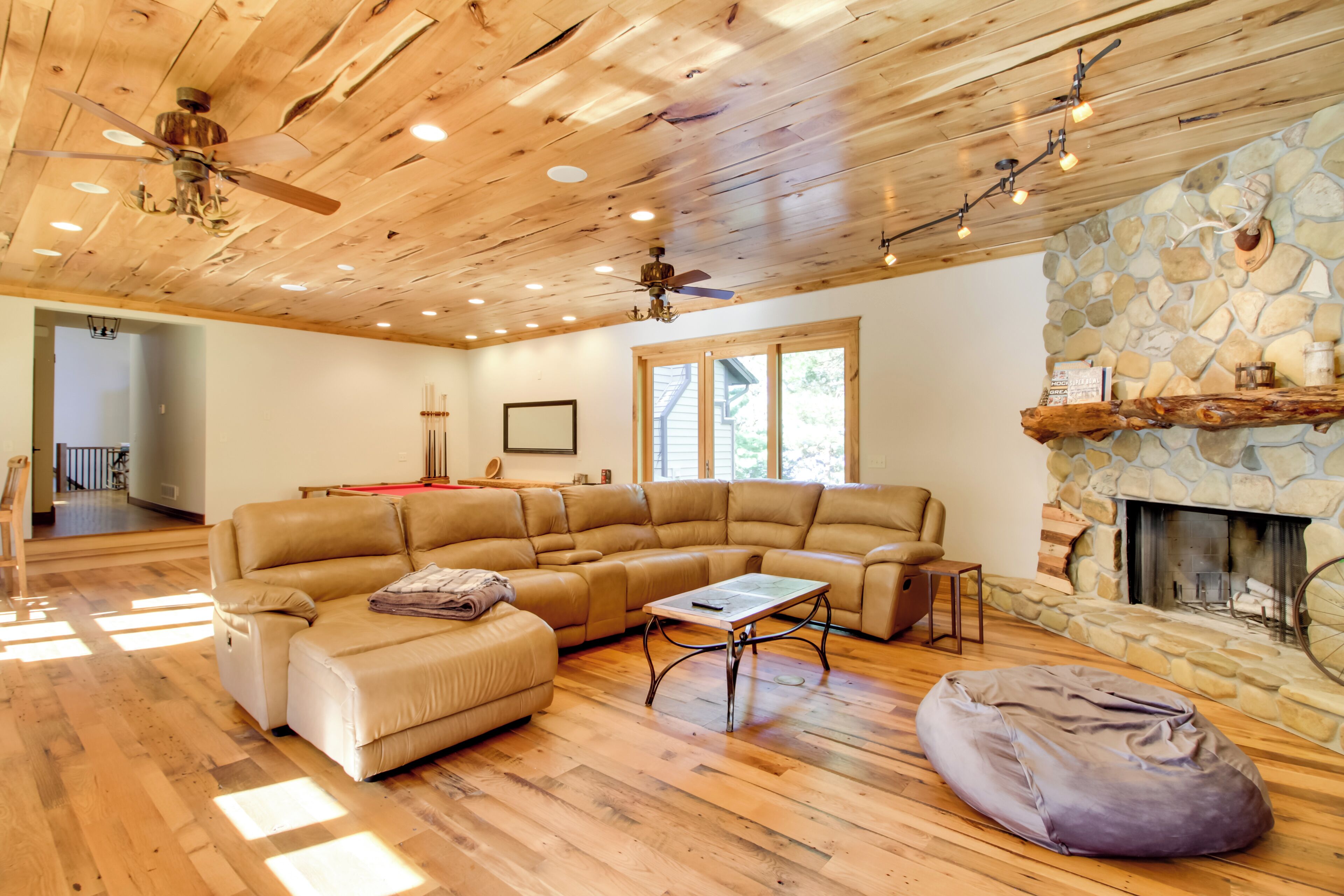 Sprawling Minnesota Home w/ On-Site Lake Access Get the quintessential Minnesota experience when you book this family-friendly home in Lake Shore. Located just a stone's throw from Upper Gull Lake, this 6-bedroom, 5.5-bathroom vacation rental makes a perfect place to gather the group for a summer getaway. Spend sunny days on the boat, fish from the on-site dock, or stroll through one of many charming waterfront towns. After dinner, retreat to the theater room for a private screening of your favorite movies on the big screen!-- THE PROPERTY --Theater Room | 6,758 Sq Ft | Private Boat DockBedroom 1: King Bed, Full Bed | Bedroom 2: King Bed | Bedroom 3: King Bed | Bedroom 4: Full Bed | Bedroom 5: Twin/Full Bunk Bed | Bedroom 6: Twin/Double Twin Bunk Bed, Twin/Full Bunk Bed, Twin Bunk Bed | Loft: Twin/Full Bunk BedOUTDOOR LIVING: Private patio, outdoor dining area, screened patio w/ table & outdoor fireplace, gas grill, boat dock (2 spaces available), hot tub, bikes, paddleboards, life jackets, wood-burning fire pitINDOOR LIVING: Smart TVs, multiple living areas, group-friendly dining table, wood-burning fireplace (wood not provided), game room w/ pool table & shuffleboard, theater room w/ projector screen & recliner seats, board games, sunroom w/ treadmillKITCHEN: Cooking basics, drip & Keurig coffee maker, dishwasher, stove/oven, refrigerator, microwave, air fryer, Crockpot, blender, ice maker, toaster, dishware & flatwareGENERAL: Free WiFi, keyless entry, complimentary toiletries, linens & towels, central heating & air conditioning, washer & dryer, laundry detergent, iron/board, hair dryer, trash bags & paper towelsACCESSIBILITY: Steps required for entry, 3-story homePARKING: Garage (1 vehicle), driveway (3 vehicles), grass parking (6 vehicles)-- THE LOCATION --LAND OF 10,000 LAKES: Upper Gull Lake (on-site), Bass Lake (2 miles), Roy Lake (5 miles), Lake Margaret (5 miles), Gull Lake (8 miles), North Long Lake (10 miles), Pelican Lake Public Beach (11 miles)ATTRACTIONS: Fritz Loven Park (3 miles), Three Bear Waterpark (14 miles), Safari North Wildlife Park (22 miles), Paul Bunyan Land Amusement Park & Campground (27 miles)GOLF: The Preserve at Grand View Lodge (5 miles), The Pines Golf Course at Grand View Lodge (6 miles), Whitebirch Clubhouse (10 miles), Whitefish Golf Club (13 miles), Crosswoods Golf Course (21 miles)HIKING: Fritz Loven Park (3 miles), Paul Bunyan Trail Access (4 miles), Cullen Woods Trail (4 miles), Trailside Park Pequot Lakes (6 miles), Veterans Hiking Trail (10 miles)AIRPORT: Brainerd Lakes Regional Airport (23 miles), Minneapolis–Saint Paul International Airport (158 miles)-- REST EASY WITH US --Evolve makes it easy to find and book properties you’ll never want to leave. You can relax knowing that our properties will always be ready for you and that we’ll answer the phone 24/7. Even better, if anything is off about your stay, we’ll make it right. You can count on our homes and our people to make you feel welcome — because we know what vacation means to you.-- POLICIES --- No smoking- No pets allowed- No events, parties, or large gatherings- Must be at least 25 years old to book- Additional fees and taxes may apply- Photo ID may be required upon check-in- NOTE: This 3-story home requires stairs to access