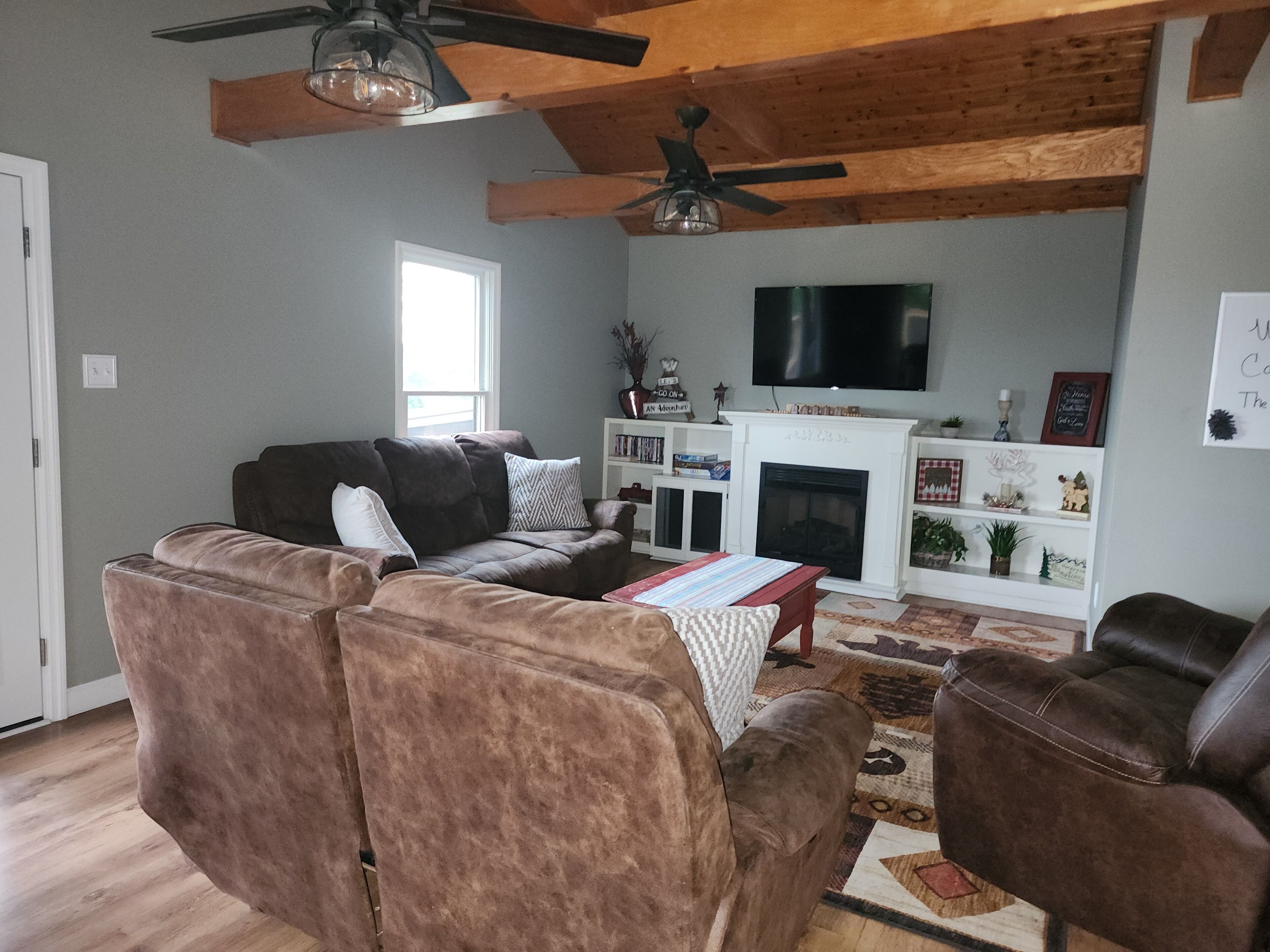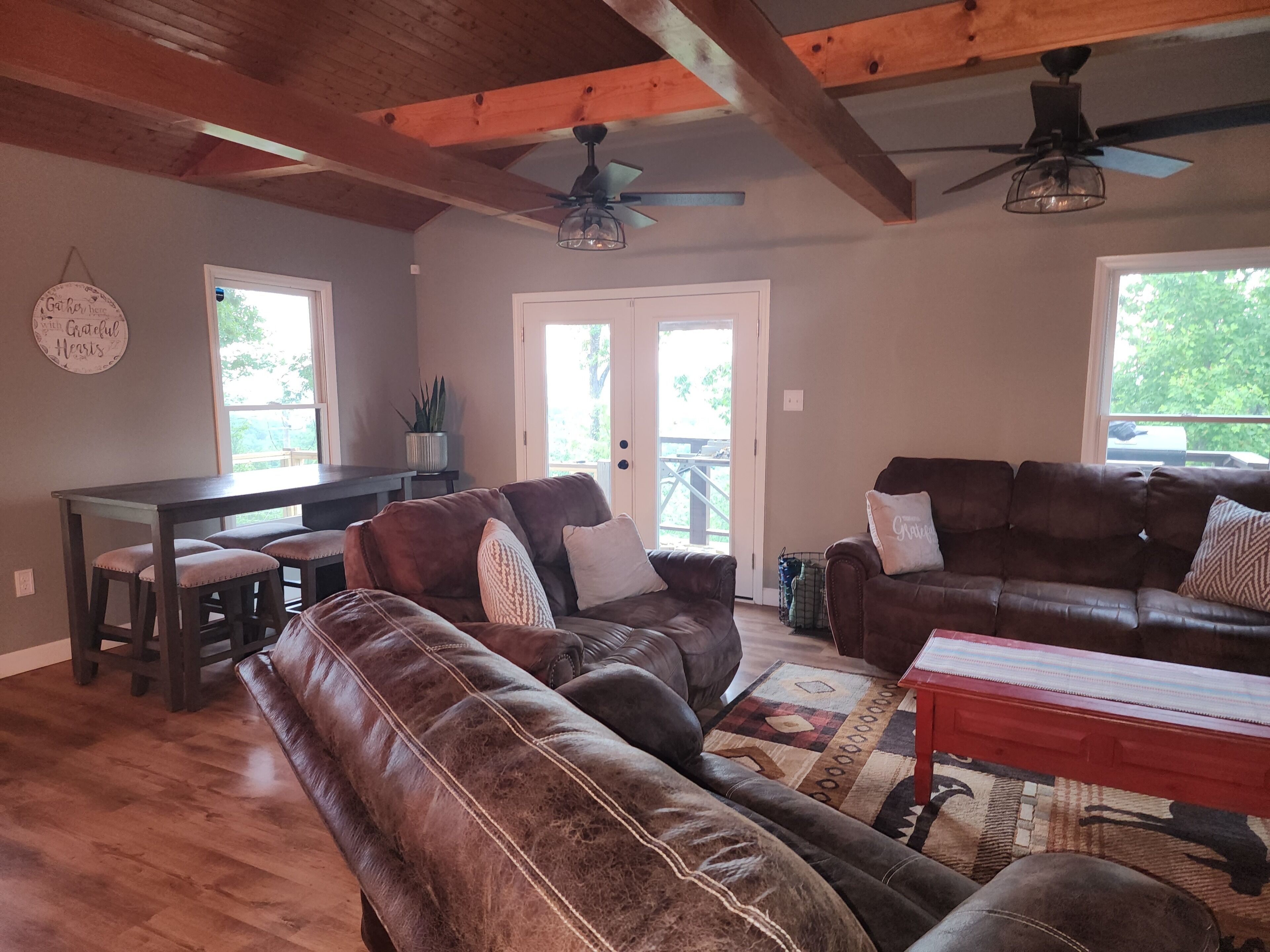 Private cozy home on 100 acres minutes to Royal Blue & Tackett Creek OHV trails UTV Enthusiasts Paradise! Escape to the mountains and stay in this 4 bedroom 2 bath home nestled on 100 beautiful acres, offering the ultimate retreat for trail riding enthusiasts. The property is completely private with breathtaking panoramic views of the Pine and Rarity Mountain Chains and even has it's own pond adding to it's country-side beauty. This home comfortably accommodates up to 14 guests, making it perfect for group getaways. It is centrally located between Royal Blue and Tackett Creek riding trails allowing access within minutes. Unwind in the tranquility of nature, explore scenic trails and create unforgettable memories surrounded by the beauty of the Tennessee Mountains. The large cozy kitchen is fully equipped with all your cooking needs, including full size fridge, dishwasher, microwave , and stove. It has a beautiful island with seating and is adjacent to the dining area that has a custom table for family dinners. There is also a table off the living room that allows seating for 4 more guests. The living room is open concept off of the kitchen with beautiful beamed ceilings and is surrounded by windows allowing for light to fill the home and offer beautiful views while talking about your adventurous day or playing board games with the kids. The living room offers a couch, loveseat and 2 person recliner for watching movies or your favorite shows on the TV provided. Board and card games are provided for your enjoyment. It also allows access out onto the deck for a full view of the property and mountain scenery.The home meets ADA standards that includes an inside elevator for use for those that require it. If you have someone in your party that will require this need, advance notice will be required. Access to the elevator will not be available otherwise for security purposes. Please be considerate of the privilege to use this amenity so others in need can use for future stays. Sleeping arrangements:Bedroom 1: King size bed with TV includedBedroom 2: 2 Queen size beds with TV and fully stocked bathroom.Bedroom 3: Off of Kitchen, perfect for kids: has 1 queen bed, with a set of twin bunks.Bedroom 4: Downstairs, has 2 Queen beds and windows from ceiling to floor. It also has a full size laundry room, another full size hallway bath, and a full length deck for socializing with family and friends. Outside on the deck is a propane grill for your use with fully equipped utensils. Enjoy cooking out on the grill while taking in the views in the outdoor furniture provided. This house makes the ideal space for entertaining, you will not be disappointedThe garage is not for parking but does have a pool table for your enjoyment. Challenge some of your buddies to a friendly game to wind down the evening. There is an outside area firepit for roasting smores and just hanging out while the kids catch lightning bugs or play a fun game of tag. Star gazing is limitless in the evenings and the fog that rolls in from the mountains is a priceless view. Take in the peace and tranquility of the views that the sunset provides. They are definitely a photo worthy moment. If you are up early enough, which I suggest at least one day, you will get to see the sun rise over top the mountain from the full length deck. It is absolutely breathtaking. Access: You must have 4 wheel drive to access the driveway to this home since it is nestled a little over a mile from street access and does go up a couple hills. Low profile cars are not recommended. It has plenty of parking for trucks and trailers and offers a turn around space as well as an overflow parking area. WIFI for this location is currently available via a Hotspot box, which is provided. Fiber connection is coming soon!Once parked, you can drive your SxS and ATVS directly from the house to the trails, making sure you follow all local and state laws for roadway riding. The home is about 30 minutes from the nearest town for grocery shopping and other essential needs. Highly recommend bringing those items in with you as to not miss a moment of relaxing and exploring while you are here. If your looking to disconnect from the busy life and unwind this is the perfect ideal place for you. We look forward to being part of your adventure and cant wait to see you soon.Feel free to message with any additional questions or requests.