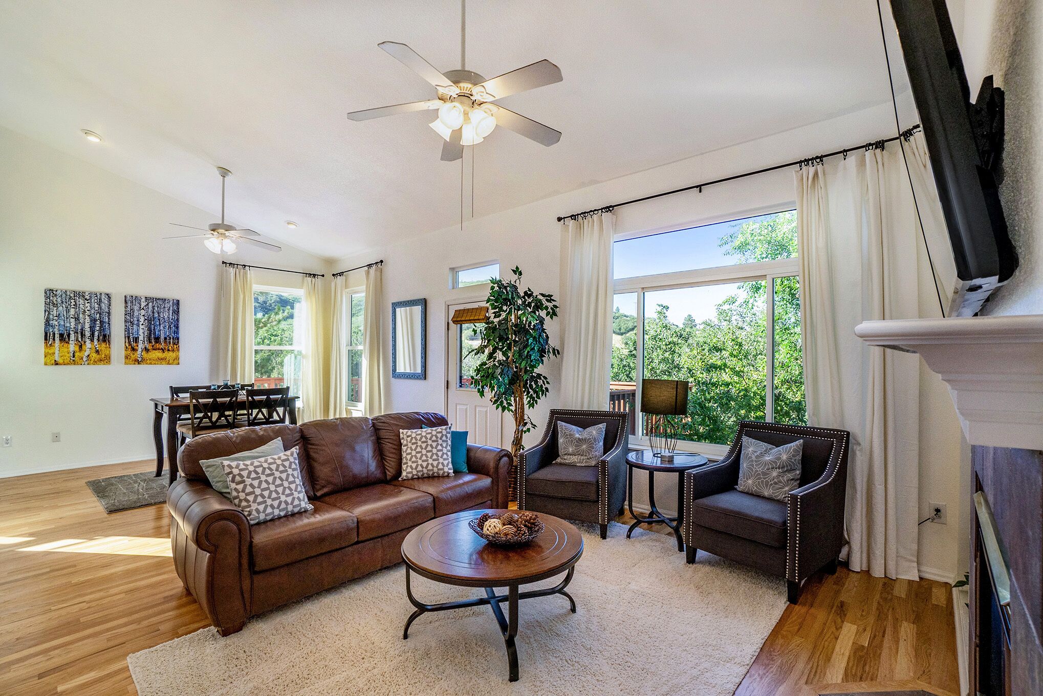 Beautifully Undated Home Under the "Rock" and 2 Minutes to Downtown Over 1,700 sqft2 Bedrooms2 Full BathroomsFamily Room with Sleeper SofaLarge Fully Equipped Updated Kitchen with Quartz CountertopsDining RoomEating Space in KitchenWood Floors throughoutLaundry Room with W/DParking in the Attached GarageLarge Deck with Mountain ViewsJust 2-3 Minutes from Downtown Castle RockJust 4 Minutes from I-25Large Yard