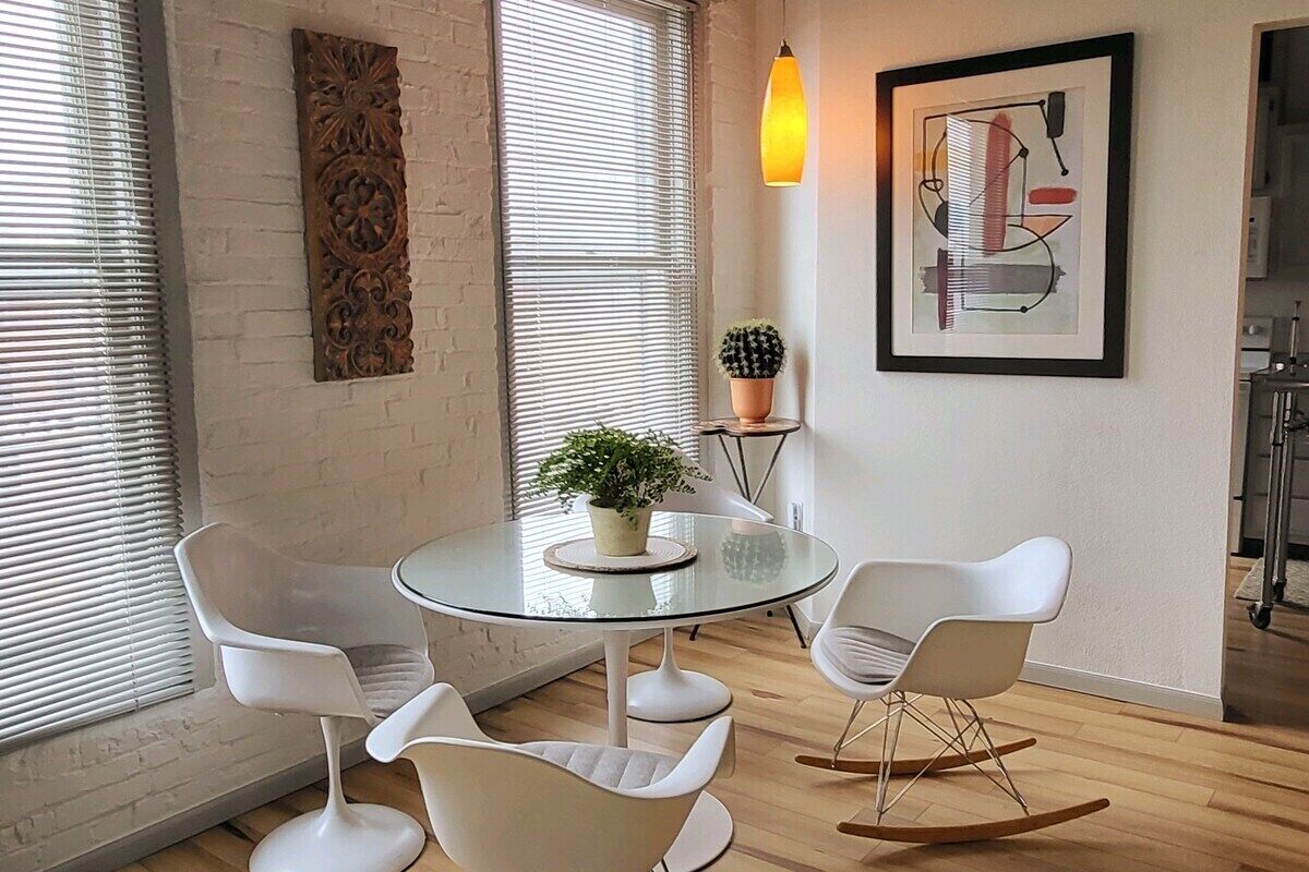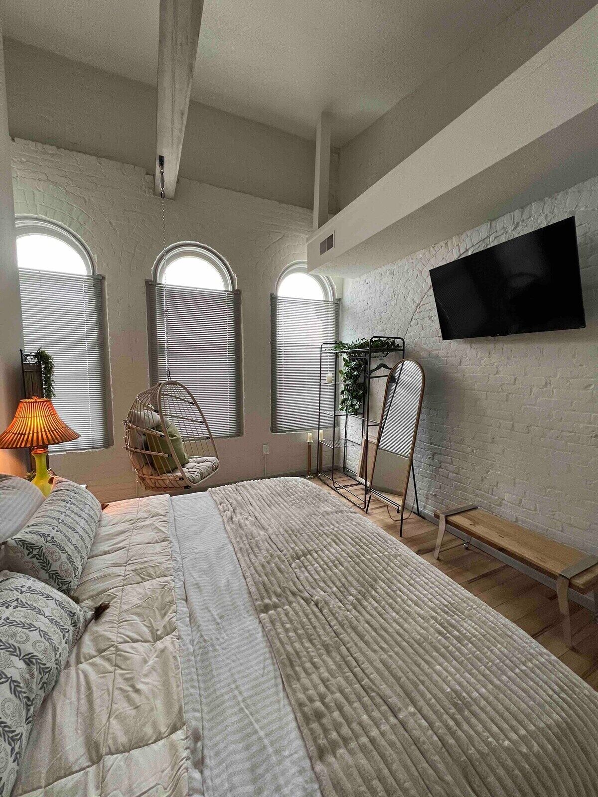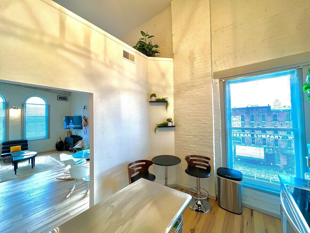 Skyline View Penthouse Apartment This unique place has a style all its own. Downtown Mansfield Carrousel District Loft. Newly designed full 2 bedroom apartment with all the amenities. mid-century mod vibe, quiet and comfortable. Easy waking distance to area attractions.The spaceTake easy no stairs elevator trip to the top floor to find your chic 2 bedroom flat. Attractive, quiet and comfortable space awaits.Guest accessYou will have full exclusive access to the entire apartment along with common areas as well as use of laundry facilities.Other things to noteKitchen is basically equipped with coffee/tea services, bottled water chiller/heater and cookware.