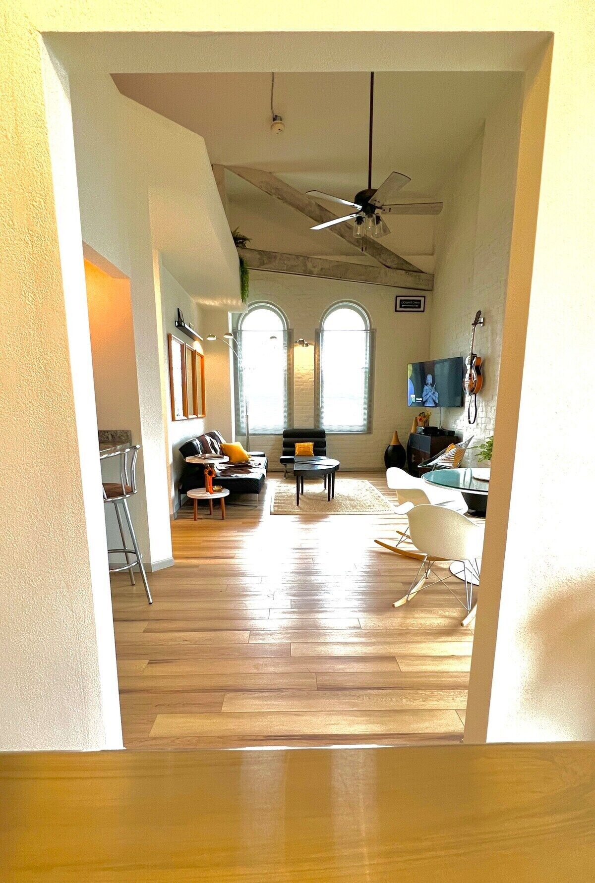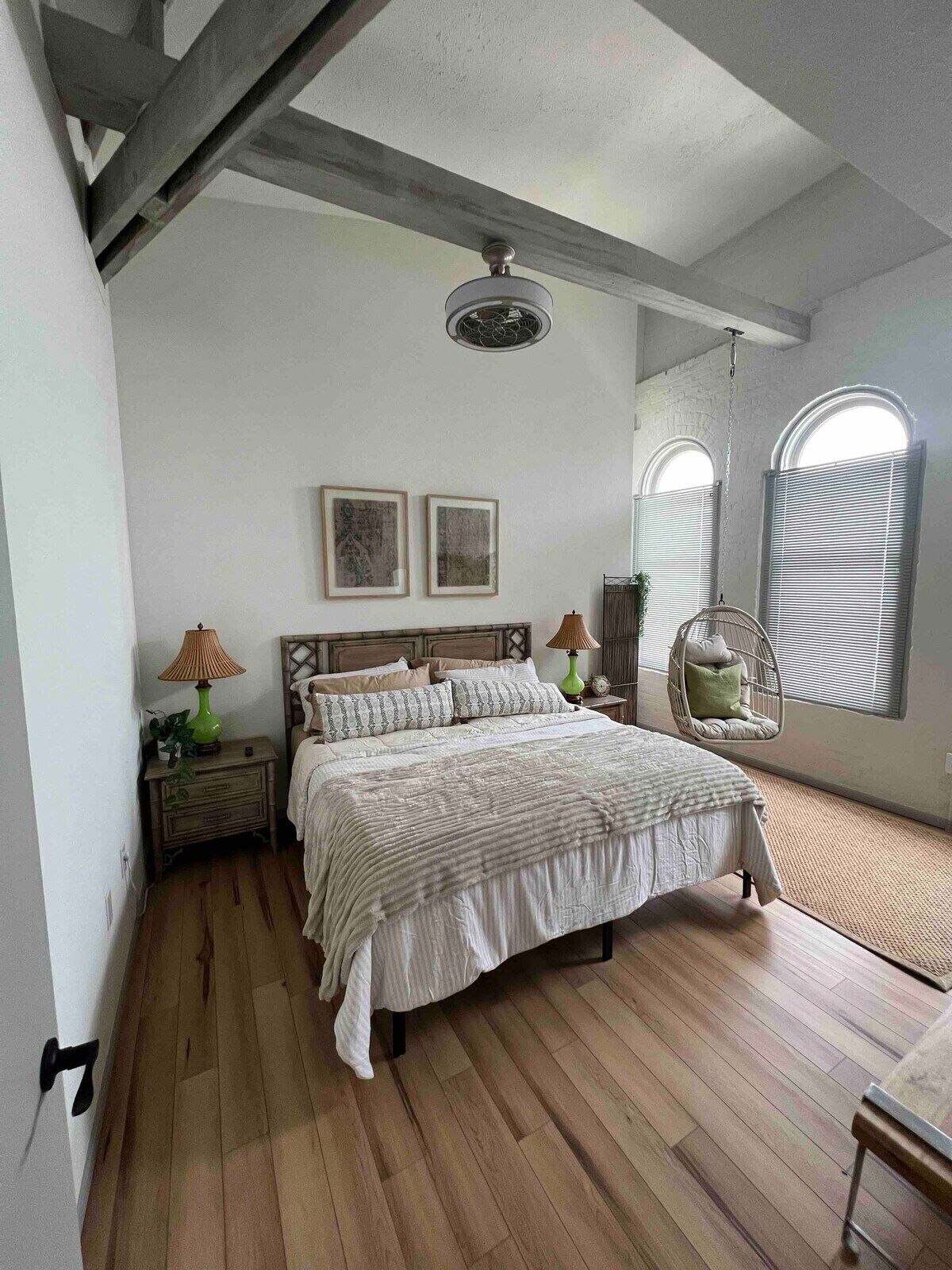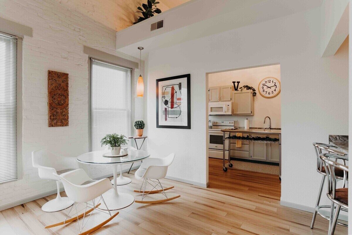 Skyline View Penthouse Apartment This unique place has a style all its own. Downtown Mansfield Carrousel District Loft. Newly designed full 2 bedroom apartment with all the amenities. mid-century mod vibe, quiet and comfortable. Easy waking distance to area attractions.The spaceTake easy no stairs elevator trip to the top floor to find your chic 2 bedroom flat. Attractive, quiet and comfortable space awaits.Guest accessYou will have full exclusive access to the entire apartment along with common areas as well as use of laundry facilities.Other things to noteKitchen is basically equipped with coffee/tea services, bottled water chiller/heater and cookware.
