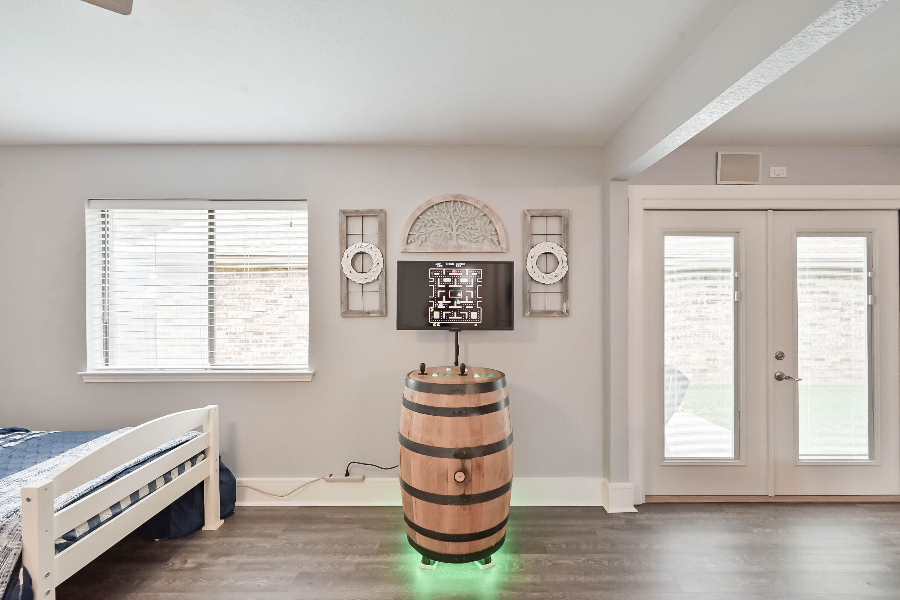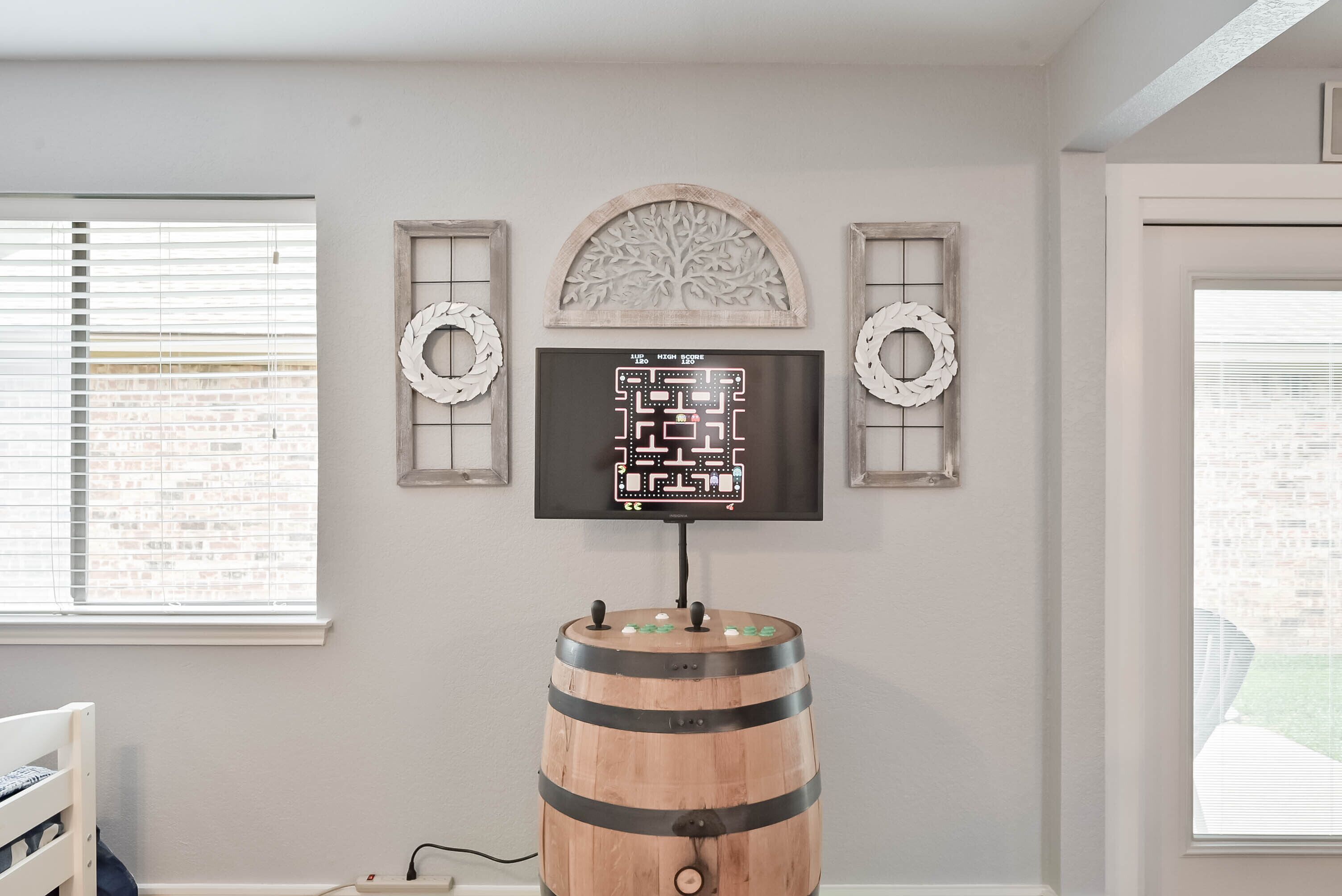 65” TV, Arcade, Fast WIFI, Fire Pit, Long Term Stays Available Appleton by Red Glider GetawaysThis farmhouse style home is tucked away in a small neighborhood and is perfect for a quiet family vacation. It boasts 3 new flat screen TVs, Whiskey Barrell arcade, fully stocked coffee bar, stocked kitchen, high speed Wi-Fi, Fire Pit and a grill with a private courtyard. Sleeps 6 in beds (king bed in master, queen in spare bedroom and 2 twins in the extra room)..2.5 mile drive to Fieldhouse3.9 mile drive to Big League Dreams12.0 mile drive to Cowboys StadiumWhy should you choose Appleton ?1. We provide a fully stocked coffee bar. (Coffee, syrups, grinder, frother, etc..)2. The home has been updated (Kitchen, bathrooms, furniture, etc.) and professionally decorated. 3. Enjoy a fire in our outdoor fire pit on those cool nights.4. There is a full size arcade game for you to enjoy!5. We provide excellent customer service and the reviews show it!** NEW Listing **KEY FEATURES:☀ 2 Comfortable bedrooms; 1 king, 1 queen, and 2 twins (extra room)☀ 2 Spacious bathrooms: 1 large walk-in shower & separate jetted jacuzzi bath, 1 shower/bathtub combo☀ Fully stocked coffee bar (K cups, Drip coffee, Creamers/Sugars/Syrups, French Press, Grinder, Water Filter Pitcher, Frother)☀ Fully equipped kitchen with a full dining area ☀ Cozy and warm living room with leather couches☀ Whiskey barrel arcade game with 600+ games (Pacman, Galaga, Super Mario Brothers, Contra, etc.)☀ 3 Large smart TVs (65" in living room) powered by Roku, Cable TV in living room ☀ Grill with private lighted courtyard☀ Incredibly fast Wi-Fi (300+ Mbps)☀ Wood burning Fire Pit ☀ 2 Car garage☀ Decorated for ChristmasHere Are A Few Kind Words From Our Past Guests:“This house was perfect for our stay. Great location, clean, quiet, and the coffee bar is a huge plus! We would definitely stay here again..” - Sydney“After staying in local hotels during several visits, it was incredibly gratifying to find Joel’s Airbnb. Truly a home away from home. Oh! And the coffee bar was exceptional! Thank you.” - Kathi“This is a great house and perfect for families traveling to the Mansfield area. Very clean, comfortable beds, and well stocked kitchen. The coffee bar was an added perk and our kids LOVED playing the retro arcade games!! Check in was a breeze and Joel communicated well with us. We will definitely stay again when in the area.” - Amanda“This was a great rental. The house looks great, modern appliances TV's in every room. Easy wifi access by just scanning a QR code on the wall.. We had family tournaments on the arcade game and used the grill with ease as well. Joel was a great host and everything went extremely smoothly.” - Mike☆☆ BEDROOMS ☆☆Comfort is second nature to this updated home with two tastefully furnished bedrooms. As each bedroom has a full bathroom and personal smart TV, you can enjoy unrivaled privacy. The first bedroom boasts a king-size bed. The second bedroom is located in the back of the home and has a queen-size bed. There are two additional twin beds in the bonus room.☆☆ BATHROOMS ☆☆Two spa-like full bathrooms are appointed to the bedrooms for your privacy and convenience. The first bathroom boasts a large walk-in shower, as well as a separate jetted spa bath. The second bathroom shares the same hotel-like feel, with a combination bath and shower, as well as a laundry facility you are free to use. Both bathrooms are stocked with towels, hair dryers and hand soap. ☆☆ KITCHEN ☆☆The house has an open floor plan with a fully equipped kitchen that has all the tools you need to prepare delicious home-cooked meals. This includes coffee makers, a crock pot, blender, oven, cooktop, microwave, dishwasher, refrigerator, pots/pans, strainer, dishes, glasses, utensils and everything you need to make your next meal. Reheat leftovers on lazy days, brew fresh coffee as often as you need it, and let nature envelop your senses as you admire the forest surrounding this extraordinary home through the many large windows. Ample seating is available in the dining area that looks out to the lighted courtyard.☆☆ LIVING ROOM ☆☆The living room is open to the kitchen / dining room and is the perfect place to kick back and relax with the whole family. The comfortable sofas and Smart Roku TV make movie nights extra cozy. Watch your favorite TV shows on cable, or just log in to your streaming accounts. Snuggle up with a good book and enjoy the peace and quiet on our leather couches.☆☆ GAME AREA ☆☆When you're not shopping or enjoying your activities, feel free to enjoy our brand new Whiskey Barrel arcade. We brought this machine down from Gatlinburg, TN and it is a favorite of all. It boasts 600+ games and up to 2 people can play at the same time. We also have several board games available for you to use as well.☆☆ OUTSIDE SPACE ☆☆This home offers two patio areas. The courtyard has a grill and patio furniture for you to enjoy. Night owls can come out here with a glass of wine or enjoy the peacefulness. Yellow string lights hang over the deck and provide a warm glow.★☆ Book Today & Let Us Take Care Of You In Mansfield! ☆★Guest Access:Guests of Appleton have access to the entire home and all other amenities inside the 1,600 sq ft, well-equipped house. There are three smart TVs, all of which are enabled with Roku, allowing you to stream your favorite shows when you log in. The living room has access to upgraded cable TV. The Wi-Fi is incredibly fast.You will receive a door code 48hrs prior to arrival for self-check-in. Ample parking space is available in front of the home. You can also park 2 cars in the garage.