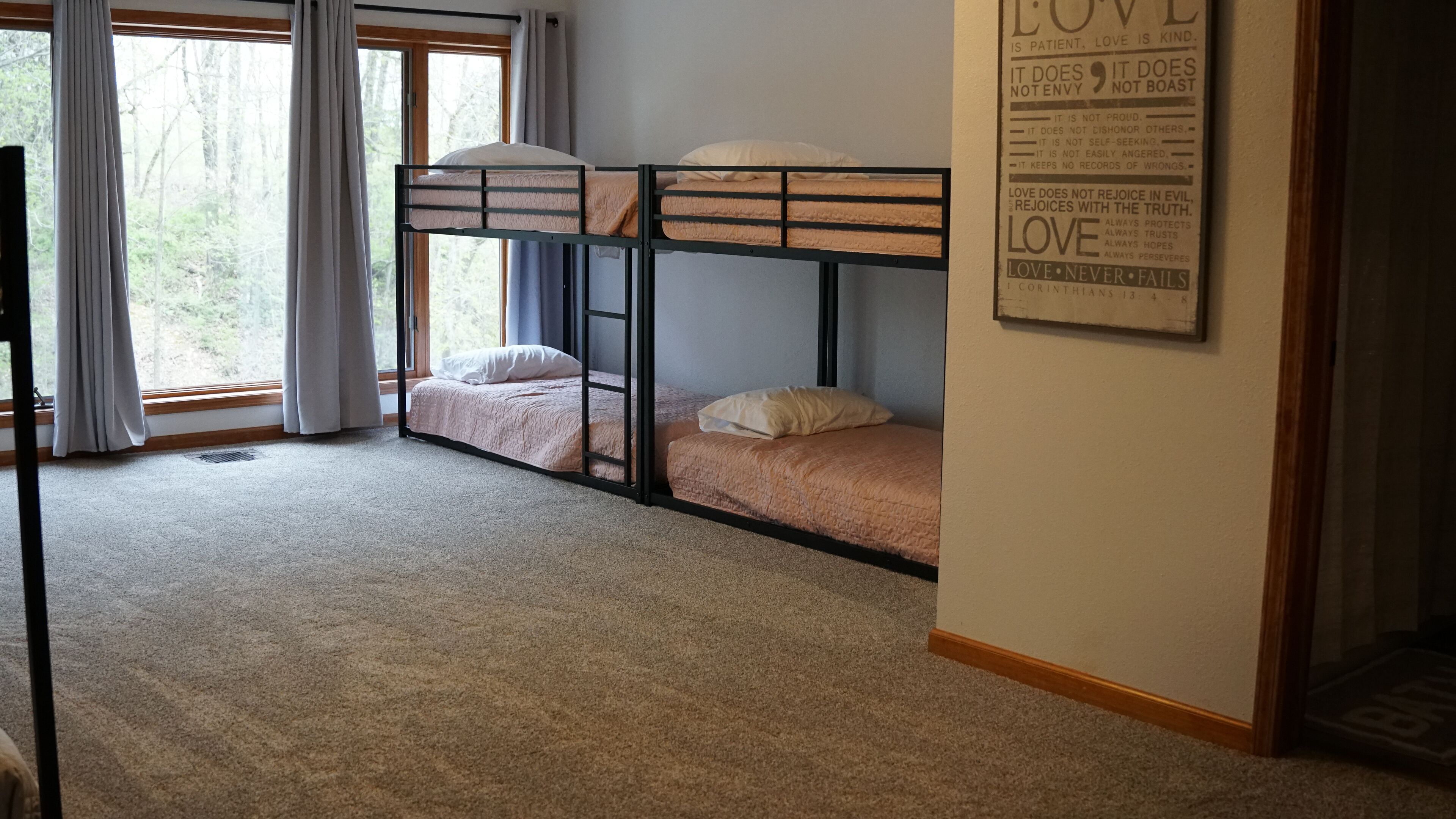 The Bunkhouse- fire pit, waterfall, games, private retreat for the family! At the Bunkhouse at Circle O Ranch the whole family can enjoy the peaceful atmosphere and beautiful scenery of small town Missouri. Spacious bedrooms, a recreation room, large televisions, a fire pit, swing set, waterfall, big yard, grilling area, and animals are just a few of the many perks of our home. Our secluded property is perfect for relaxing and making lasting memories with family and friends. Take a short drive to the famous Laura Ingalls Wilder Historic Home and Museum, SMORR, local restaurants, or the Baker Creek Pioneer Village. Our property is a great place to take in nature, dip your feet in the creek, see the horses, play corn hole in the yard, or make smores around the fire pit. We also have a recreation room with board games, books, a Play Station 4, and a television. There is plenty of space to sleep comfortably and take in the beautiful scenery through our large windows. A full indoor kitchen, outdoor grilling area, and double dining tables are perfect for family meals and conversation. There is also plenty of parking space for trucks, trailers, etc. There is something for everyone to enjoy at Circle O Ranch.