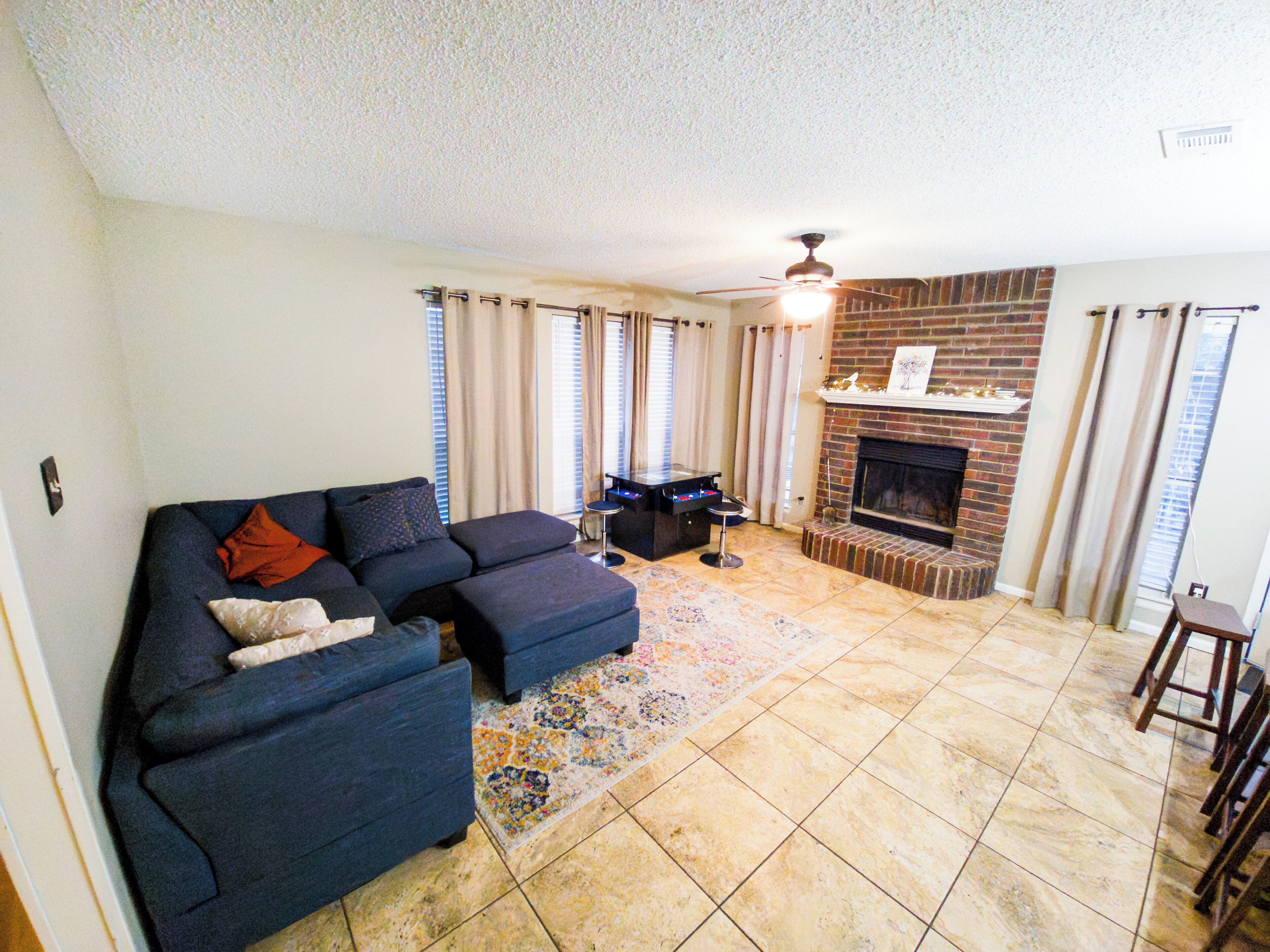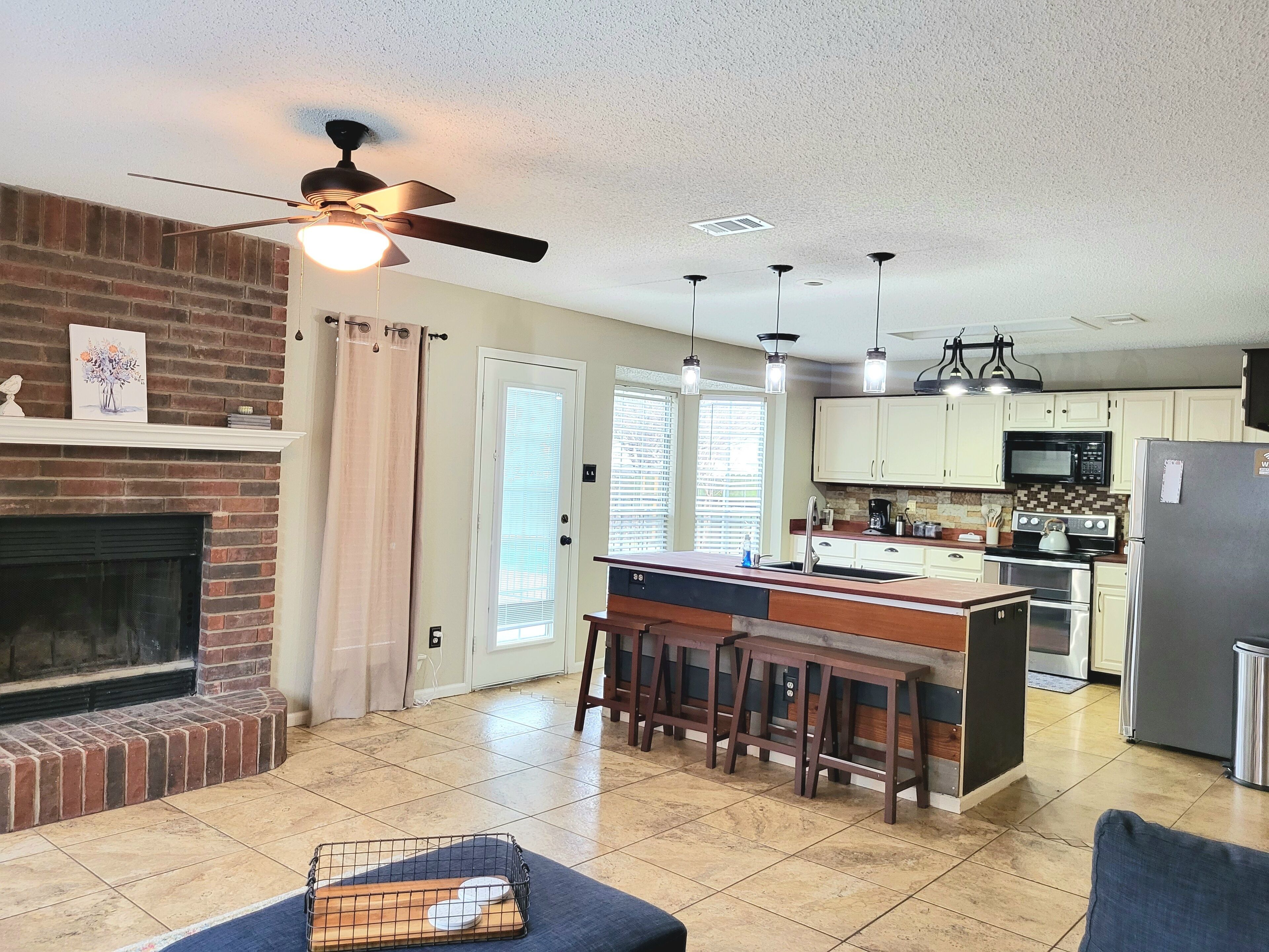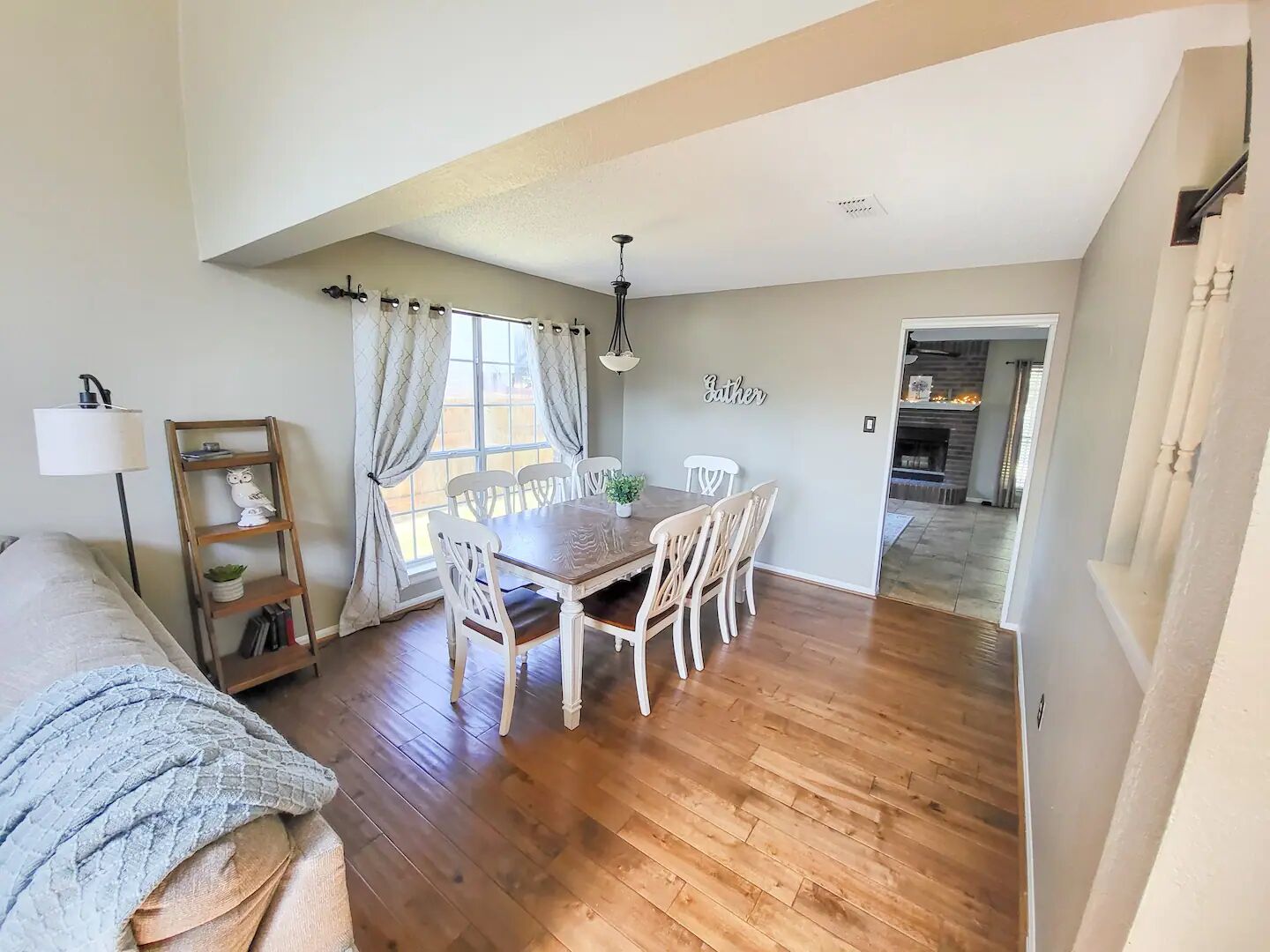 Charming family home with king bed - private pool - fast wifi - ARCADE Relax with the whole family at this peaceful property just outside Dallas/Ft Worth. This delightful home sleeps up to 8 and boasts comfy living spaces, a spacious kitchen, and a backyard pool. Mansfield offers the best of both worlds in being close to the big city, minutes from stores and dining, and yet maintaining a small town feel with friendly neighbors and easy to navigate streets. 35 minutes to DFW airport, 25 minutes to Six Flags, 40 minutes to downtown Dallas, 20 minutes to Midlothian and Waxahatchie.The spaceThe POOL! The pool is a salt water system and is surrounded by a security fence with a self locking gate. It is deepest in the middle at just under 6 ft. The pool is NOT HEATED and gets uncomfortably cold in the winter months. We do not recommend swimming if the temperature is below 70 degrees outside. PLEASE NOTE that there is a security camera by the back door that covers part of the patio and pool area. This is for liability reasons and checking up on our maintenance crews.The two player arcade has a huge assortment of games for you to enjoy.The livingroom was designed with comfort in mind with a cozy sectional and a large smart TV with Netflix provided. The diningroom has seating for 8. The kitchen is stocked with all the basic amenities and there is bar seating at the island. Off the kitchen is a nice sitting area with a wood burning fireplace and couch. Also on the main floor is a small laundry room and a half bath.All the bedrooms are on the second floor, as well as an office and the main bathroom. The primary bedroom has a king bed and a large onsuite bathroom with a large tub as well as a shower. The two secondary bedrooms have queen beds. The office has a desk and a day bed with a trundle. The office is open to the livingroom below.Other things to noteWe have a pool service and a mowing service that access the yard once a week.