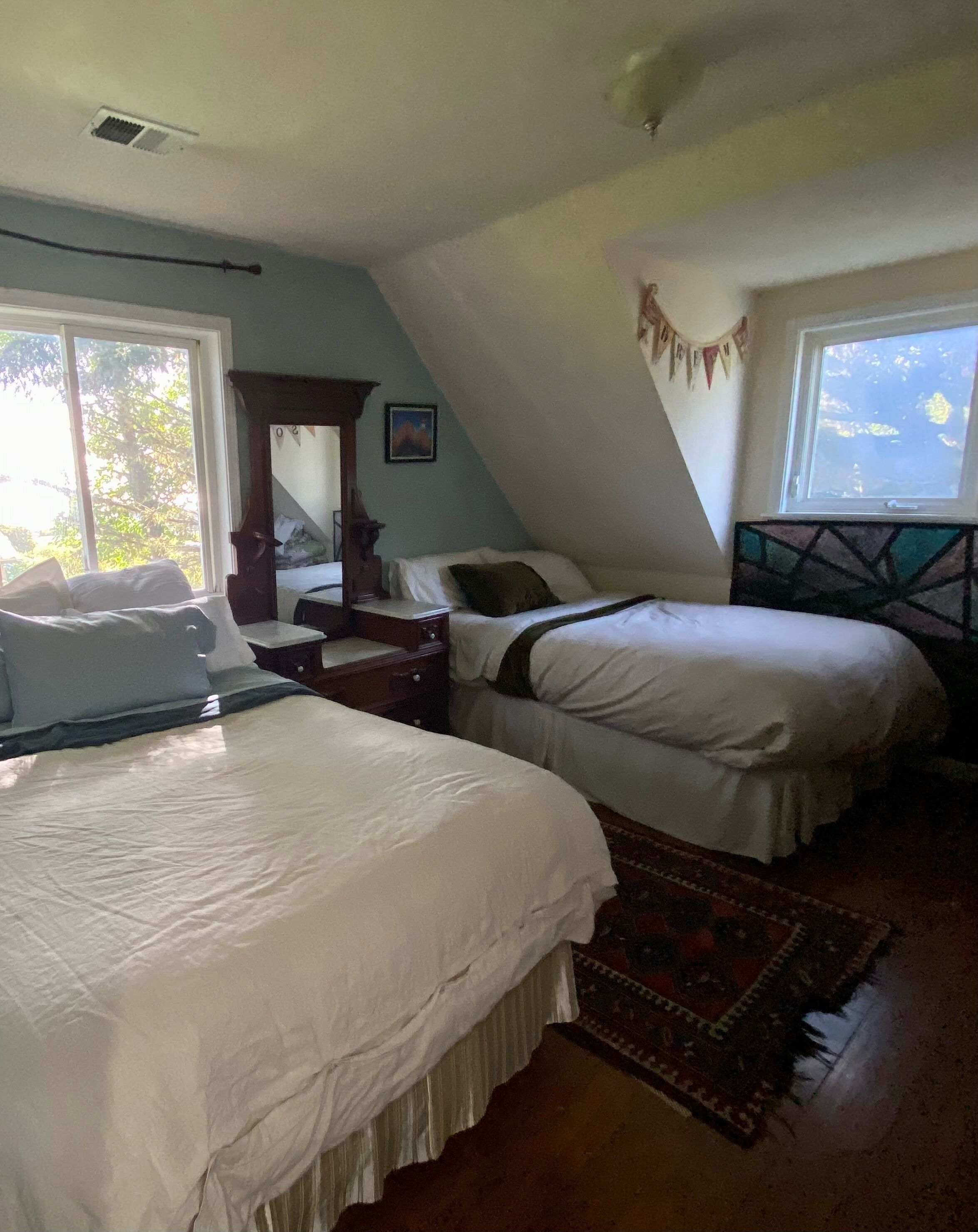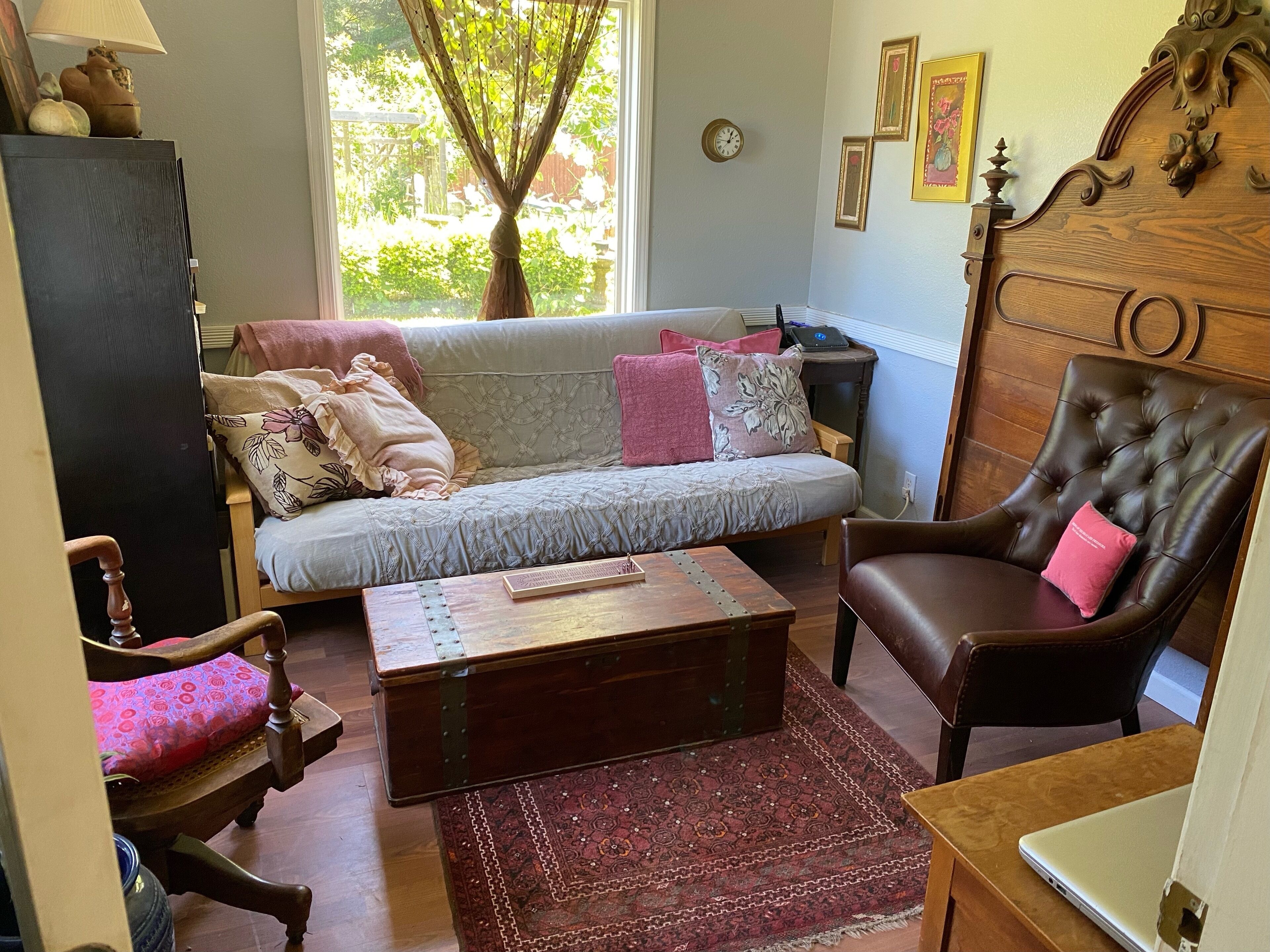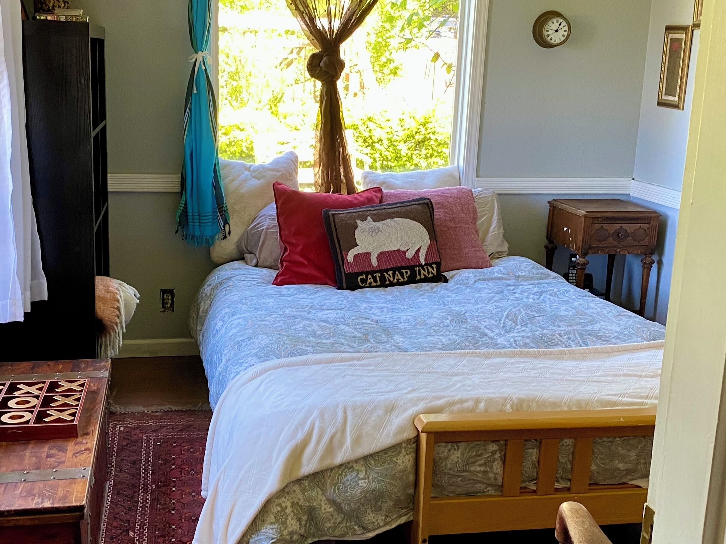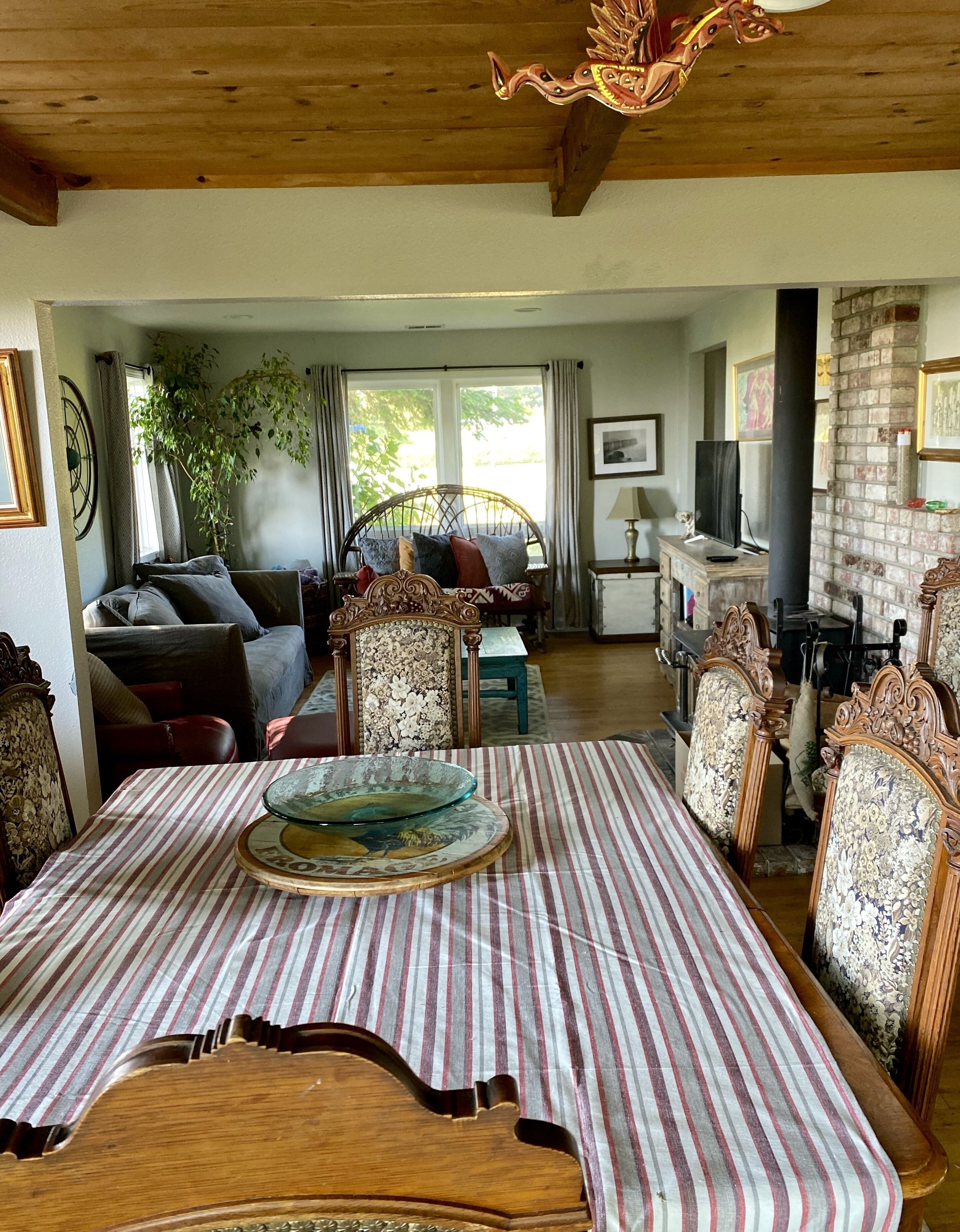 Ocean View Beach House- lush acre with gardens and a trail to beach! This property is end of the road and has privacy with beautiful ocean views! Ocean views from the three upstairs bedrooms as well. Outside is a ping pong table, barbeque, large deck, hot tub, outdoor shower and a lush, always changing garden which make it a perfect retreat for people to gather and also have private space. The master bedroom features a king size bed, en-suite bath, juliette balcony, walk-in closet, and a claw foot tub. The hand carved Javanese bed in the second bedroom is a magical experience with ocean views from both windows. The third bedroom has two new, comfortable full size beds and plenty of space to unpack for your stay. This humble, eclectic home has a well appointed kitchen, and sits minutes from the beach via car or private trail.