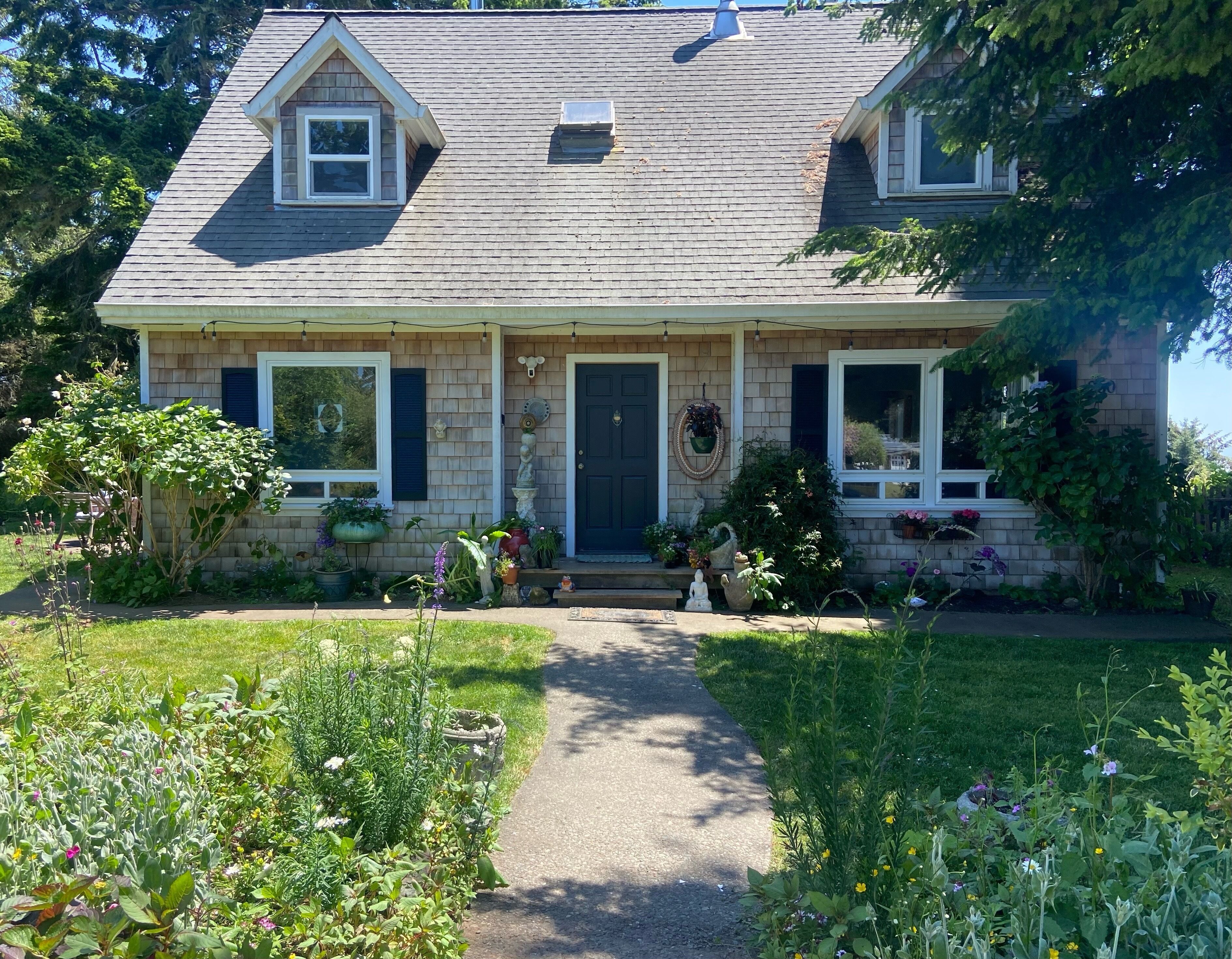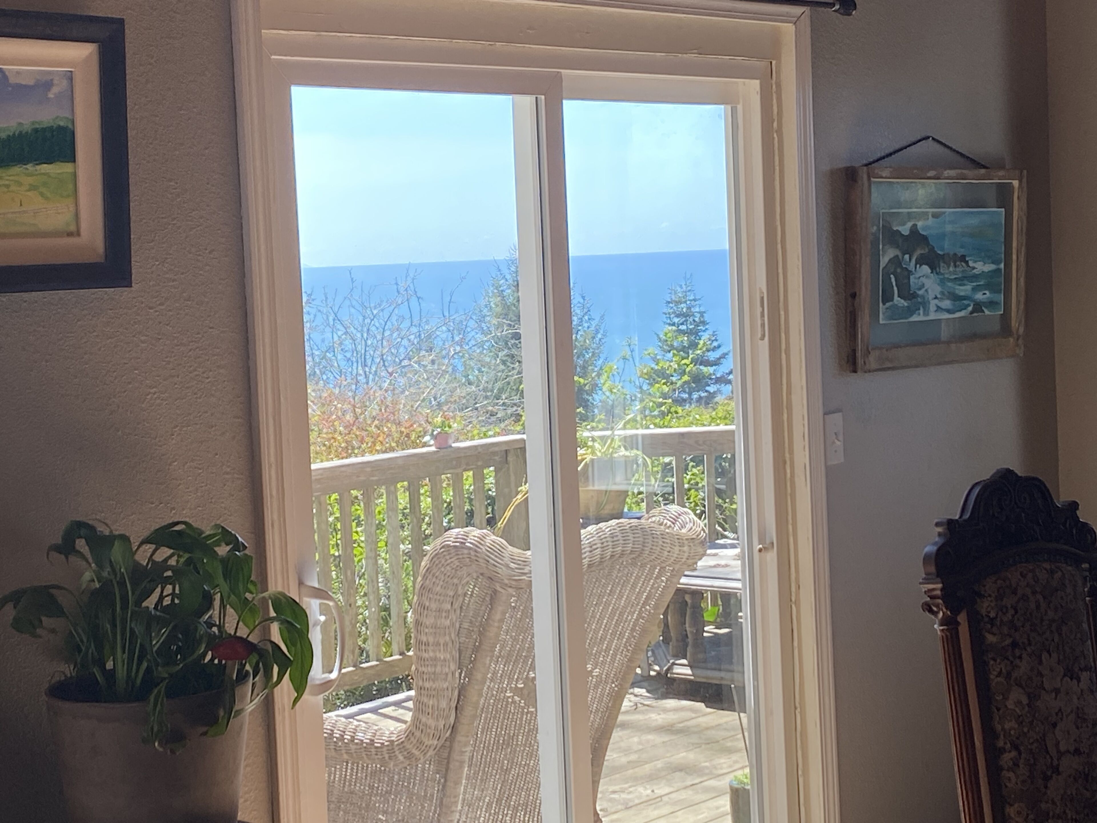Ocean View Beach House- lush acre with gardens and a trail to beach! This property is end of the road and has privacy with beautiful ocean views! Ocean views from the three upstairs bedrooms as well. Outside is a ping pong table, barbeque, large deck, hot tub, outdoor shower and a lush, always changing garden which make it a perfect retreat for people to gather and also have private space. The m...