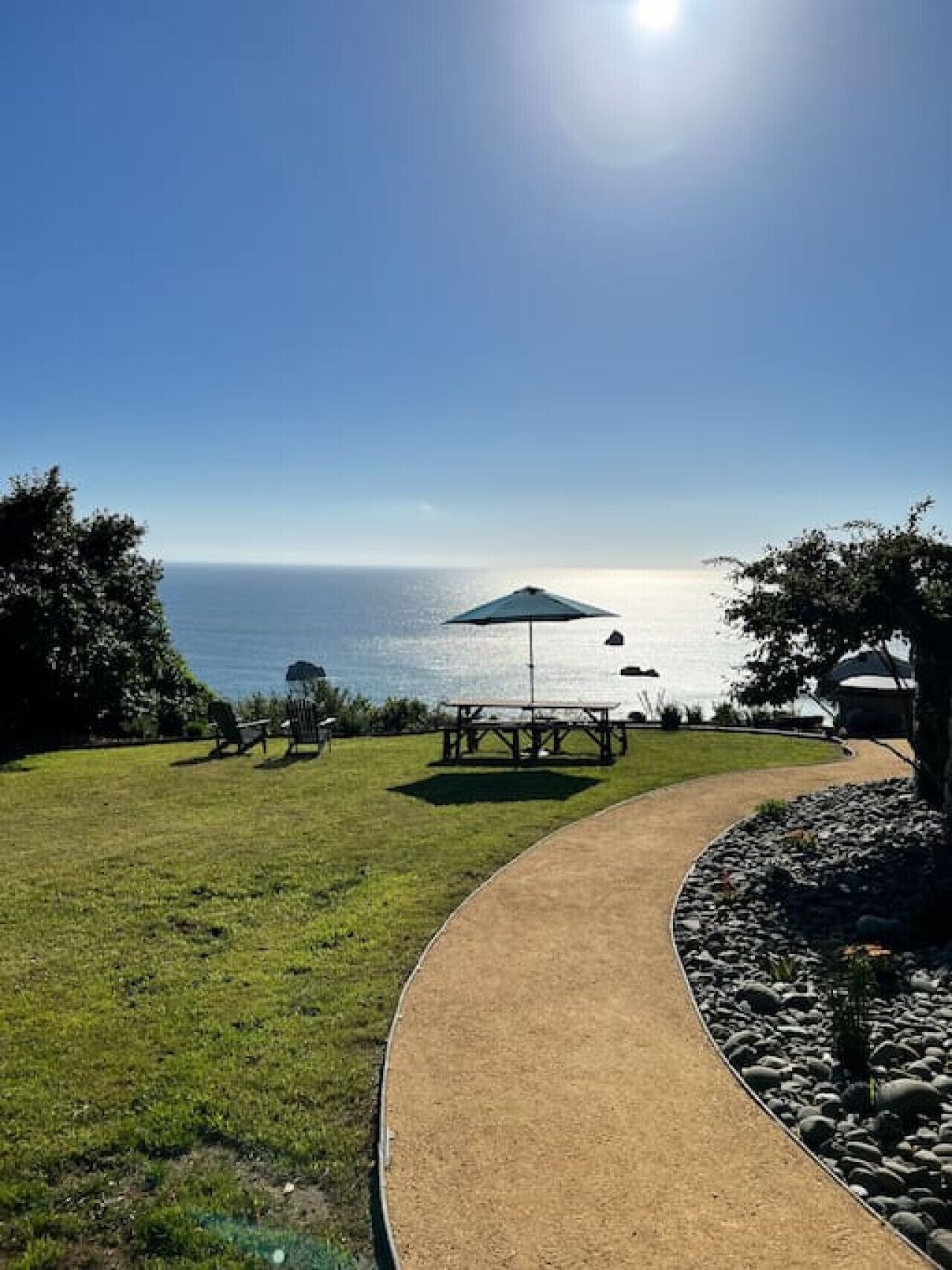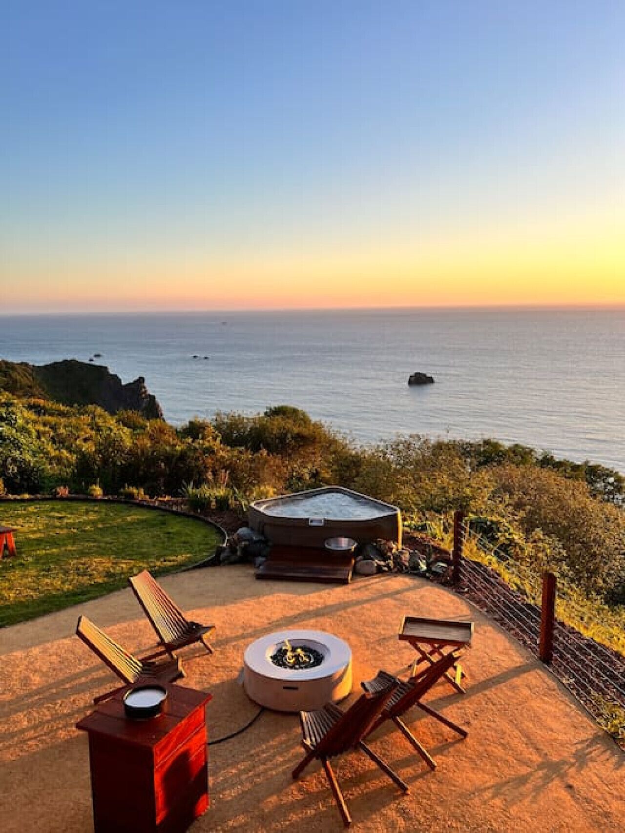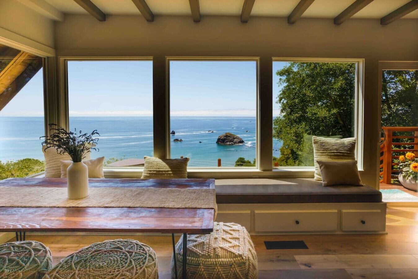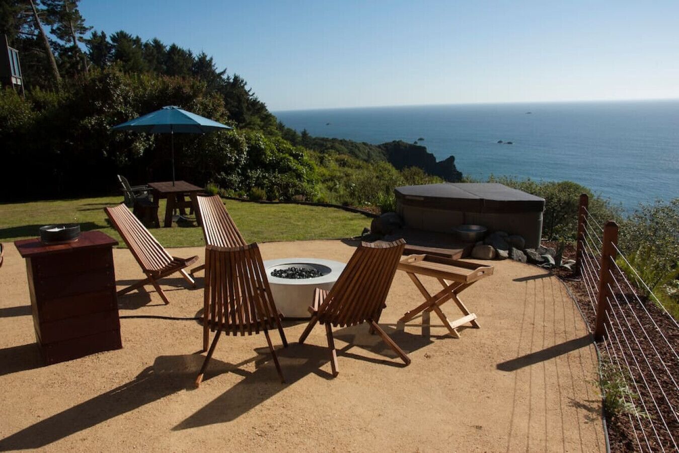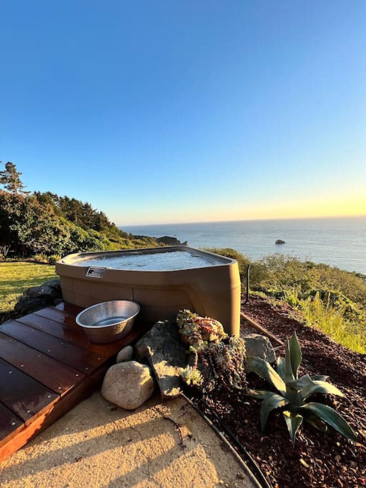 Infinity ocean view, while soaking in the hot tub! Welcome to The Wind and Tide where forest meets sea. Our newly remodeled home is situated on three acres of forested cliffside overlooking the Pacific, just north of the seaside village of Trinidad. Tranquility awaits as you take a dip in the hot tub and relax by the fire pit, soaking up the sounds of sea lions, the views of migrating whales, and sunsets and stargazing galore. Tide-pooling, agate hunting, and exploring Sue-Meg State Park is just a short drive down the road.Our home was built with views in mind – the open living room, dining room, and kitchen are designed to feature breathtaking seascapes at every turn. The view from the dining room’s built-in window seat is perfect for curling up with a book or fueling up with breakfast before a day of adventure. The views continue from the downstairs queen bedroom, complete with a desk and closet, and the upstairs loft with two queens and a nook perfect for reading or playing games – an assortment of books and board games are stocked for your use. You’ll sleep soundly in the comfort of new Casper mattresses with the sounds of waves crashing from below.The Wind and Tide has one full bathroom with plush towels and a washer and dryer available for your use at any time during your stay. The kitchen is fully equipped with a new glass stove-top, dishwasher, and fridge; it’s stocked with all the cooking utensils and kitchen tools you’ll need. Complimentary coffee and tea are provided for you, with a drip coffee machine and a French press, too. The dining room seats six and features a lovely old growth redwood table restored from the original home. We’ve added a few more creature comforts to make you feel at home, including a remote-controlled gas fireplace, a flat screen TV (with Netflix, Prime Video, and Disney+), and high-speed internet throughout the house. There’s a telescope for scouting sea stacks, watching for whales, and checking out the Milky Way if our famous Humboldt fog cooperates. Outside is a Traeger barbeque under a covered awning and an eight-foot redwood picnic table to dine al fresco – outdoor dining with spectacular views doesn’t get any better than this! After a day of exploring the north coast, you can unwind around the outdoor gas fire pit or take a swim in the hot tub while you soak in the beauty of all that surrounds. You can adventure on-site, too, by taking a hike down our private beach trail to explore tide pools and hunt for agates. Please note: this is a rustic, rugged, and strenuous trail requiring shoes and the stamina to make it up and down the steep cliffside. Please use it at your own risk. For those guests ready for the challenge, it’s a beautiful hike down to a serene and private beach. Like much of our rugged coast, there is no swimming on this beach, but the views are magnificent - be sure to keep an eye out for agates on the shore and sea lions in the distance.Note- We are currently having issues with our indoor gas fire place and waiting for a part to arrive before it will work again. Thank you for your understanding and patience. The house is heated by central heat and this is more for looks than an actual heat source. *The entire house is yours to enjoy during your stay.Our home is located just a few minutes from Sue-Meg State Park. We are located a short drive to all the beautiful beaches that Trinidad has to offer. A 20 minute drive to Ladybird Johnson Grove, one of the most incredible redwood forests in the world. A 5 minute drive to the town of Trinidad, where there is multiple restaurants, a supermarket, gas station and multiple shops to explore. Trinidad is known for its sea kayaking, whale watching, fishing, surfing, good eats and breath taking hikes along our beautiful coast line.The Wind and Tide is located 15 minutes from the Arcata-Eureka/Humboldt County Airport. Getting around in rural Humboldt is easiest with a vehicle. Humboldt is renowned for natural forest, river, and ocean spaces, offering a multitude of hiking and outdoor sport activities. Humboldt also offers a plentiful dining scene with coastal cuisine and locally grown fare peppered throughout the county. Here are a few of our favorites:Sue-Meg State Park – located just minutes away from the house, with forest and ocean vistas, hiking, and native-run interpretive trails featuring a traditional Yurok village dwelling. Wedding Rock and Agate Beach are popular stops at this park. Redwood National and State Parks/Prairie Creek State Park – located 25 minutes north of the house lie stunning and ancient redwood giants. Famed Fern Canyon and Gold Bluffs Beach (advance permit required through the Parks Service) are sought-after destinations from travelers all over the world. Visit the big named trees – like Corkscrew Tree and Big Tree – as you walk among the old growth. Ladybird Johnson and Redwood Creek trails are great for beginners. Trees of Mystery – located 45 minutes north in Klamath, just past the Humboldt County line, is a favorite spot for kids on the north coast. An amusement park of sorts with giant redwoods, a native museum, treetop gondolas to ride in, and a skywalk to get up close and personal with the redwood canopy. Avenue of the Giants – located 70 minutes to the south, is a world-famous stretch of highway winding along the Eel River with old growth redwoods throughout. This avenue is a tree-lover’s dream, boasting the world record for forested standing biomass, pristine cerulean swimming holes, and more trails than you could explore in a lifetime.Larrupin’ and Moonstone Grill – Trinidad has two upscale dining options close to the house, both offering a unique taste of Humboldt’s vibe and local seasonal ingredients. Moonstone Crossing – Trinidad’s local winery with daily tastings available.Headie’s Pizza and Pour – a local spot to grab a slice of gourmet pizza and a beer before taking a walk through town for shopping and s