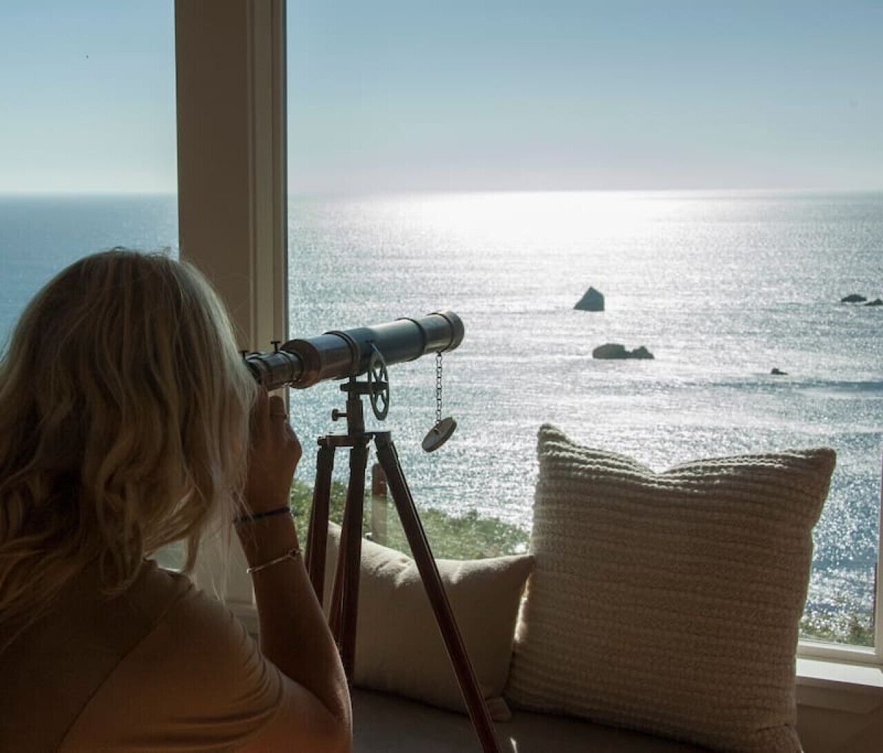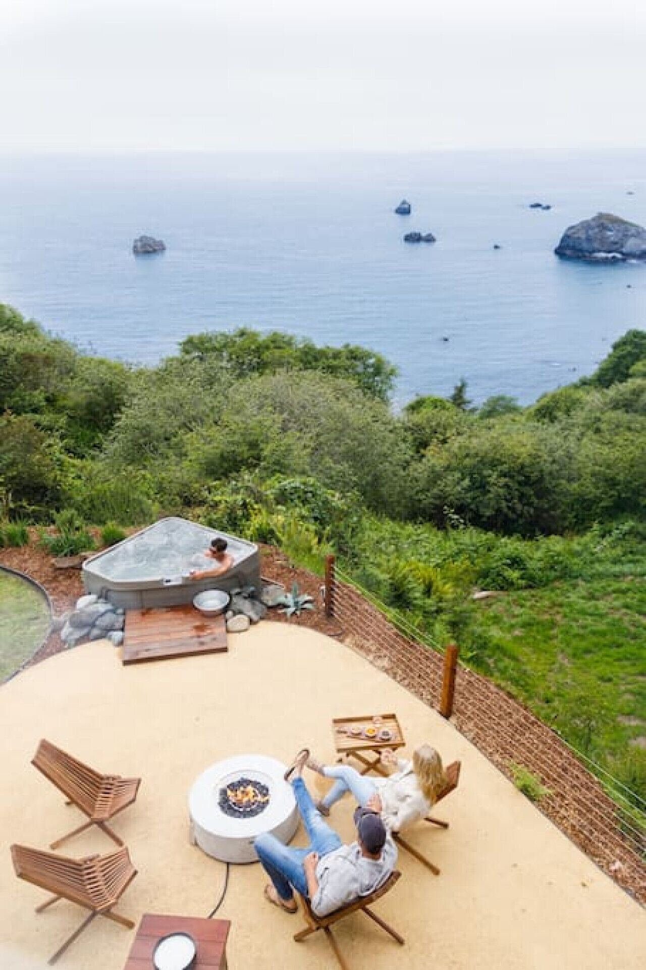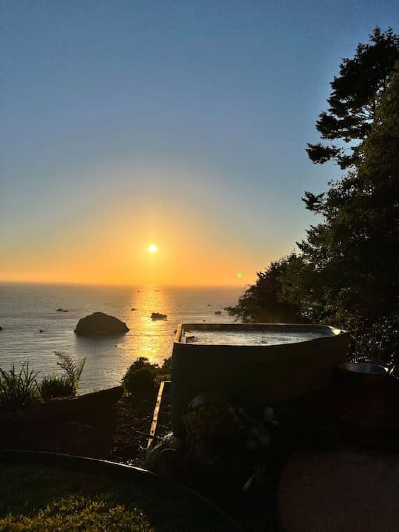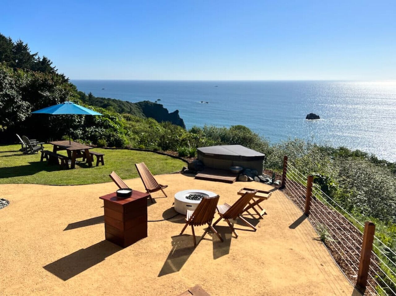 Infinity ocean view, while soaking in the hot tub! Welcome to The Wind and Tide where forest meets sea. Our newly remodeled home is situated on three acres of forested cliffside overlooking the Pacific, just north of the seaside village of Trinidad. Tranquility awaits as you take a dip in the hot tub and relax by the fire pit, soaking up the sounds of sea lions, the views of migrating whales, an...