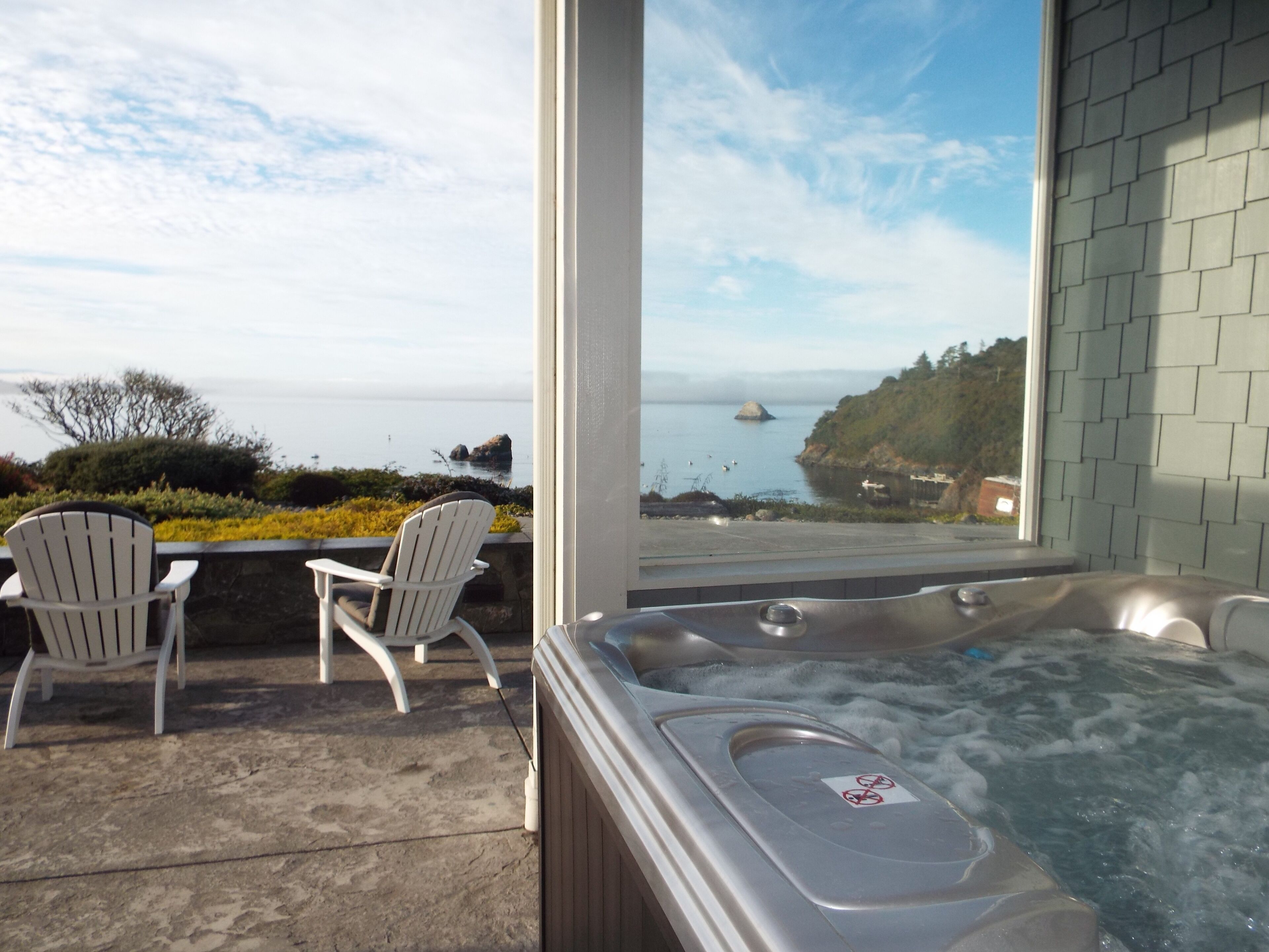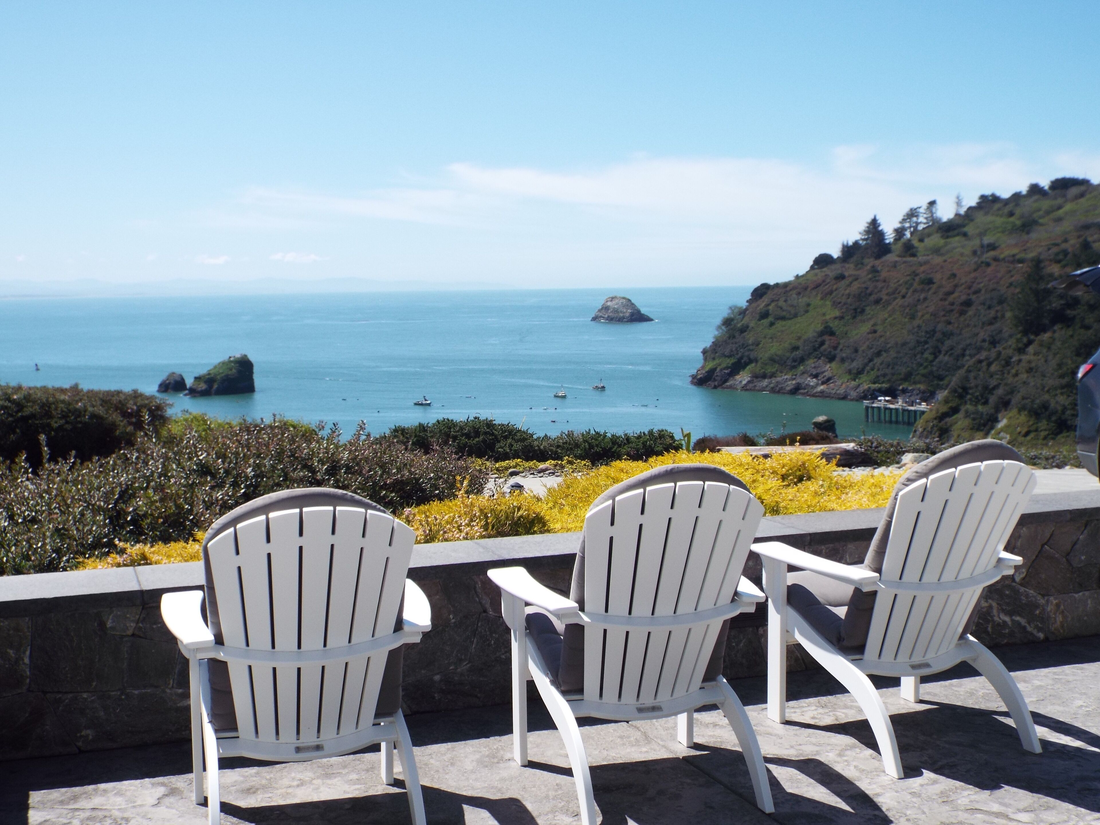 Prime location! Trinidad Bay Ocean Views Overlooking Trinidad Harbor and Pier! Are you looking to spend your next getaway in a stunning home with exquisite design details throughout? Harbor Moon is it, Trinidad’s luxury vacation rental, and no expense was spared in the creation of this haven by the sea. This home sits near Trinidad’s Memorial Lighthouse and offers incredible Trinidad Bay ocean vistas. Come to relax and unwind in luxurious comfort with elegantly-appointed spaces. Relax and unwind in the hot tub overlooking spectacular Ocean Views.Experience world class coastal sunsets Walk to Massage, Wine Tasting, Fishing, Kayaking, Surfing, Harbor, Shopping, Restaurants, Grocery Shopping, Tennis Court, Coffee Shop, Play ground near by, Art Gallery, Trails to Beaches, Trinidad State Beach. Short drive to Redwood National Park, Patrick's Point State Park, Trinidad State Park Beach, Roosevelt Elk, Hiking, Ancient Redwoods!. More visited are the nearby redwood groves and the spectacular coastline. Most anglers come for the seasonal salmon and bottom fishing (including some big lings up by Redding Rock) which is available from skiffs and party boats. However, excellent fishing is also available in the nearby surf for redtail perch and smelt, while coastal lagoons offer a relaxed environment with plentiful trout. Whether the trip is for a corporate retreat, a ladies weekend, a fishing adventure, or a large family get-together, this home will suit any need. Elegance, nautical treasures, intriguing artistic accents, and top-of-the line amenities create a sense of luxury and comfort like no other. The richness and grandeur of the interior and exterior will meet your expectations. The creative design elements incorporated into this home create a modern nautical ambiance that is perfectly paired with the spectacular scenery enjoyed around the estate. The elegance of this home is one of its better qualities however it is also accommodating for families with children or for people with active lifestyles. There are plenty of games and toys for families or large groups to enjoy. The home also features a media center with a 62” flat screen TV that sits above a cozy gas fireplace enjoy all of this while resting on the large sectional couch with room for 10. The utmost comfort of the guests is the cornerstone of Harbor Moon! Wake to the bell gently chiming on the bay’s buoy, faint calls of seagulls laughing, and the distant barking of sea lions. As sunlight rises over the tree crests on the surrounding hills, the sea stacks are illuminated through enchanted mists and salty spray. If you come during winter months, you’ll witness some of the most powerful ocean swells in California. Watch a variety of fisherman’s boats come in and out of California’s last natural harbor in commercial use, all from Harbor Moon. Sip your favorite beverage during sunset as you relax on the stone sitting wall. A beautiful native plant garden grows before you, a kaleidoscope of hues which complement those of the changing evening sky. Once you decide to retreat to the Master Bedroom through the French doors, be sure to look behind you to the south and relish in the view you’ll be able to enjoy from your king-size bed. Open the blinds to reveal an epic view of Houda Point, Cape Mendocino, and wild Pacific Ocean from the comfort of your luxurious new abode. The Redwood National and State Parks (RNSP) are a complex of several state and national parks located in the United States, along the coast of northern California. Comprising Redwood National Park (established 1968) and California's Del Norte Coast, Jedediah Smith, and Prairie Creek Redwoods State Parks (dating from the 1920s), the combined RNSP contain 139,000 acres (560 km2),[3] and feature old-growth temperate rainforests. Located entirely within Del Norte and Humboldt Counties, the four parks, together, protect 45% of all remaining coast redwood (Sequoia sempervirens) old-growth forests, totaling at least 38,982 acres (157.75 km2). These trees are the tallest and one of the most massive tree species on Earth. In addition to the redwood forests, the parks preserve other indigenous flora, fauna, grassland prairie, cultural resources, portions of rivers and other streams, and 37 miles (60 km) of pristine coastline.In 1850, old-growth redwood forest covered more than 2,000,000 acres (8,100 km2) of the California coast. The northern portion of that area, originally inhabited by Native Americans, attracted many lumbermen and others turned gold miners when a minor gold rush brought them to the region. Failing in efforts to strike it rich in gold, these men turned toward harvesting the giant trees[4] for booming development in San Francisco and other places on the West Coast. After many decades of unrestricted clear-cut logging, serious efforts toward conservation began. By the 1920s the work of the Save-the-Redwoods League, founded in 1918 to preserve remaining old-growth redwoods, resulted in the establishment of Prairie Creek, Del Norte Coast, and Jedediah Smith Redwoods State Parks among others. Redwood National Park was created in 1968, by which time nearly 90% of the original redwood trees had been logged. The National Park Service (NPS) and the California Department of Parks and Recreation (CDPR) administratively combined Redwood National Park with the three abutting Redwood State Parks in 1994 for the purpose of cooperative forest management and stabilization of forests and watersheds as a single unit.[5]The ecosystem of the RNSP preserves a number of threatened animal species such as the tidewater goby, Chinook salmon, northern spotted owl, and Steller's sea lion.[6] In recognition of the rare ecosystem and cultural history found in the parks, the United Nations designated them a World Heritage Site on September 5, 1980 and part of the California Coast Ranges International Biosphere Reserve on June 30, 1983.[7]Trinidad State Beach is accessed via a short hi