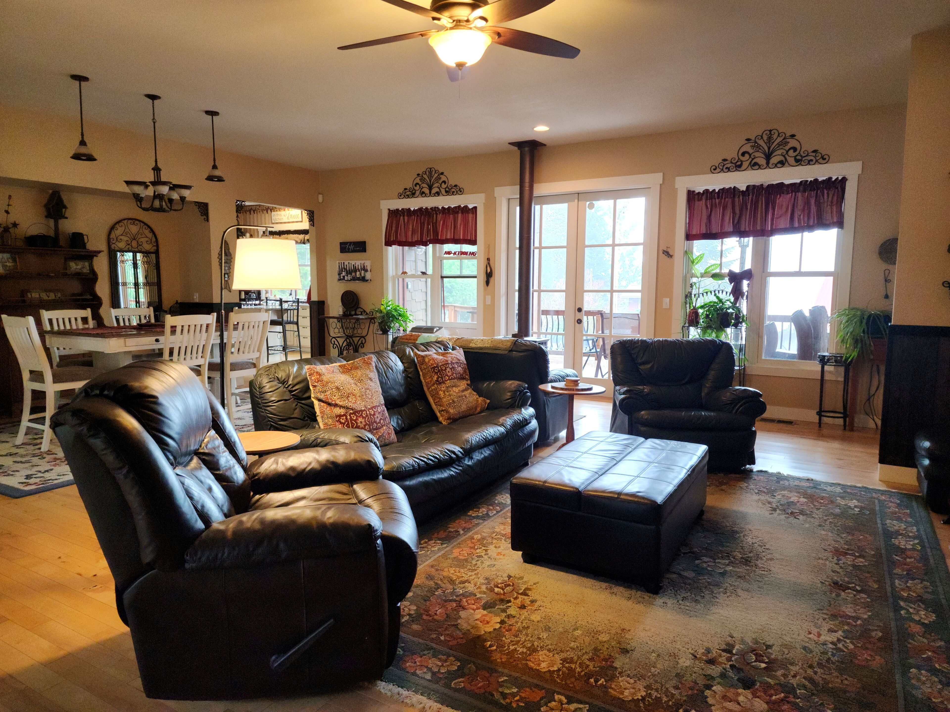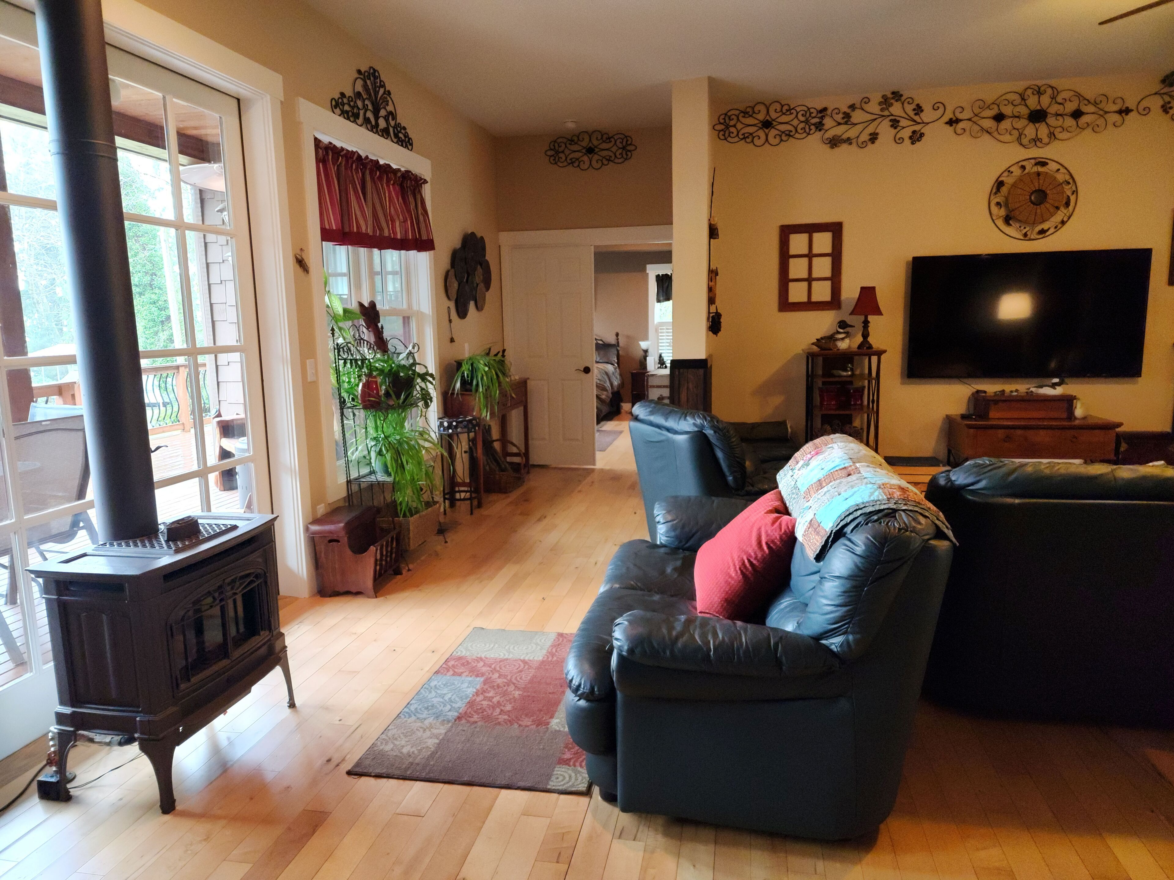 Lake Quinault and Mountain Views Explore nature in the Olympic National Park Timber Haven is a one level newer home, with three bedrooms that sleeps 10 people. All but two single beds are 14 inch memory foam mattresses for your best comfort with addition to down comforters. There are two full bathrooms. This home has a large living, dining room, and kitchen area, all with a spectacular view of the mountains that surround the serene Lake Quinault, with open space views of the lake as well. There is a full length of the house deck with a large portion that is covered, with patio furniture and propane heater as well as a BBQ grill. This is my favorite area to listen to the Bald Eagles screech and watch them soar above the lake and perch high on the timbers along the lake shore. There is a portable campfire pit located in front of house. For your convivence, You can purchase $7.00 bundles of firewood with kindling starter. This home is a perfect location to explore all must do and see areas during your stay. There is lake access just 150 yds at the boat launch, where you can picnic, swim, kayak, sunbathe, have campfires and watch the everchanging sunsets.Keywords: Fishing Guides, Lake Quinault Fishing Guides, Lake Front Vacation Homes on Lake Quinault, rental homes, water front rental. accommodations, vacation homes for rent, Olympic National Park, Ocean, beaches, Kalaloch and Ruby Beach, hiking, fishing, hunting, boating. Vacation rentals, rainforest. Resort, retreat, mushrooms, Wildlife viewing, bird watching, Nature, Relax, Olympic Peninsula accommodations, Getaway, Vacation spot, family reunion, Beach combing, Forks, Twilight, Quinault River, River Fishing, Steelhead fishing, Private Water Adventures, George's Guide Service, Guided Fishing, Tribal Fishing, Lower Quinault guided fishing, Kalaloch Beach, Ruby Beach, Colonial Bob Trail, World largest Tree, Steel head fishing. Enchanted Valley Trail. Mushrooms, Elk, Fish, Moon, Stars, Swimming, kayaking