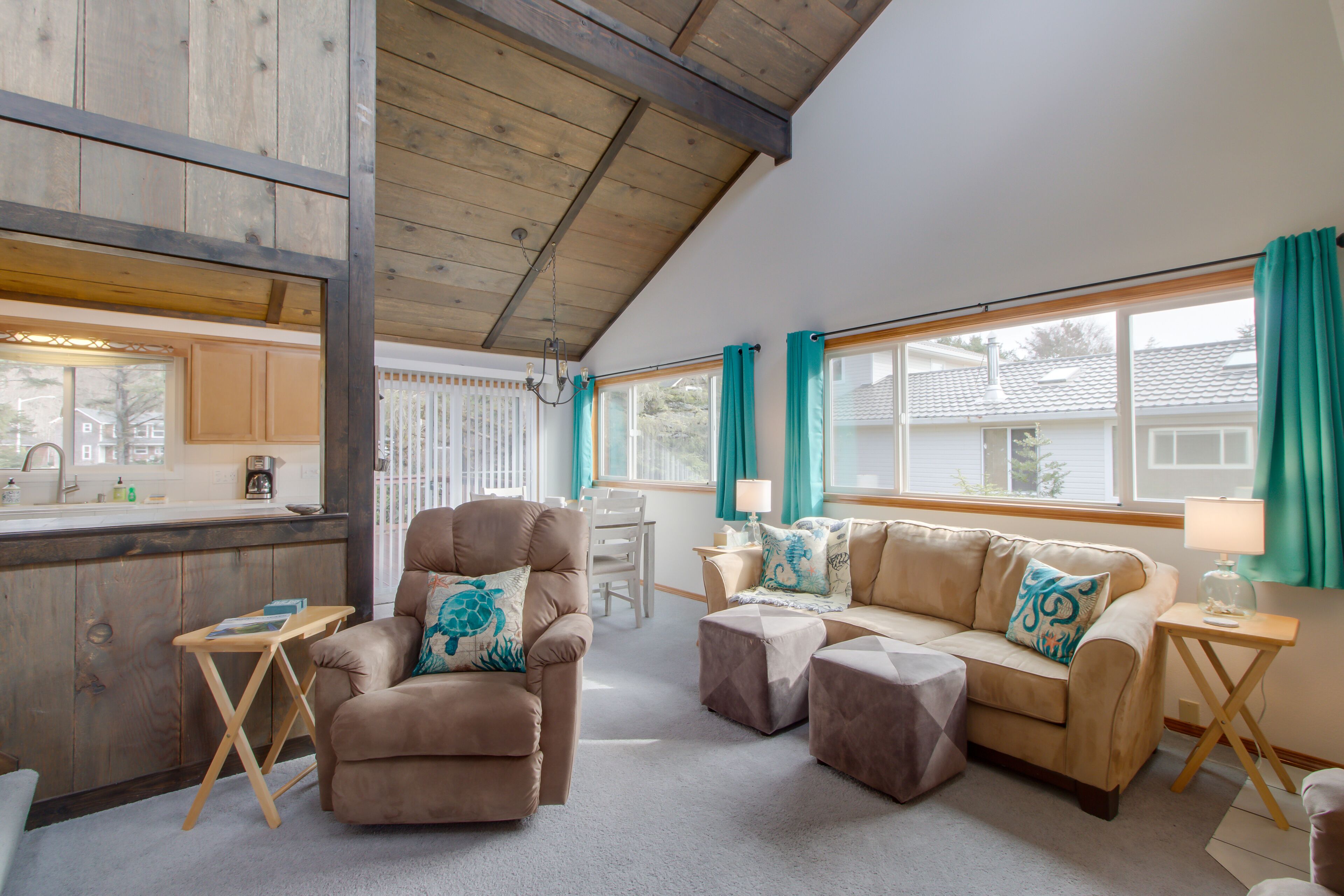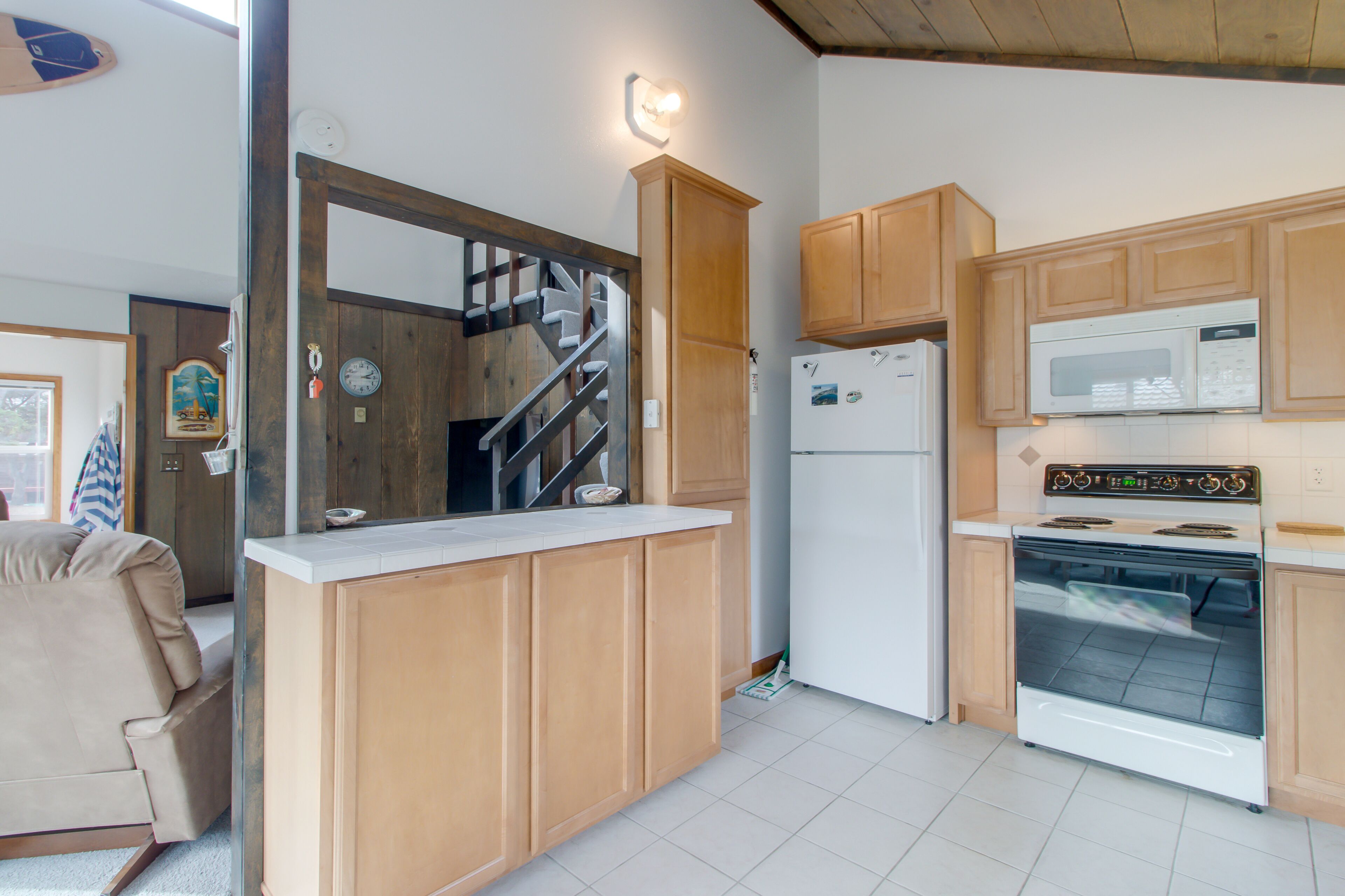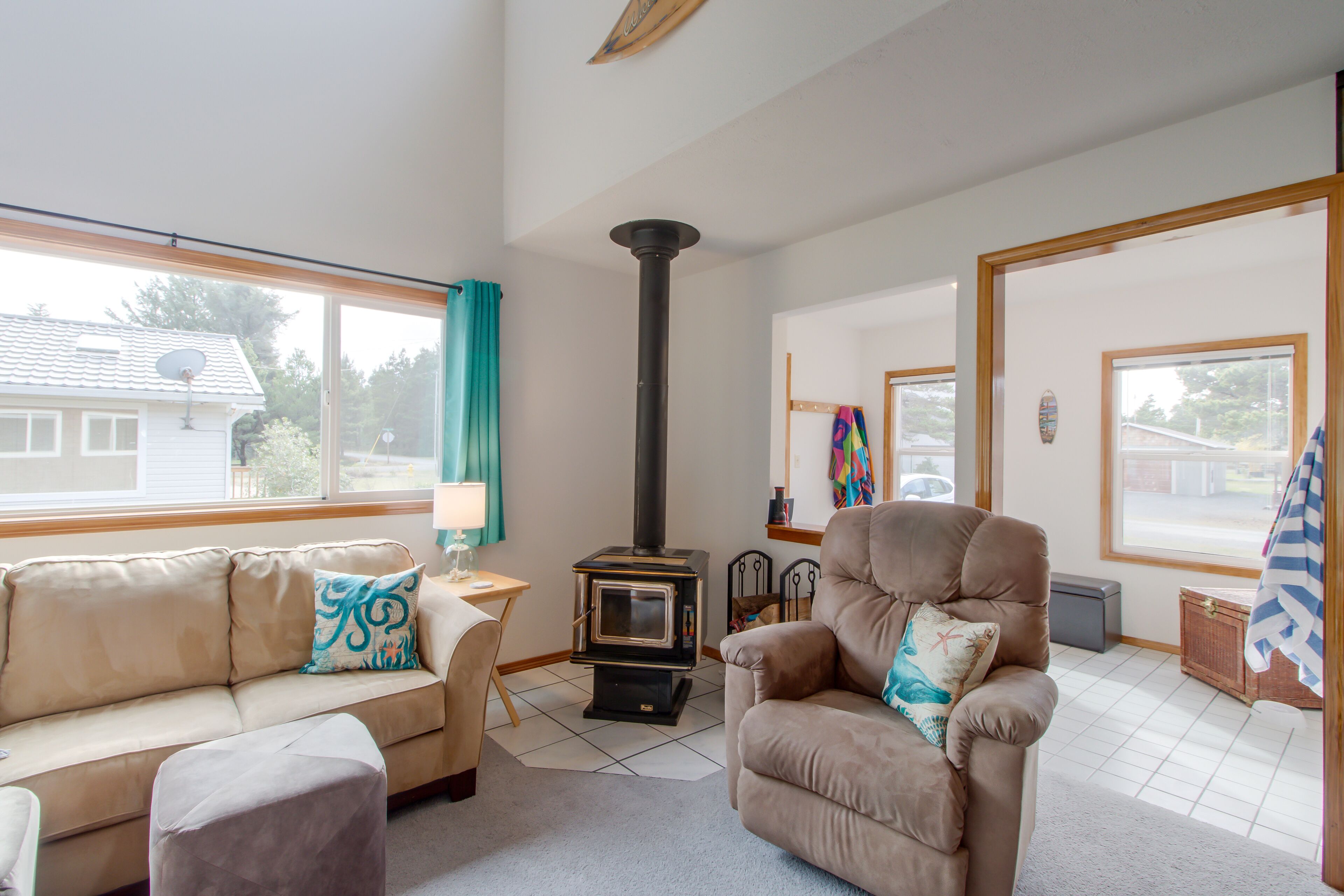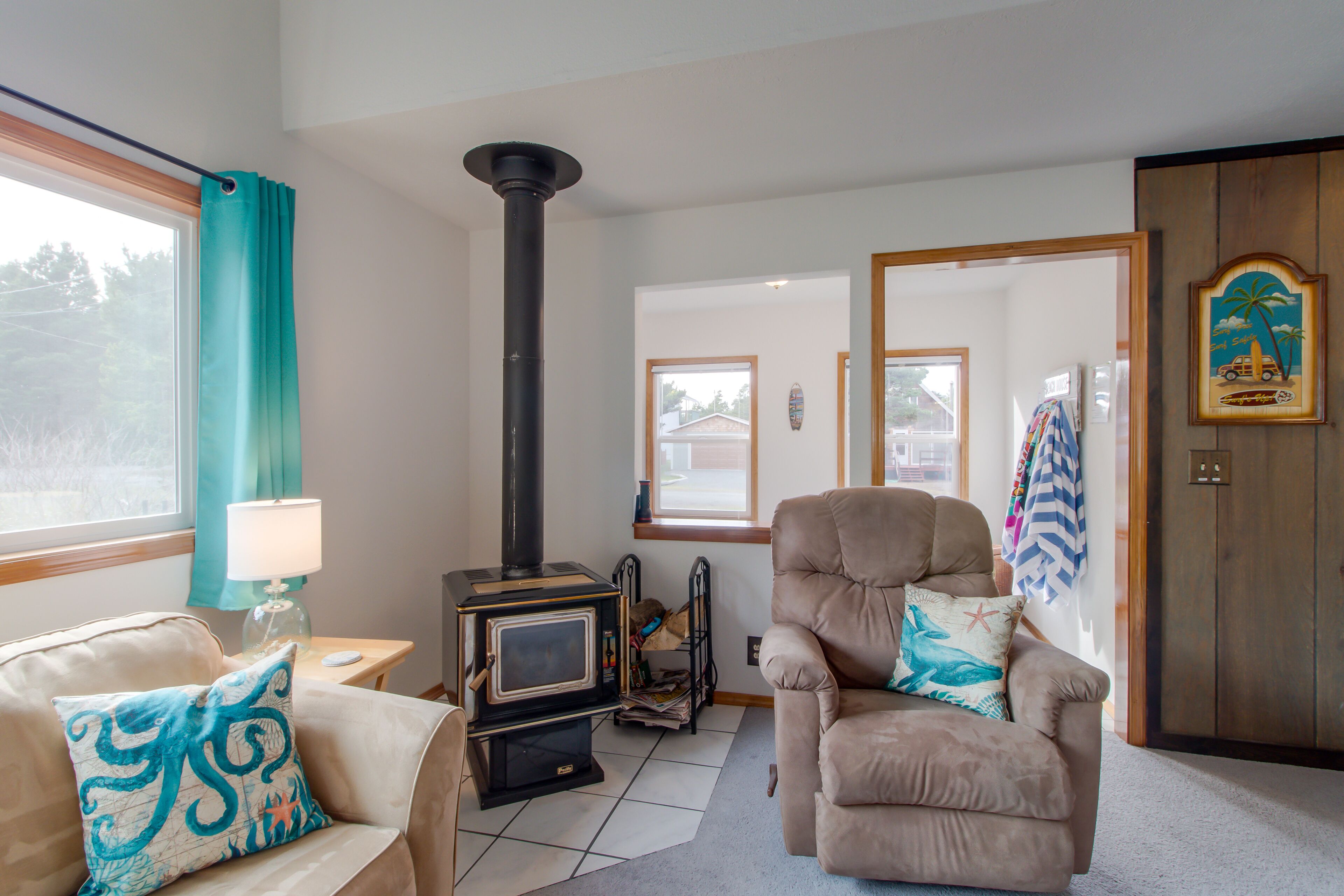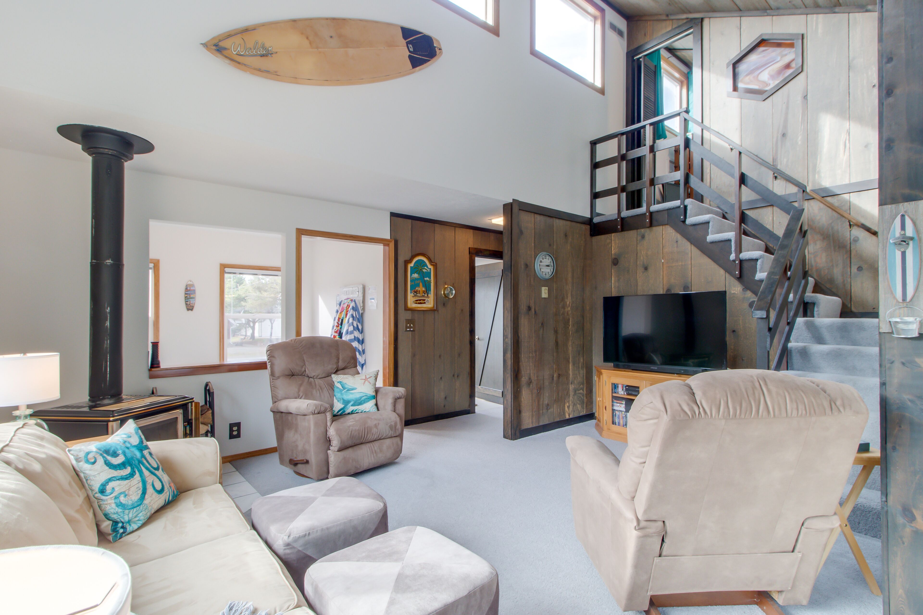 Dog-friendly home near the beach w/ furnished deck, gas grill, & outdoor firepit Rockaway Beach Surfer's ParadiseOur calendar is updated in real-time & our nightly rates are accurately displayed. Simply enter your desired dates and click 'Book Now!'This Oregon Coast getaway sits in Nedonna Beach and is within walking distance of the sand. This rental is tastefully decorated within with beautiful, dark wood doors, local artwork, and comfortable furnishings. This home also features modern appliances, flatscreen TVs, a warming and very efficient wood stove, and even a PlayStation in the loft area to ensure the whole family enjoys their next adventure.What's nearby:Load up the provided wagon and walk just two blocks to the beach to play on the sand or investigate the local tidepools. Downtown Rockaway Beach is less than three miles south where you will find plenty of dining options, antique stores, and necessities, and if you're visiting in July, don't miss their fun 4th of July parade right down Main Street. Catch the Oregon Coast Scenic Railroad for a quick trip down to the fishing village of Garibaldi where you can pick up some fresh seafood from the marina.Things to know:Free WiFiFull kitchen with a dishwasherDogs are welcomeIf you are bringing a dog on your trip, the pet fee is already included in your quote when selecting ‘Yes’ to pets. If you would like to add more dogs, please contact us. The pet fee is per stay and ranges between $150 and $200, depending on the bedroom count, and will apply for each additional dog.Parking notes: There is free parking available for 2 vehicles.Damage waiver: The total cost of your reservation for this Property includes a nightly damage waiver fee, plus tax if applicable (the “Damage Waiver”). (A discount may be applied for stays of 28 nights or longer, if permitted.) The Damage Waiver covers you for up to $3,000 of accidental damage to the Property or its contents (such as furniture, fixtures, and appliances) as long as you report the incident to the host prior to checking out. The Damage Waiver fee eliminates the need for a traditional security deposit.More information can be downloaded from the "Rental Agreement" on the checkout page.Due to local laws or HOA requirements, guests must be at least 21 years of age to book. Guests under 21 must be accompanied by a parent or legal guardian for the duration of the reservation.