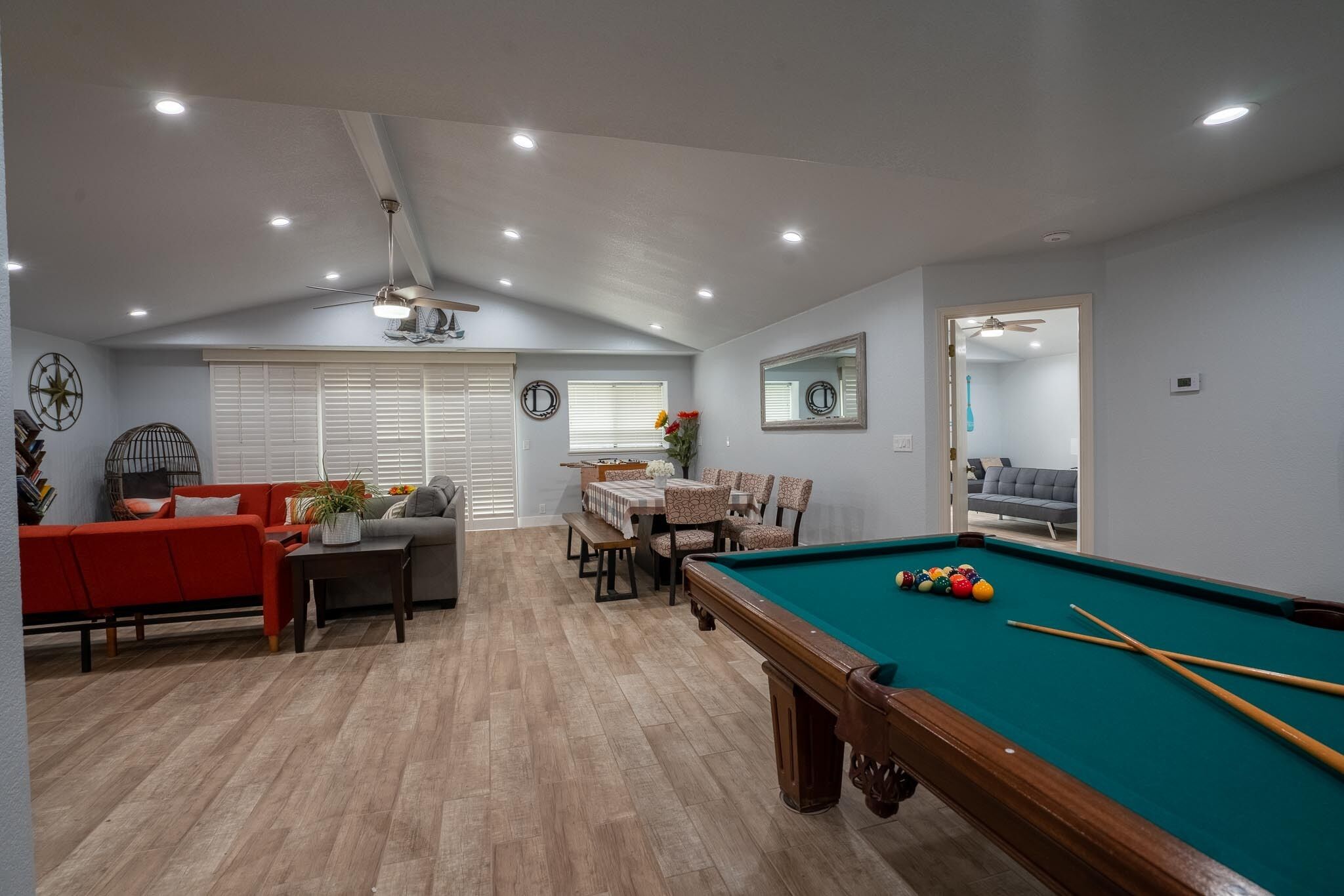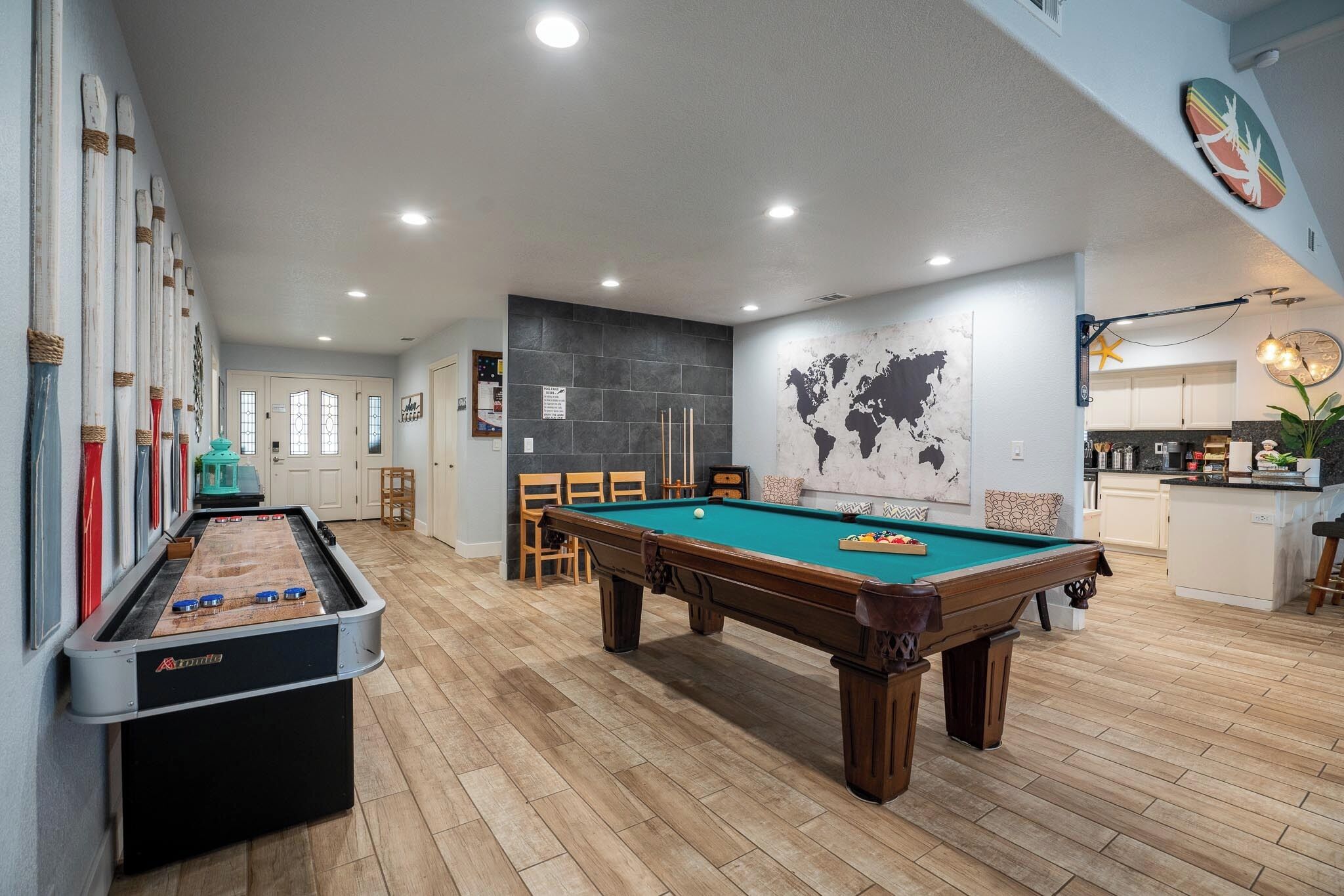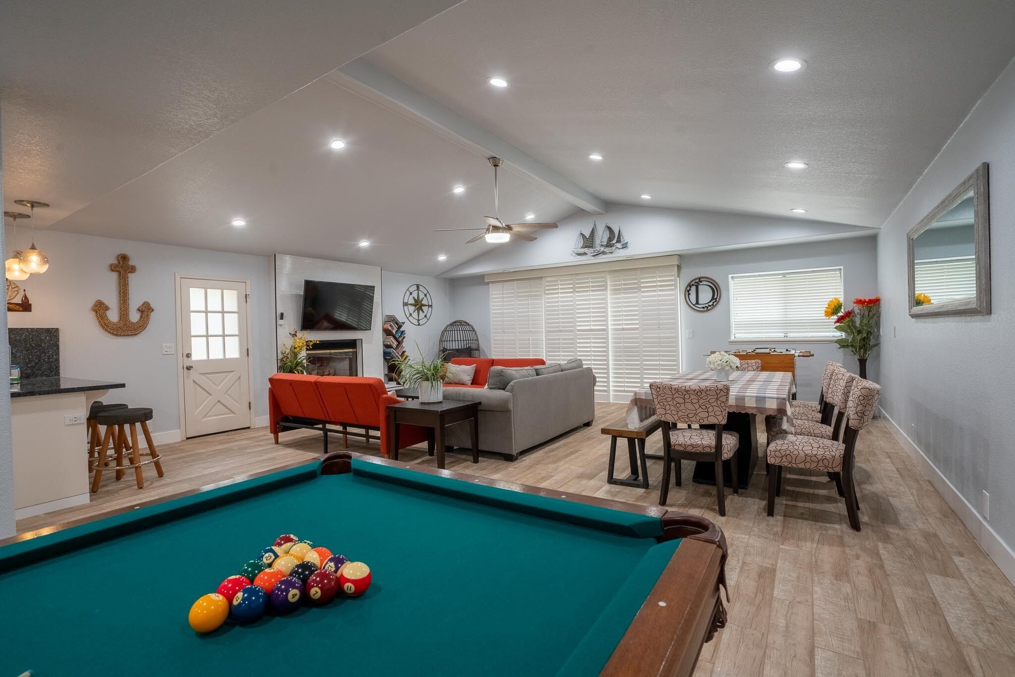Waterfront Home π£ with Canoe, Paddleboats, Paddleboards & Kayaks are INCLUDED This unique one-level waterfront home with fast water access would be perfect for you, your friends, and your families to enjoy. You can fish, kayak, paddleboard, and paddle boat right from the backyard. Yes, we have you covered with kayaks, paddle boards, paddle boats, fishing rods, floating devices, and bicycles available for you to use during your stay. You are welcome to bring your boat or other water toys as well!The space:You will enjoy this one-level waterfront house. It's approximately 2,400 square feet with additional 200 square feet of entertainment area/game room. Excellent Hi-Speed internet from Xfinity/Comcast with Orbi Mesh system to ensure that play and work are not interrupted. 4 Samsung Smart TVs with Netflix ready to watch your favorite movies. Plenty of parking, 4 to 5 cars can be parked on the driveway and one car inside the garage. Just bring your boat, friends, families and relax on the water and the best thing is fishing right from the dock. FOR INDOOR ENTERTAINMENT:- Pool Table- Foosball Table- Hockey Table- Games (Chess, Checker, Playing Cards, Dominoes, Poker Chips, Puzzles, Uno, Giant Tumble Tower, etc.)- 4 Smart TVs with Netflix ready for your favorite movies FOR OUTDOOR ENTERTAINMENT:- BBQ grill (gas)- 2 Paddle boats- 2 Paddle boards- Canoe (17 feet)- 3 Kayaks- 4 fishing rods- 4 Bicycles- The deck area has a patio sofa, 2 dining tables with 10 seats, 3 hammocks, and 2 patio heaters- 20 feet cover deck with ceiling fans- 2 outdoor umbrellas WHAT WE OFFER:β Fast water access with a private dock. When bringing your boat or jet skis, the docking options are to the right or left side with dock cleats to tie off your boat(s). Boat rentals are also available nearby.β Xfinity/Comcast cable Internet Orbi Mesh system to boost Wi-Fi connectivity.β Central Heating and Air Conditioning.β Life jackets (we have some life vests/jackets available. But we recommend bringing your own).β Laundry room - washer and dryer.β Outdoor heaters for those cooler nights.β The kitchen is very well stocked with full dishware, basic cooking essentials, wine glasses, and we supply several spices for cooking.β Keurig coffee maker, instant coffee, and filter coffee.β Tea station with a variety of flavors.β Plenty of parking. 4-5 cars can be parked on the driveway.β Large deck with patio heaters, patio furnitureβ Additional large size yard for BBQ with outdoor dining table and chairs.β Paper towels and toilet paper are also provided during your stay.β Large L-shaped island in the kitchen with lots of space for guest items.β Dining table with comfortably 10 seats.β A fully equipped laundry room is available for guests to use.SLEEPING ARRANGEMENT:β The master bedroom has a queen bed, a queen sofa bed, and a twin sofa bed.β The middle bedroom has a queen bed and a queen over twin bunk bed.β The front bedroom has a queen bed and a queen over twin bunk bed.β The living room has two twin sofa beds and a twin standard sofa.OTHER THINGS TO NOTE:β The marina boat launch, gas station, Discovery Bay Yacht Club, Marina Boardwalk Shops, and The Boardwalk Bar & Grill.β Boat rentals are also available nearby.β Trash (Brown lid bins) gets picked up on Thursday mornings. Recyclables (Blue lid bins) get picked up Friday mornings. Guests are asked to put bins out on the street/curbside for pickup on Wednesday. We will text you on Wednesday to remind you.β When bringing your boat or jet skis, the docking options are either right or left. There are dock cleats to tie off your boat(s).β Please don't play loud music outside on the deck or dock because it echoes on the water. Discovery Bay has a noise ordinance, no loud music after 10 pm. Please be kind and respectful to our neighbors. You will be evicted if the neighbor calls the Sheriff for house parties or noise complaints.β There is no boat trailer parking allowed on the street. Boats can be launched at the Discovery Bay Marina. No trailer parking is allowed on the street or driveway. Trailers can be parked at the Discovery Bay Marina overnight.β The property has 14 outside security cameras and 1 Ring Doorbell Camera. The cameras are recording / monitoring for safety and security purposes 24 hours. No audio recording. There are NO cameras in the house. The camera locations and angles will be detailed in the rental agreement.β Guest requires to sign and comply with the rental agreement to stay. The Rental Agreement is listed in the House Rules section. Guest must be at least 28 years of age unless there is a prior arrangement before booking.GUEST ACCESS:β Self-check-in with digital key code.β Check-in time is 4 pm.β Check-out time is 11 am.β We allow early check-in and late check-out when