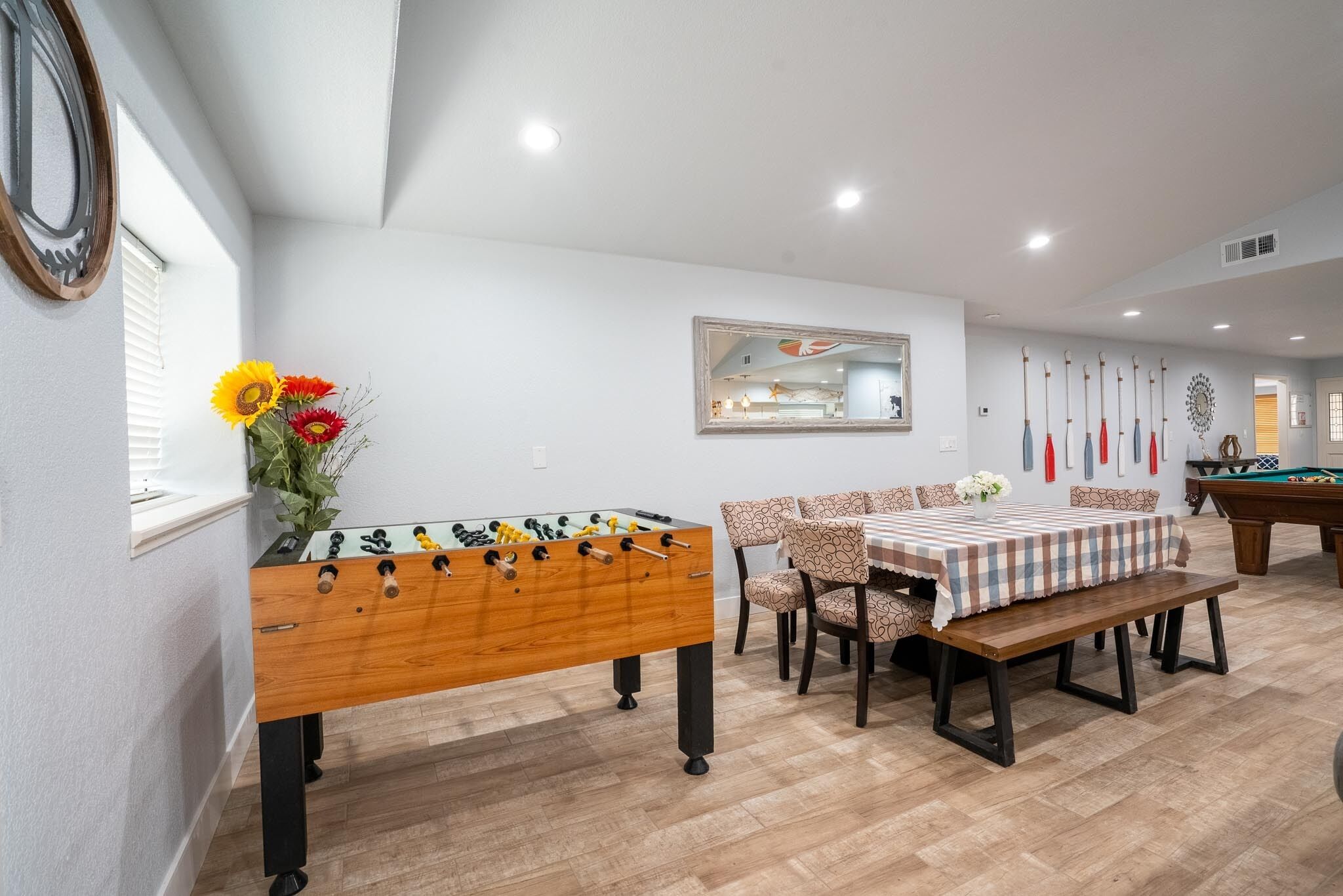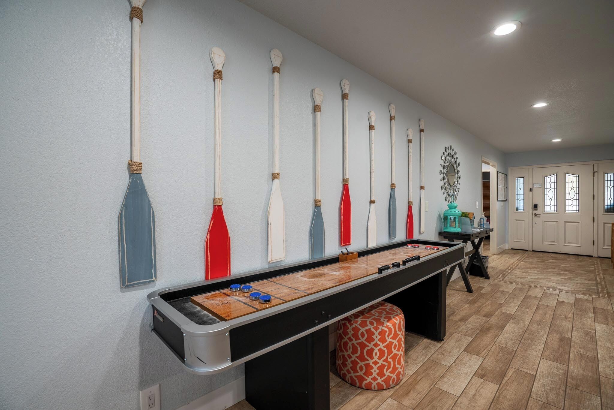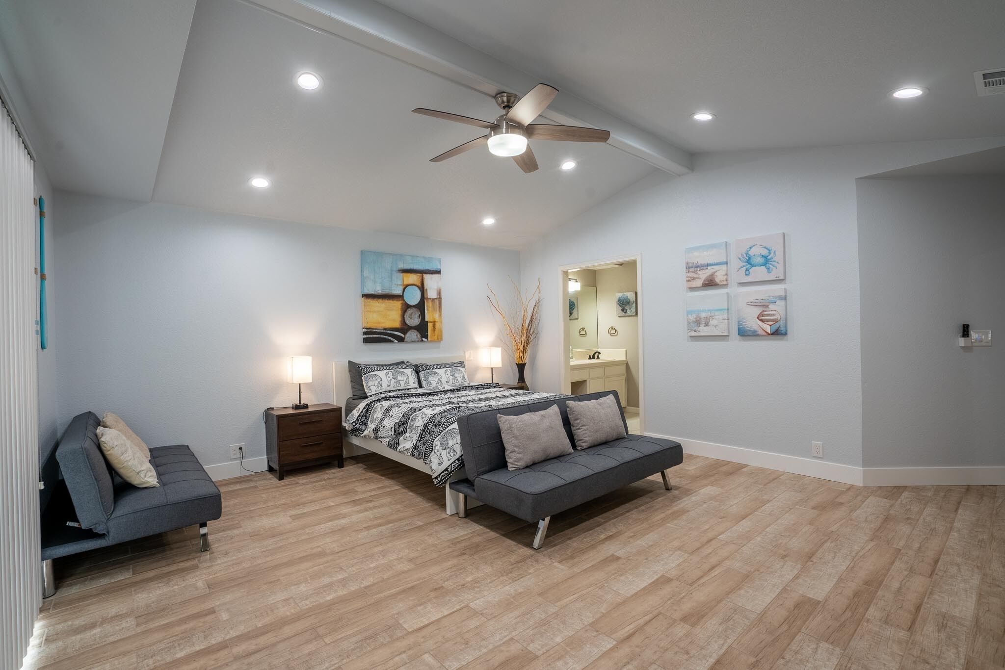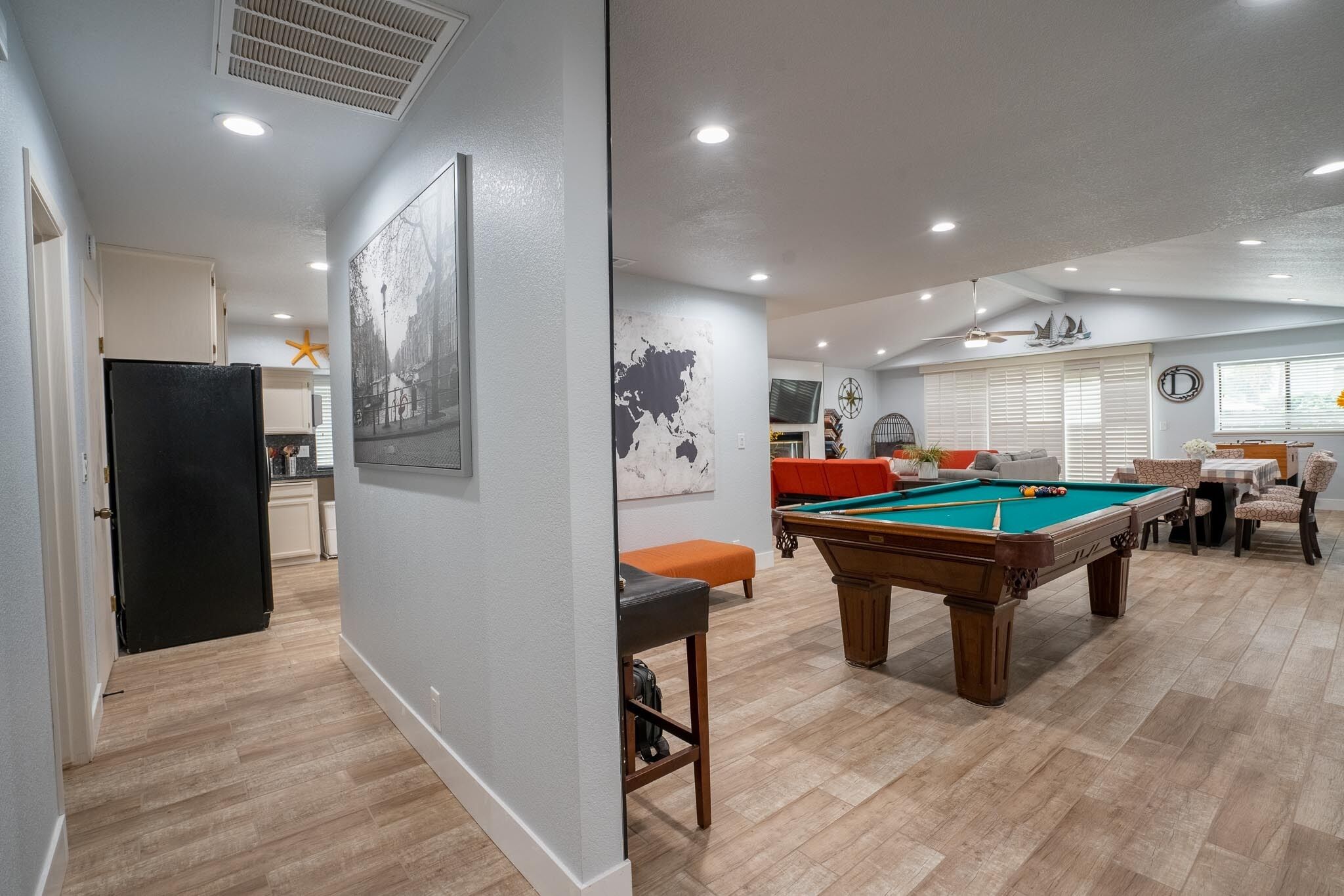 Waterfront Home π£ with Canoe, Paddleboats, Paddleboards & Kayaks are INCLUDED This unique one-level waterfront home with fast water access would be perfect for you, your friends, and your families to enjoy. You can fish, kayak, paddleboard, and paddle boat right from the backyard. Yes, we have you covered with kayaks, paddle boards, paddle boats, fishing rods, floating devices, and bicycles available for you to use during your stay. You are welcome to bring your boat or other water toys as well!The space:You will enjoy this one-level waterfront house. It's approximately 2,400 square feet with additional 200 square feet of entertainment area/game room. Excellent Hi-Speed internet from Xfinity/Comcast with Orbi Mesh system to ensure that play and work are not interrupted. 4 Samsung Smart TVs with Netflix ready to watch your favorite movies. Plenty of parking, 4 to 5 cars can be parked on the driveway and one car inside the garage. Just bring your boat, friends, families and relax on the water and the best thing is fishing right from the dock. FOR INDOOR ENTERTAINMENT:- Pool Table- Foosball Table- Hockey Table- Games (Chess, Checker, Playing Cards, Dominoes, Poker Chips, Puzzles, Uno, Giant Tumble Tower, etc.)- 4 Smart TVs with Netflix ready for your favorite movies FOR OUTDOOR ENTERTAINMENT:- BBQ grill (gas)- 2 Paddle boats- 2 Paddle boards- Canoe (17 feet)- 3 Kayaks- 4 fishing rods- 4 Bicycles- The deck area has a patio sofa, 2 dining tables with 10 seats, 3 hammocks, and 2 patio heaters- 20 feet cover deck with ceiling fans- 2 outdoor umbrellas WHAT WE OFFER:β Fast water access with a private dock. When bringing your boat or jet skis, the docking options are to the right or left side with dock cleats to tie off your boat(s). Boat rentals are also available nearby.β Xfinity/Comcast cable Internet Orbi Mesh system to boost Wi-Fi connectivity.β Central Heating and Air Conditioning.β Life jackets (we have some life vests/jackets available. But we recommend bringing your own).β Laundry room - washer and dryer.β Outdoor heaters for those cooler nights.β The kitchen is very well stocked with full dishware, basic cooking essentials, wine glasses, and we supply several spices for cooking.β Keurig coffee maker, instant coffee, and filter coffee.β Tea station with a variety of flavors.β Plenty of parking. 4-5 cars can be parked on the driveway.β Large deck with patio heaters, patio furnitureβ Additional large size yard for BBQ with outdoor dining table and chairs.β Paper towels and toilet paper are also provided during your stay.β Large L-shaped island in the kitchen with lots of space for guest items.β Dining table with comfortably 10 seats.β A fully equipped laundry room is available for guests to use.SLEEPING ARRANGEMENT:β The master bedroom has a queen bed, a queen sofa bed, and a twin sofa bed.β The middle bedroom has a queen bed and a queen over twin bunk bed.β The front bedroom has a queen bed and a queen over twin bunk bed.β The living room has two twin sofa beds and a twin standard sofa.OTHER THINGS TO NOTE:β The marina boat launch, gas station, Discovery Bay Yacht Club, Marina Boardwalk Shops, and The Boardwalk Bar & Grill.β Boat rentals are also available nearby.β Trash (Brown lid bins) gets picked up on Thursday mornings. Recyclables (Blue lid bins) get picked up Friday mornings. Guests are asked to put bins out on the street/curbside for pickup on Wednesday. We will text you on Wednesday to remind you.β When bringing your boat or jet skis, the docking options are either right or left. There are dock cleats to tie off your boat(s).β Please don't play loud music outside on the deck or dock because it echoes on the water. Discovery Bay has a noise ordinance, no loud music after 10 pm. Please be kind and respectful to our neighbors. You will be evicted if the neighbor calls the Sheriff for house parties or noise complaints.β There is no boat trailer parking allowed on the street. Boats can be launched at the Discovery Bay Marina. No trailer parking is allowed on the street or driveway. Trailers can be parked at the Discovery Bay Marina overnight.β The property has 14 outside security cameras and 1 Ring Doorbell Camera. The cameras are recording / monitoring for safety and security purposes 24 hours. No audio recording. There are NO cameras in the house. The camera locations and angles will be detailed in the rental agreement.β Guest requires to sign and comply with the rental agreement to stay. The Rental Agreement is listed in the House Rules section. Guest must be at least 28 years of age unless there is a prior arrangement before booking.GUEST ACCESS:β Self-check-in with digital key code.β Check-in time is 4 pm.β Check-out time is 11 am.β We allow early check-in and late check-out when