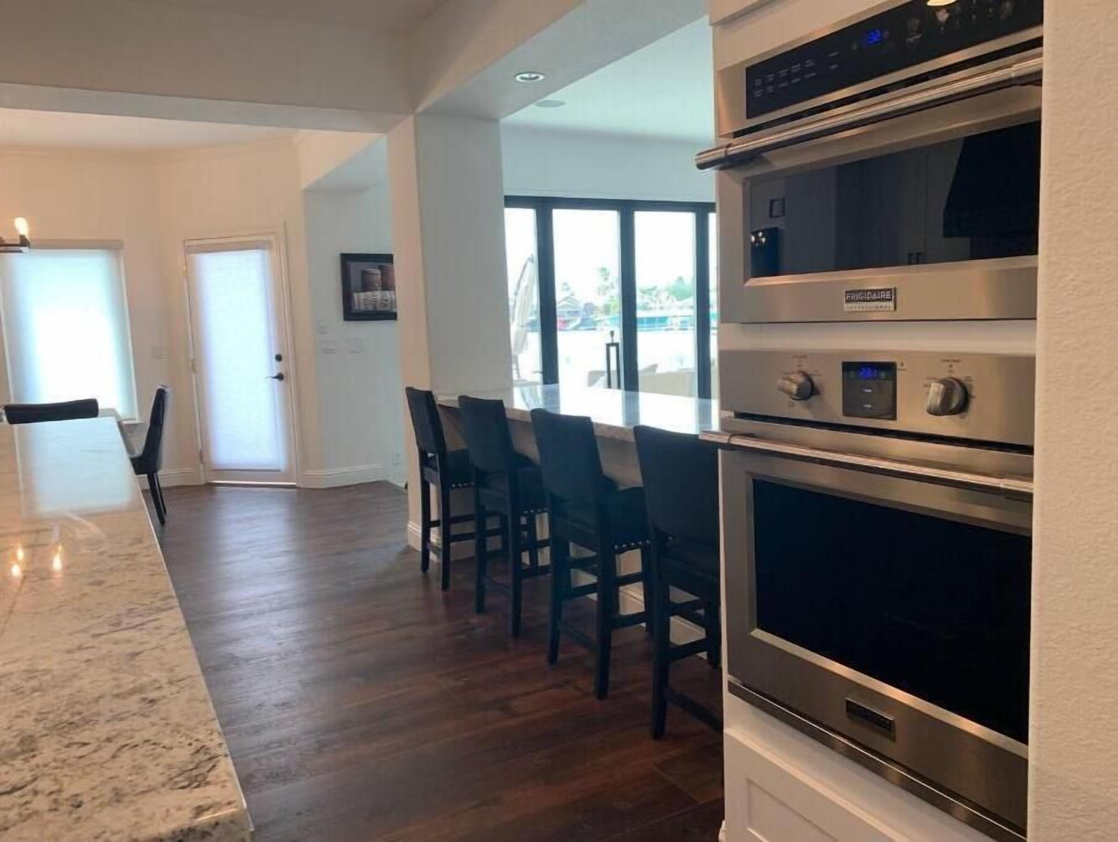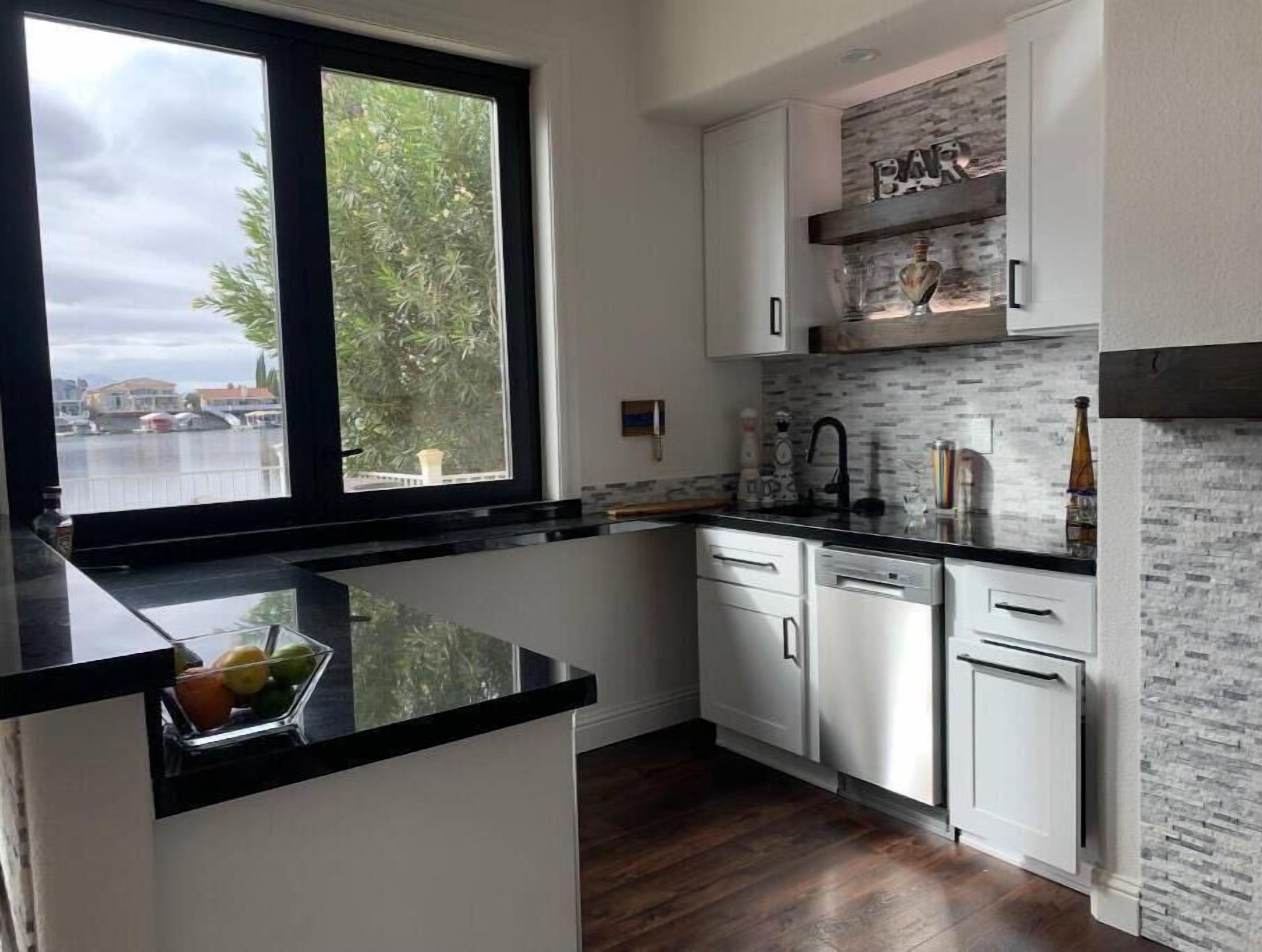 Waterfront Remodeled House close to FAST Water Newly remodeled waterfront home 6 minutes to fast water. AMAZING SUNSETS. Beautiful large panoramic glass doors open to large backyard deck with cover (two ceiling fans), dining table, fire pit & BBQ are gas lines - no propane tanks! Bar located off the great room has two panel pano windows that open for drink pass through (mini fridge, freezer and di...