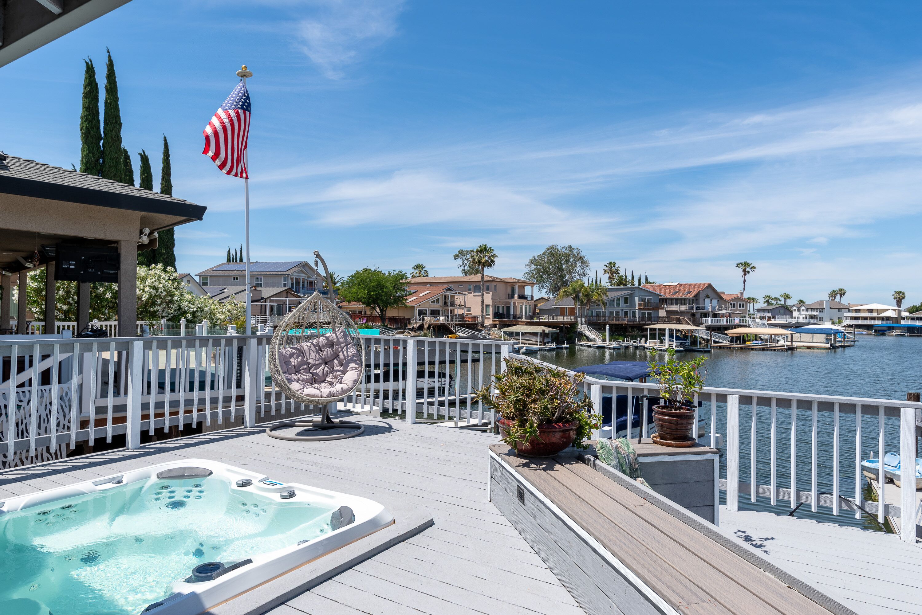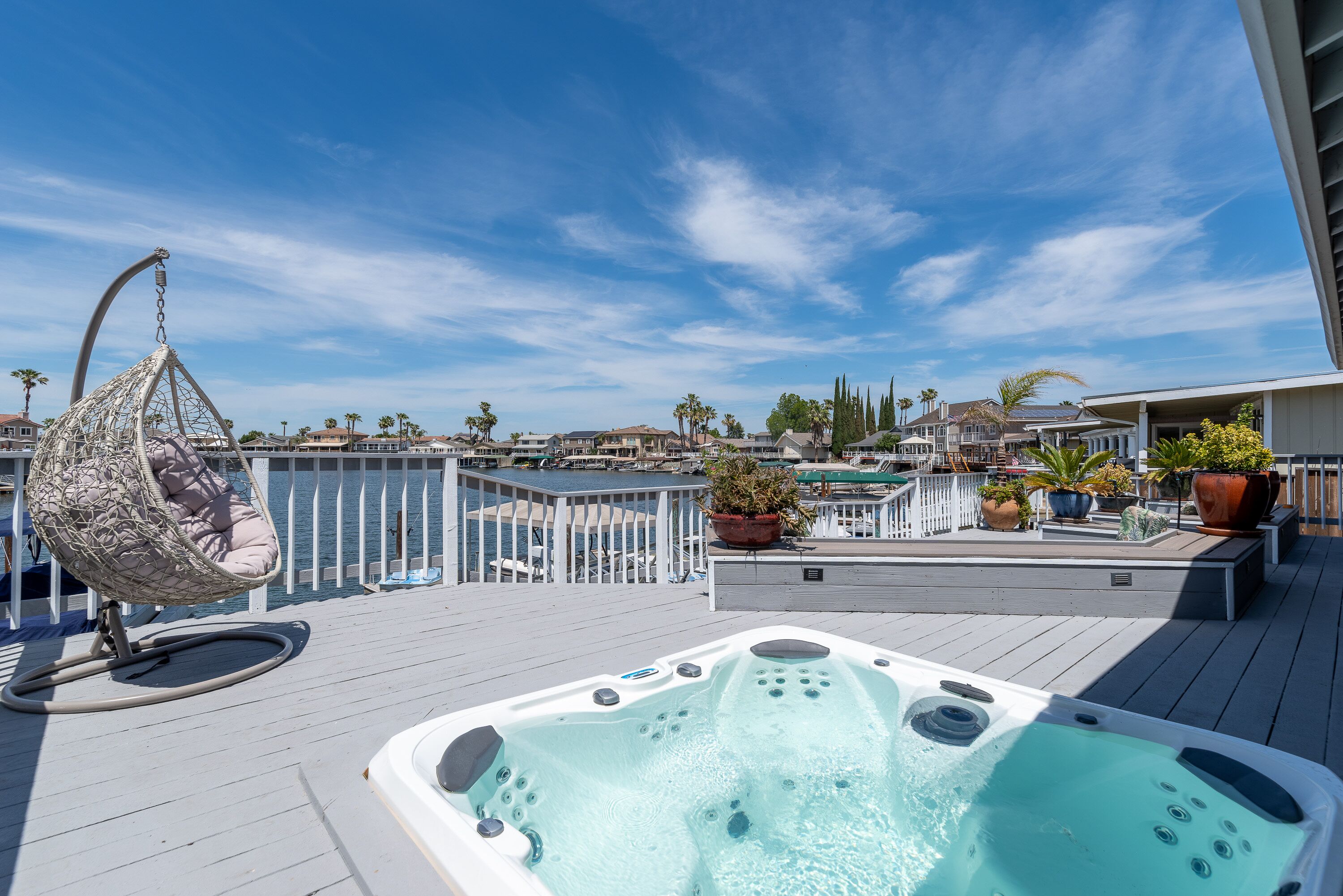 Waterfront Haven Take it easy at this unique and tranquil getaway. Right on the beautiful water of Discovery Bay with gorgeous views. This space is perfect for a family trip, weekend getaway, or WFH (additional work space with best access to Wi-Fi for strongest connectivity) with three rooms a spacious living room with an 86” tv for movie nights, dining room seating six and fully equipped kitchen. Large windows allow for gorgeous views from common areas. This home also offers a private deck (with a built in jacuzzi, lots of seating and outdoor dining area) the private dock is gated to keep little ones safe. There is a paddle boat available for your use as well! (comfortably seats 2 adults and 2 children). Lots of amenities- including extra dock space for a boat! Sunsets best viewed from the newly added in-deck spa 🌅