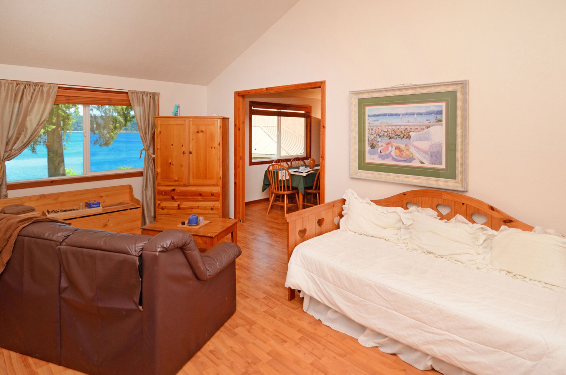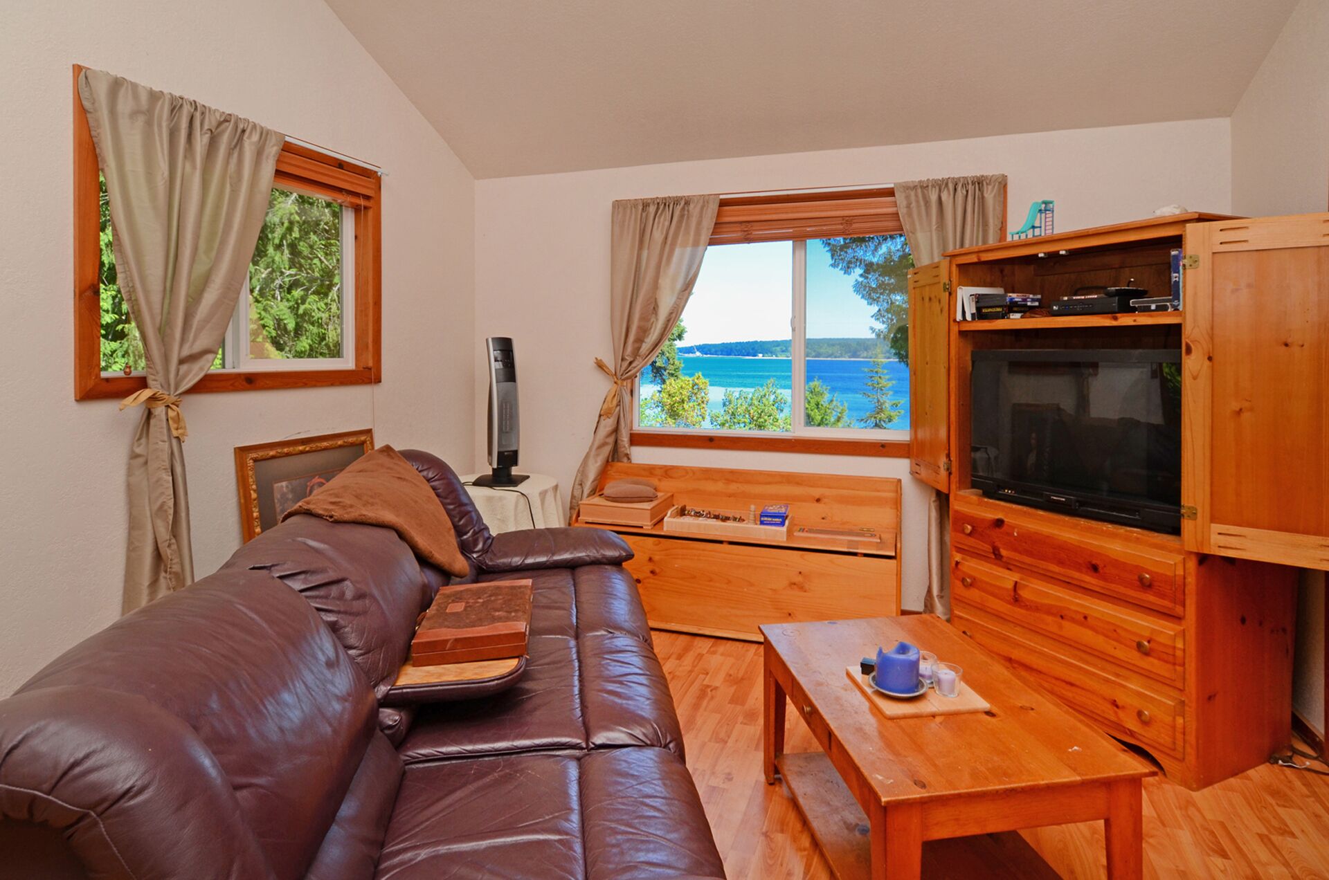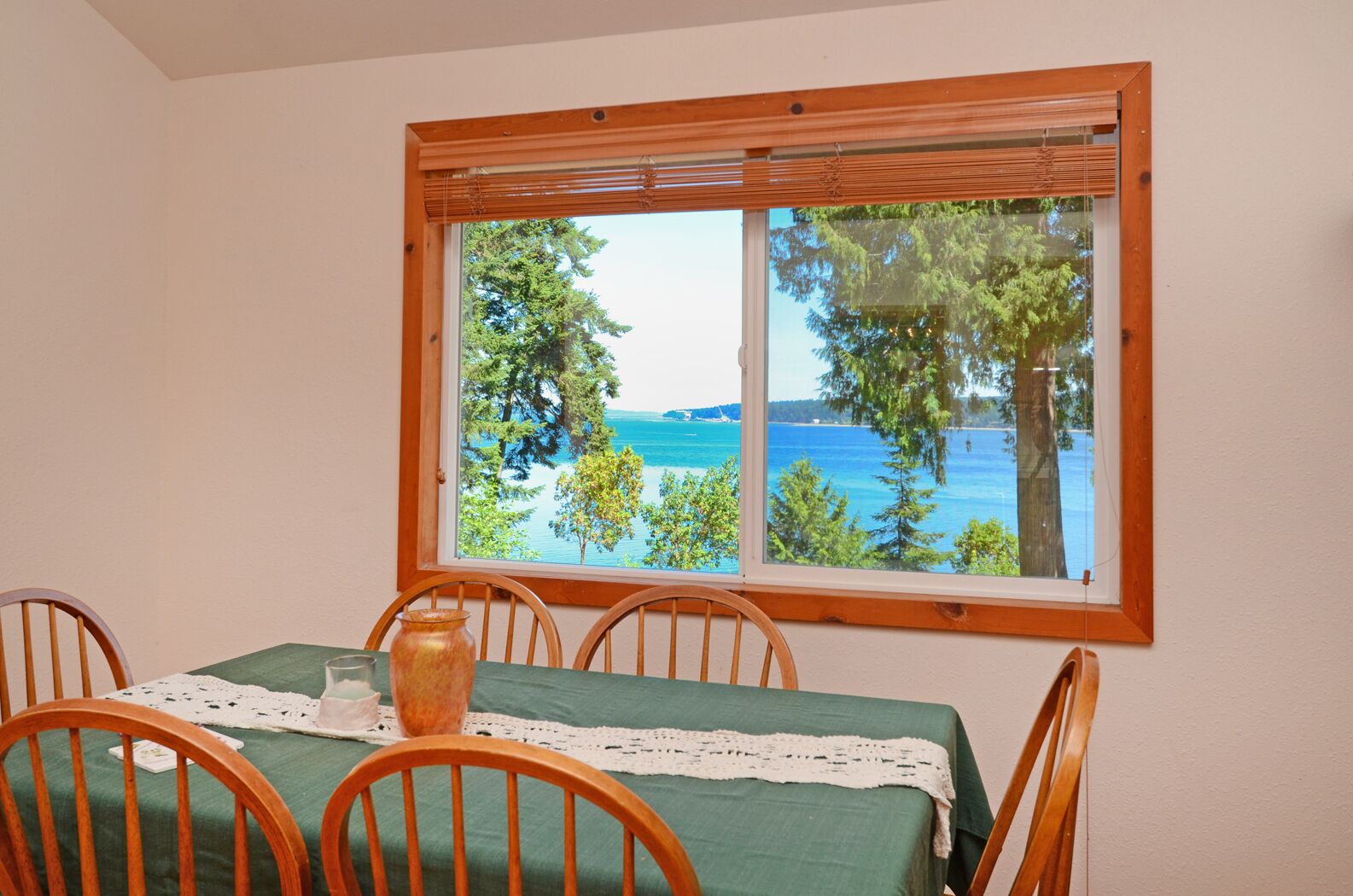 Stay in a lovely Beach Cottage w/ a beautiful private beach on Hazel Point! At the Hazel Point Beach Cottage You’ll enjoy a wonderful escape to a rustic and remote Hood Canal cottage with expansive views. This home boasts beautiful sunrises and a nice beach. The cottage features an outdoor firepit, charcoal BBQ, and native vegetation. Explore 500’ of private beach! This studio guest home will accommodate up to 6.Living and Sleeping AreaThe living and sleeping areas are combined to occupy one side of the studio. Relax on the leather sofa, enjoy satellite channels, or complete rest in a king-sized bed. A trundle bed and bunk beds are also present for additional guests. Bonus: this whole side of the cottage can be partitioned off from the kitchen and dining area by closing the convenient pocket doors.Kitchen & Dining AreaThe cottage has a country kitchen complete with full-sized fridge, stove/oven, and microwave. The kitchen has plenty of cabinet space and is well-equipped for your stay. Dining area accommodates six and completes this side of the cottage where you can enjoy your fresh shellfish while capturing breathtaking sights and sounds of Hood Canal. BathThe cottage has a nice shower, slate flooring, and is tastefully finished. Located within the bathroom is a full washer and dryer. LocationPristine Hood Canal is highly sought after for its abundant shellfish and warm clear waters. The trail to the beach can be a work out coming up, but is well worth the walk. The woods open up to 500’ of private beach which graduates to clam and oyster beds. If you stay during low tides, you’ll find many natural wonders on this beach – it’s perfect for beach combing and swimming. *Note: Owner’s family and cats are on property. Hazel Point Beach Cottage is a detached Additional Dwelling Unit next to owner’s home. Amenities650 sqft Home • Well-Equipped Kitchen • Cooking Utensils Provided • Refrigerator • Stove/Oven • Microwave • Coffee Maker • WiFi • Satellite TV/DVD • Linens Provided • Shared Gardens & Patio • Charcoal BBQ • Firepit • Parking • Buoy (w/additional disclaimer) • No Smoking - Pets Allowed $25 per pet per night$10 per person over 4 people, maximum up to 6 guestsOur office is staffed Monday - Friday 9-5 Pacific Time. Please try to make booking requests during those hours.