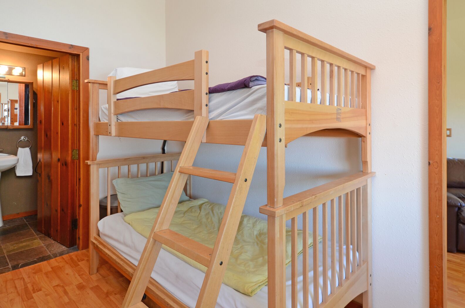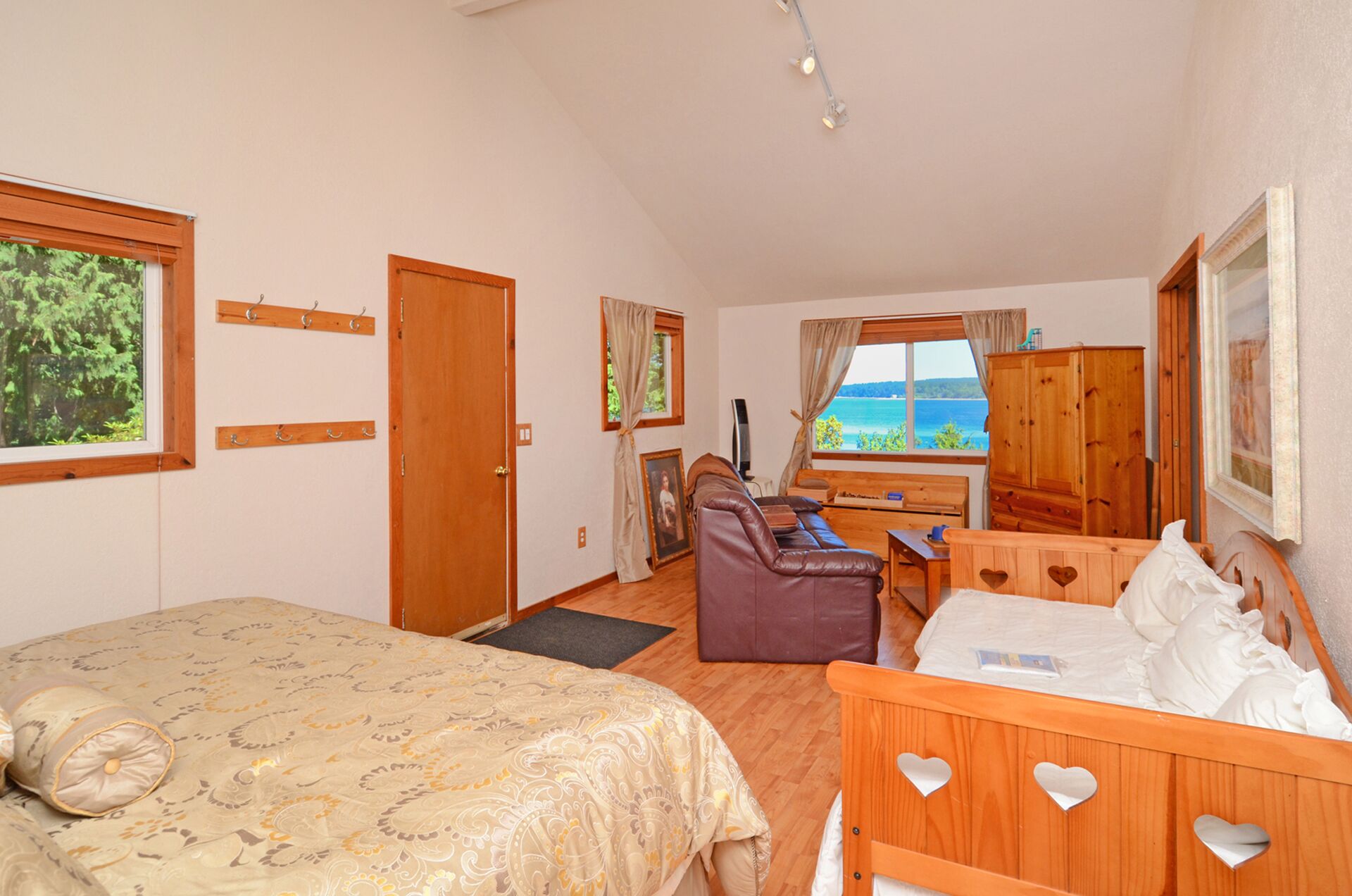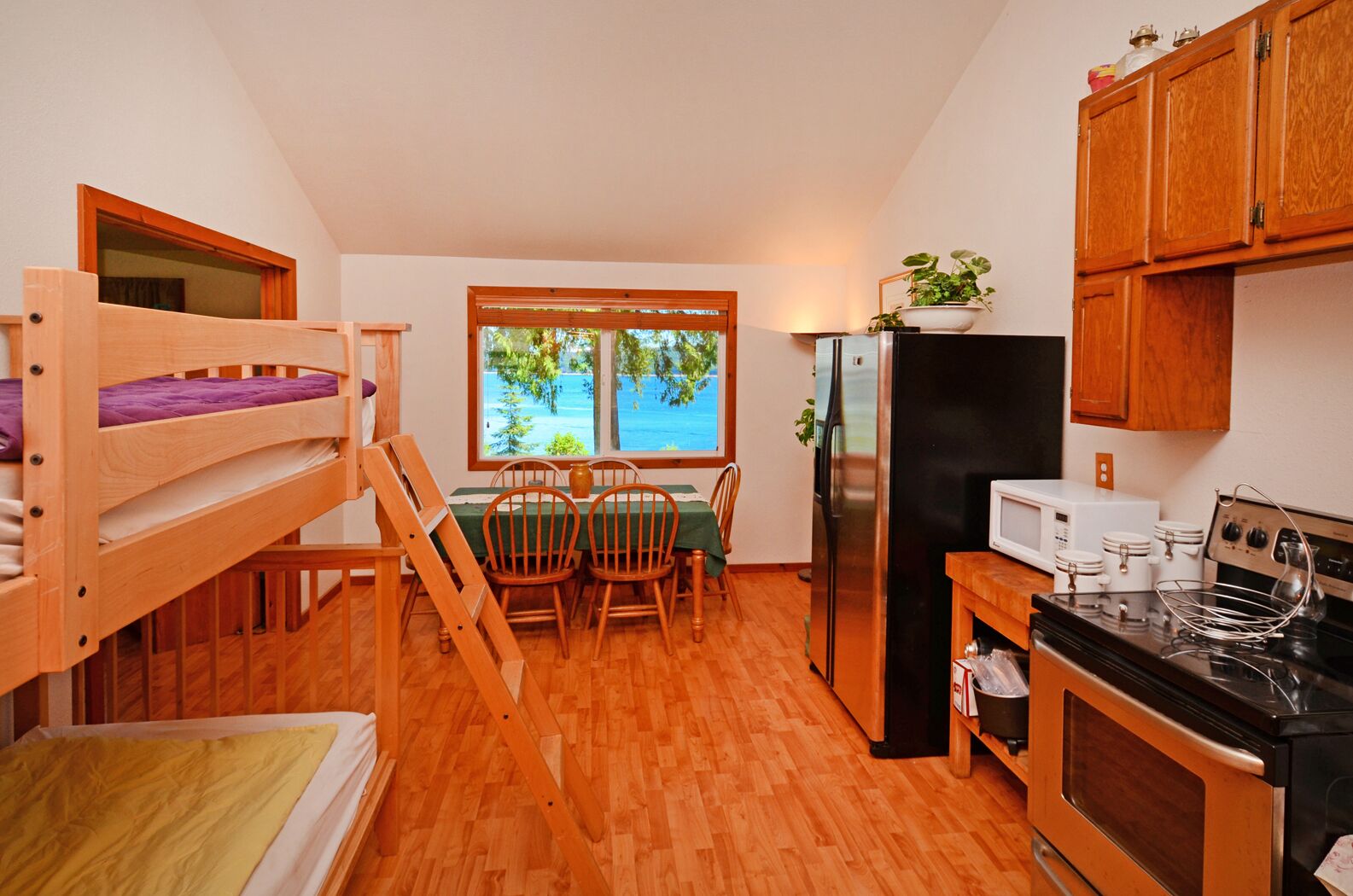 Stay in a lovely Beach Cottage w/ a beautiful private beach on Hazel Point! At the Hazel Point Beach Cottage You’ll enjoy a wonderful escape to a rustic and remote Hood Canal cottage with expansive views. This home boasts beautiful sunrises and a nice beach. The cottage features an outdoor firepit, charcoal BBQ, and native vegetation. Explore 500’ of private beach! This studio guest home will accommodate up to 6.Living and Sleeping AreaThe living and sleeping areas are combined to occupy one side of the studio. Relax on the leather sofa, enjoy satellite channels, or complete rest in a king-sized bed. A trundle bed and bunk beds are also present for additional guests. Bonus: this whole side of the cottage can be partitioned off from the kitchen and dining area by closing the convenient pocket doors.Kitchen & Dining AreaThe cottage has a country kitchen complete with full-sized fridge, stove/oven, and microwave. The kitchen has plenty of cabinet space and is well-equipped for your stay. Dining area accommodates six and completes this side of the cottage where you can enjoy your fresh shellfish while capturing breathtaking sights and sounds of Hood Canal. BathThe cottage has a nice shower, slate flooring, and is tastefully finished. Located within the bathroom is a full washer and dryer. LocationPristine Hood Canal is highly sought after for its abundant shellfish and warm clear waters. The trail to the beach can be a work out coming up, but is well worth the walk. The woods open up to 500’ of private beach which graduates to clam and oyster beds. If you stay during low tides, you’ll find many natural wonders on this beach – it’s perfect for beach combing and swimming. *Note: Owner’s family and cats are on property. Hazel Point Beach Cottage is a detached Additional Dwelling Unit next to owner’s home. Amenities650 sqft Home • Well-Equipped Kitchen • Cooking Utensils Provided • Refrigerator • Stove/Oven • Microwave • Coffee Maker • WiFi • Satellite TV/DVD • Linens Provided • Shared Gardens & Patio • Charcoal BBQ • Firepit • Parking • Buoy (w/additional disclaimer) • No Smoking - Pets Allowed $25 per pet per night$10 per person over 4 people, maximum up to 6 guestsOur office is staffed Monday - Friday 9-5 Pacific Time. Please try to make booking requests during those hours.