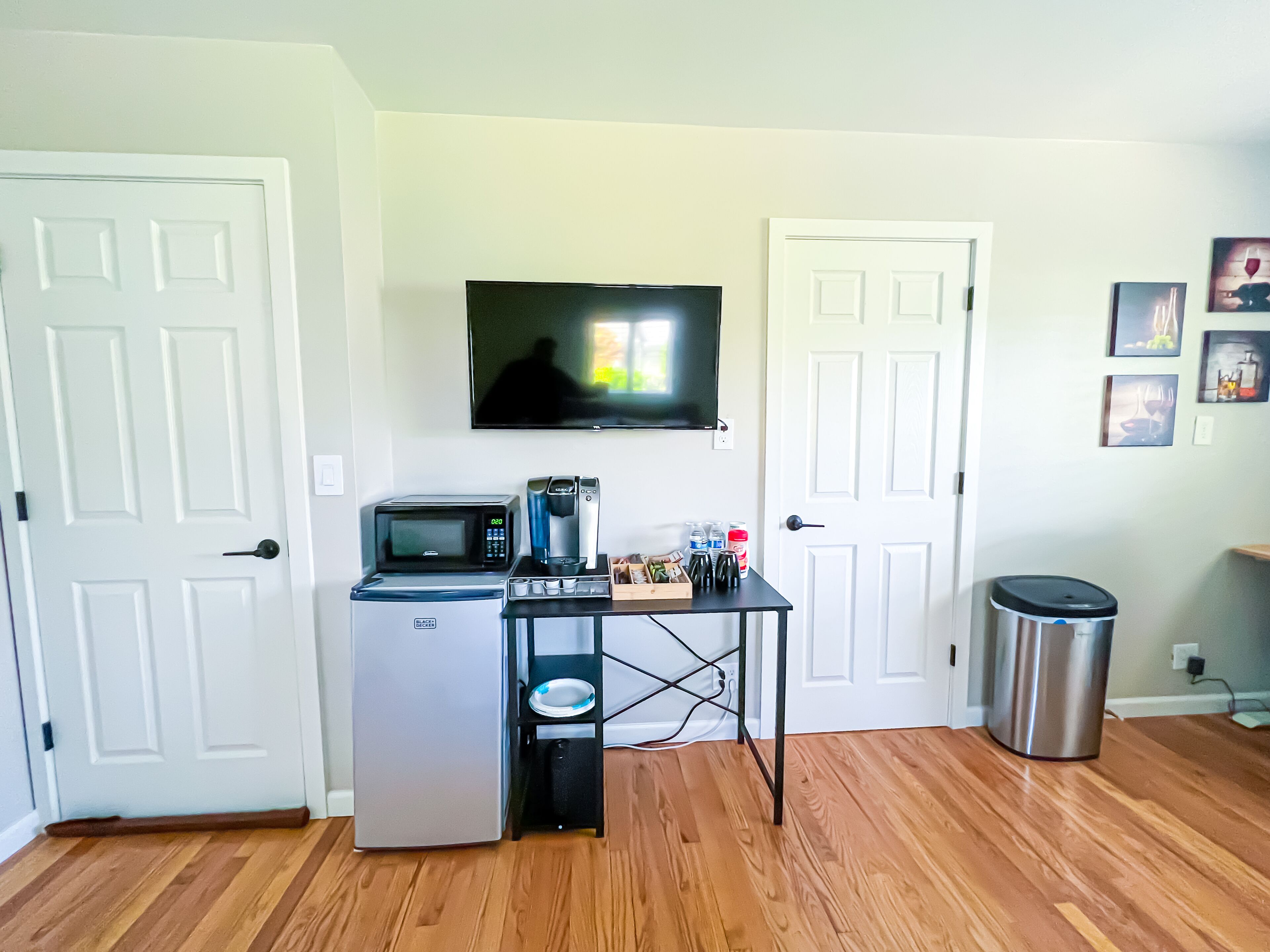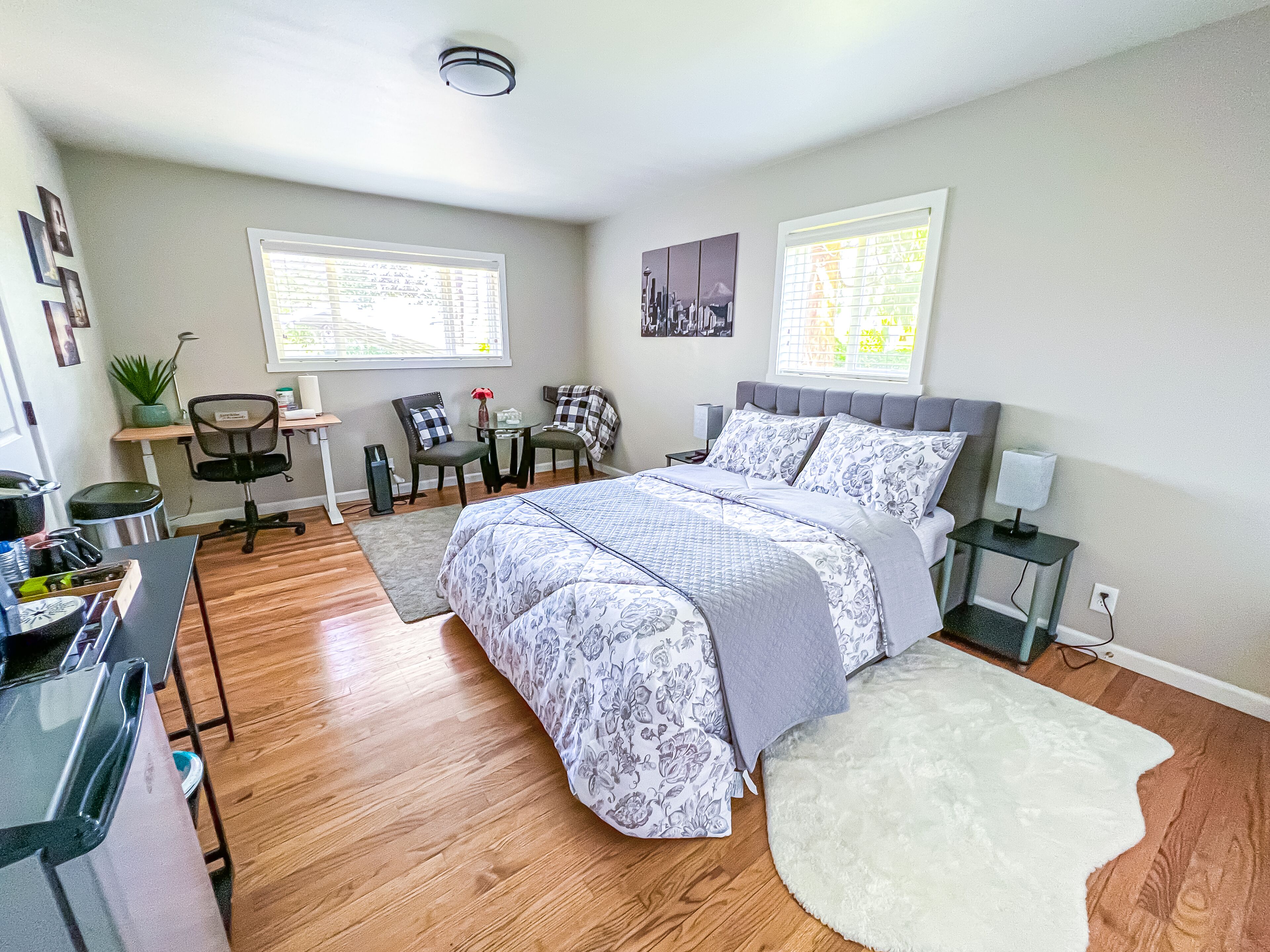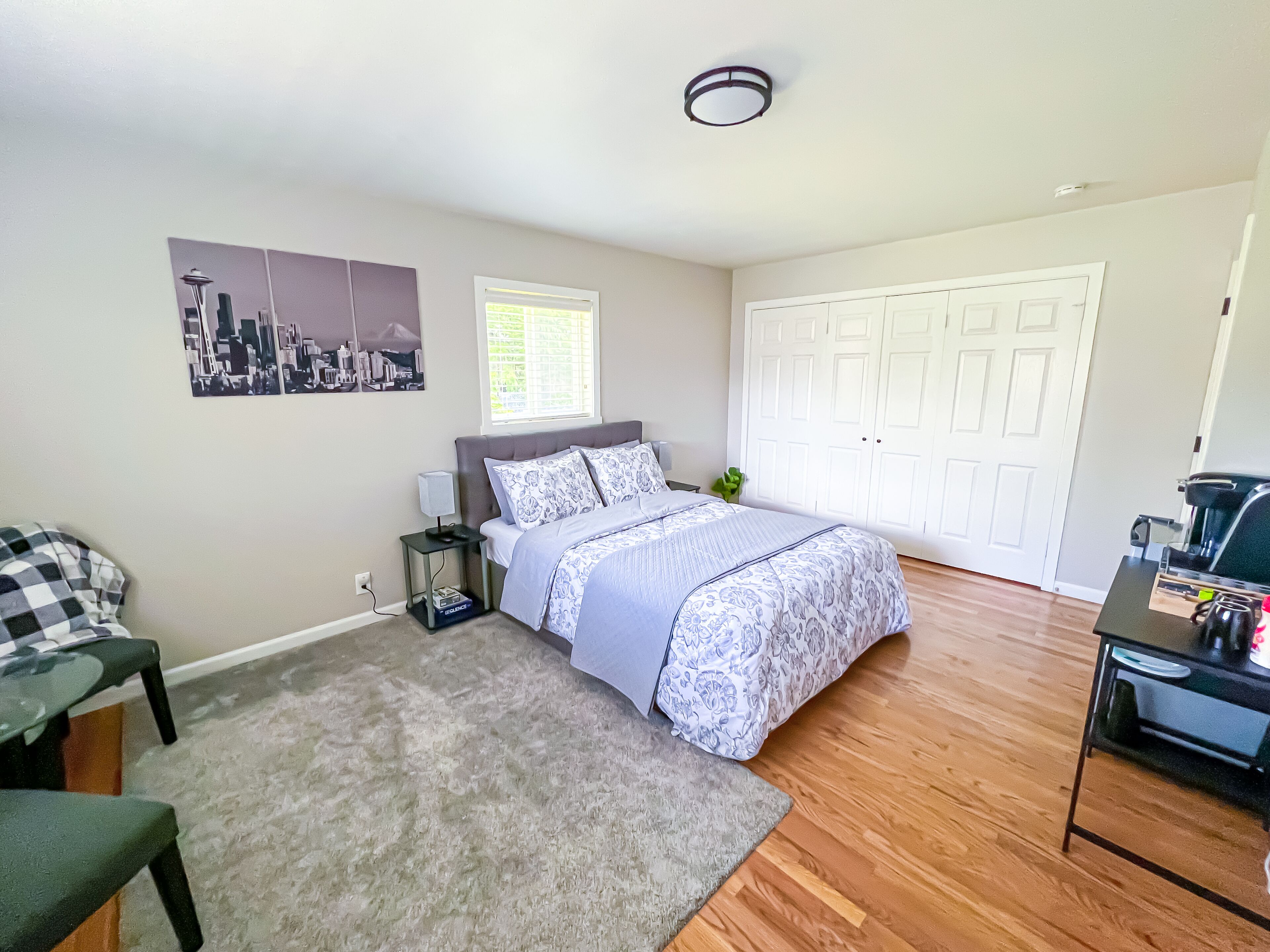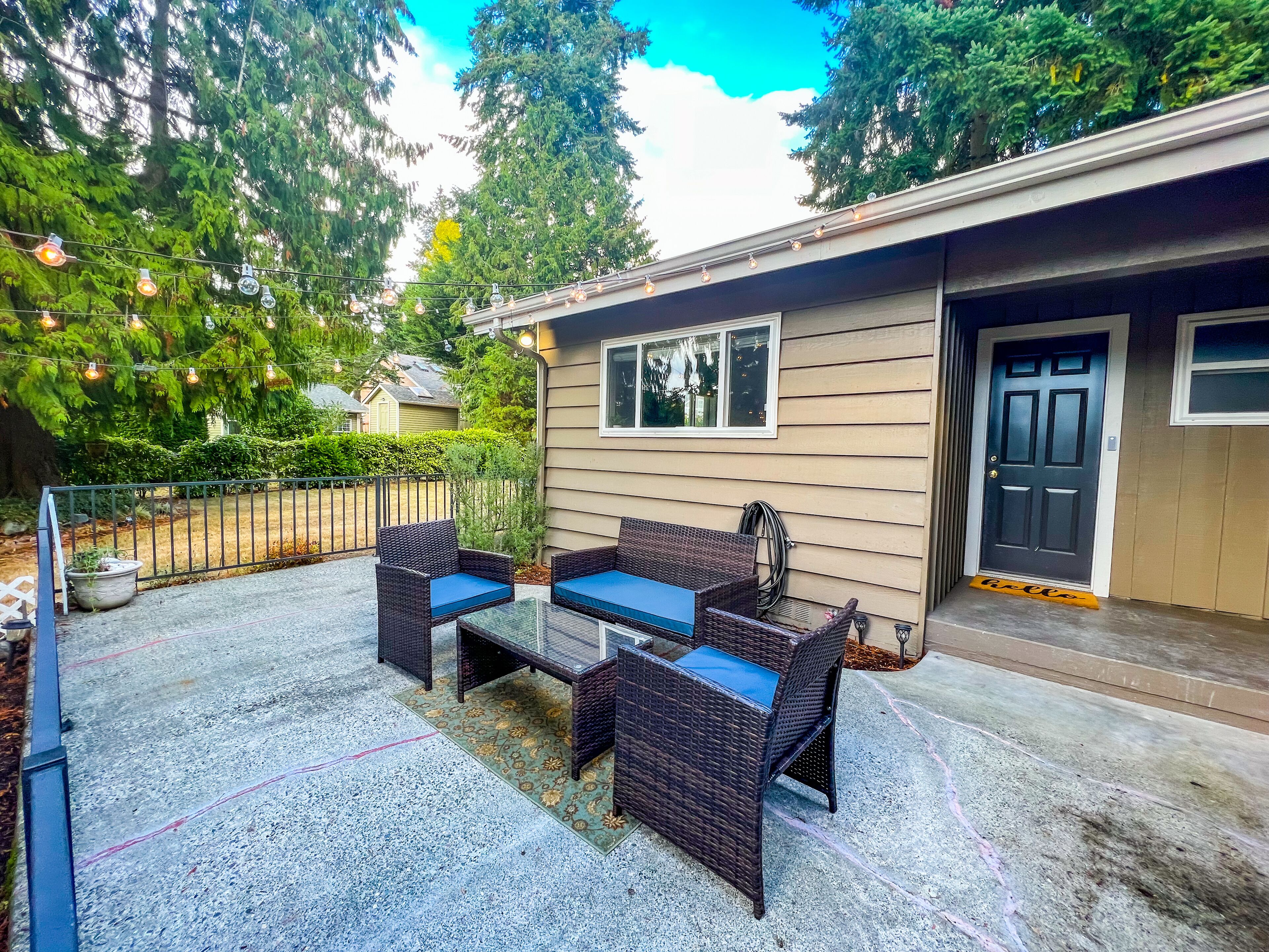 Entire private guest suite with private patio and backyard. Step into a bright and cozy private guest suite, complete with a comfortable bedroom, modern private bathroom, and a sunny patio that opens up to an enormous backyard. Get in touch with nature and enjoy a cozy evening around the fire pit in our secluded backyard. Stay connected with high-speed WiFi internet access and indulge in your favorite movies and TV shows on the 40-inch smart TV, with complimentary access to popular streaming services like Prime Video, and HBO Max. Our bathroom is well-equipped with towel sets, shampoo, body wash, hair dryer, and extra blankets for your comfort. Located just a short 3-minute drive away from Safeway, Dairy Queen, and various restaurants and shopping complexes in Kirkland, and only 6 minutes from the Bothell Marketplace, our location is perfectly situated for your convenience.Nestled in a peaceful residential area, our home sits on a quiet dead-end street that boasts minimal traffic, ensuring a serene and tranquil environment for your stay. There are multiple parks at walkable distance. Few of them offer trekking experience. Additionally, several parks are within walking distance, some of which offer fantastic trekking experiences, perfect for outdoor enthusiasts looking to explore the area's natural beauty.Discovering the vibrant neighborhood around our home is effortless for guests. With the option to walk, bike, or drive to nearby shops, restaurants, and attractions, you'll have everything at your fingertips. Plus, for those arriving by car, we offer the added convenience of complimentary covered parking right in front of the house, ensuring your stay is stress-free and worry-free.Few things about the suiteAlthough the guest access points and areas are separate, the suite is a part of our primary residence. While occasional footstep sounds may be heard, we have sound-dampening measures in place to minimize any disruption. Additionally, there is one security camera outside the suite securing the patio and parking area.