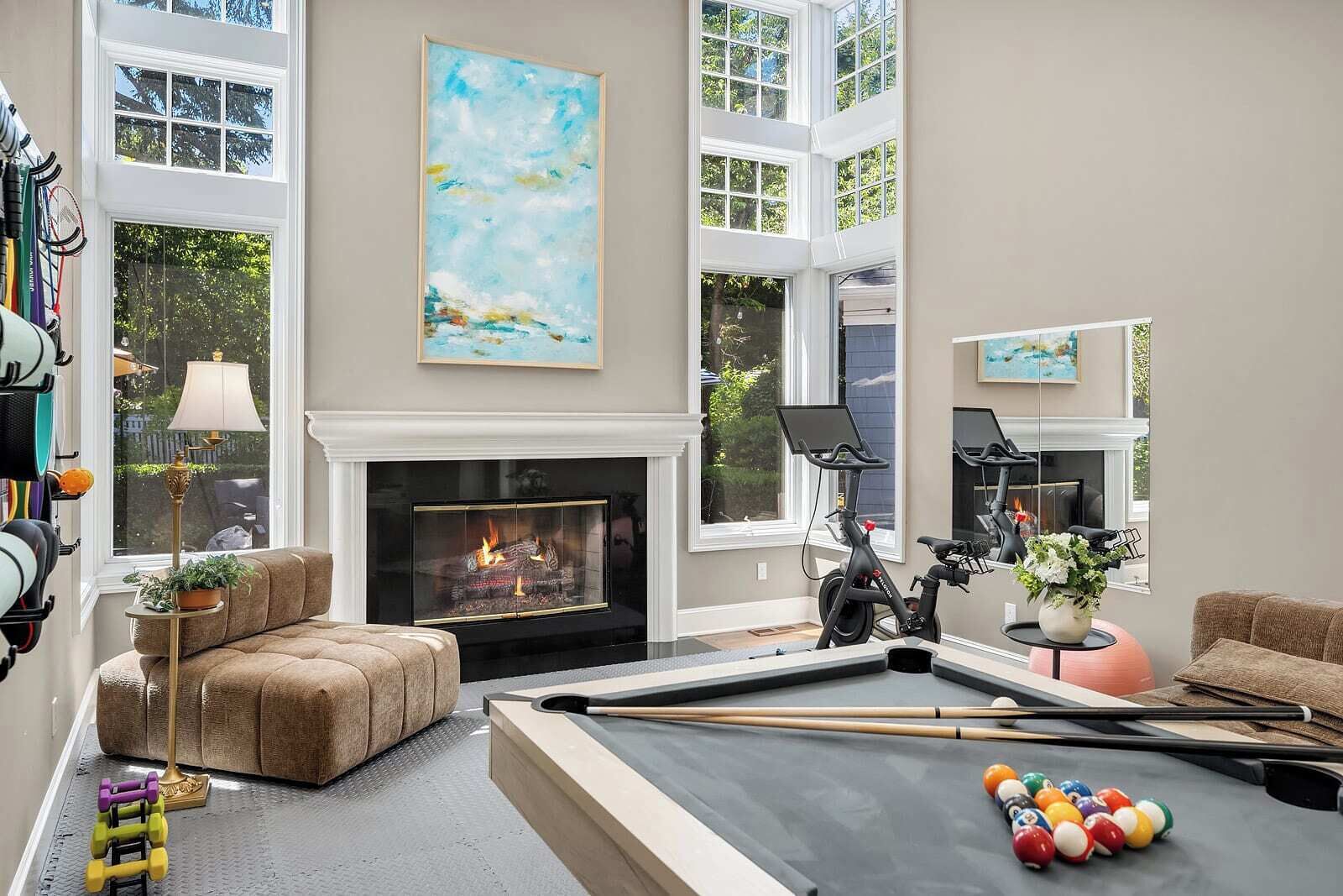 Medina Elegant 5BR Mansion|Lake Park & Bellevue DT Summary:Welcome to this luxurious 5-bedroom, 3.5-bathroom mansion in the prestigious Medina neighborhood, home to tech icons like Bill Gates and Jeff Bezos. Spanning 4860 sqft, this freshly repainted home boasts a charming garden. Enjoy the elegant living room with a vintage dining room, and an office for a vibrant atmosphere. The wellness room with a pool table offers entertainment for all. Just 7 minutes' drive to Bellevue Square. Experience sophistication and tranquility in this opulent estate.The Space:The spaceFLOOR PLANFirst Floor: Entertainment/Fitness Room, Living Room, Kitchen, Dining Room, Office 1, Laundry Room, Powder Room, 3-car Garage, Master Bedroom with en-suite Bathroom. Second Floor: Office 2, Bedroom 2, Bedroom 3, Bedroom 4 with ensuite Bathroom, Bedroom 5, Full Bathroom. First FloorBedroom 1 – 1 King size bedSecond FloorBedroom 2 – 1 Queen size bedBedroom 3 – 2 Full size bedsBedroom 4 – 1 King size bedBedroom 5 – 1 King size bed & 1 Twin Size bed & 1 baby crib★ MAIN FLOOR ★★ LIVING ROOM ★Our ample living room is an ideal setting for a family gathering. Sit back and decide if you will watch a movie or have a relaxing time reading. Not to mention YouTube TV with 80+ live channels, Netflix, and Disney+, they are all free to you.✔ Comfortable Sofas✔ Board games✔ Smart TV✔ Fireplace★ KITCHEN ★The open-plan fully equipped kitchen with a complete coffee setup with three brewing options allows you to add your own personality to each beverage. State-of-the-art cooking amenities and granite countertops allow for the effortless and fun preparation of your favorite meals.✔ Microwave / Stove / Oven✔ Refrigerator / Freezer✔ Dishwasher✔ Toaster✔ Sink - Hot & Cold Water✔ Silverware✔ Pots & Pans✔ Keurig Coffee Maker / Espresso Maker / French Press✔ K-Cups, Ground Coffee, Tea Bags, Sugar and Cream.✔ Spacious Countertop with seating for 2Enjoy your breakfast with an extraordinary view to the garden.✔ Breakfast Nook with seating for 4★ DINING ROOM ★Enjoy your meal at our elegant dining room equipped with a beautiful chandelier✔ Dining Table with Seating for 10★ GAME / WELLNESS ROOM ★An inviting game room featuring a pool table and exercise equipment for your fitness goals, never miss a workout session!✔ Pool table✔ Stationary Bike✔ Dumbbells✔ Jumping Rope✔ Resistance Bands✔ Yoga Gear✔ Ping Pong and Badminton Equipment★ OFFICE 1 ★Our luxurious home office with rich wood paneling and ample natural light, designed for productivity✔ Leather office chair✔ Glass top office desk✔ Built-In shelves and cabinets♛ Powder Room ♛✔ Vanity / Mirror / Toilet✔ Essential Toiletries (including cotton pads and cotton balls, Flosser, and Q-tips)♛ Laundry Room ♛✔ Washer✔ Dryer✔ Laundry Nook★ MASTER BEDROOM ★ (FIRST FLOOR)✔ King sized bed with Pillows, Linens, and Sheets✔ Walk-In Closet with Hangers and Shelves✔ Two Ottomans✔ Piano✔ French door for access to the outdoor seating lounge✔ Ensuite Bathroom♛ Master Bathroom ♛✔ Large Shower Cabin✔ Bathtub✔ Vanity / Mirror / Toilet✔ Essential Toiletries (including cotton pads and cotton balls, Flosser, and Q-tips)★ SECOND FLOOR ★★ BEDROOM 2 ★✔ Queen sized bed with Pillows, Linens, and Sheets✔ Closet with Hangers and Shelves✔ Two upholstered benches★ BEDROOM 3 ★✔ Two Full sized beds with Pillows, Linens, and Sheets✔ Closet with Hangers and Shelves✔ Seating area for two with small table★ BEDROOM 4 ★✔ King sized bed with Pillows, Linens, and Sheets✔ Closet with Hangers and Shelves✔ Armchair with Ottoman✔ Ensuite bathroom♛ En-suite Bathroom 2 ♛✔ Large Shower Cabin✔ Vanity / Mirror / Toilet✔ Essential Toiletries (including cotton pads and cotton balls, Flosser, and Q-tips)★ BEDROOM 5 ★✔ King sized bed with Pillows, Linens, and Sheets✔ Twin sized bed with Pillows, Linens, and Sheets✔ Closet with Hangers and Shelves✔ Full-sized Baby Crib✔ Armchair with Ottoman✔ Balcony with seating for 2 and small table♛ Bathroom 3 ♛✔ Shower✔ Vanity / Mirror / Toilet✔ Essential Toiletries (including cotton pads and cotton balls, Flosser, and Q-tips)★ OUTDOOR ★You can change your settings by simply stepping out onto our spacious backyard, spending some peaceful and relaxing time on our comfortable chairs, a great place to meditate or read a book!✔ Ample Outdoor Seating Lounge for 8✔ Outdoor dining table with seating for 6✔ Fire Pit✔ Swing✔ Fire PitGuest Access:Guest accessThe house is exclusively yours, without interruption for the duration of your stay, so relax, unwind, and make yourself at home. You can easily change your settings by stepping out to the lush and private backyard. It features a sun-soaked patio. Relax with your family and friends around the fire pit. Our home is also equipped with:✔ High-Speed Wi-Fi✔ Washer✔ Dryer✔ Parking garage for 3 cars✔ Spacious driveway for multiple vehiclesThe Neighborhood:The NeighborhoodNestled in the heart of King County, Medina the neighborhood offers an exclusive and tranquil escape with luxurious homes, lush greenery, and breathtaking views of Lake Washington. This affluent neighborhood is the home of the highest entrepreneurship icons —such us Bill Gates and Jeff Bezos— and provides a serene residential setting while being conveniently close to downtown Bellevue and Seattle. Medina’s elegant single-family homes, spacious yards, and waterfront properties reflect its upscale lifestyle, making it a highly sought-after destination for short-term renters seeking privacy and comfort.✔ Medina Park – 3 min drive✔ Medina Beach Park – 3 min drive✔ Clyde Beach Park – 3 min drive✔ Overlake Golf and Country Club – 3 min drive✔ Meydenbauer Bay Park – 4 min drive✔ Bellevue Square – 6 min drive✔ Bellevue Downtown Park – 6 min drive✔ Bellevue Arts Mu