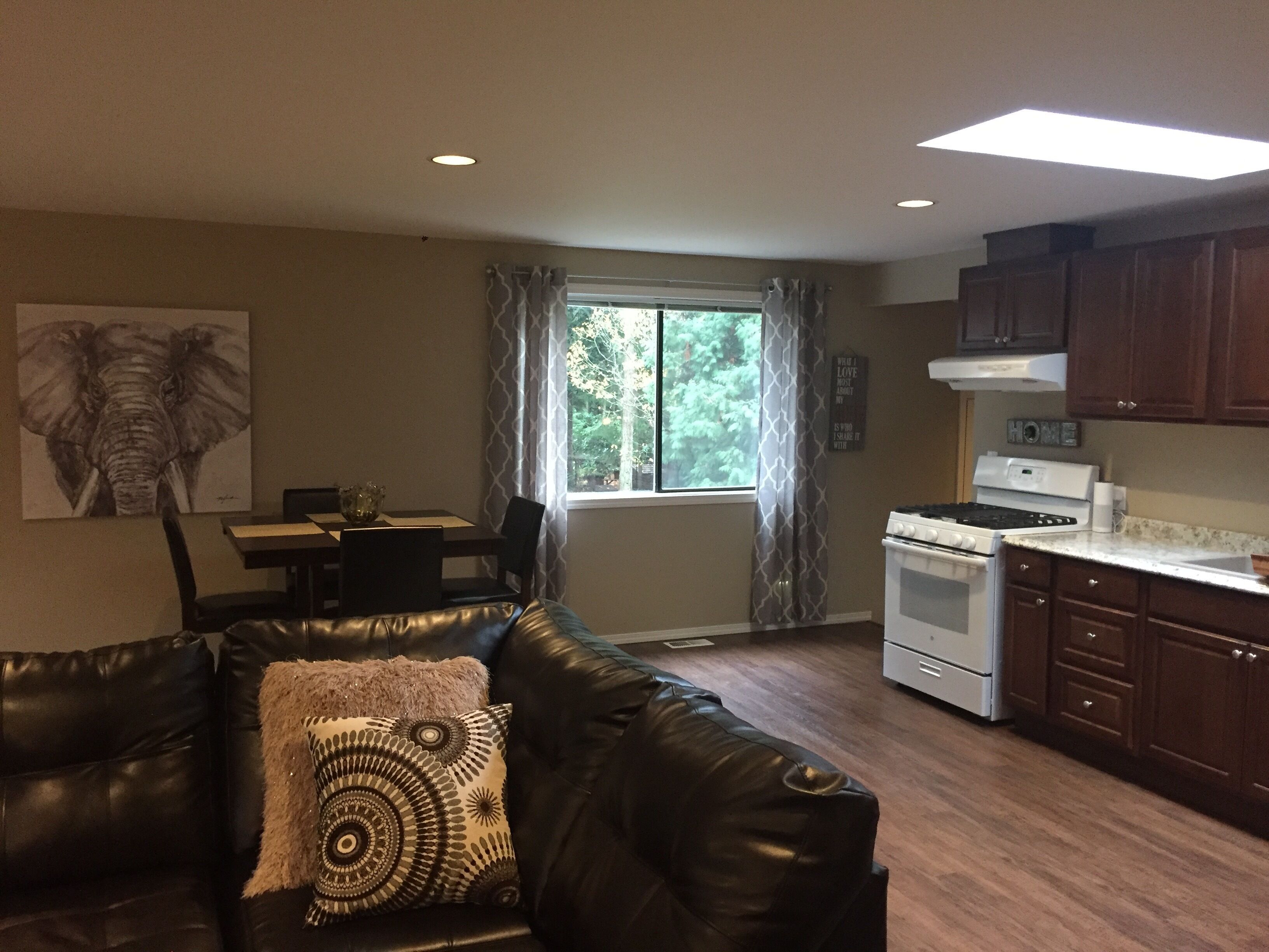 Wine Country Hollywood Hill Home In Woodinville Hollywood Hill in Woodinville, WA is a unique suburban area on the eastside (approximately 25 minutes to Seattle). Woodinville is known for it's hundreds of different wineries, breweries and restaurants. This is minutes away from the very popular Chateau St. Michelle Winery where many concerts are performed. Hollywood Hill Schoolhouse is located at the bottom of our hill and the location of many weddings and other events. We are extremely close to the Burke Gilman trail which is a 27 mile multi-use recreational trail great for walking, running and bike riding. This property is located down a beautiful, secluded, wooded, private drive and is situated on a quiet acre of land. This recently remodeled detached 1,200 square foot space is very comfortable and modern. This home has two bedrooms, one master with a queen size bed. The other bedroom has a full sized bed and is in a loft. There is one nice sized bathroom with shower. Skylights let in the natural light in several rooms. The kitchen has a new gas range / oven, Bosch dishwasher, garbage disposal, refrigerator and microwave. There are plenty of kitchen cabinets for storage with Keurig coffee maker and toaster. The laundry room has ample storage to hang clothes and includes a washer and dryer. Nearby Activities Include:Walking/runningHiking (trails nearby)BicyclingGolfTennisSkating or RollerbladingHorseback ridingHot Air BallooningSightseeingShoppingAntique ShoppingAMC Lowes Woodinville Movie TheaterHealth / Beauty SpaLibraryPlaygroundsRestaurantsWinery ToursChurchesConcertsSuitability:Long-Term Renters are WelcomeMust stay minimum 2 days2 Bedrooms, Sleeps 4Master Bedroom - 1 Queen Sized BedLoft Bedroom - 1 Full Sized BedNo smoking or drugsMay consider pets under certain circumstances at additional cost (message for details)Self check-inNo burning candles or incenseSome parties may be allowed as long as nothing illegal takes place and nothing is broken or damaged (and noise is under control) - Per Owners DiscretionPlease be kind and don't leave dirty dishes on the counter/sink. We would appreciate if you didn't wear shoes inside for cleanliness and sanitary reasons.Owner resides in the main detached home on the property along with 2 rescued Golden Retrievers that will always be in separated fenced area(s). Both girls (Kona and Daisy) are very friendly and excited to meet their new guest.