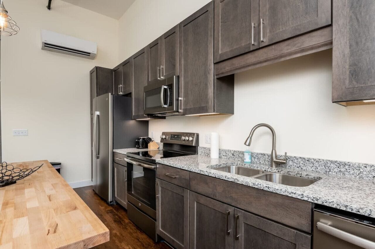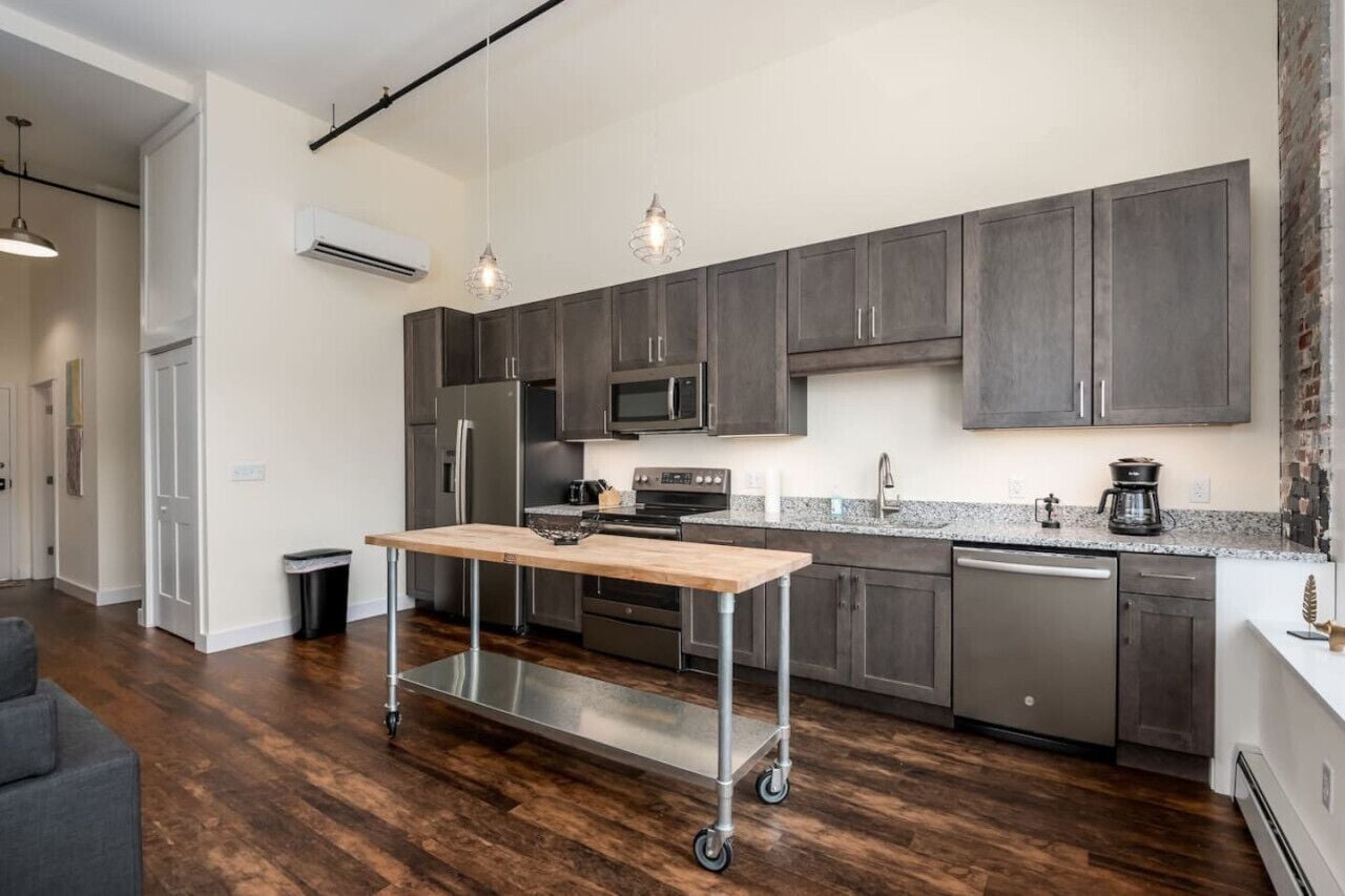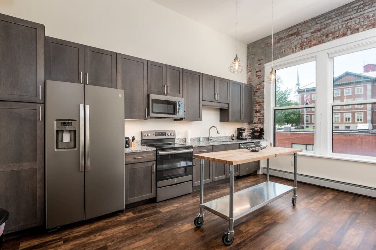 Downtown Retreat: Apartment in the Heart of Bangor Prepare to be amazed in Bangor! Enter this newly renovated modern apartment and be captivated by its exposed brick, industrial-style lighting, and effortlessly chic decor. You'll feel like you've stepped into the pages of a magazine. And those expansive windows? They provide street views that transport you into a cinematic scene! Grab a coffee, activate your preferred streaming service on the 50-inch smart TV, and prepare to embrace your finest moments in this urban oasis!!*****Important: Before you arrive you will be asked to complete guest verification through third-party provider Superhog. This is done to ensure we are keeping up-to-date with short-term rental regulations as well as providing both our guests and our properties with extra protection. Superhog will contact you via email and/or text to complete the verification. Please do so prior to arriving at the property to enable a quick and easy check-in process. You will also be given the choice between a security deposit or a non-refundable damage waiver.No smoking, parties or anything that will disrupt or bother other building residents.House Rules; 1.) No smoking 2.) No parties 3.) Keep noise to a reasonable level 4.) Number of overnight guests should not exceed registered number or maximum guests 5.) Must check out by 11 unless other arrangements with host have been made or there will be a charge