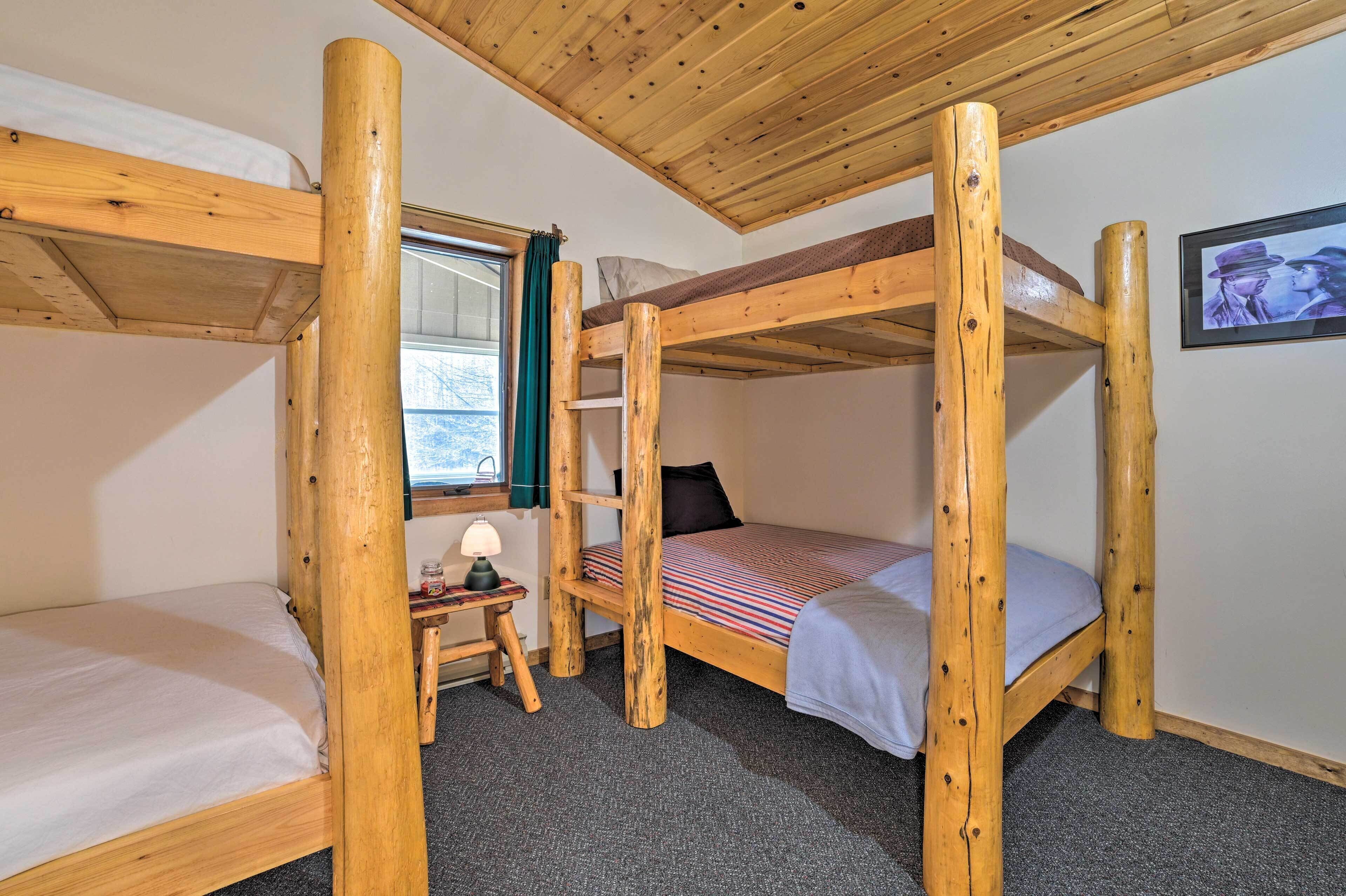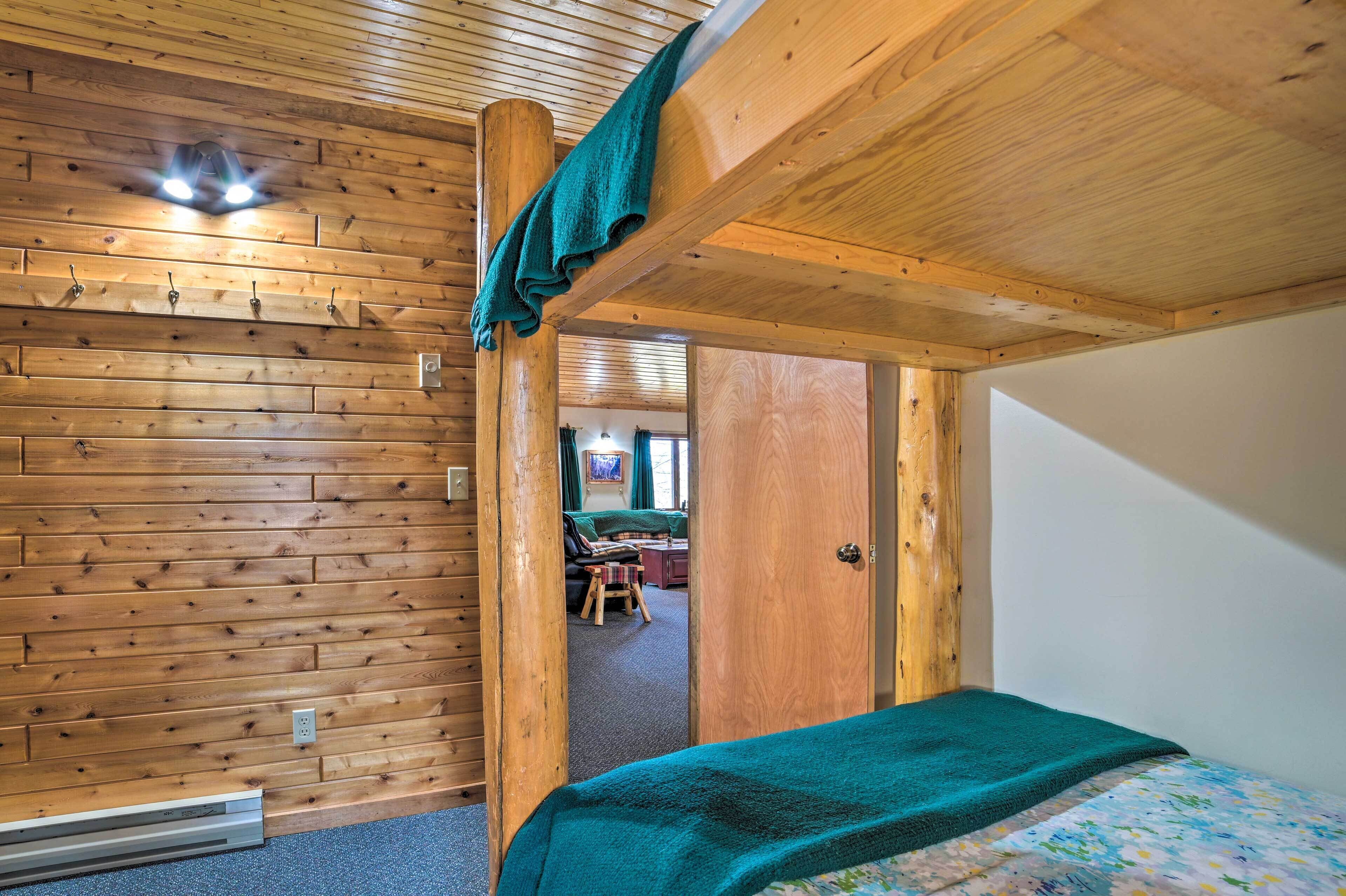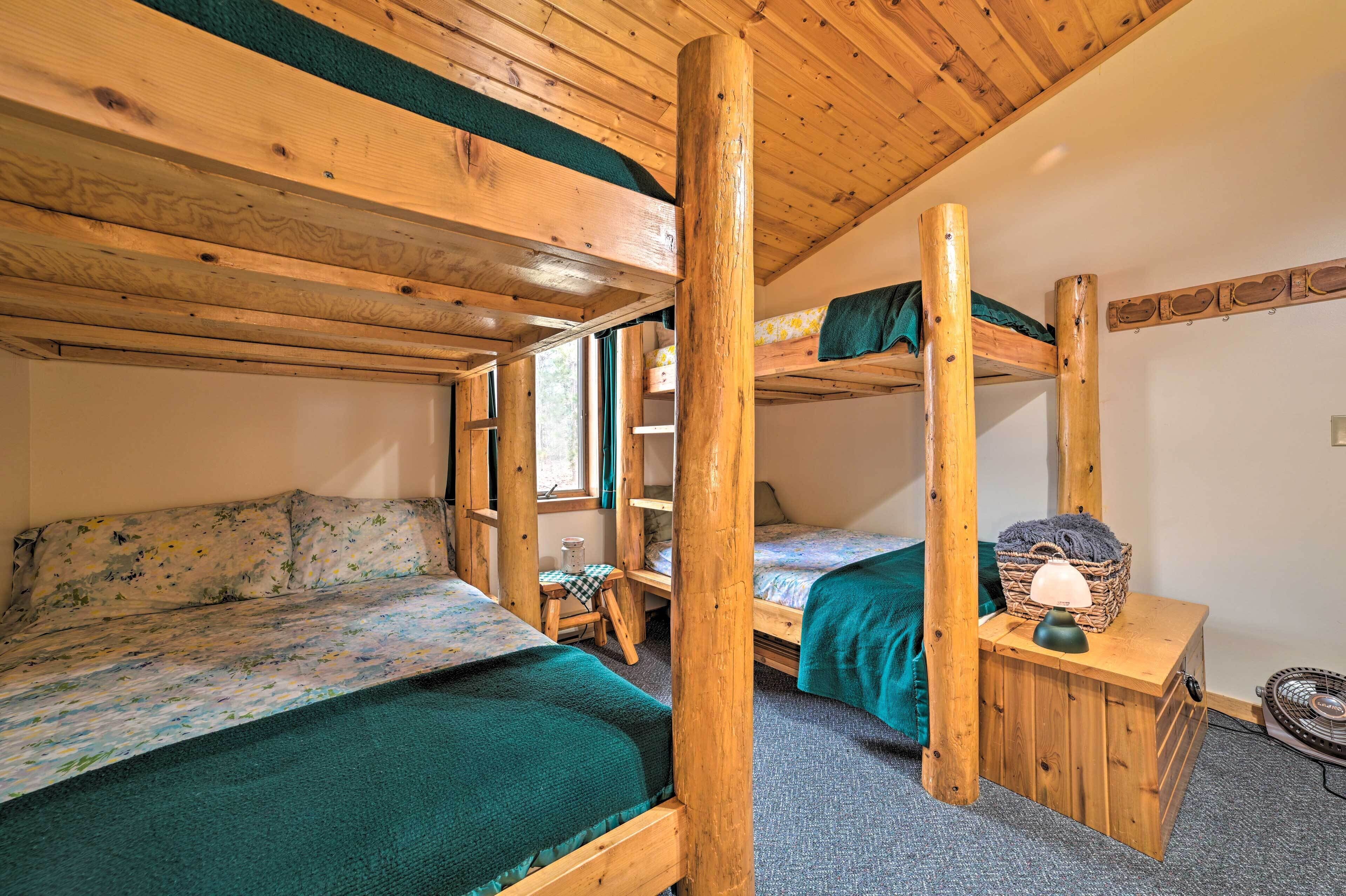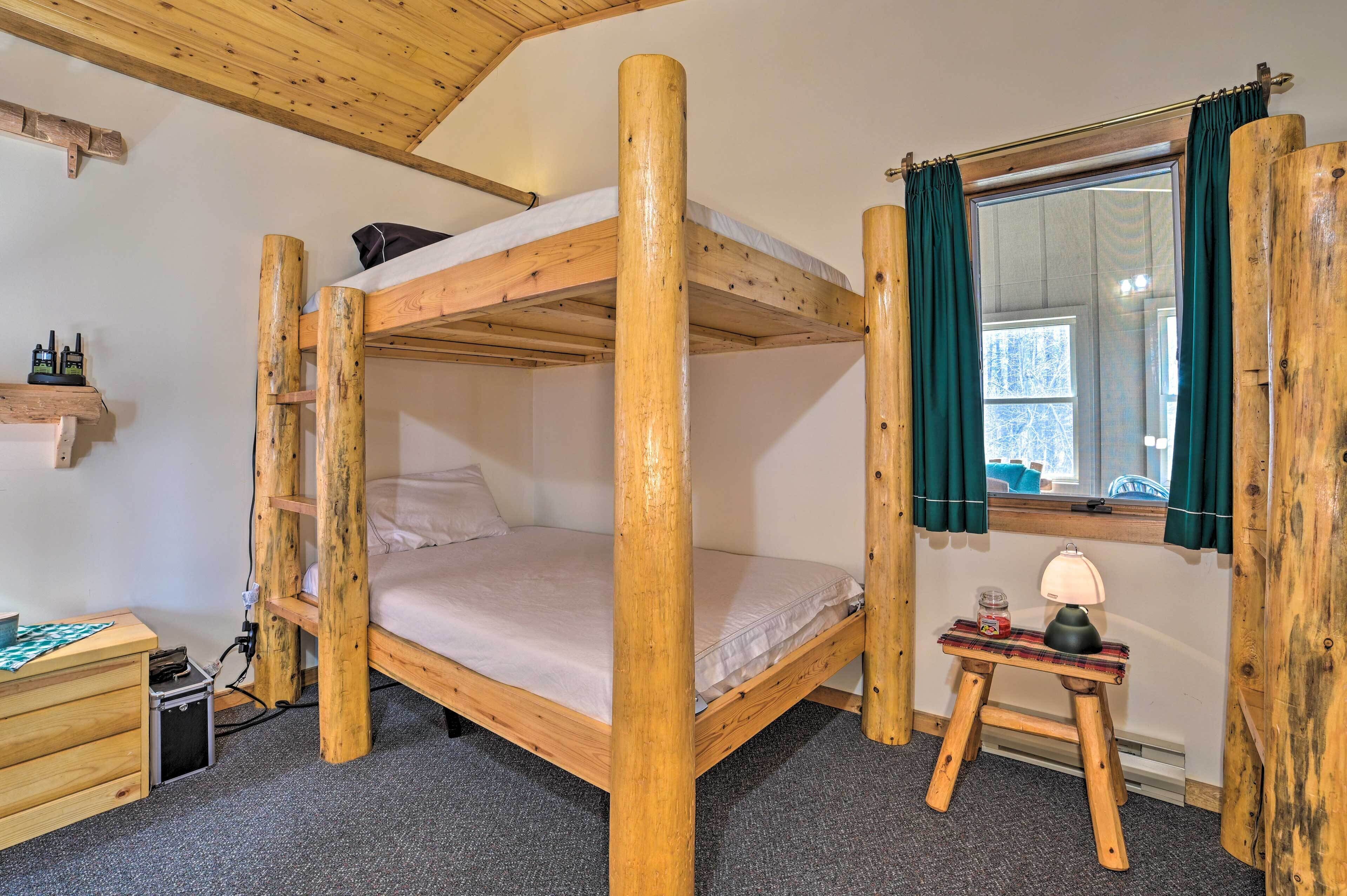 Cabin on 10 Acres Surrounded by National Forest! Enjoy a stay at this secluded Moran vacation rental located on 10 beautifully wooded acres! Open year-round, this 2-bed, 1-bath Trout Lake retreat features a beautiful great room with a cast iron stove, full kitchen, and large screened porch. This woodsy cabin is nestled between State and National forests, great fishing spots, and snowmobile trails — hop on your snowmobile or ATV right from the front door! Go for a day hike or picnic, then finish your trip with a ferry ride to Mackinac Island.-- THE PROPERTY --Walk to Trails | Wood-Burning Fireplace | 10 Private, Wooded Acres | Webber Charcoal Grill (Charcoal Not Provided)Bedroom 1 (Snowchaser): 2 Full Bunk Beds | Bedroom 2 (Casa Blanca): 2 Full Bunk BedsINDOOR LIVING: Fireplace - Vermont Casting Iron Wood burning stove w/ catalytic converter, dining table, ceiling fans, books, board games, vaulted ceilings, open ceiling concept for winter heat efficiency (bedrooms), natural pine finishesOUTDOOR LIVING: Screened-in porch, fire pit, wooded views, patio furniture, dining setKITCHEN: Well-equipped, dishware & flatware, microwave, drip coffee maker, cooking basics, Crockpot, toaster, and pancake griddleGENERAL: Free WiFi, towels/linens, electric heating, keyless entryFAQ: Stairs required to enter, each full bed accommodates 2 adults, no A/C, additional bedding/warm clothes recommended in winterPARKING: Driveway (4 vehicles)-- THE LOCATION --LAKES: Trout Lake (6.1 miles), Lake Michigan (26.3 miles), Lake Superior (32.7 miles)OUTDOOR ADVENTURE: Hiking trails (walking distance), Hiawatha National Forest (11.6 miles), Fiborn Karst Preserve (15.7 miles), Castle Rock (25.4 miles), Soo Locks (43.4 miles), Tahquamenon Falls (53.1 miles), Oswald Bear Ranch (53.4 miles), Pictured Rocks (103 miles)MACKINAC ISLAND: Star Line Mackinac Island Ferry - St. Ignace (28.3 miles), shopping, dining, hiking, biking, horse-drawn carriage ridesAIRPORT: Chippewa County International Airport (26.6 miles)-- REST EASY WITH US --Evolve makes it easy to find and book properties you’ll never want to leave. You can relax knowing that our properties will always be ready for you and that we’ll answer the phone 24/7. Even better, if anything is off about your stay, we’ll make it right. You can count on our homes and our people to make you feel welcome--because we know what vacation means to you.-- POLICIES --- No smoking- No pets allowed- No events, loud parties, or large gatherings- Must be at least 30 years old to book- Additional fees and taxes may apply- Photo ID may be required upon check-in- NOTE: Firewood is not provided, but may be purchased at local stores- NOTE: The property requires 5 steps to access- NOTE: This property runs on a septic system, thus it is critical no items (feminine products, floss, food, toys, etc) other than toilet paper be flushed down the toilet, and oil and grease must not be put down the drains- NOTE: There is no A/C as the property is a cabin- NOTE: During the winter, it is recommended to bring extra bedding and warm clothes- NOTE: The bedrooms have an open ceiling concept for heat efficiency during winter