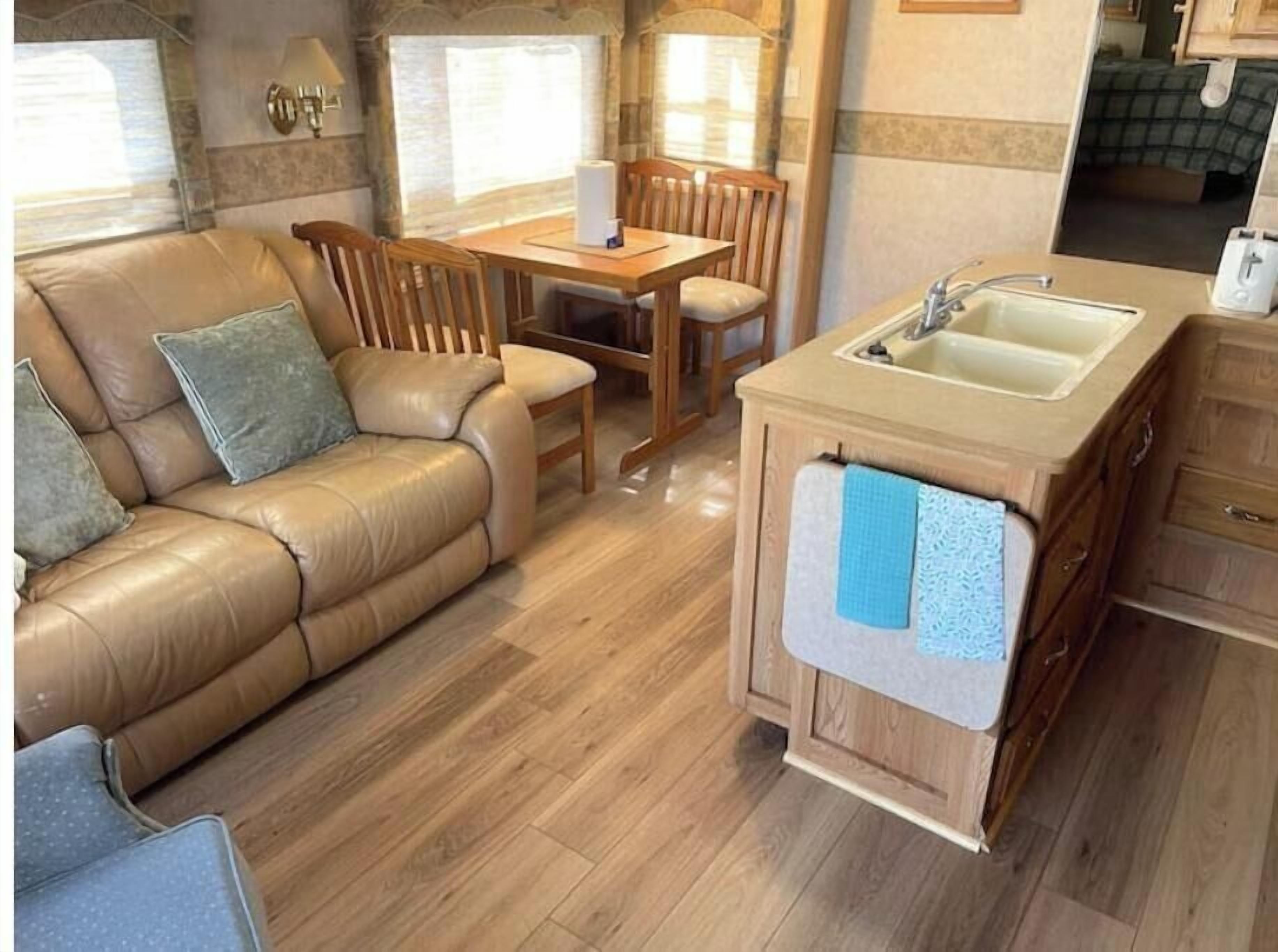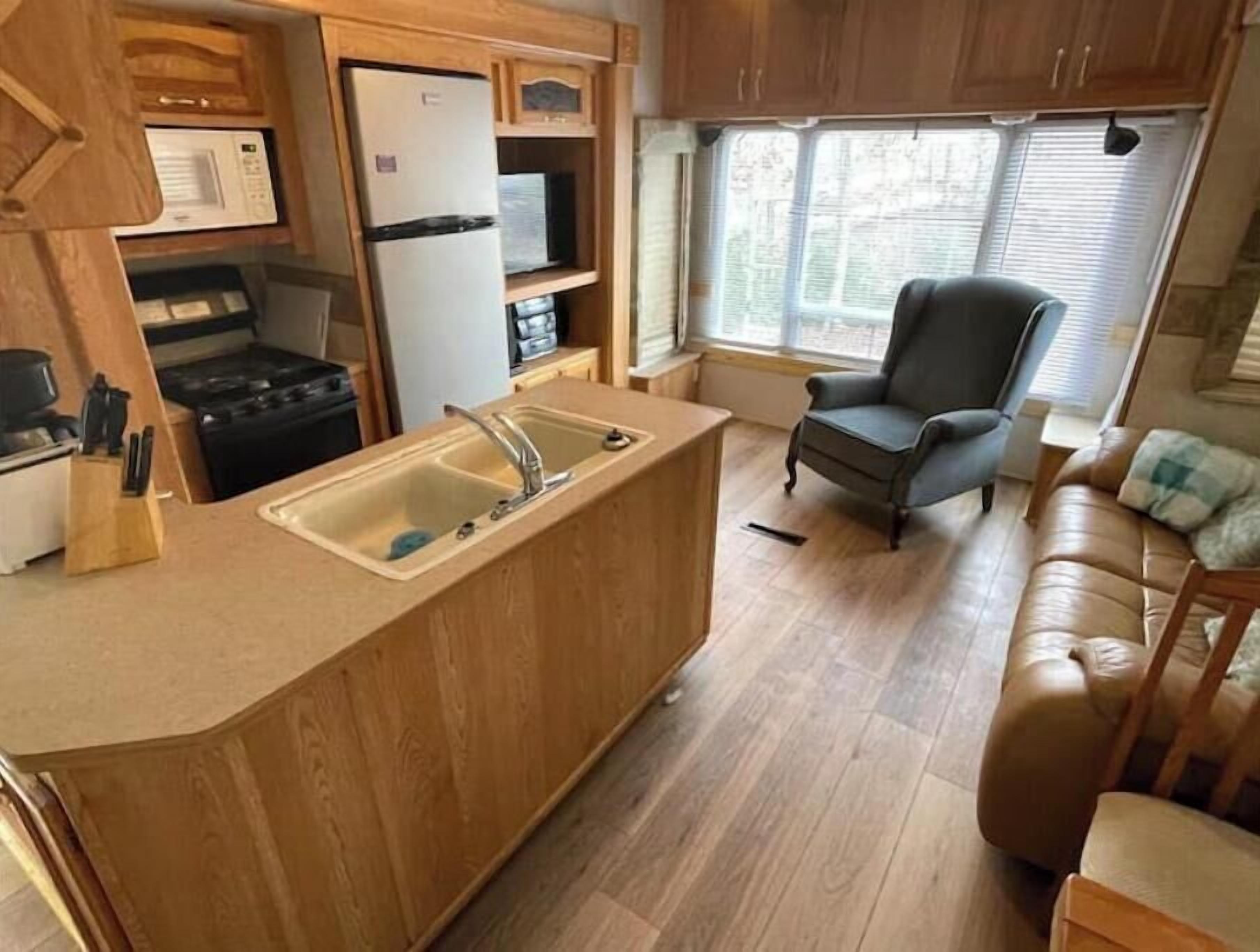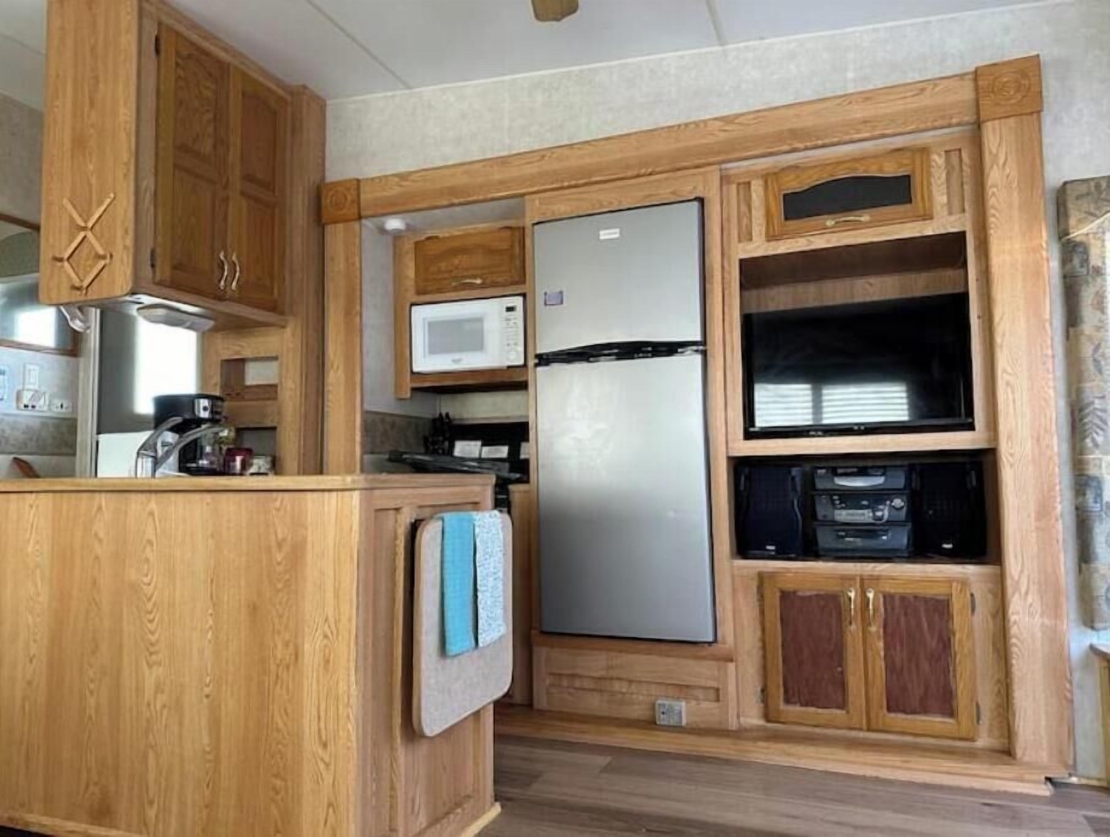 RV#3, 3 slides, covered deck, lake activities About this spaceReconnect with nature at this great location. Beautiful sunsets, short steps to our lake livingston waterfront, 3 piers, fishing, swimming, boating, small craft rentals or guided pontoon trips. It is a 30' rv with 3slide outs, a covered deck patio area, upgraded high efficient 1ton mini-split heat pump, and is in nature area but still just 2 short miles from city of Onalaska grocery and restaurants.The spaceGreat access to Lake Livingston waterfront (approx 275’ from water), 3 piers, fishing, picnic’ing, beautiful sunsets, small watercraft rentals, bonfires, bbq’s.In nature, yet close 2 miles to full grocery store and restaurants!This is a nice 50 amp, 30’ RV with 3 large slide, light wood accents, smart TV & high speed wifi, central AC & heat. It has slight water view, is short steps to the 3 piers & waterfront activities.Use for short term rental retreats, or long term.Guest accessEntire rv, grassy area in front, bbq, firepit are your. Share 3 acres, 400' waterfront areas, 3 piers and other grassy areas (outside of ur grassy area)Other things to noteWe are on a natural lake and there can be in wetlands area across the street or in any uncleared brush snakes, spiders, snapper turtles, alligator across the bridge, hawks, eagles, raccoons, etc. No real danger but occasionally for a couple days usually in spring or early summer, mom alligator will come and drop off a baby alligator off every couple years, stats with it a couple days then leaves. Baby tends to be about 3’ to max 3.5’ when this happens, is too small to be issue, can still only eat max size bullfrogs, kind of fun to watch, but then normally leaves as well within a few weeks cuz too much activity from us. Parks & Wildlife and licensed trappers both said to leave them alone when this small, just do what we do because most the little one can do is eat bullfrog and will leave to find different home if we keep up our activities. And after 8 years we see this is correct.