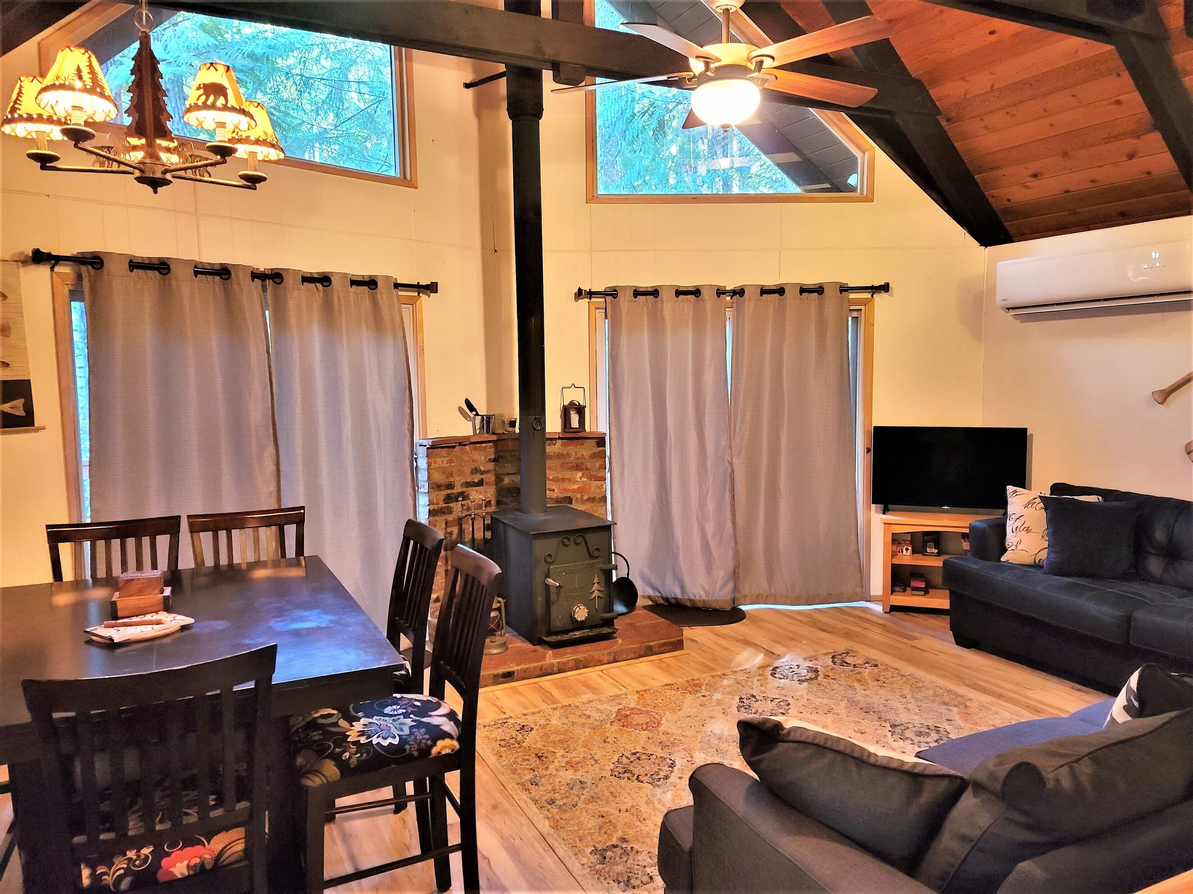 Relaxing Cabin Adjacent Olympic National Park / Forest & Beautiful Lake Cushman! The Yeti Pines Cabin offers beautiful vaulted ceilings with an exposed timber design, giving this property the real “cabin in the woods” feeling while offering enough modern amenities to be very comfortable. Make this relaxing cabin your next destination for a hiking adventure, family getaway, couples retreat, fun at the lake, or a teleworking change of scenery. The cabin is located in the Mount Rose community and is literally the closest vacation rental to the southeast corner of the Olympic National Parks popular hikes, such as Staircase Rapids Loop & Mt Rose Trailhead! The great location puts you in one of the most popular Lake Cushman Divisions, offering 2 Parks with a Boat Ramp within the immediate community. Another great benefit is being within a short drive to the scenic seaside town of Hoodsport perched on the western shores of the hood canal. A wonderland of activities awaits you! Come experience endless hiking, swimming, paddle boarding, canoeing, kayaking, boating, fishing, clamming, wineries, dining and relaxing - there is something for everyone! All are conveniently located minutes from this well-appointed vacation rental.-THE PROPERTY-Newly updated cabin minutes from Lake Cushman, the Olympic National Park and Olympic National Forest. BEDROOMS:Queen Log Bed, Small Dresser, Bedside Tables, Fan, and a Full-Length Mirror. Located on 1st floor (main floor).King Platform Bed, 2 Bedside Tables, Fan, Large Dresser, TV, VCR/DVD Combo, Disney, and other Movies. Located on 2nd floor - Huge Loft w/High Ceiling and Privacy Screen.LIVING SPACE: Lake-Cabin Design, A-frame ceiling, Wood Stove, New Ductless Heat Pump with Air Conditioning, 6 Person Dining Table, 2 New Comfy Couches, Flat-Screen Smart TV, Books, Games and Puzzles.KITCHEN: Fully Equipped. Full-Sized Refrigerator with Freezer, Electric Stove/Oven, Coffee Maker, Microwave, Toaster, Crock Pot, Cooking Essentials, Basic Spices, Tea, Cocoa, Coffee, Creamer, Paper Towels and Napkins.OUTDOOR LIVING SPACE: Gorgeous Treed Lot, Generously sized Front Deck, Large back Deck, Fire Pit with Cooking Grate, Outdoor End Tables and Chairs for Adults and Kids. ***Cushman is a recreational area of owner lots. Although the community properties are generously sized and treed, there are neighboring lots with structures. Cabin is not located on a totally secluded vacation lot however, is remote enough to be very quiet and peaceful. Deer often wander through the yard.HOUSE AMENITIES: Fiber Optic Wifi (100 mbps) *Fast to accommodate teleworkingNew washer & dryer with laundry detergent provided.New Heat Pump for cooling/heatPlenty of blankets, towels, and everyday amenities such as laundry and dish soap, basic spices, paper products, shampoo, conditioner, body wash, blow dryer, emergency kit, etc. PARKING: Gravel Driveway (Parking for 3 Vehicles Max). No street parking available.OUTDOOR AMENITIES: There are 2 boat launches within the immediate Mt Rose Village community. #1 boat launch is less than a 1 min drive from cabin and it offers Parking, Picnic Tables and Bathroom. This is a shore launch for boats (no dock).#2 boat launch is a 5 min drive from from cabin and offers a family park with amenities such as Restrooms w/Showers, Swimming Area, Boat Dock, Covered Gazebo, Picnic Tables, Children’s Play Area, Horseshoe Pit and Lake Fishing. AREA:The Staircase Region of the Olympic National Park is an ancient forest located in the southeastern corner not far from the cabin. The Big Creek Campground Hiking Trails are about 10 minutes away and offer winding trails and along the river and through the Olympic National Forest. There is an upper and lower loop with differing challenge levels for hikers. Also located nearby is the Skokomish River, Mt. Rose, Mt. Ellinor to name a few of the fabulous recreational areas. The Lake Cushman community has 2 lakes - Lake Cushman & Lake Kokanee. Both are surrounded by beautiful picture worthy scenery and the peacefulness of a small quiet community.Lake Cushman is accessible from the recreational division where the cabin is located. It is a large lake that where you can enjoy Boating, Jet Skis, Kayaking, Canoeing, Fishing and Paddle Boarding. Amenities are a Playground with a Swim Area, Gazebo, Picnic Tables, Boat Dock and much more. Lake Kokanee is a no wake lake located 15 minutes from the cabin. You can enjoy Kayaking, Canoeing, Paddle Boarding, and Fishing with small trolling motors only (no large boats allowed). The park offers Restrooms w/Showers, Swimming Area, Boat Ramp and Dock, Covered Gazebo, Picnic Tables, Children’s Play Area, and a Fishing Dock. ----NEARBY AMENITIES----WATERSPORT RENTALS (*seasonal):Hoodsport Wellness & Kayak Rental24380 N US Hwy 101 Hoodsport 360-970-0213-Business has direct access into the Hood Canal or they will transport the Kayak to Lake Kokanee at Cushman for you to enjoy.Skokomish Park Kayaks, Stand-Up Paddle Boards, Peddle Boats Rentals. Public Boat Launch Pass available.7211 N Lake Cushman Rd, [email protected] is on Lake Cushman so you can launch into lake from their shores.CASINO: Lucky Dog. Offers over 250 gaming machines, non-smoking section, NorthFork Grill.WINERIES: Hoodsport Winery (14.9 miles), Stottle Winery Tasting Room (14.1 miles), DINING OPTIONS: El Puerto De Angeles (14.2 miles), Model T Pub & Eatery (14.0 miles), Hoodsport Coffee Company (14.0 miles), The Tides Family Restaurant (16.8 miles)NEARBY CITIES: Olympia (50.5 miles), Tacoma (72.9 miles), Seattle (108.9 miles)AIRPORT: Seattle-Tacoma International Airport (109.6 miles)ADDITIONAL DETAILS Leverage the high-speed fiberoptic internet for teleworking, surfing the net, watching music videos on your favorite apps with the SMART TV, such as Netflix and iHEART radio. Due to the remoteness of the area, cell phones must be connected to the cabin’s wireless high-speed internet to receive/send communications. Use of Community Parks,