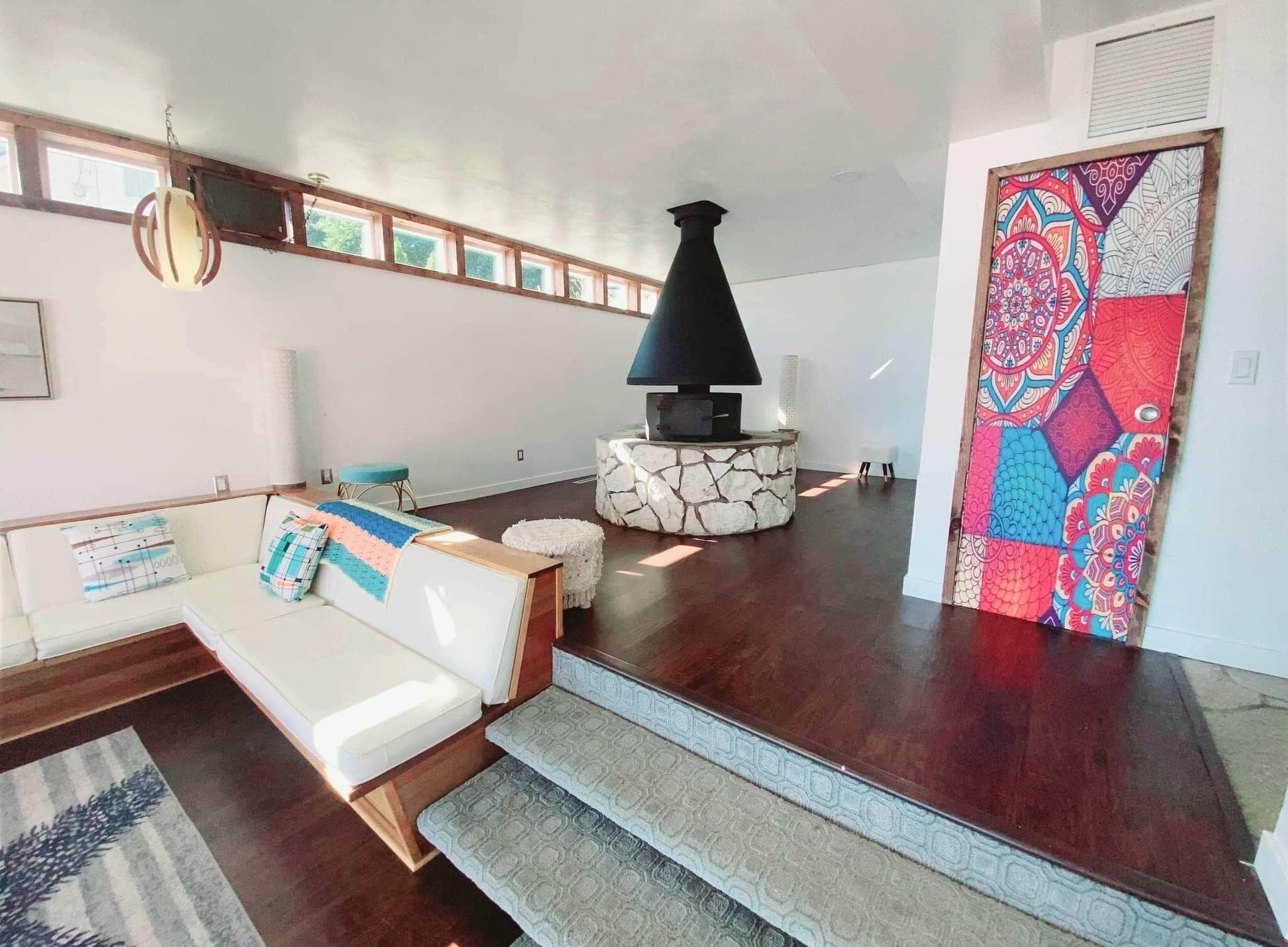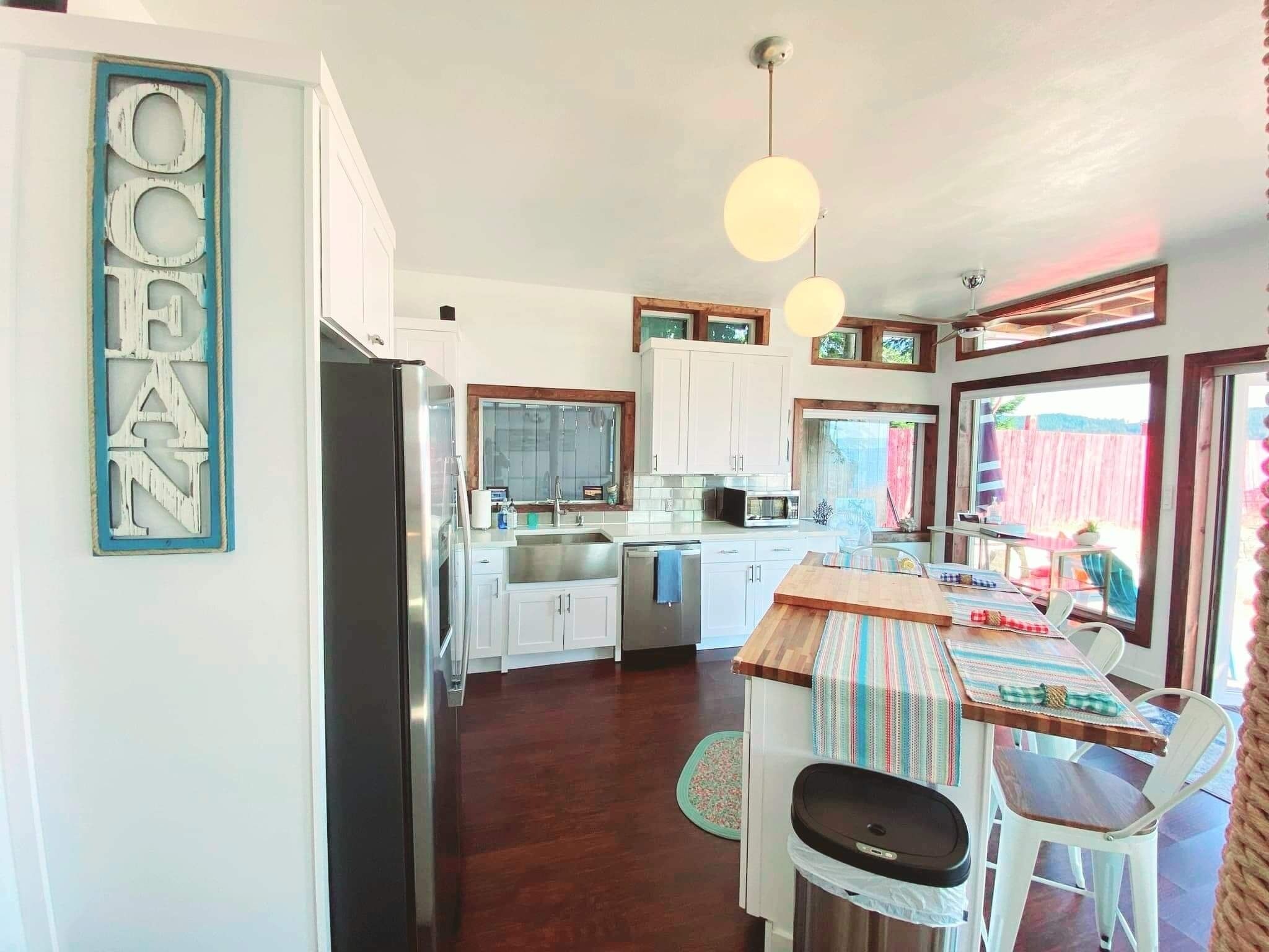 Waterfront beach house 3 minute walk to town. The Coman's beach house is a newly restored 1966 mid century modern costal style home. It sits 30' back from a no bank bulked with steps down to beach access. The two main bedrooms on the top floor face the water sunrise is amazing and there are blackout curtains if you don't want the light to wake you up. There are two decks one upper level off of the bedrooms and one lower off of the kitchen living area. The kids room has a twin over full bunk bed with a twin trundle and a princess tent. This place is great for all seasons with fishing swimming floating during the summer and hiking staying in with the unique round wood stove and movie on the projector screen. The location is very close to everything the area has to offer but most of the time you don't want to leave the property.( Note: The lower bath was not restored but is fully functional) We