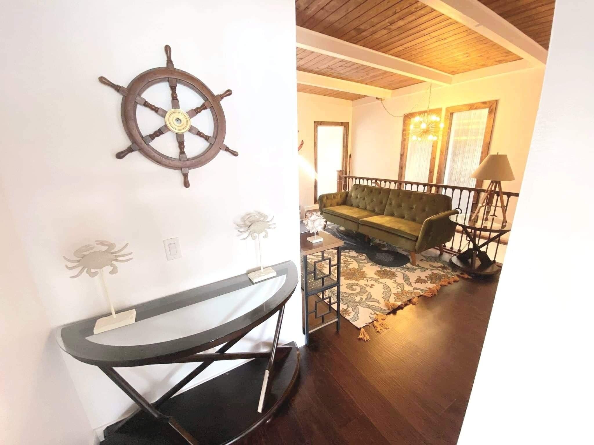 Waterfront beach house 3 minute walk to town. The Coman's beach house is a newly restored 1966 mid century modern costal style home. It sits 30' back from a no bank bulked with steps down to beach access. The two main bedrooms on the top floor face the water sunrise is amazing and there are blackout curtains if you don't want the light to wake you up. There are two decks one upper level off of the...