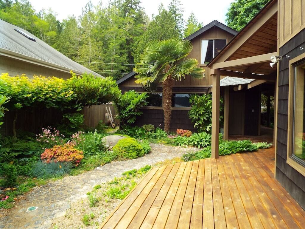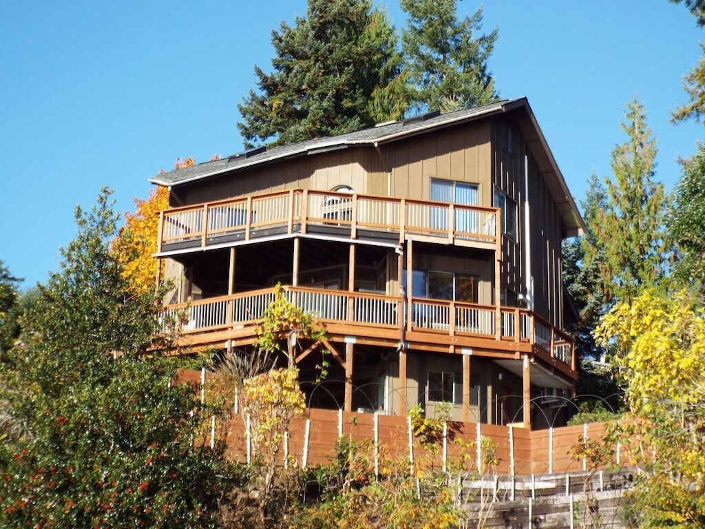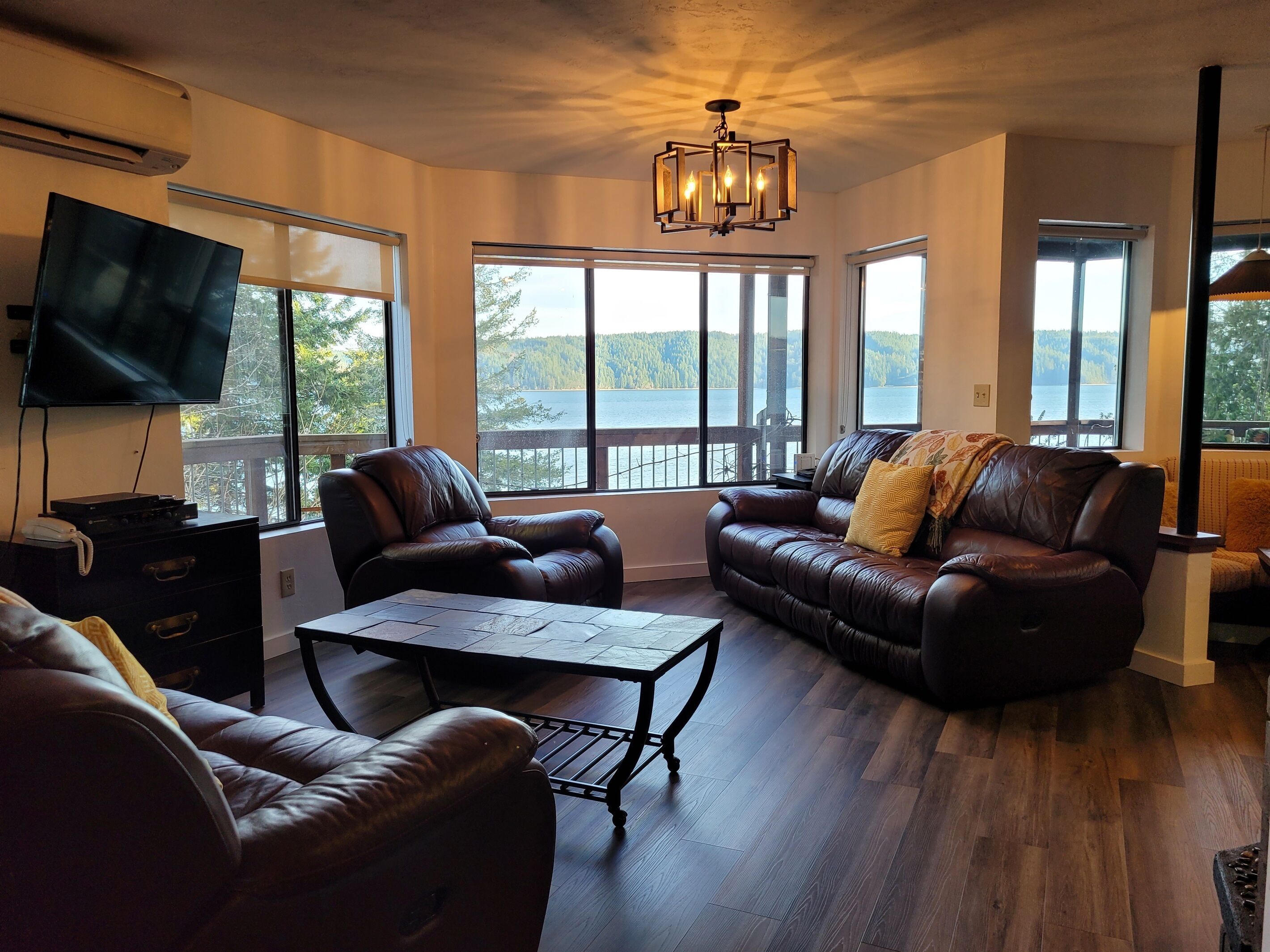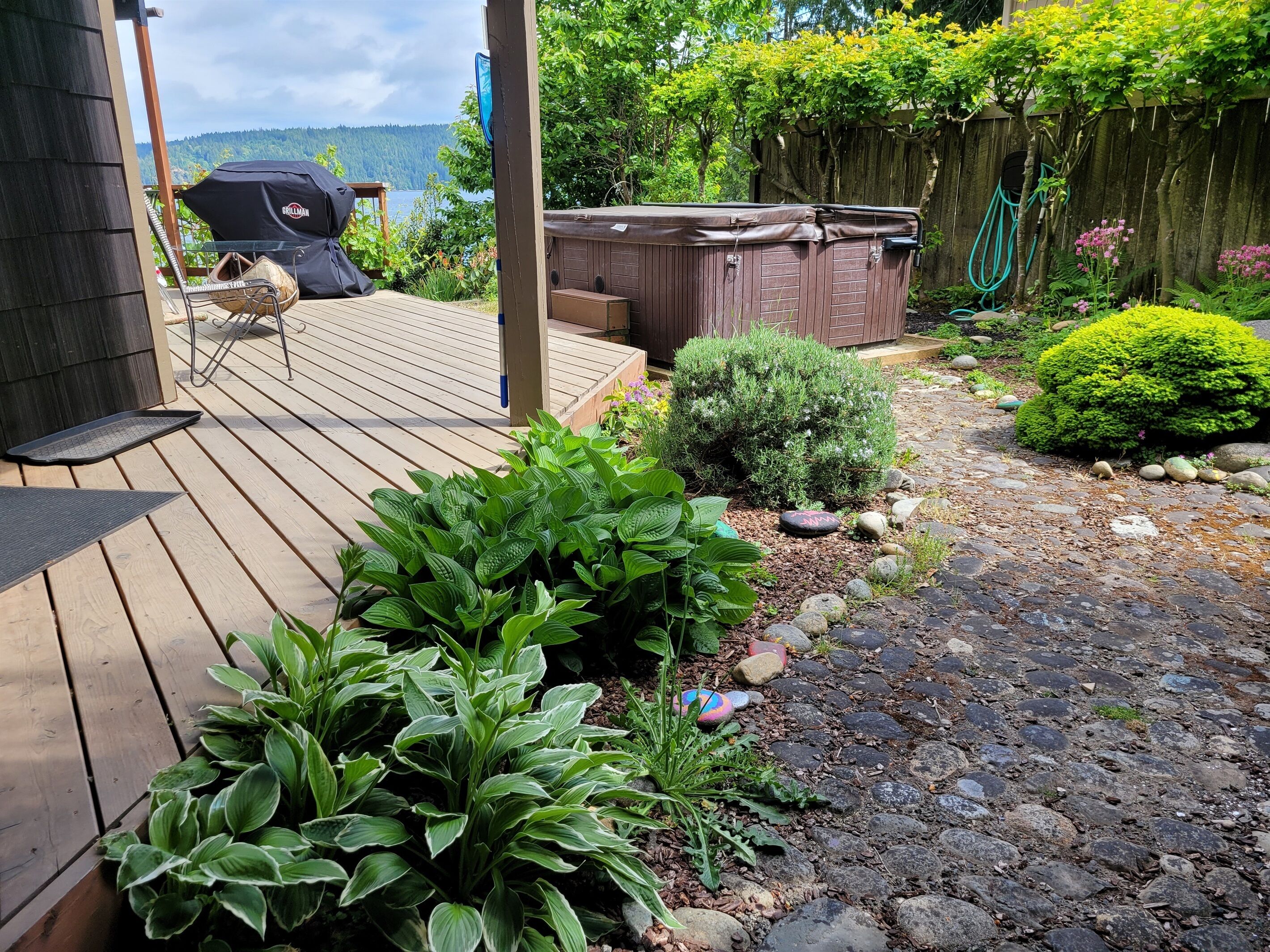 Canal View, Gameroom, 6person HotTub, Lrge Decks, Coverd Patio, DogsOK, Sleeps12 Welcome to The Deckhouse. Take in the sparkling views from 3 levels of this stunning 4 level custom home just steps from the waters of the Hood Canal. Huge decks wrap around the water side of this beautiful home. Walk out the sliding glass door of a bedroom onto the large patio. Have your morning coffee while watching the Harbor Seals soak up the morning sun. In the winter gaze out from the living room onto the crystal waters while warming yourself by the woodstove.This house, conveniently located along Hwy 101 on the sunny east side of the Olympic Peninsula, was built for amazing water views from nearly every room. Please note, this is a water view home, not a waterfront home. There is no direct access to the water from our property. Also, please keep in mind that, as with any vacation rental, the neighbors' properties are not included in your booking.• JuiceBox 40 EV charging station for your electric car with J1772 standard. Charging is free to guests.• Free high speed unlimited internet, and 4 smart TVs.• Air Conditioned house, bedrooms, and game house• 6-person hot tub with Hood Canal views• Large kitchen and dining room with views• Large, covered deck with views, outdoor dining set, and gas BBQ grill• Pool table, ping pong table, Ms Pacman 60 game video table for 2• 5 minutes from Lake Cushman recreation area• 4 bedrooms, 4 bathrooms, 7 beds. Maximum occupancy is the guests you booked (please preview bedroom descriptions for suitability for your group). Guests are welcome to sleep on the 2 large couches in the living room or game room but must provide their own sheets/blankets.• Plenty of parking space, room for a boat and/or trailer• Dog friendly, up to 2 dogs.• Fireplace in living room, with wood provided. We don't provide paper or kindling. This is a "whole house" listing. You and the other guests on your reservation will be the only people occupying the property during your stay. The person who booked the property must be present during the length of the stay. No outside guests or visitors are permitted. Only those on the reservation may access the property. There is just so much to enjoy about this house! Cook up a family meal in the large kitchen (while enjoying canal views), rest on one of the 2 large decks. Play pool, darts, ping-pong, or Donkey Kong in the private game house attached to the house. The 6 person hot tub, installed in 2019, has a beautiful view of the Hood Canal. Be advised the house has a few vintage Boho touches that we left intact. The home is conveniently located on the beautifully scenic coastal highway 101 north. Of course, the Olympic National Forest is at your door and Lake Cushman is just 5 miles away. There is hiking, boating, sightseeing, fishing, shellfish harvesting (off-site), hunting, shopping, etc., all within minutes of the house. There are even a few popular Casinos just a short distance south on Highway 101. The master bathroom has a huge, elegant shower. The hallway bathroom, next to the king size bedroom, has a bathtub and shower combination. The bathroom by the living room is a 1/2 bath. The bathroom on the ground floor is a 1/2 bath. The maximum occupancy is the people you booked, including children. The house is not suitable for infants. PLEASE review the bed situation here and you may only bring the number of people you booked for. Some of the bed situations have limited privacy. BEDS AND PRIVACY: There is a private bedroom with queen bed (2nd floor), a private bedroom with king bed (2nd floor), a loft with 4 twin beds (3rd floor), and a bedroom on ground floor, The loft is reached via a wood and metal spiral staircase (see pics). Guests are welcome to sleep on the 2 large couches in the game room but must provide their own sheets/blankets. Please review the bed situations prior to booking.The kitchen is large and well stocked with pots, pans, dishes, small appliances, blender, mixer, microwave, coffeemaker, dishwasher, etc. Guests provide their own food. We also supply the towels, shampoo, body wash, washer and dryer, laundry and dish detergents. This is a non smoking property. No smoking or vaping of any kind is permitted in the house or gameroom. There is free EV charging available at the house. This custom home was designed and built for the actor Shephard Houghton and his wife in 1984. They would spend four or five months here each summer. In Shep's memoirs he writes "It's a beautiful home, with a view of sea and forest and [the public beaches in the Hoodsport area offer] lots of oysters, clams, shrimp, and salmon". Shep appeared in silent films as a youngster, and went on to appear in such films as "Gone with the Wind", "Showboat", "Red Badge of Courage", "Hello Dolly", "Hindenburg", and TV's "The Mary Tyler Moore Show", "Kojac", and "Star Trek", among others, before retiring in 1976. He was well-liked for his personality and work ethic and befriended quite a few Hollywood legends along the way, along with the close friendships he enjoyed in Hoodsport. Framed posters of some of his work are hanging in the game house. Guest accessThis is an "entire house" rental. All levels of the house are for the guests. Other things to noteOnly guests on the booking may access the property, unless express prior consent is given by the owner. The person who booked the property must be present during the length of the stay.Your rate is calculated based on your dates and number of guests. It is always a good idea to enter your accurate number of guests when searching. The base rate covers the first 2 guests. After that is is an additional $20 per guest per night, which is all included in the charges you see during the booking process.Up to 2 dogs are permitted. There are 3 security cameras that record video 24/7, One on the front of the garage, one on the side of the garage, one on the back of the house. All directed toward the parking areas. 