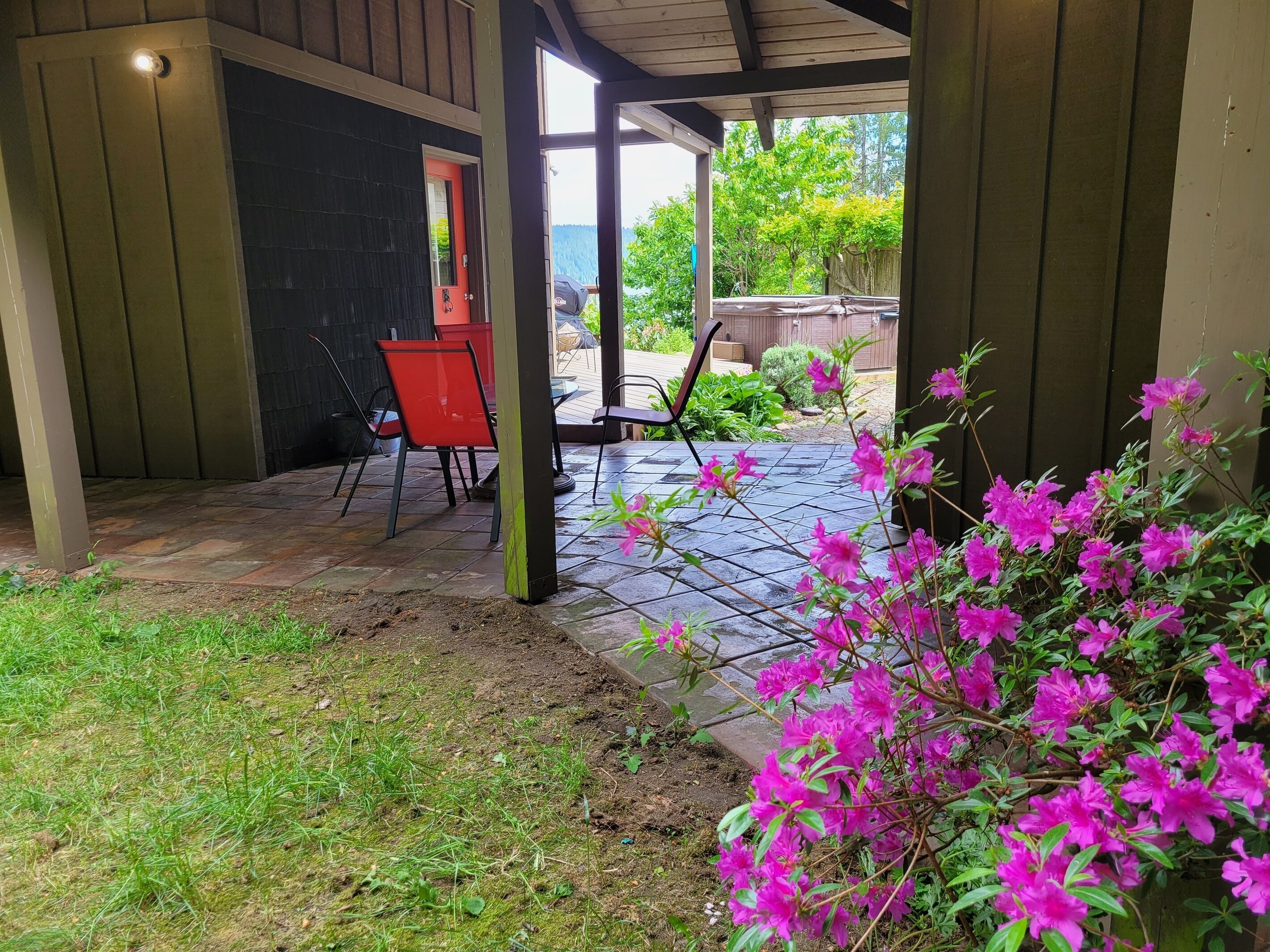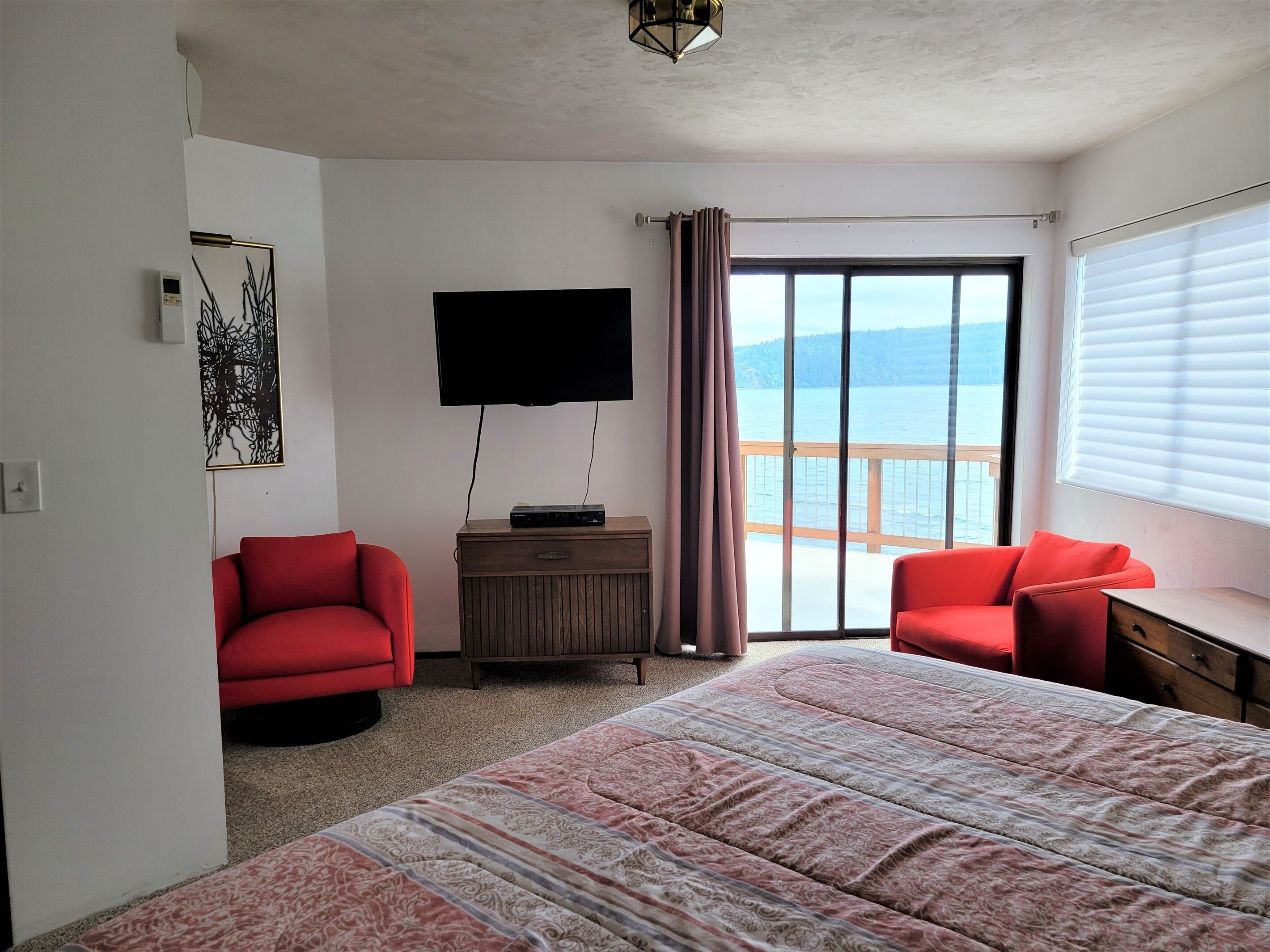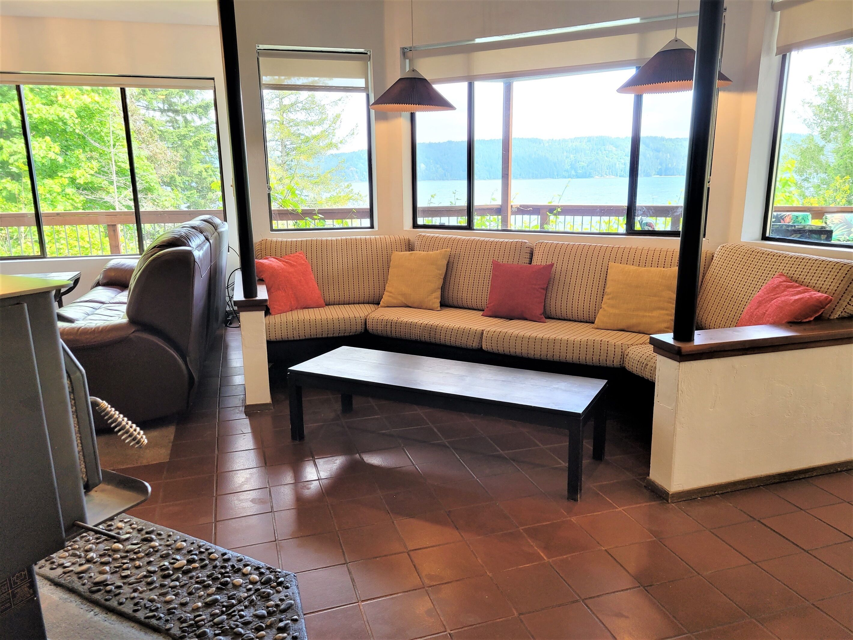 Canal View, Gameroom, 6person HotTub, Lrge Decks, Coverd Patio, DogsOK, Sleeps12 Welcome to The Deckhouse. Take in the sparkling views from 3 levels of this stunning 4 level custom home just steps from the waters of the Hood Canal. Huge decks wrap around the water side of this beautiful home. Walk out the sliding glass door of a bedroom onto the large patio. Have your morning coffee while watching the Harbor Seals soak up the morning sun. In the winter gaze out from the living room onto the crystal waters while warming yourself by the woodstove.This house, conveniently located along Hwy 101 on the sunny east side of the Olympic Peninsula, was built for amazing water views from nearly every room. Please note, this is a water view home, not a waterfront home. There is no direct access to the water from our property. Also, please keep in mind that, as with any vacation rental, the neighbors' properties are not included in your booking.• JuiceBox 40 EV charging station for your electric car with J1772 standard. Charging is free to guests.• Free high speed unlimited internet, and 4 smart TVs.• Air Conditioned house, bedrooms, and game house• 6-person hot tub with Hood Canal views• Large kitchen and dining room with views• Large, covered deck with views, outdoor dining set, and gas BBQ grill• Pool table, ping pong table, Ms Pacman 60 game video table for 2• 5 minutes from Lake Cushman recreation area• 4 bedrooms, 4 bathrooms, 7 beds. Maximum occupancy is the guests you booked (please preview bedroom descriptions for suitability for your group). Guests are welcome to sleep on the 2 large couches in the living room or game room but must provide their own sheets/blankets.• Plenty of parking space, room for a boat and/or trailer• Dog friendly, up to 2 dogs.• Fireplace in living room, with wood provided. We don't provide paper or kindling. This is a "whole house" listing. You and the other guests on your reservation will be the only people occupying the property during your stay. The person who booked the property must be present during the length of the stay. No outside guests or visitors are permitted. Only those on the reservation may access the property. There is just so much to enjoy about this house! Cook up a family meal in the large kitchen (while enjoying canal views), rest on one of the 2 large decks. Play pool, darts, ping-pong, or Donkey Kong in the private game house attached to the house. The 6 person hot tub, installed in 2019, has a beautiful view of the Hood Canal. Be advised the house has a few vintage Boho touches that we left intact. The home is conveniently located on the beautifully scenic coastal highway 101 north. Of course, the Olympic National Forest is at your door and Lake Cushman is just 5 miles away. There is hiking, boating, sightseeing, fishing, shellfish harvesting (off-site), hunting, shopping, etc., all within minutes of the house. There are even a few popular Casinos just a short distance south on Highway 101. The master bathroom has a huge, elegant shower. The hallway bathroom, next to the king size bedroom, has a bathtub and shower combination. The bathroom by the living room is a 1/2 bath. The bathroom on the ground floor is a 1/2 bath. The maximum occupancy is the people you booked, including children. The house is not suitable for infants. PLEASE review the bed situation here and you may only bring the number of people you booked for. Some of the bed situations have limited privacy. BEDS AND PRIVACY: There is a private bedroom with queen bed (2nd floor), a private bedroom with king bed (2nd floor), a loft with 4 twin beds (3rd floor), and a bedroom on ground floor, The loft is reached via a wood and metal spiral staircase (see pics). Guests are welcome to sleep on the 2 large couches in the game room but must provide their own sheets/blankets. Please review the bed situations prior to booking.The kitchen is large and well stocked with pots, pans, dishes, small appliances, blender, mixer, microwave, coffeemaker, dishwasher, etc. Guests provide their own food. We also supply the towels, shampoo, body wash, washer and dryer, laundry and dish detergents. This is a non smoking property. No smoking or vaping of any kind is permitted in the house or gameroom. There is free EV charging available at the house. This custom home was designed and built for the actor Shephard Houghton and his wife in 1984. They would spend four or five months here each summer. In Shep's memoirs he writes "It's a beautiful home, with a view of sea and forest and [the public beaches in the Hoodsport area offer] lots of oysters, clams, shrimp, and salmon". Shep appeared in silent films as a youngster, and went on to appear in such films as "Gone with the Wind", "Showboat", "Red Badge of Courage", "Hello Dolly", "Hindenburg", and TV's "The Mary Tyler Moore Show", "Kojac", and "Star Trek", among others, before retiring in 1976. He was well-liked for his personality and work ethic and befriended quite a few Hollywood legends along the way, along with the close friendships he enjoyed in Hoodsport. Framed posters of some of his work are hanging in the game house. Guest accessThis is an "entire house" rental. All levels of the house are for the guests. Other things to noteOnly guests on the booking may access the property, unless express prior consent is given by the owner. The person who booked the property must be present during the length of the stay.Your rate is calculated based on your dates and number of guests. It is always a good idea to enter your accurate number of guests when searching. The base rate covers the first 2 guests. After that is is an additional $20 per guest per night, which is all included in the charges you see during the booking process.Up to 2 dogs are permitted. There are 3 security cameras that record video 24/7, One on the front of the garage, one on the side of the garage, one on the back of the house. All directed toward the parking areas. 
