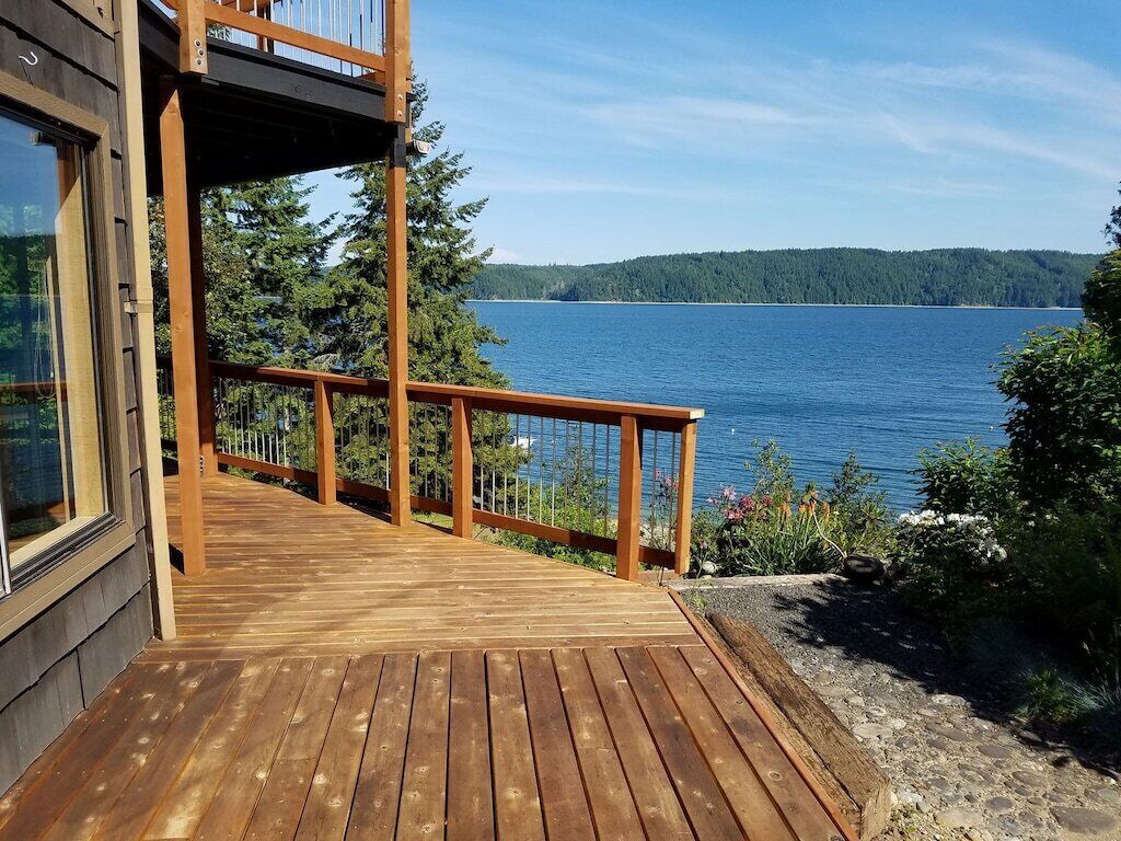 Canal View, Gameroom, 6person HotTub, Lrge Decks, Coverd Patio, DogsOK, Sleeps12 Welcome to The Deckhouse. Take in the sparkling views from 3 levels of this stunning 4 level custom home just steps from the waters of the Hood Canal. Huge decks wrap around the water side of this beautiful home. Walk out the sliding glass door of a bedroom onto the large patio. Have your morning coffee while watching...