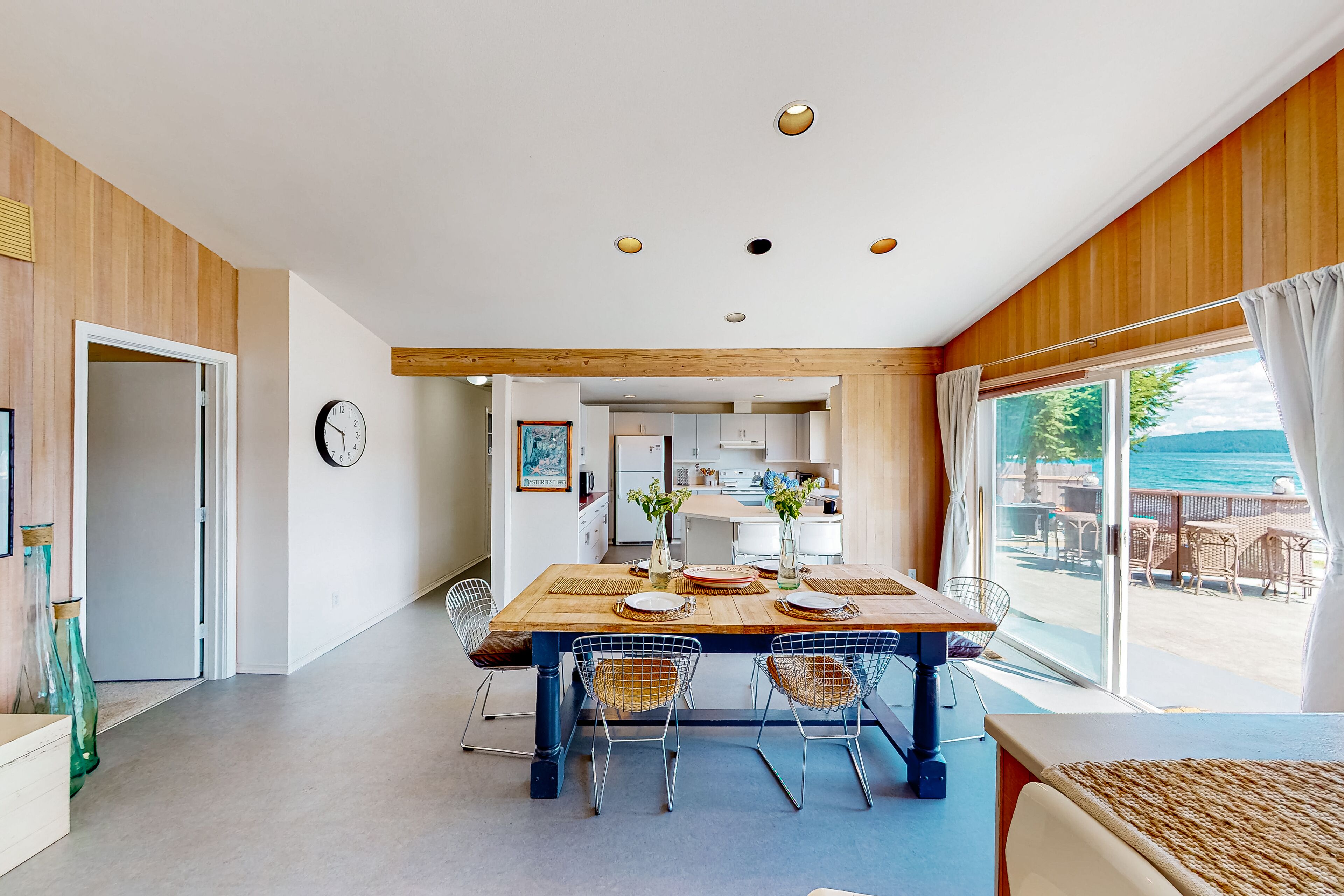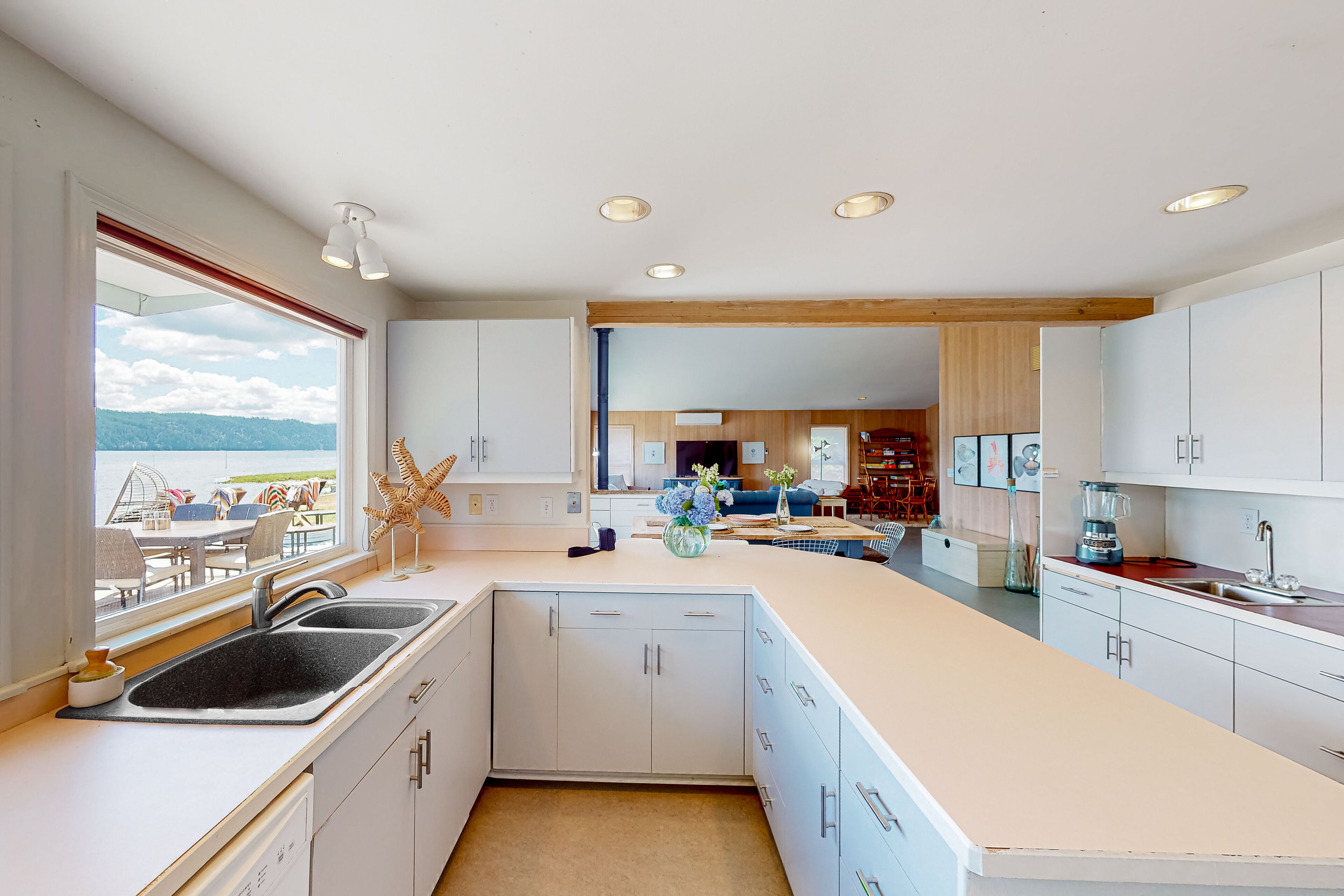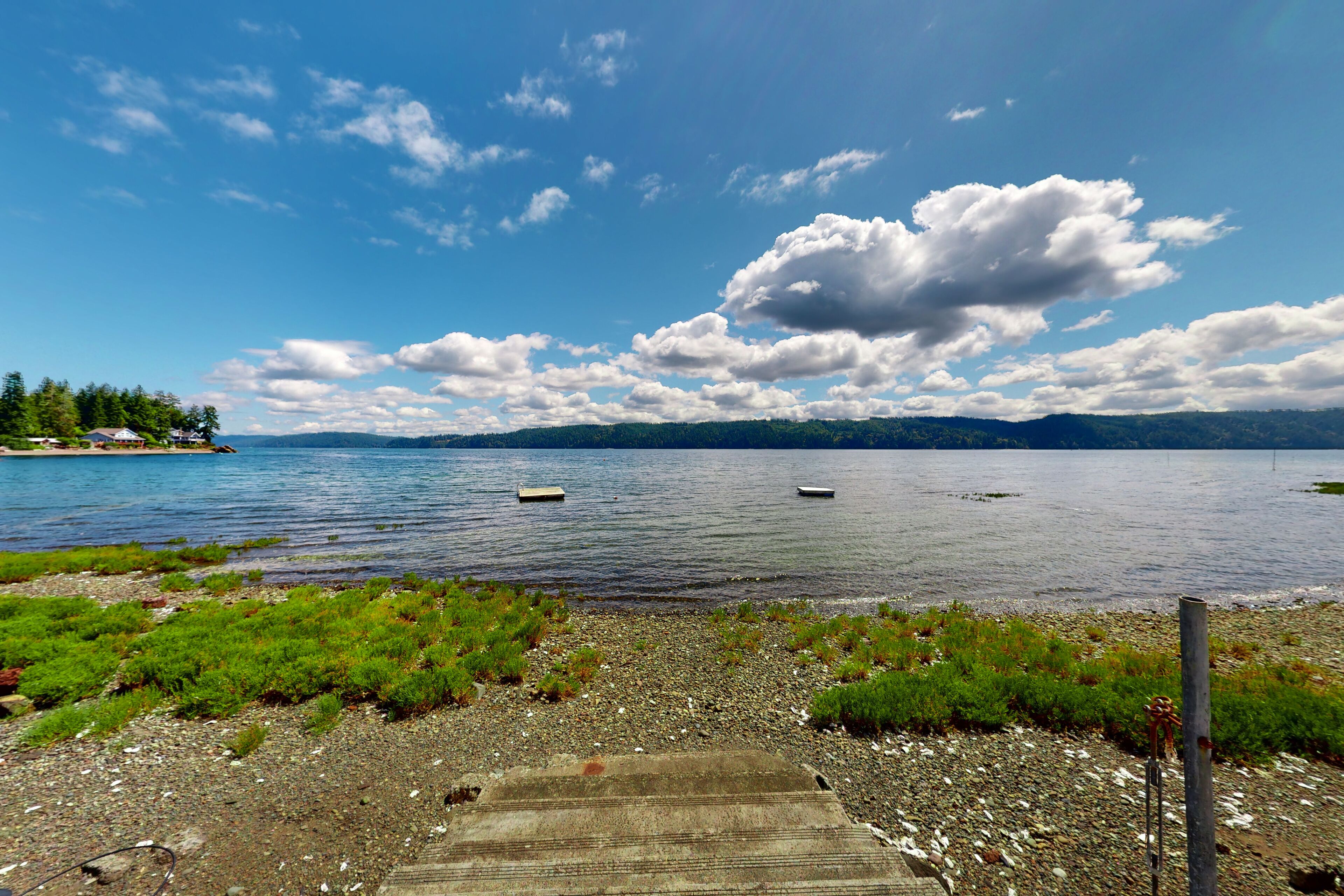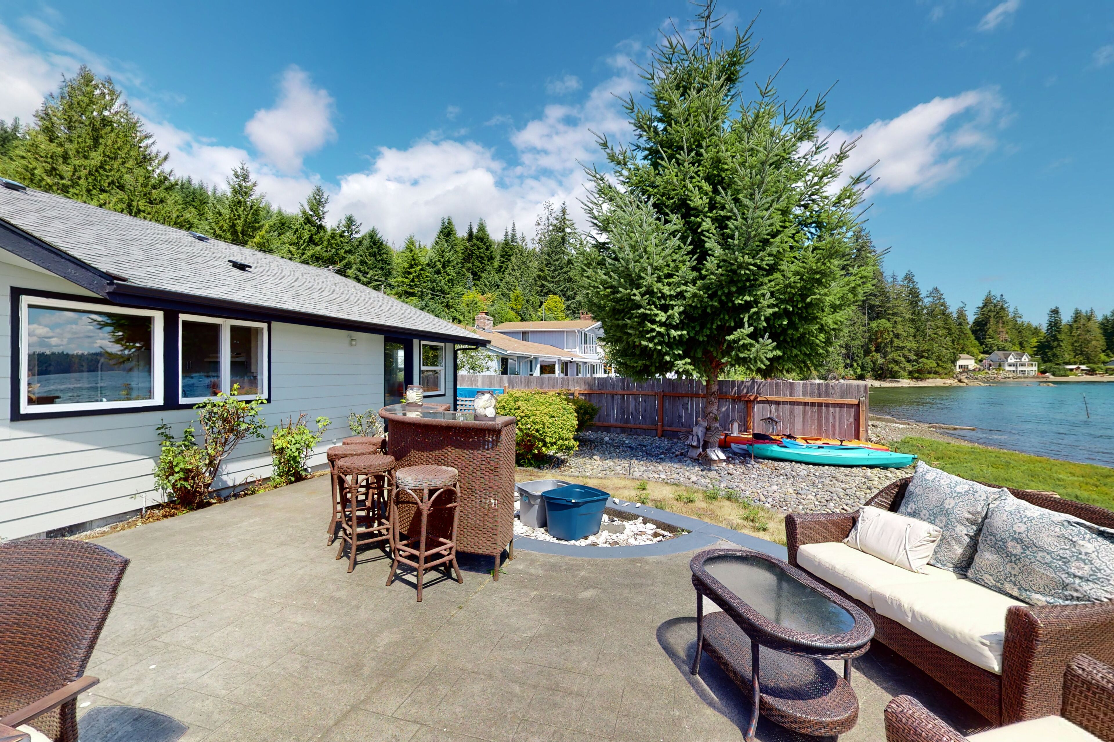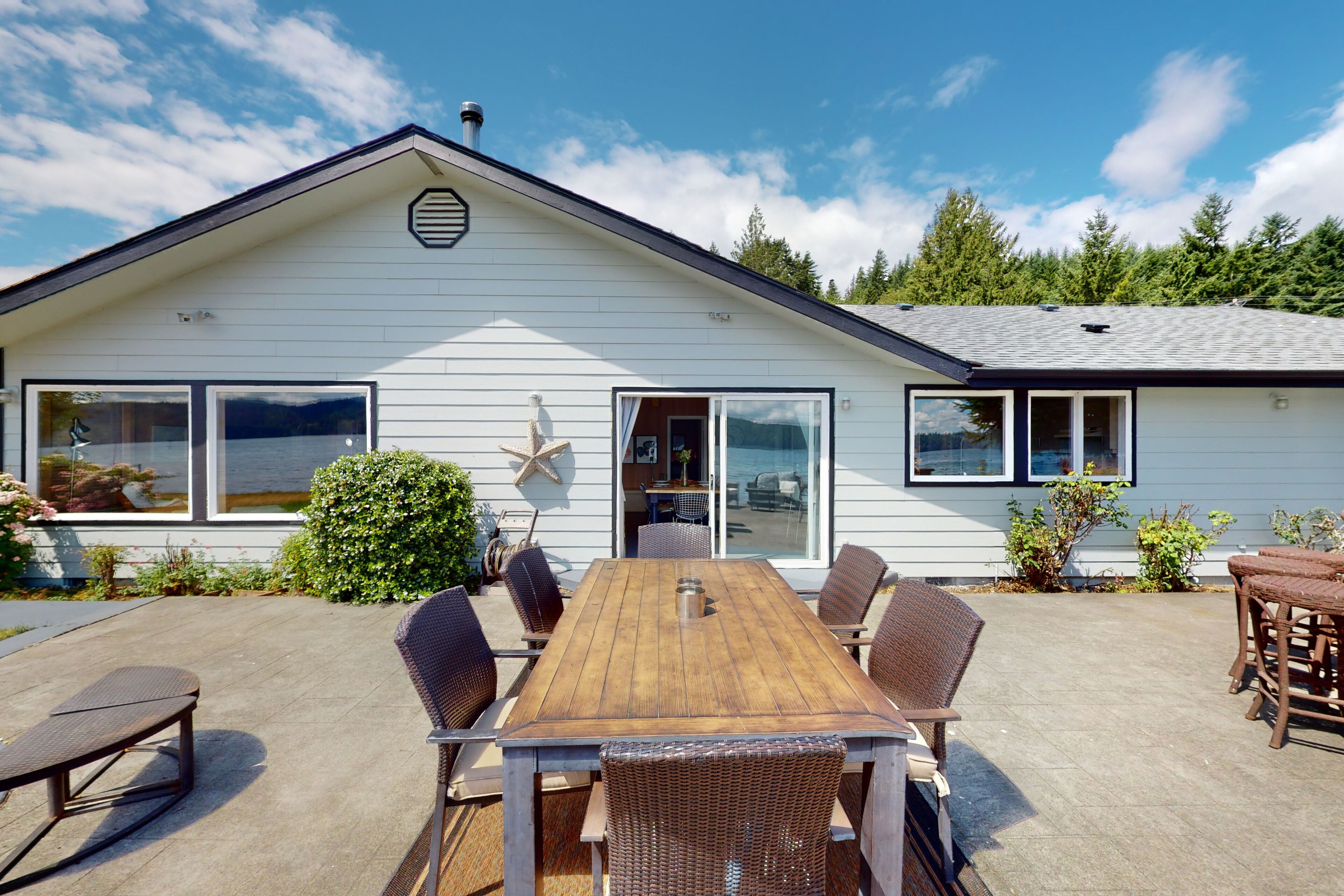 Waterfront home with 3 kayaks, pebbly beach & amazing Hood Canal view The Blue OxOur calendar is updated in real-time & our nightly rates are accurately displayed. Simply enter your desired dates and click 'Book Now!'Immerse yourself in the spectacular surroundings of this waterfront home in Hoodsport, where you'll greet each morning with a breathtaking view of the sun rising over Hood Canal. This is a place for quintessential Pacific Northwest experiences - taking out the three provided kayaks, observing bald eagles and otters from the beautiful patio out back, and collecting oysters on the pebbly beach. In fact, the oysters are so plentiful, don't be surprised if you can completely fill the five-gallon bucket up with them each day!This east-facing home enjoys a private stretch of waterfront on the flat, rocky shores of Hood Canal. There's so much to keep you at home here, but there's also much to explore, from lovely Lake Cushman (nine miles) to the vast network of trails in neighboring Olympic National Forest and Olympic National Park.The house was seemingly designed for gathering with friends and family, beginning with the expansive waterfront patio. Take your pick of multiple seating vignettes in both sun and shade, pull up a stool for a cold drink at the outdoor bar, and admire the incredible view as you barbecue and dine alfresco.The interior is a showcase of the natural setting as well, thanks to large picture windows and an open floor plan brimming with sunlight. Whether you're setting up a board game, streaming movies in the living room, or preparing and sitting down to a homemade meal, you'll never lose sight of the water. Of the the three serene bedrooms, one is a primary suite with an attached bunk nook for little kids; another opens directly to the back patio. Central air conditioning, a washer/dryer, and complimentary WiFi are provided as well.Things to KnowCheck-in time: 4:00 PM.Check-out time: 10:00 AM.All guests shall abide by Vacasa's good neighbor policy and shall not engage in illegal activity. Quiet hours are from 10:00 PM to 8:00 AM.No smoking is permitted anywhere on the premises.Parking notes: There is free parking available for 3 vehicles.Damage waiver: The total cost of your reservation for this Property includes a nightly damage waiver fee, plus tax if applicable (the “Damage Waiver”). (A discount may be applied for stays of 28 nights or longer, if permitted.) The Damage Waiver covers you for up to $3,000 of accidental damage to the Property or its contents (such as furniture, fixtures, and appliances) as long as you report the incident to the host prior to checking out. The Damage Waiver fee eliminates the need for a traditional security deposit.More information can be downloaded from the "Rental Agreement" on the checkout page.Due to local laws or HOA requirements, guests must be at least 21 years of age to book. Guests under 21 must be accompanied by a parent or legal guardian for the duration of the reservation.