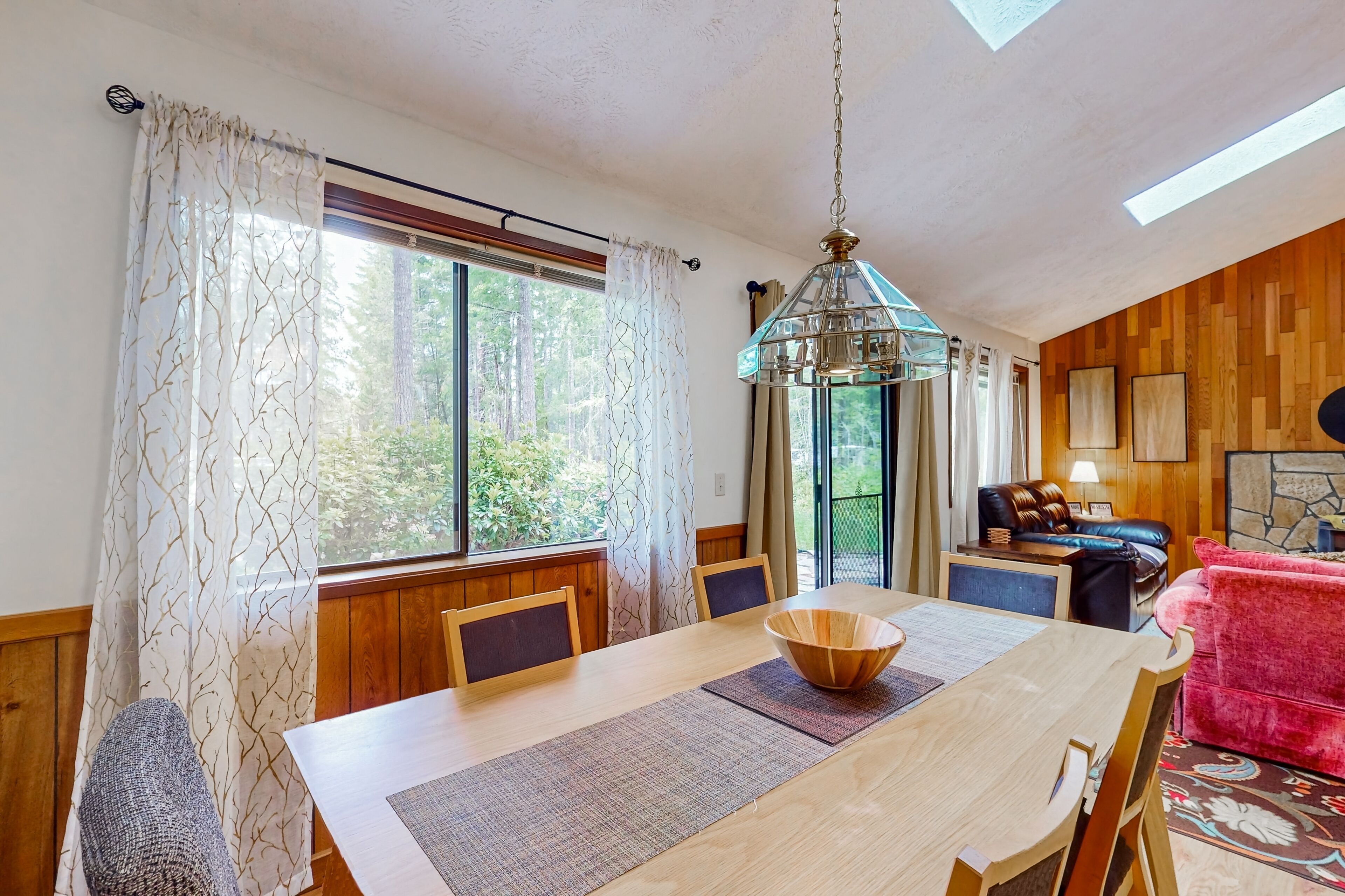 Evergreen getaway with hot tub, gas grill, Wifi and W/D Chinook NookOur calendar is updated in real-time & our nightly rates are accurately displayed. Simply enter your desired dates and click 'Book Now!'Escape to the serene surroundings of Hoodsport, WA, and unwind in the cozy Chinook Nook house nestled in a tranquil grove of pine trees. This charming retreat invites you to relax on the porch, listen to the rustling leaves, and enjoy the symphony of birdsong. In the cooler months, cozy up by the wood stove in the living room, reminiscing about your day of adventures. Please note that this cabin does not come with a television, but high-speed Wi-Fi is available for your convenience.The interior of the cabin features comfortable couches, a dining area, and a breakfast bar, creating a warm and inviting atmosphere. The well-equipped kitchen is stocked with all the essentials for your cooking needs, from dinnerware to pots and pans. Whether you're sipping coffee in the morning or preparing a family meal, this space has everything you need for a comfortable stay.Step outside and explore the plethora of outdoor activities that await you in the area. From boating, kayaking, and fishing in Lake Cushman to hiking and mountain biking in the Olympic National Forest, there's no shortage of adventures to embark on. Golf and tennis enthusiasts will appreciate the proximity to the Lake Cushman Golf Course, while boutique shopping and dining experiences can be found in Union, Shelton, and Hoodsport.After a day of exploration, return to the comfort of your woodland retreat and fire up the gas grill for a relaxing evening. Unwind in the hot tub under the starlit sky or gather around the patio for a barbecue with loved ones. This dog-friendly cabin is the perfect place to unplug, unwind, and create lasting memories in the heart of nature. Book your stay at Chinook Nook today and experience the beauty of Hoodsport, WA.Things to KnowCheck-in time: 4:00 p.m.Check-out time: 10:00 a.m.All guests shall abide by Vacasa’s good neighbor policy and shall not engage in illegal activity. Quiet hours are from 10:00 p.m. to 8:00 a.m.No smoking is permitted anywhere on the premises.If you are bringing a dog on your trip, the pet fee is already included in your quote when selecting ‘Yes’ to pets. No more dogs are allowed.Parking notes: There is free parking available for 3 vehicles.Damage waiver: The total cost of your reservation for this Property includes a nightly damage waiver fee, plus tax if applicable (the “Damage Waiver”). (A discount may be applied for stays of 28 nights or longer, if permitted.) The Damage Waiver covers you for up to $3,000 of accidental damage to the Property or its contents (such as furniture, fixtures, and appliances) as long as you report the incident to the host prior to checking out. The Damage Waiver fee eliminates the need for a traditional security deposit.More information can be downloaded from the "Rental Agreement" on the checkout page.Due to local laws or HOA requirements, guests must be at least 21 years of age to book. Guests under 21 must be accompanied by a parent or legal guardian for the duration of the reservation.