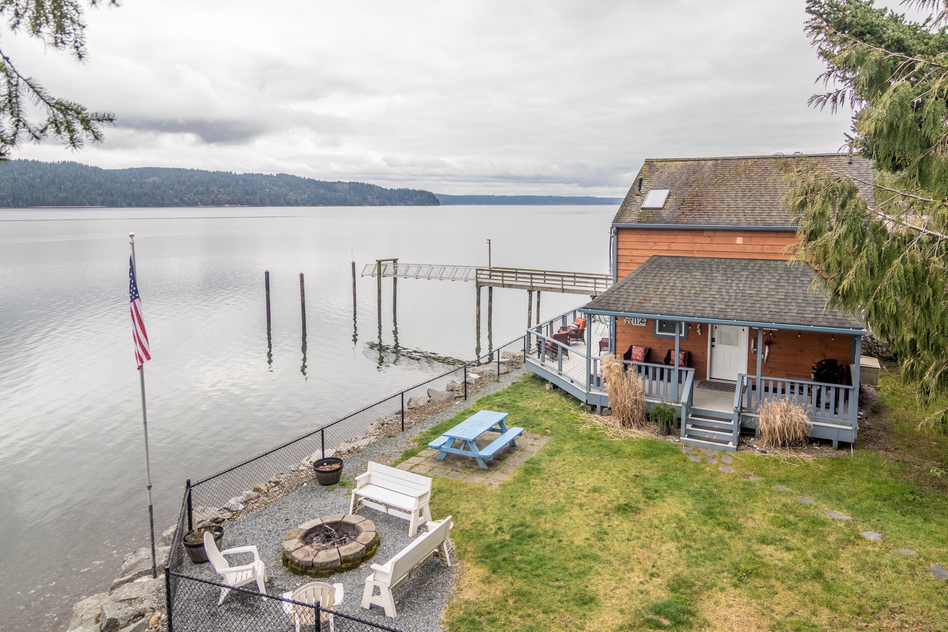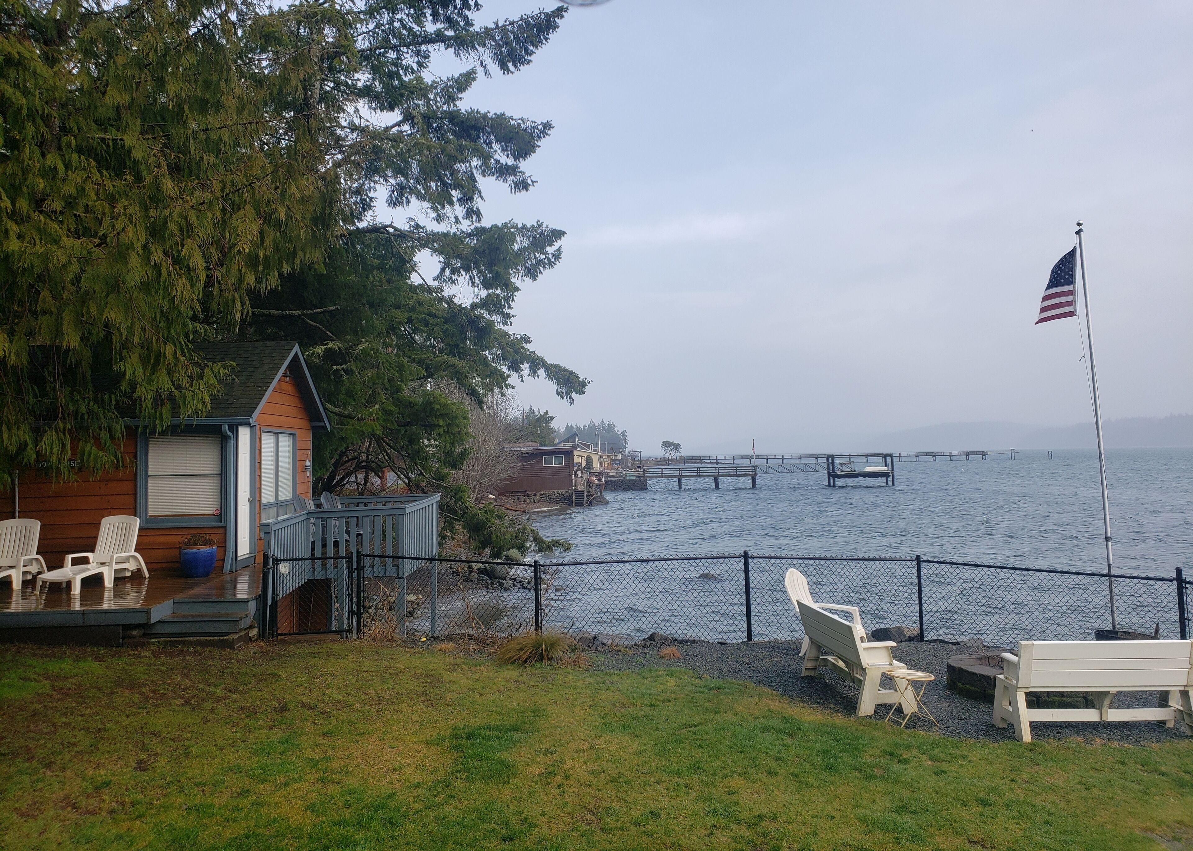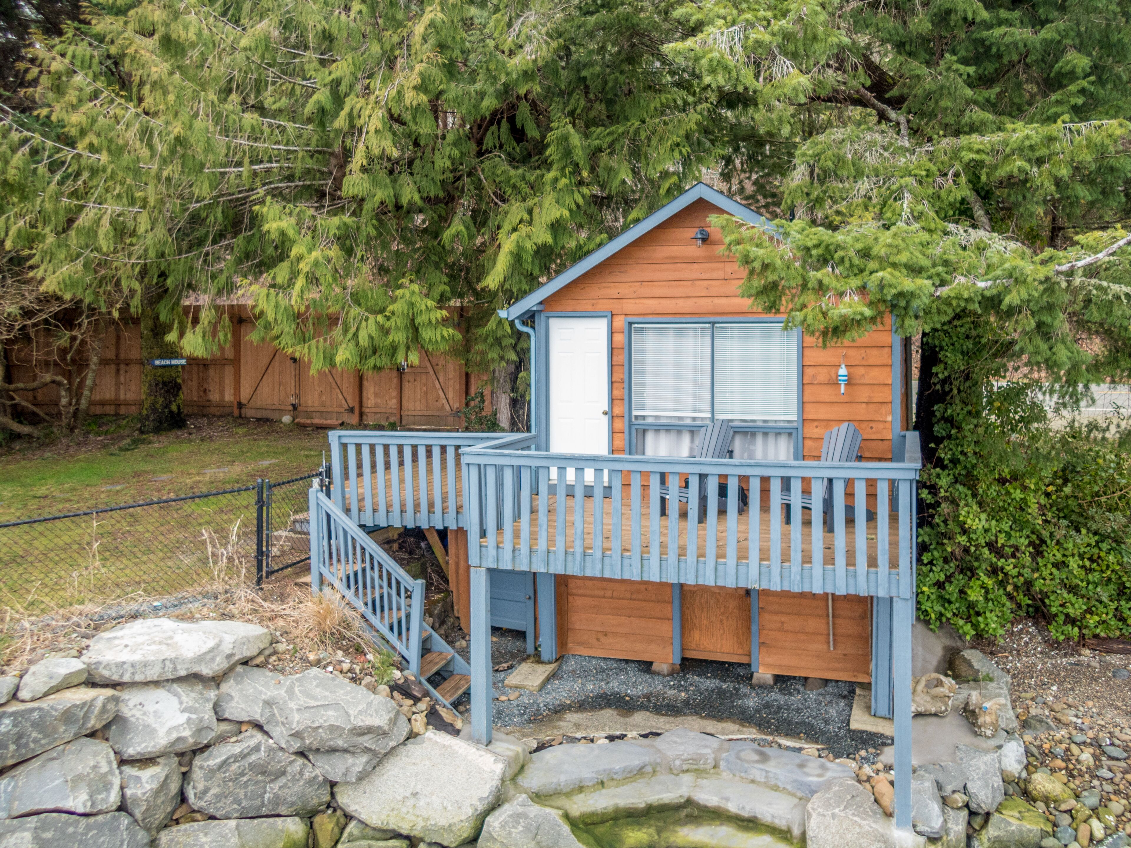 The Giggle Fish~Beachfront- Pet Friendly Hood Canal Getaway Welcome to Giggle Fish on Hood Canal! Our waterfront beach home is the ideal place to relax and take in the peaceful views of Hood Canal. With three bedrooms, it comfortably accommodates six people. Our property is fenced all the way around and is pet friendly. There are many places to relax, inside and out. With decks off both the beach cabin and the boat house, you can find both sun and shade during the summer months. The outdoor area offers plenty of seating, a fire pit, a lawn for playing, and easy access to the beach. In the winter months, the inside area is a cozy spot for relaxation. Play a board game, read a book, or cook a nice meal in our well appointed kitchen. From all the windows, you’ll enjoy watching the various wildlife from bald eagles, herons and other seabirds, to seals, sea lions, and even the occasional whale. Just north of the town of Hoodsport, our location offers quick access to grocery and restaurant options as well as plenty of outdoor activities. There is wonderful hiking throughout the Olympic National Forest and at nearby lakes. Hoodsport is a scuba diving paradise, as we are very close to Sund Rock Marine Preserve. A short drive north brings you to Hama Hama Oyster Saloon, a fun place to enjoy outdoor dining on local eats, or to purchase local shellfish. There are also golf courses and casinos nearby. Of course once you walk through the gate of the property, you may not want to leave!*Please note that there is parking for 2 cars. Parking is between the fenced yard and Highway 101, and is narrow. *
