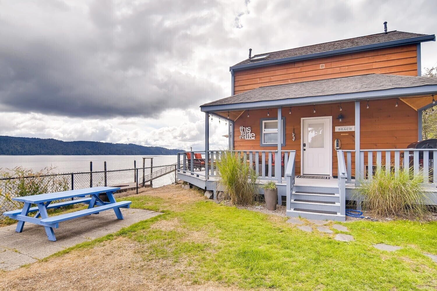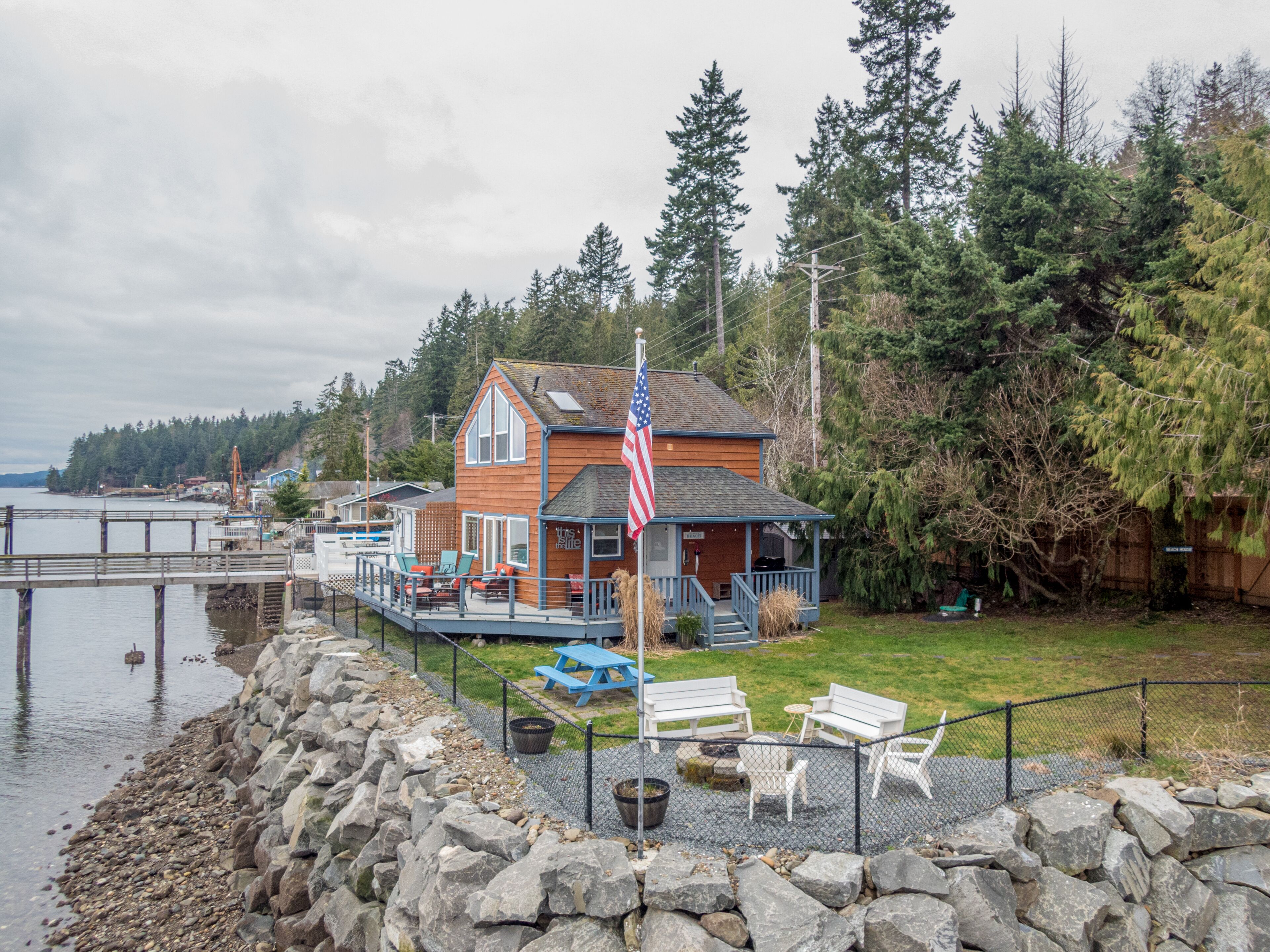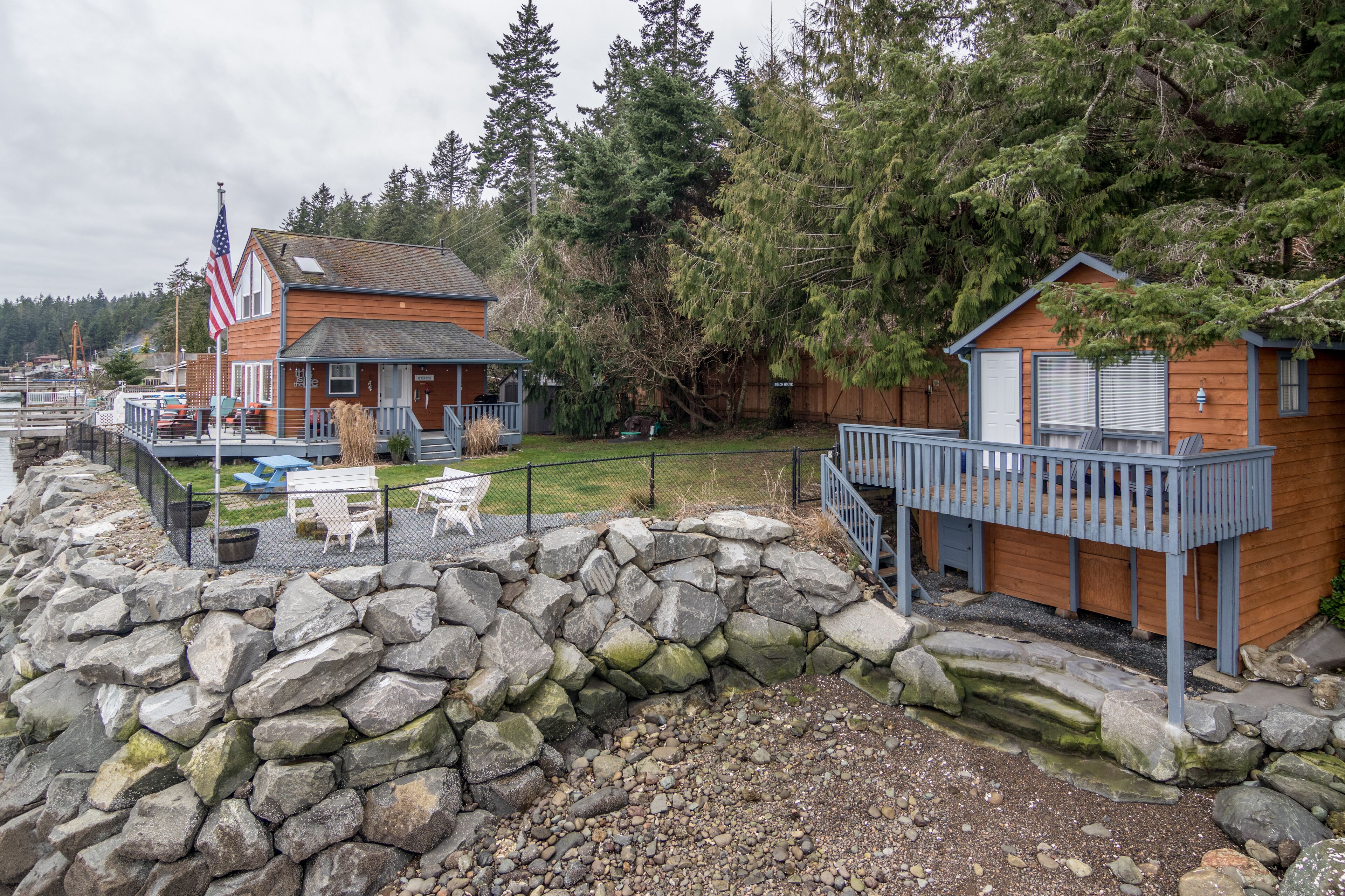 The Giggle Fish~Beachfront- Pet Friendly Hood Canal Getaway Welcome to Giggle Fish on Hood Canal! Our waterfront beach home is the ideal place to relax and take in the peaceful views of Hood Canal. With three bedrooms, it comfortably accommodates six people. Our property is fenced all the way around and is pet friendly. There are many places to relax, inside and out. With decks off both the beach cabin and the boat house, you can find both sun and shade during the summer months. The outdoor area offers plenty of seating, a fire pit, a lawn for playing, and easy access to the beach. In the winter months, the inside area is a cozy spot for relaxation. Play a board game, read a book, or cook a nice meal in our well appointed kitchen. From all the windows, you’ll enjoy watching the various wildlife from bald eagles, herons and other seabirds, to seals, sea lions, and even the occasional whale. Just north of the town of Hoodsport, our location offers quick access to grocery and restaurant options as well as plenty of outdoor activities. There is wonderful hiking throughout the Olympic National Forest and at nearby lakes. Hoodsport is a scuba diving paradise, as we are very close to Sund Rock Marine Preserve. A short drive north brings you to Hama Hama Oyster Saloon, a fun place to enjoy outdoor dining on local eats, or to purchase local shellfish. There are also golf courses and casinos nearby. Of course once you walk through the gate of the property, you may not want to leave!*Please note that there is parking for 2 cars. Parking is between the fenced yard and Highway 101, and is narrow. *