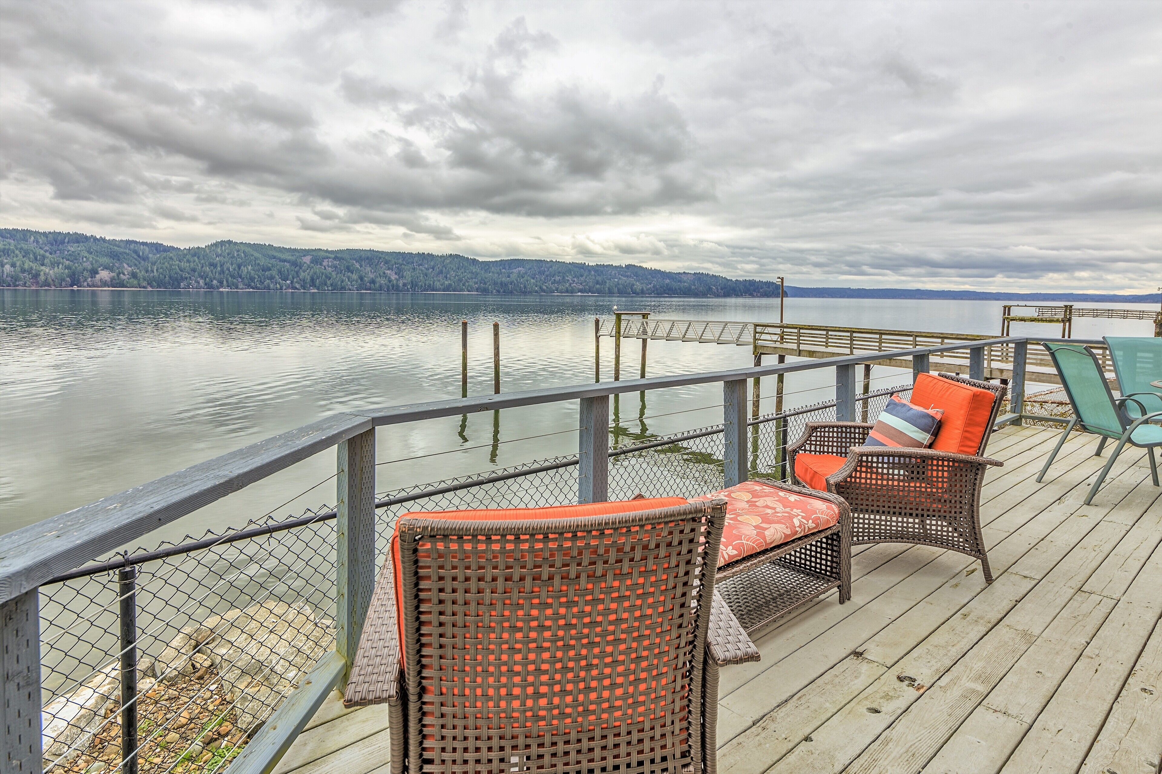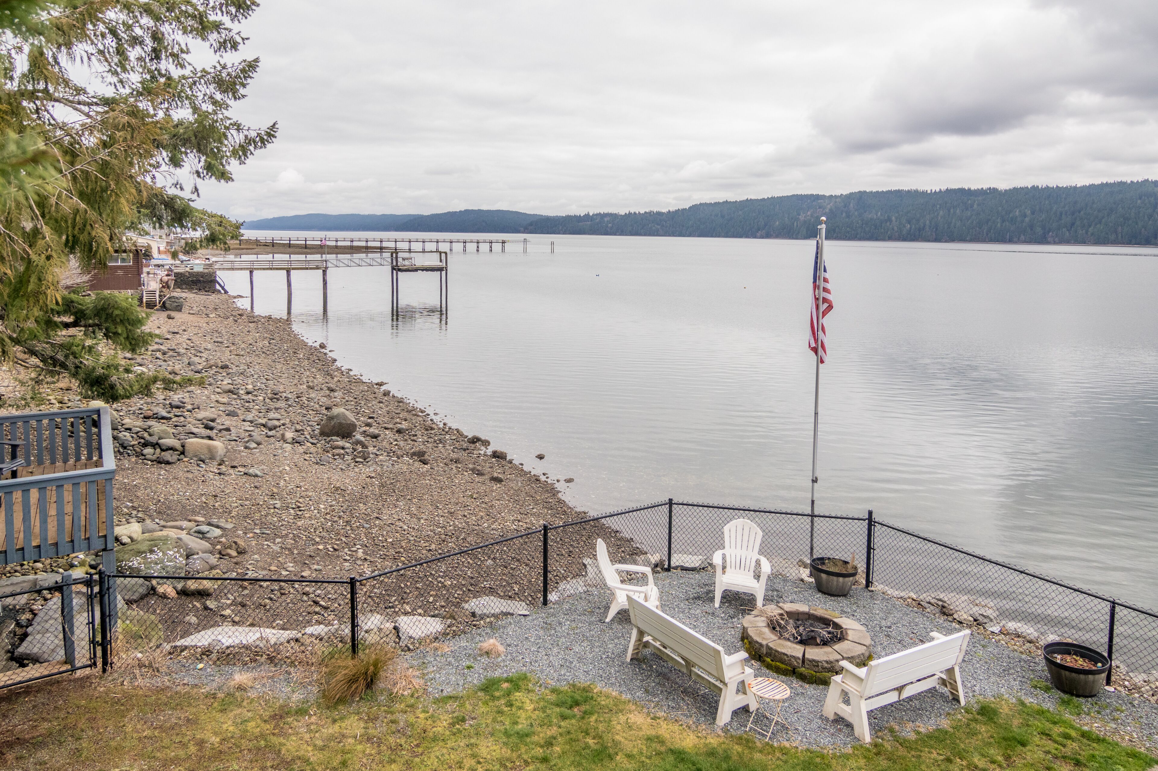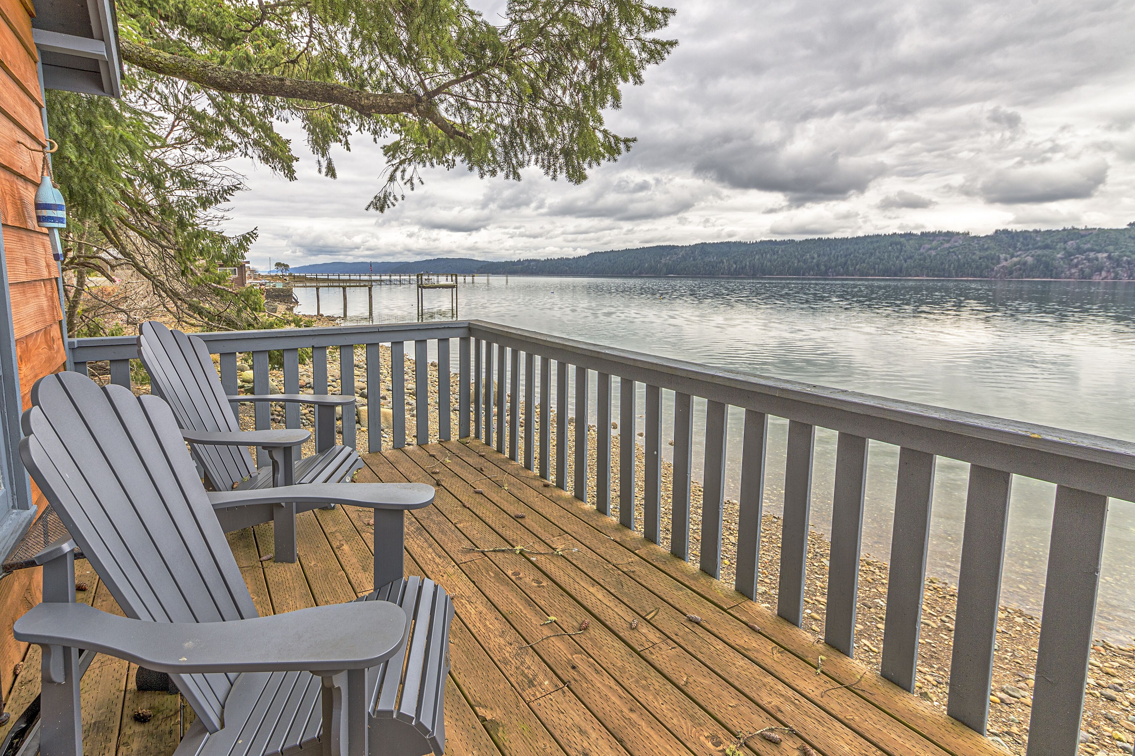The Giggle Fish~Beachfront- Pet Friendly Hood Canal Getaway Welcome to Giggle Fish on Hood Canal! Our waterfront beach home is the ideal place to relax and take in the peaceful views of Hood Canal. With three bedrooms, it comfortably accommodates six people. Our property is fenced all the way around and is pet friendly. There are many places to relax, inside and out. With decks off both the beach...